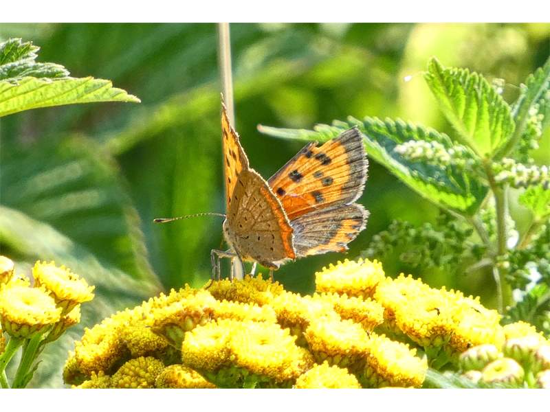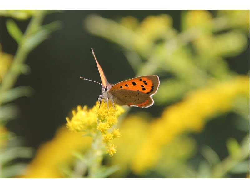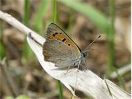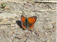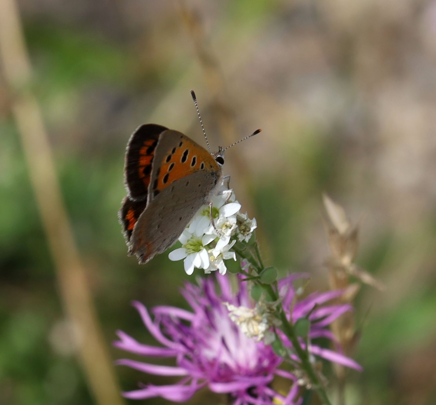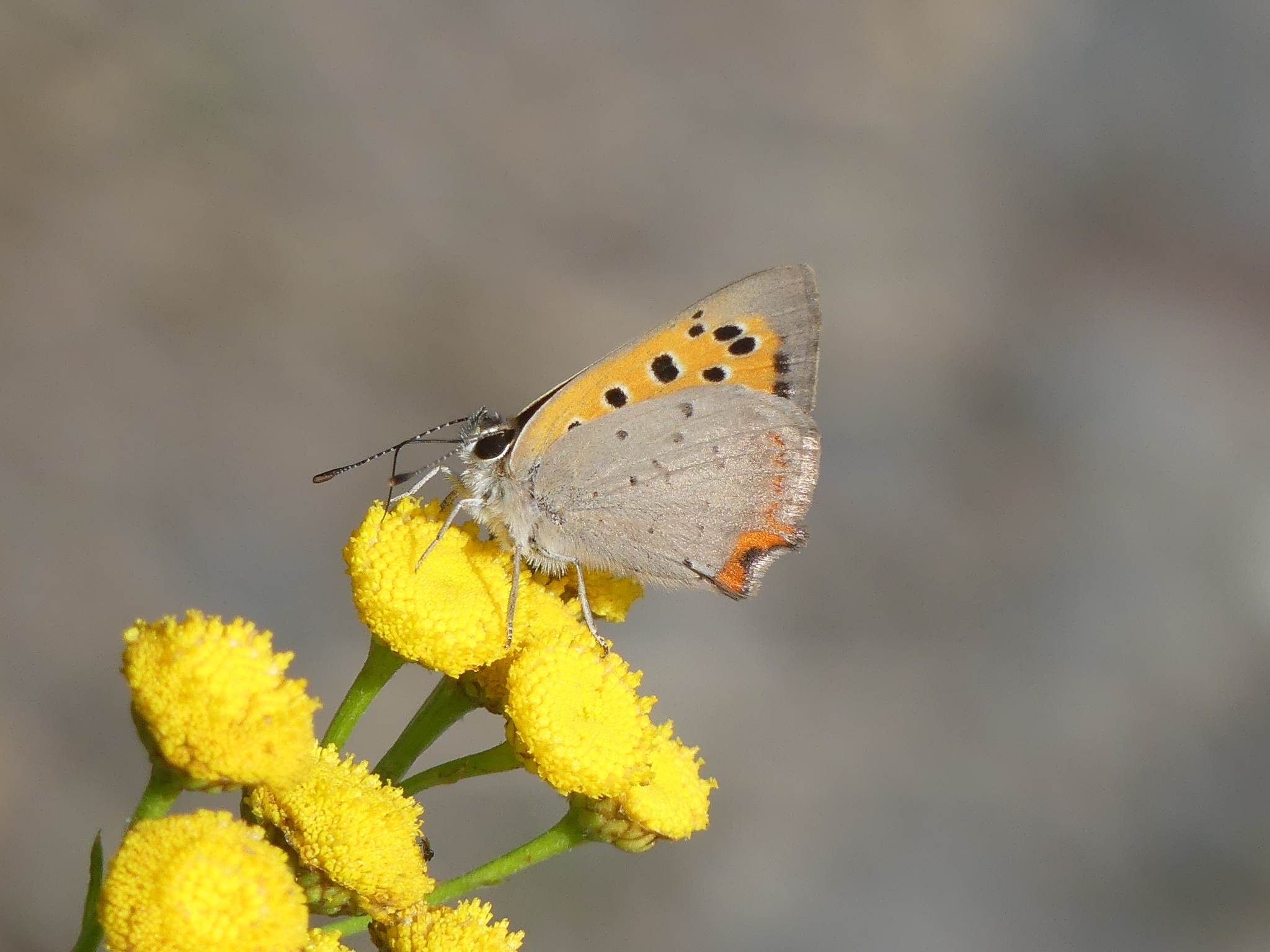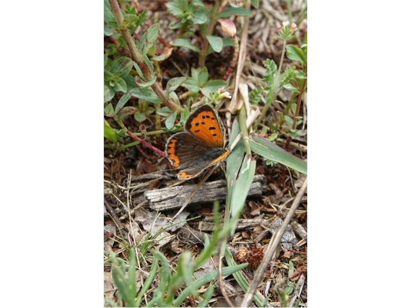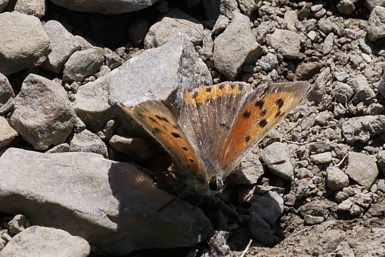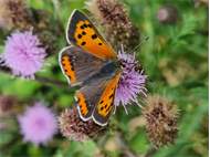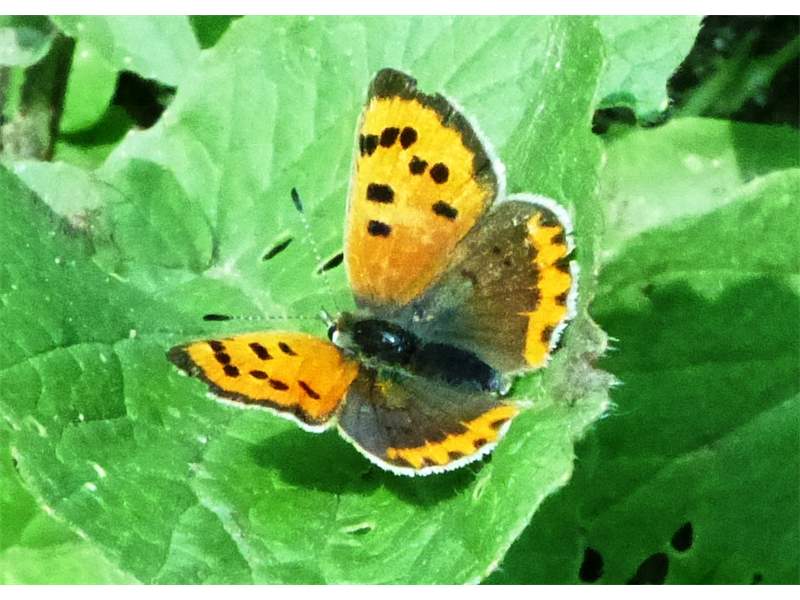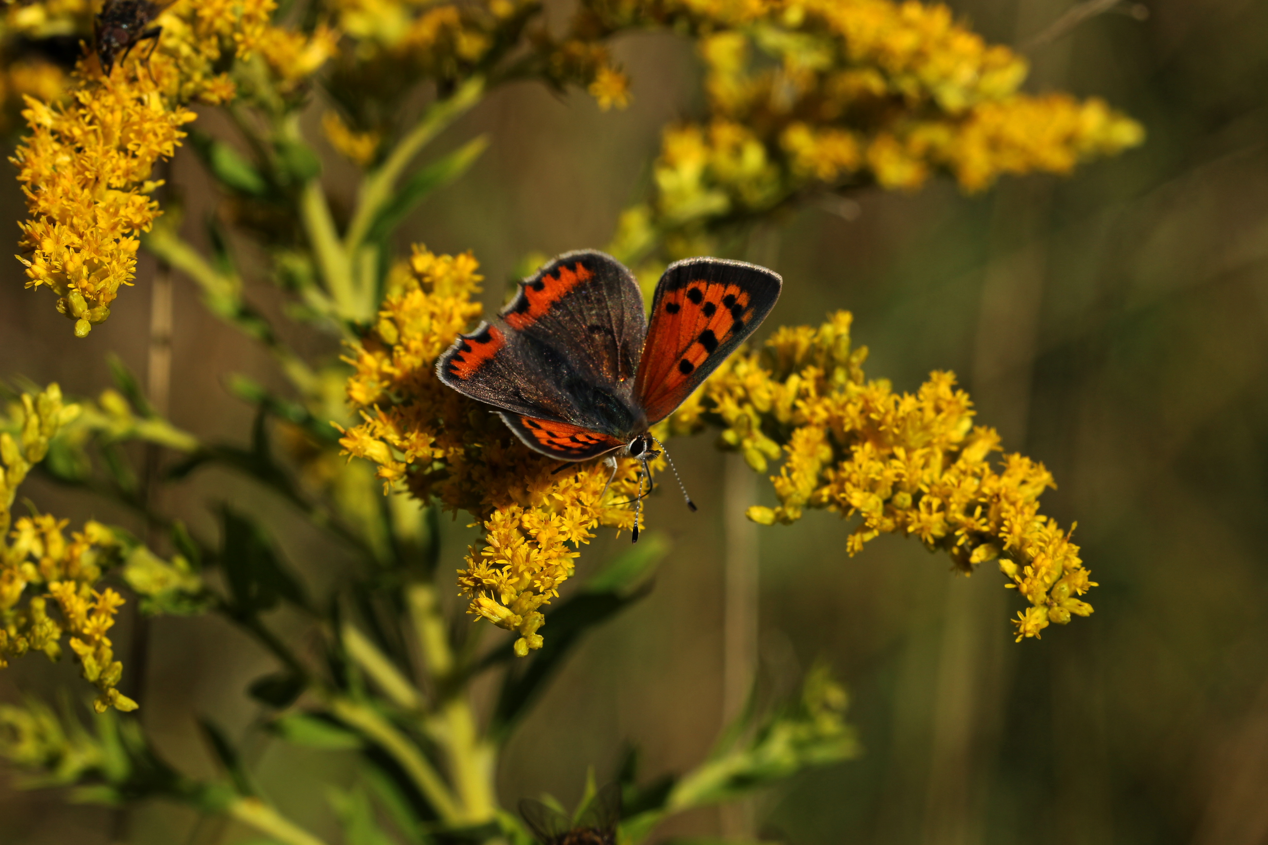 Kleiner Feuerfalter (Lycaena phlaeas (Linnaeus, 1761)), Laue, Rekultivierungsbereich der Tagebaulandschaft Goitzsche östlich vom Seelhausener See, nahe Leipzig, 16. Juni 2019