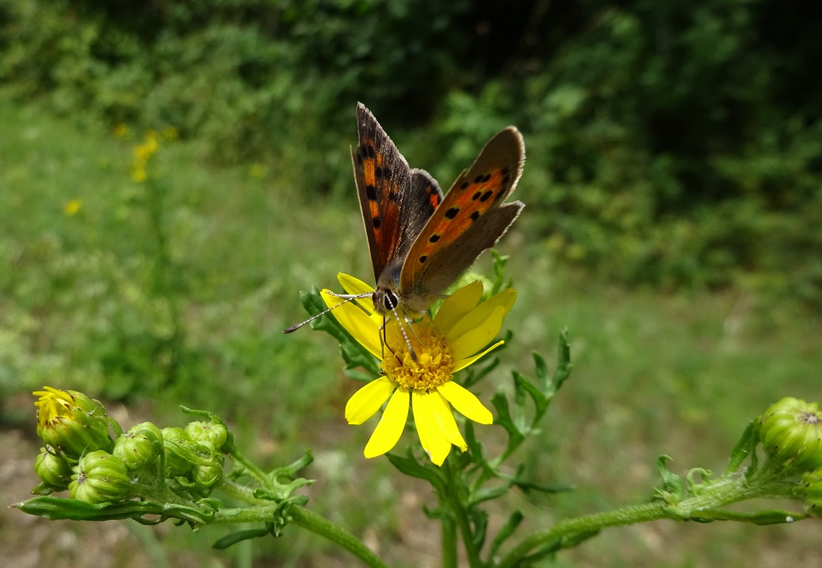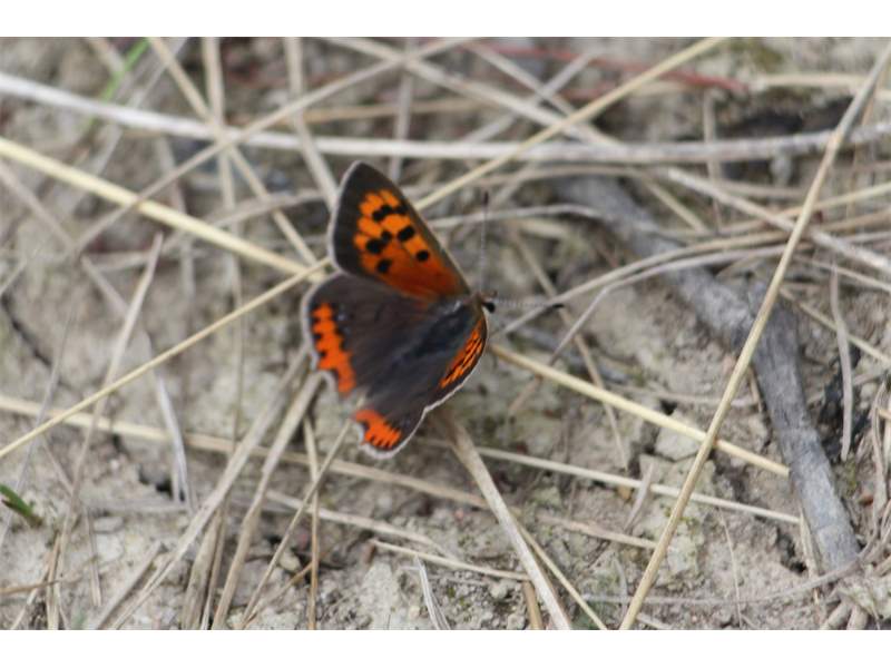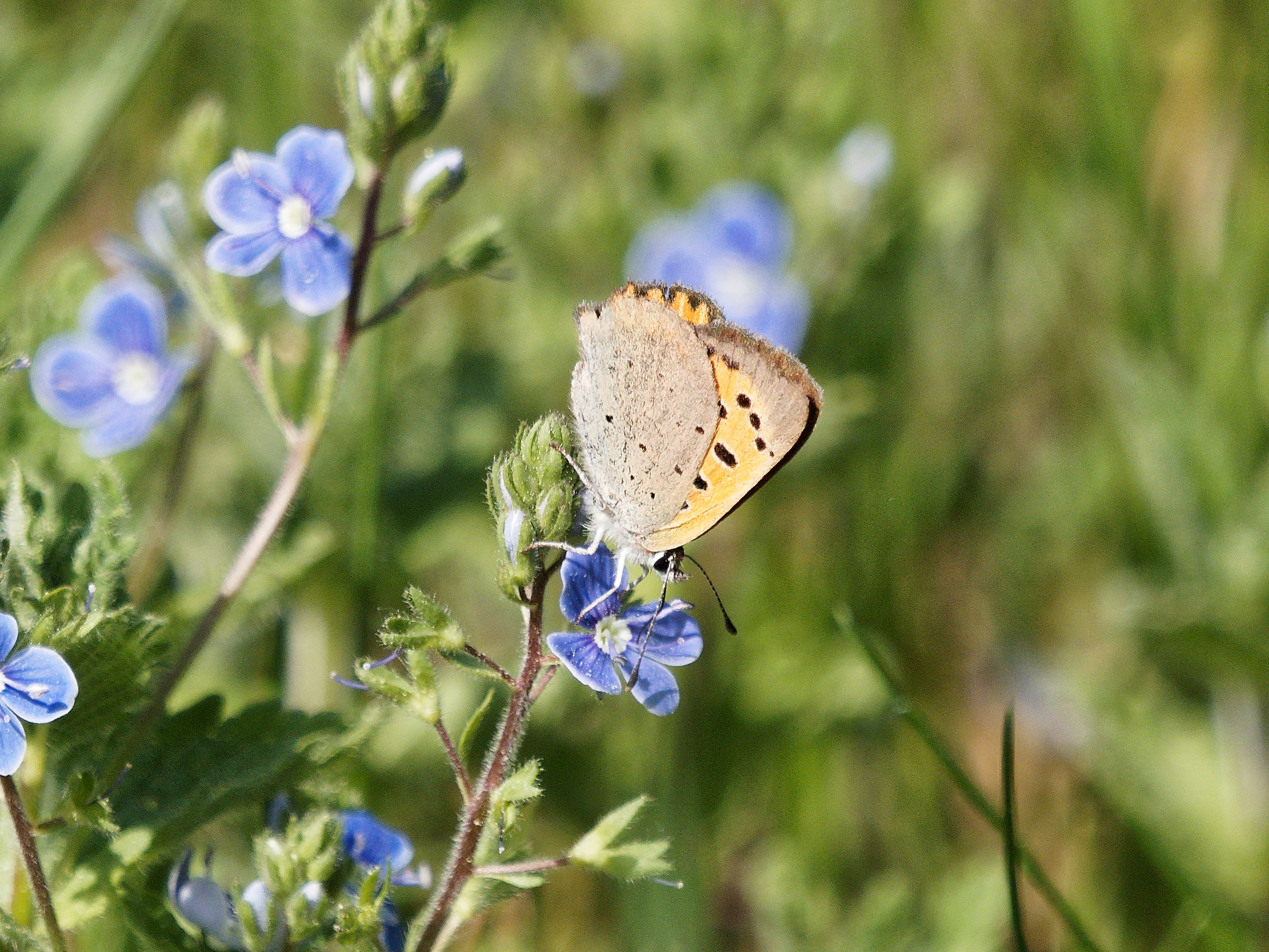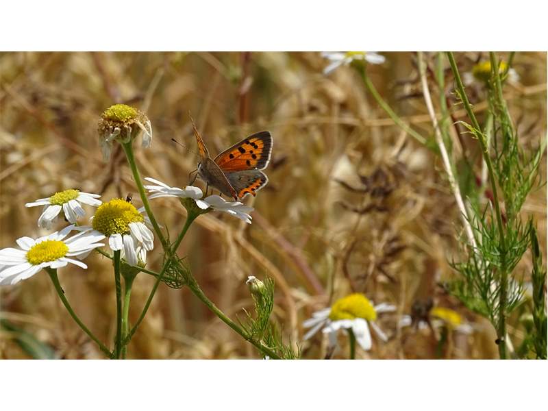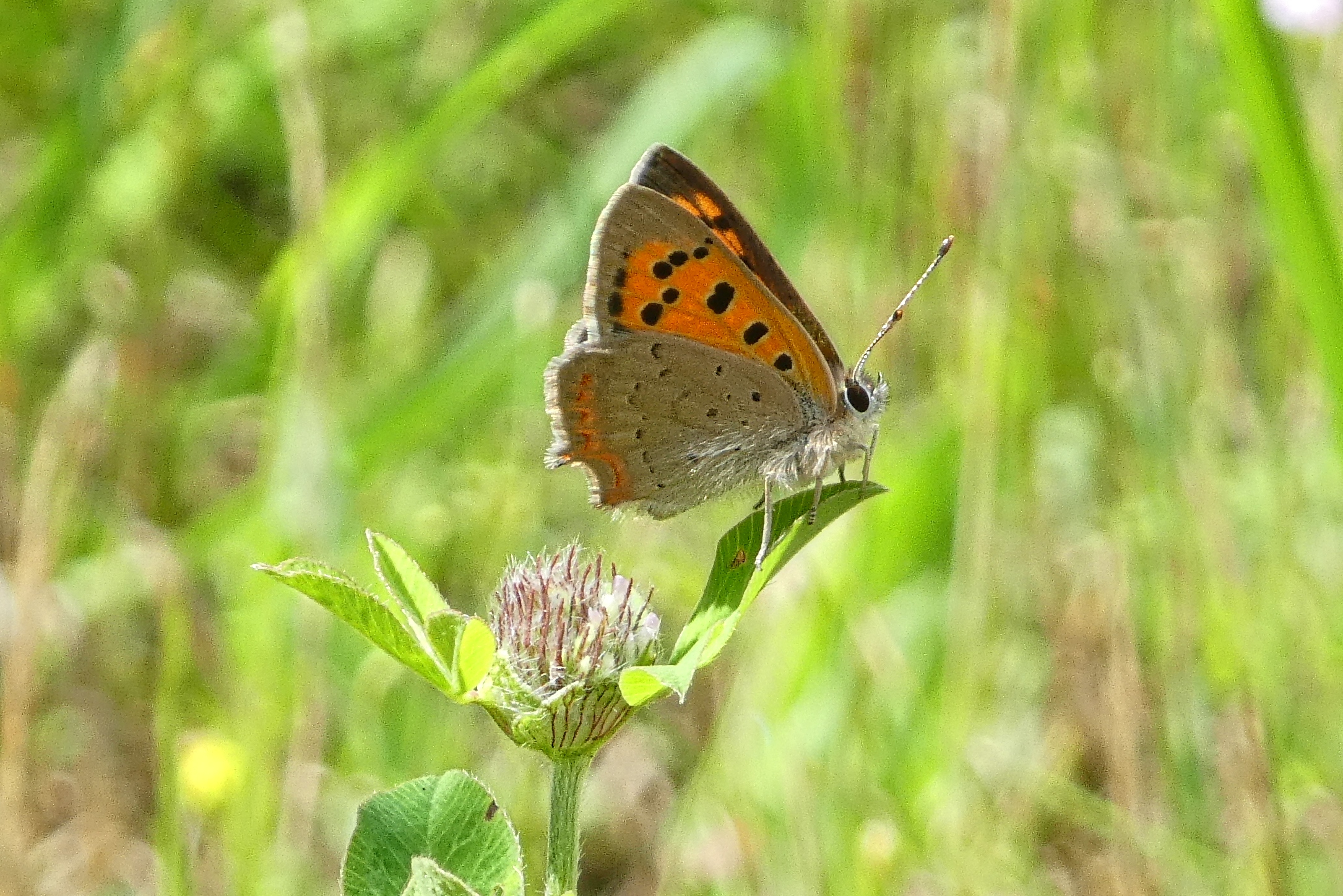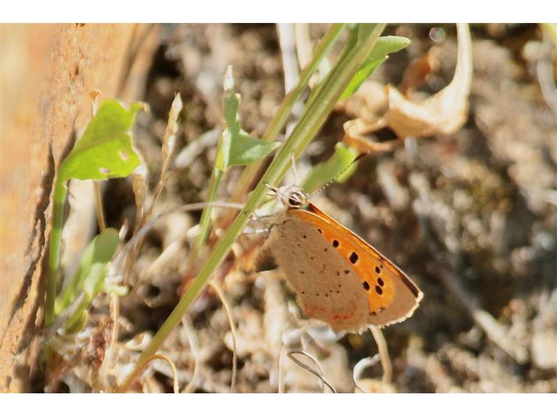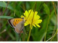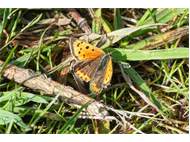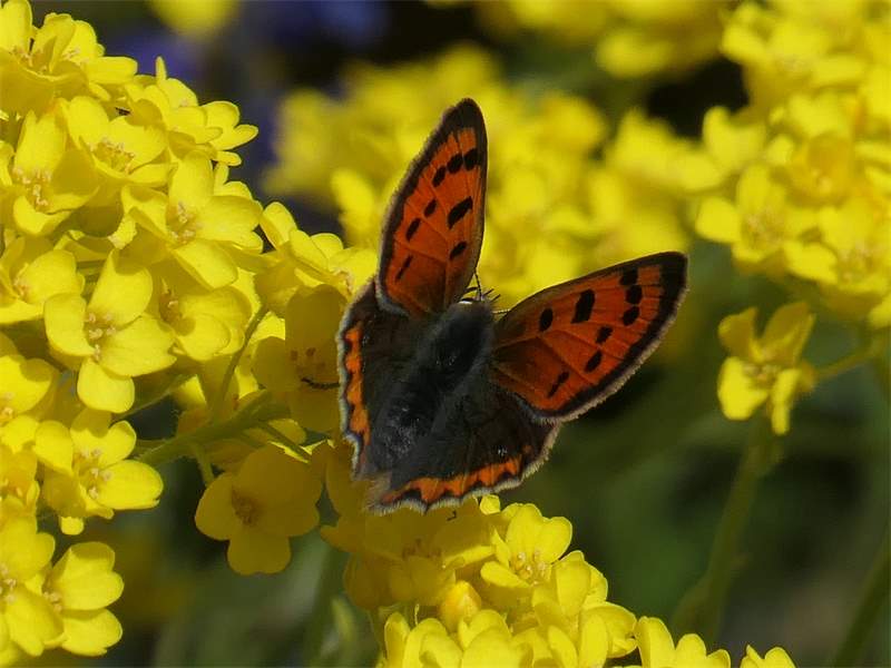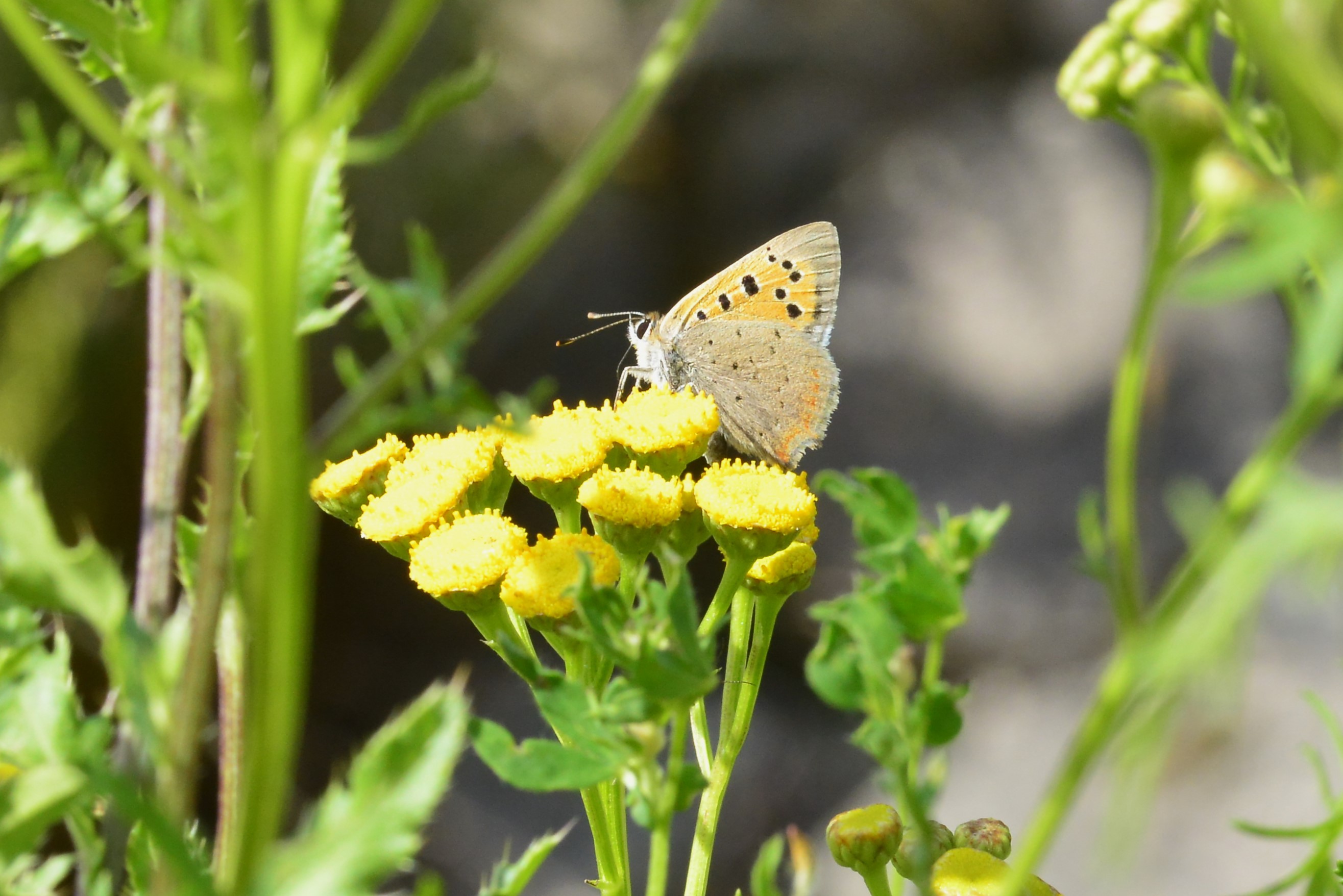 Kleiner Feuerfalter (Lycaena phlaeas (Linnaeus, 1761)), Laue, Rekultivierungsbereich der Tagebaulandschaft Goitzsche östlich vom Seelhausener See, nahe Leipzig, 16. Juni 2019