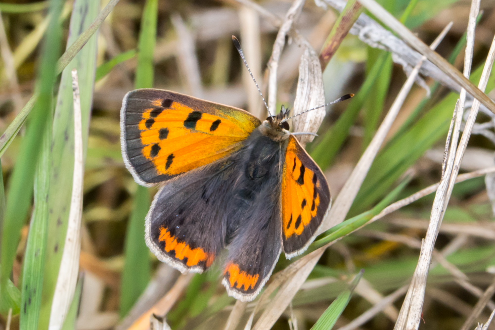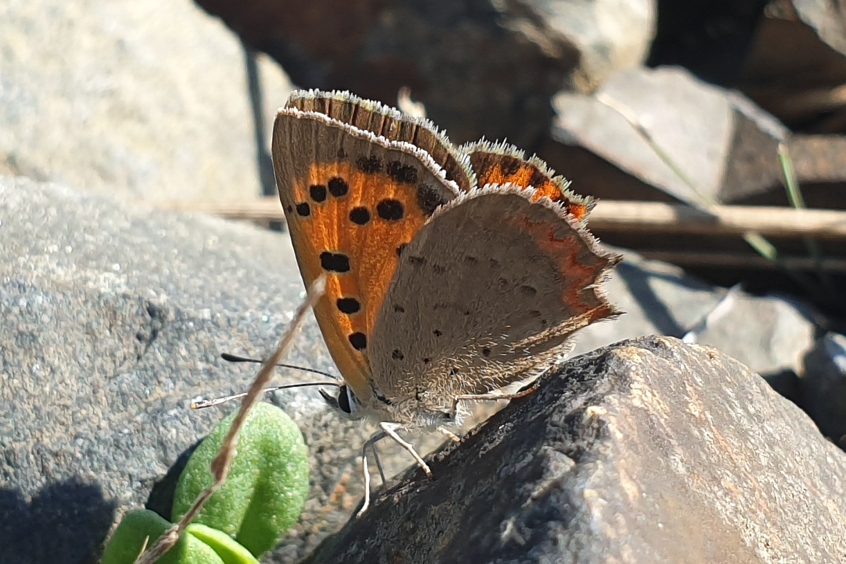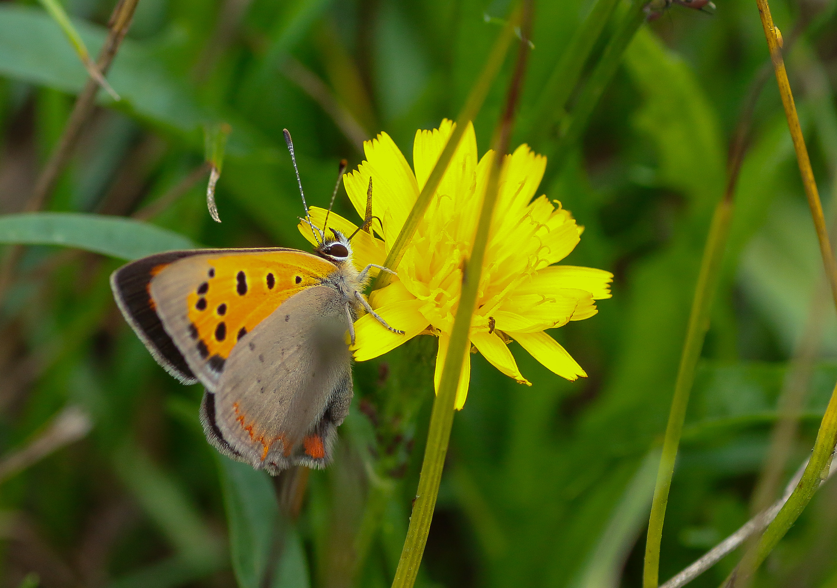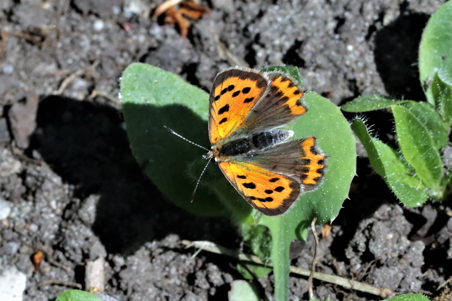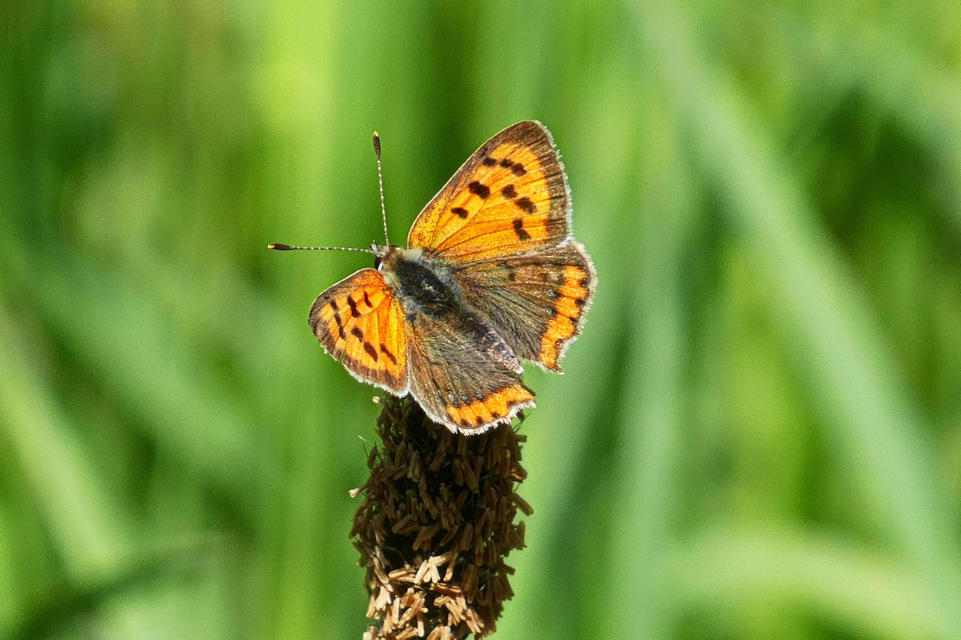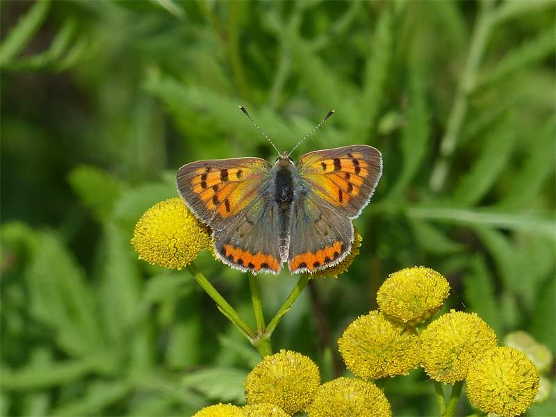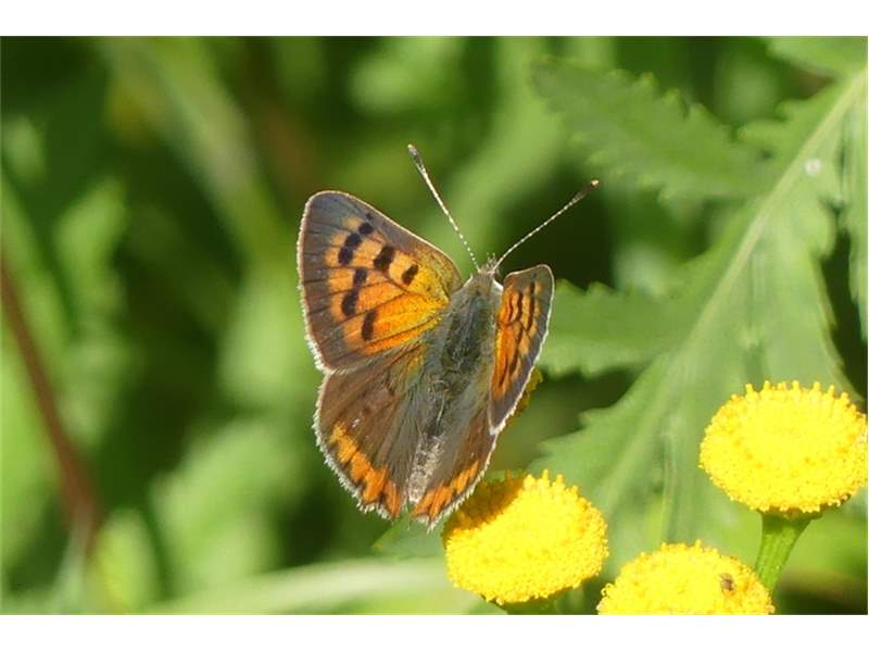 Kleiner Feuerfalter (Lycaena phlaeas (Linnaeus, 1761)), Laue, Rekultivierungsbereich der Tagebaulandschaft Goitzsche östlich vom Seelhausener See, nahe Leipzig, 16. Juni 2019