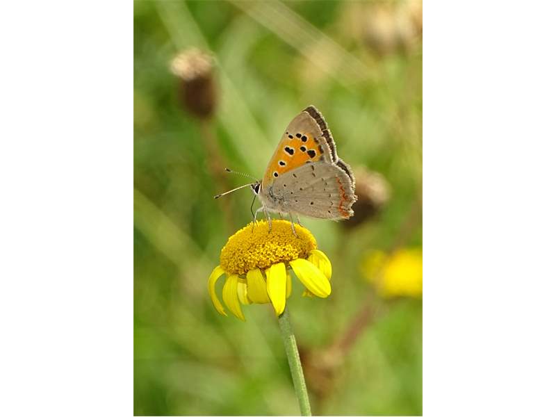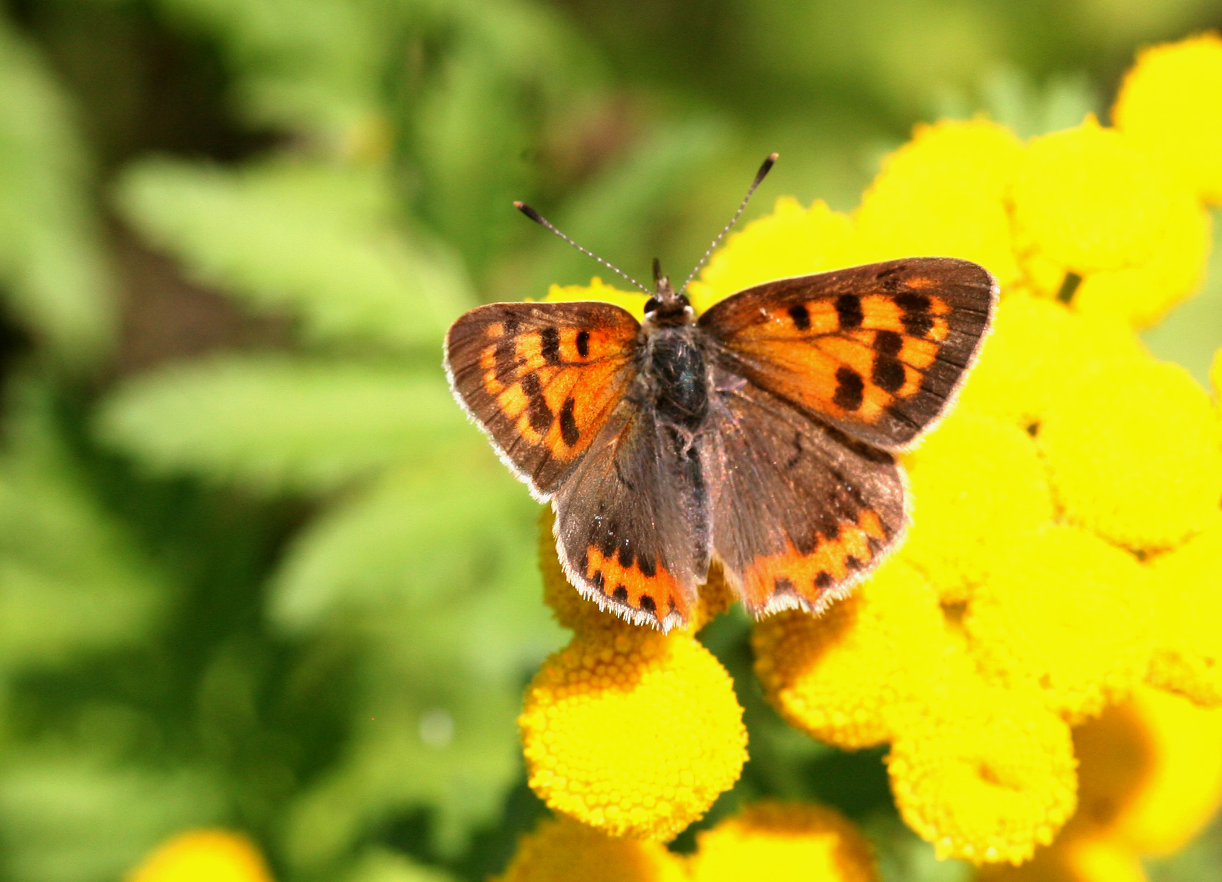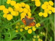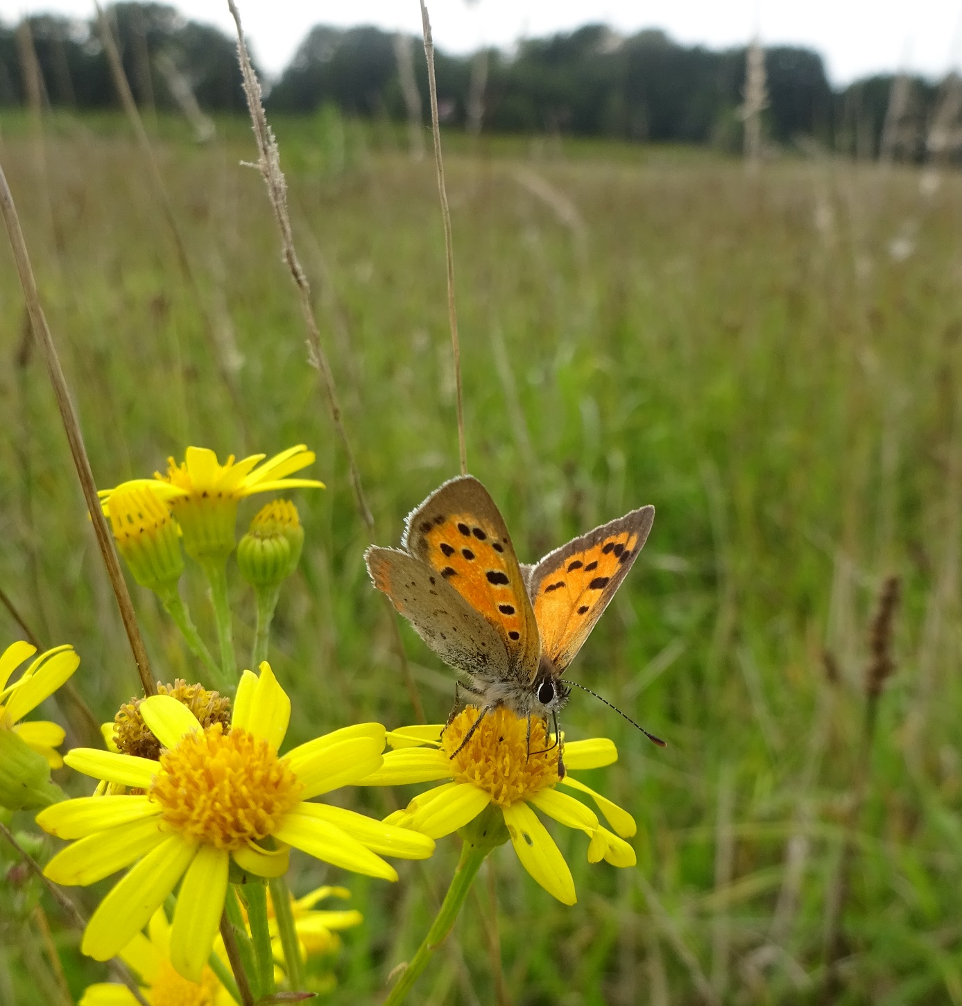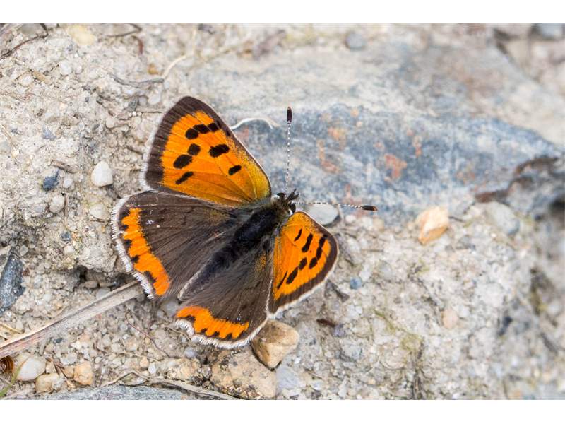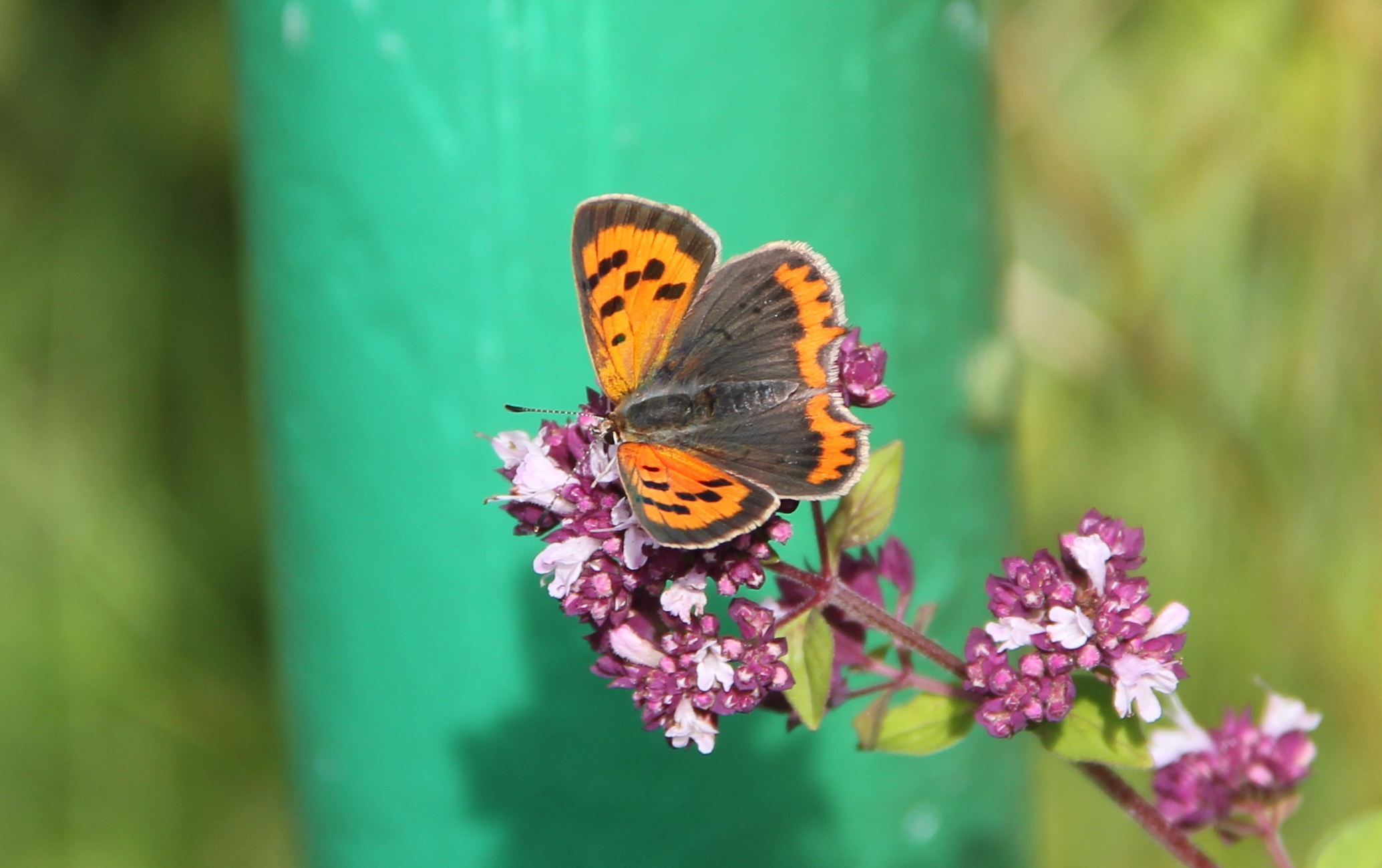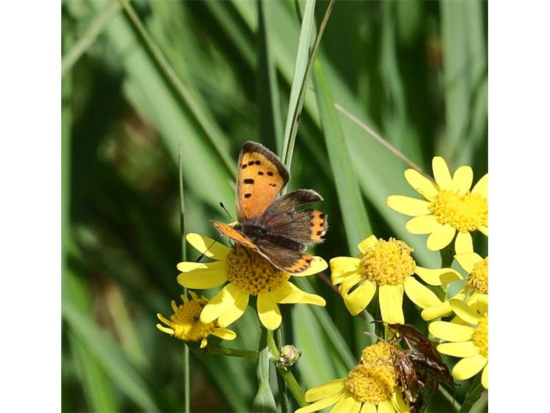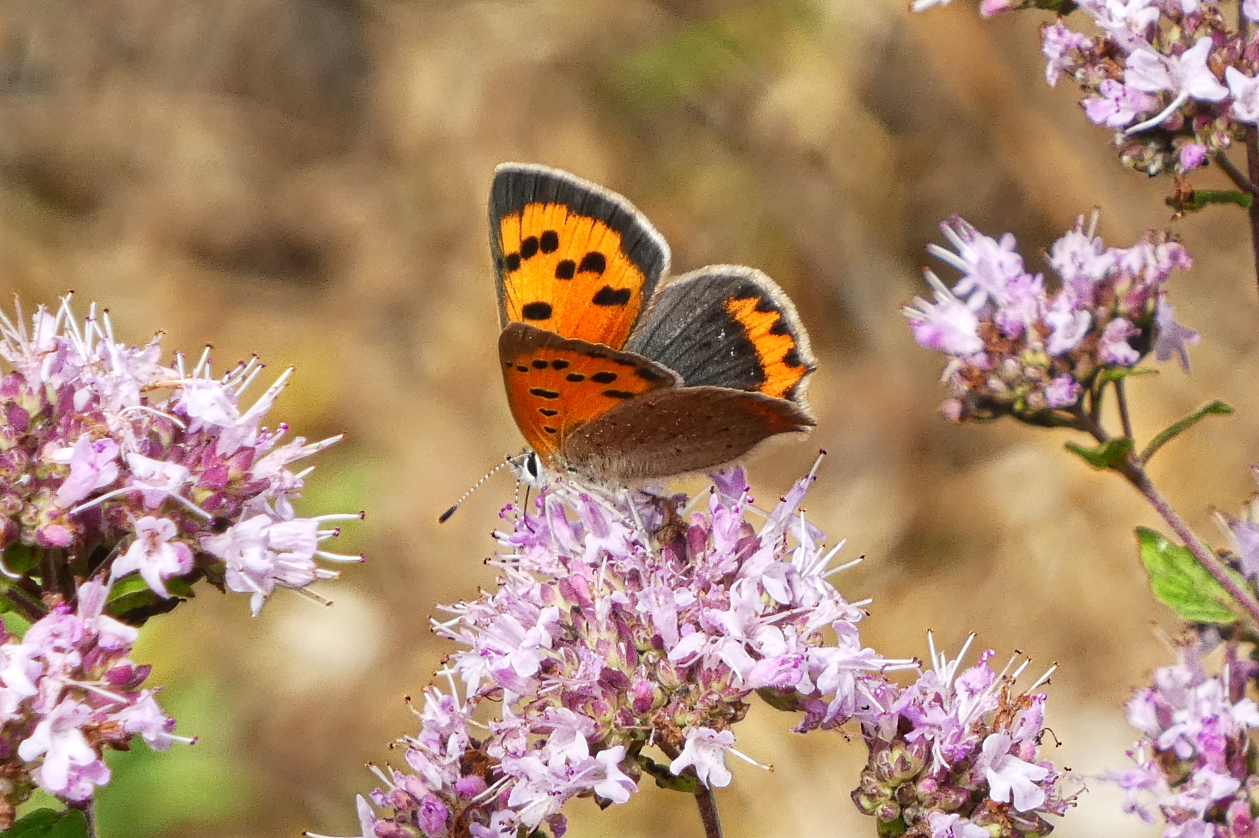 Kleiner Feuerfalter (Lycaena phlaeas (Linnaeus, 1761)), Laue, Rekultivierungsbereich der Tagebaulandschaft Goitzsche östlich vom Seelhausener See, nahe Leipzig, 16. Juni 2019