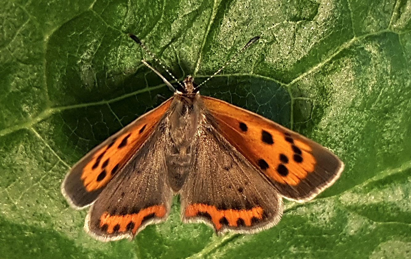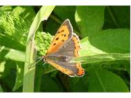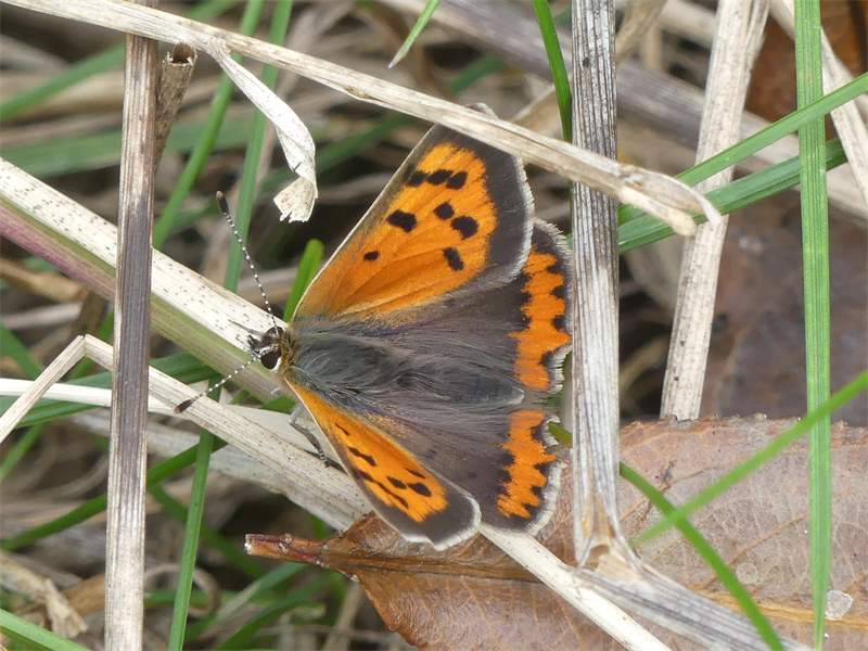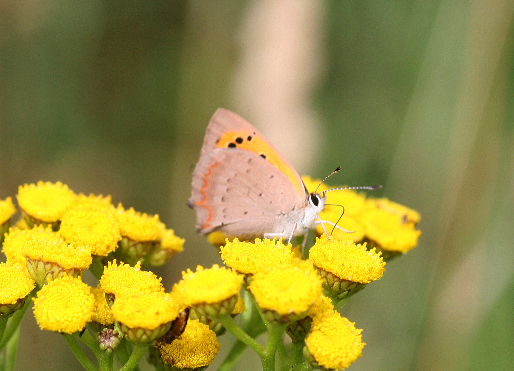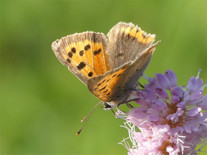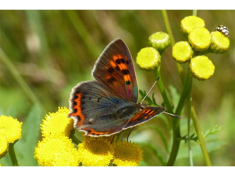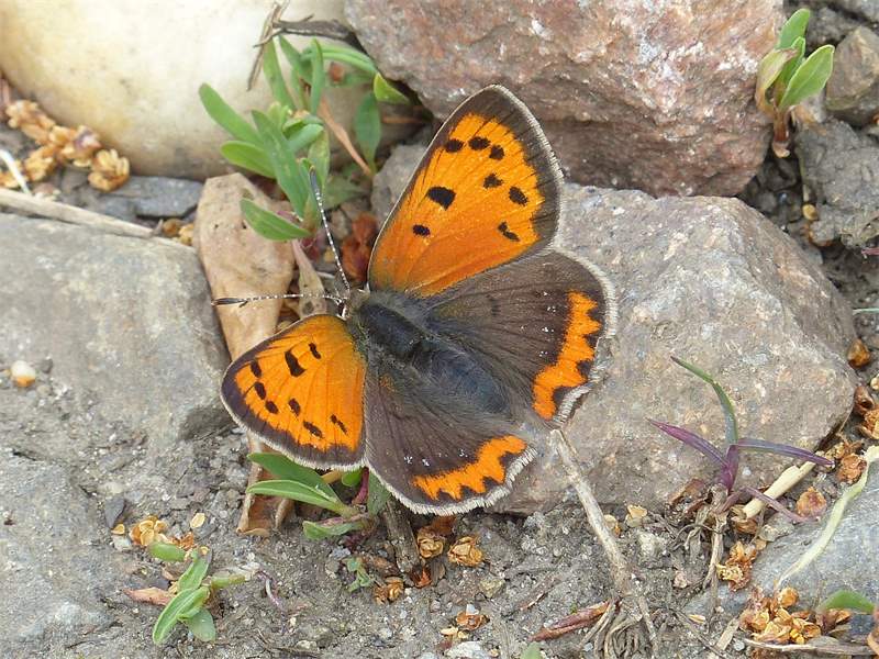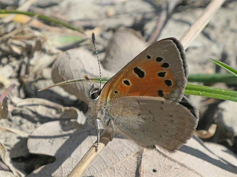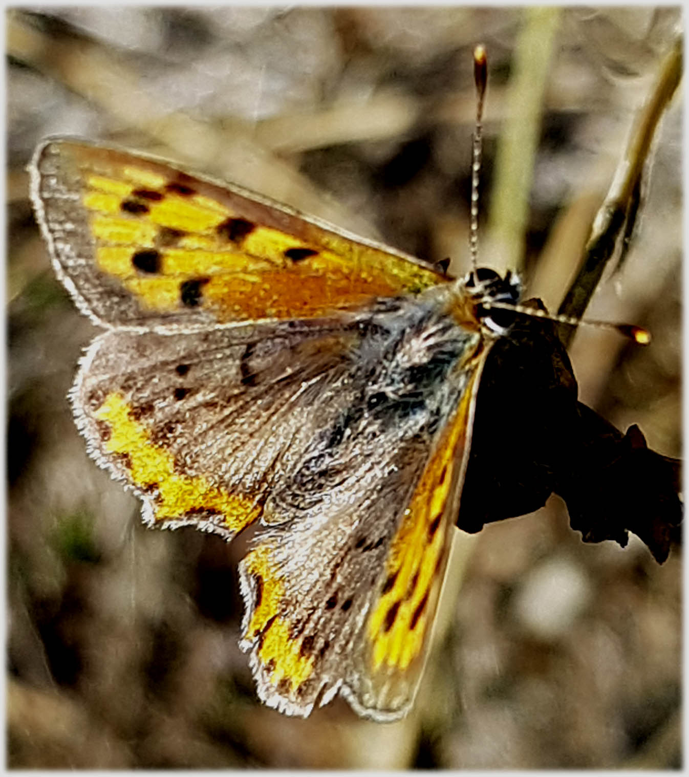 Kleiner Feuerfalter (Lycaena phlaeas (Linnaeus, 1761)), Laue, Rekultivierungsbereich der Tagebaulandschaft Goitzsche östlich vom Seelhausener See, nahe Leipzig, 16. Juni 2019
