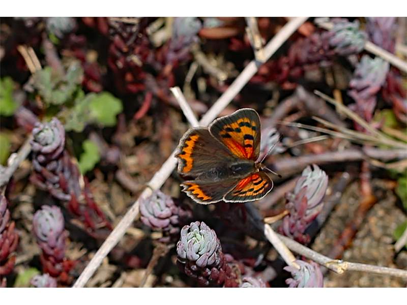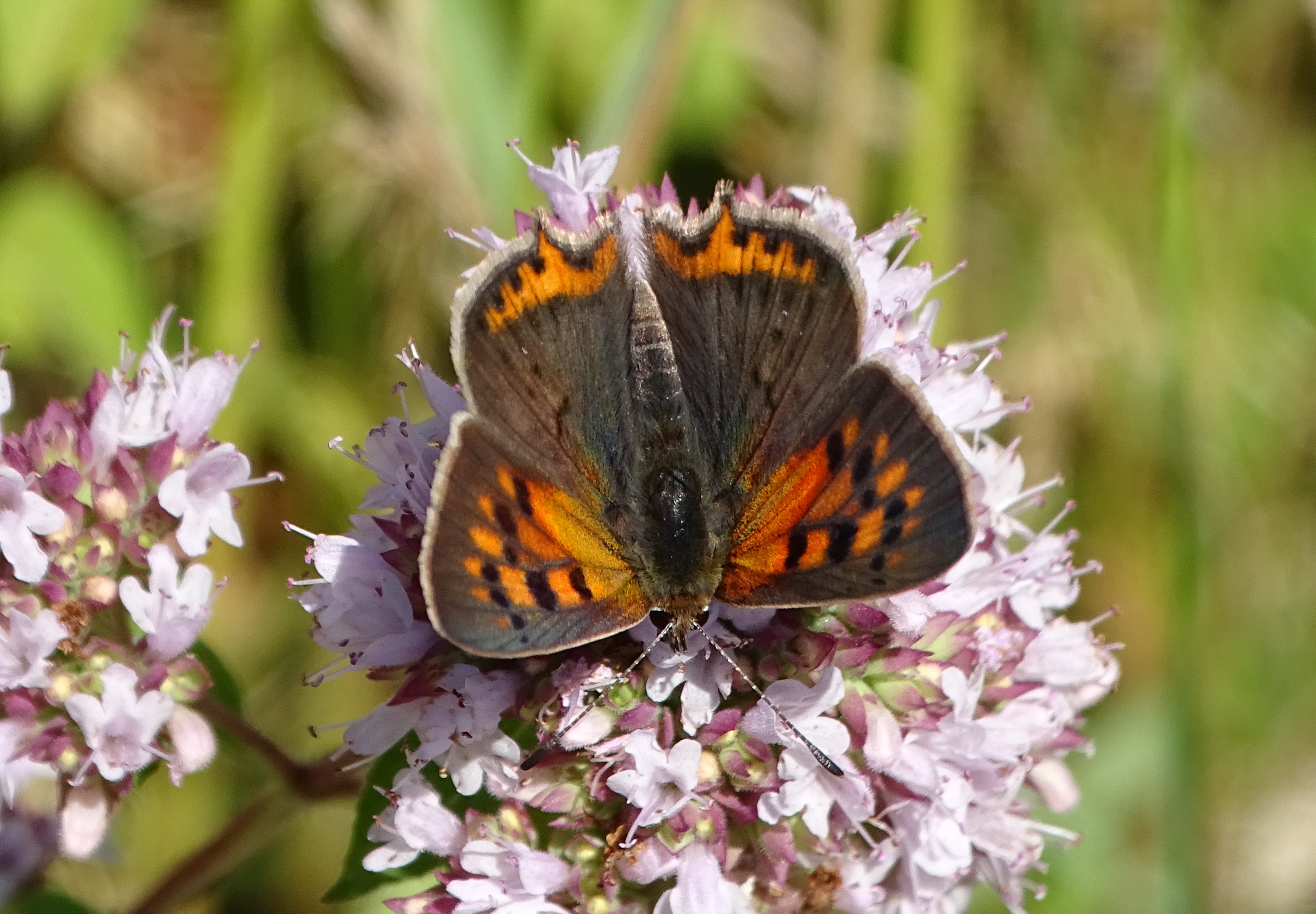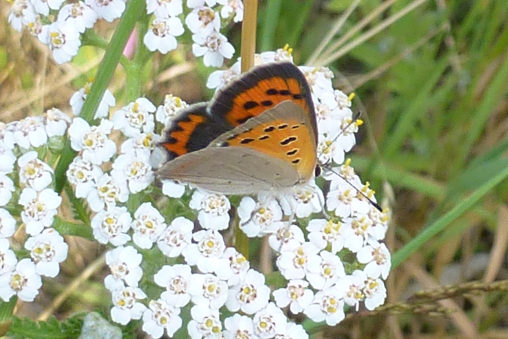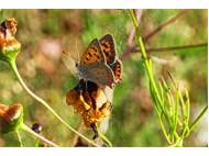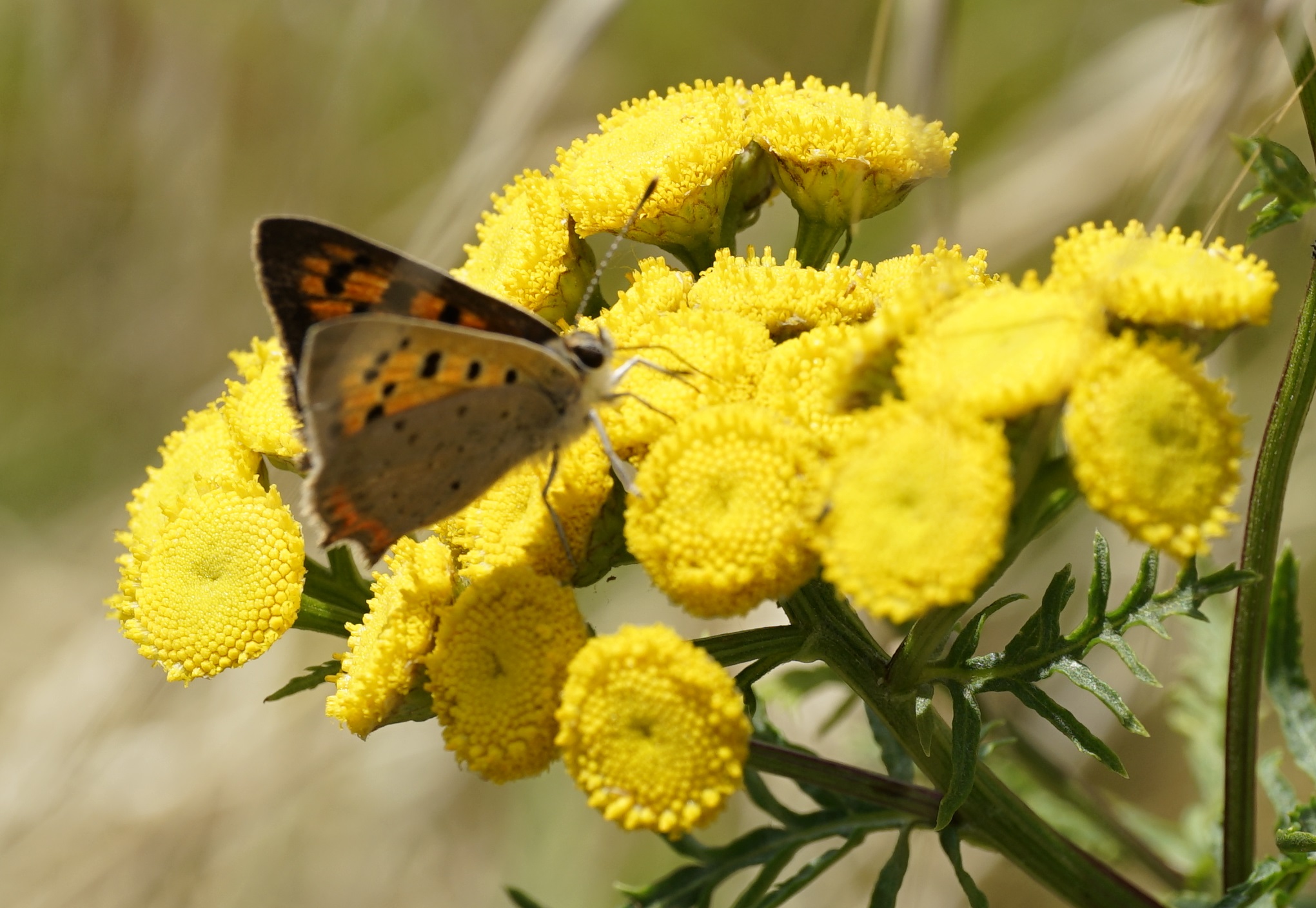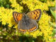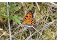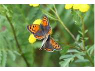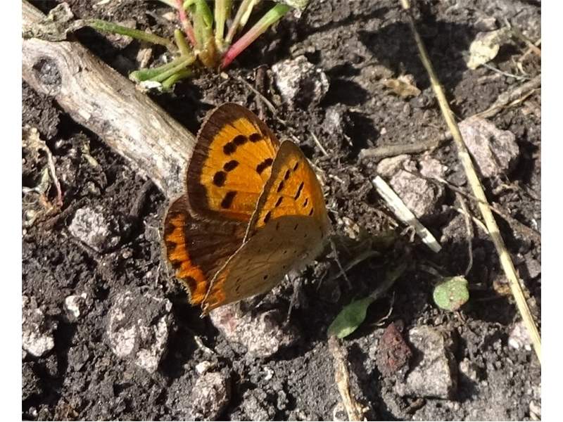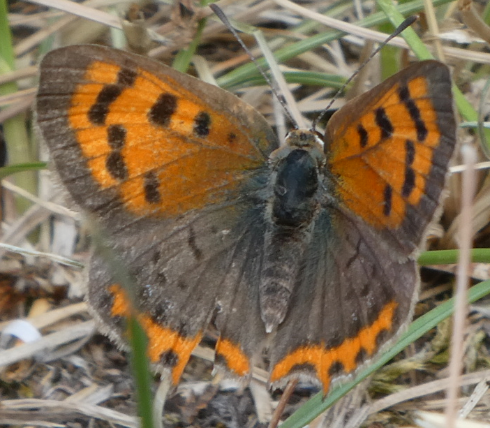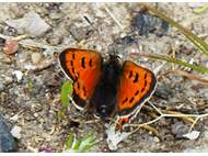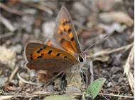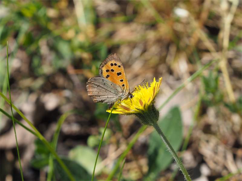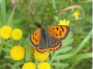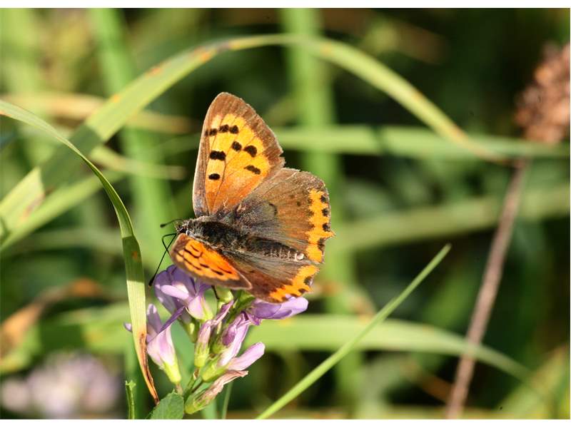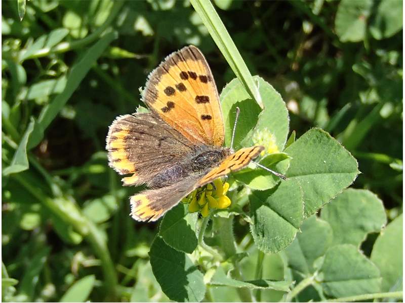 Kleiner Feuerfalter (Lycaena phlaeas (Linnaeus, 1761)), Laue, Rekultivierungsbereich der Tagebaulandschaft Goitzsche östlich vom Seelhausener See, nahe Leipzig, 16. Juni 2019