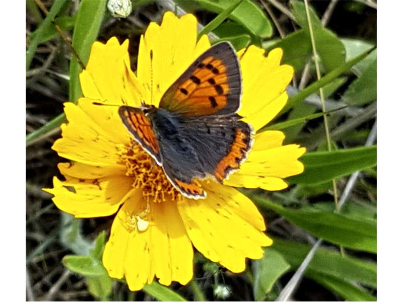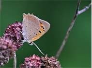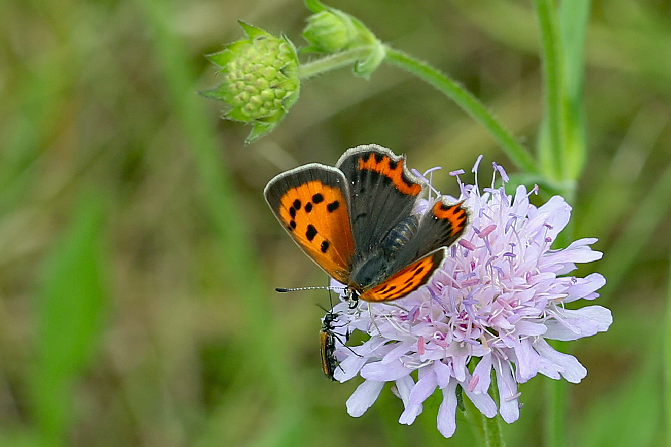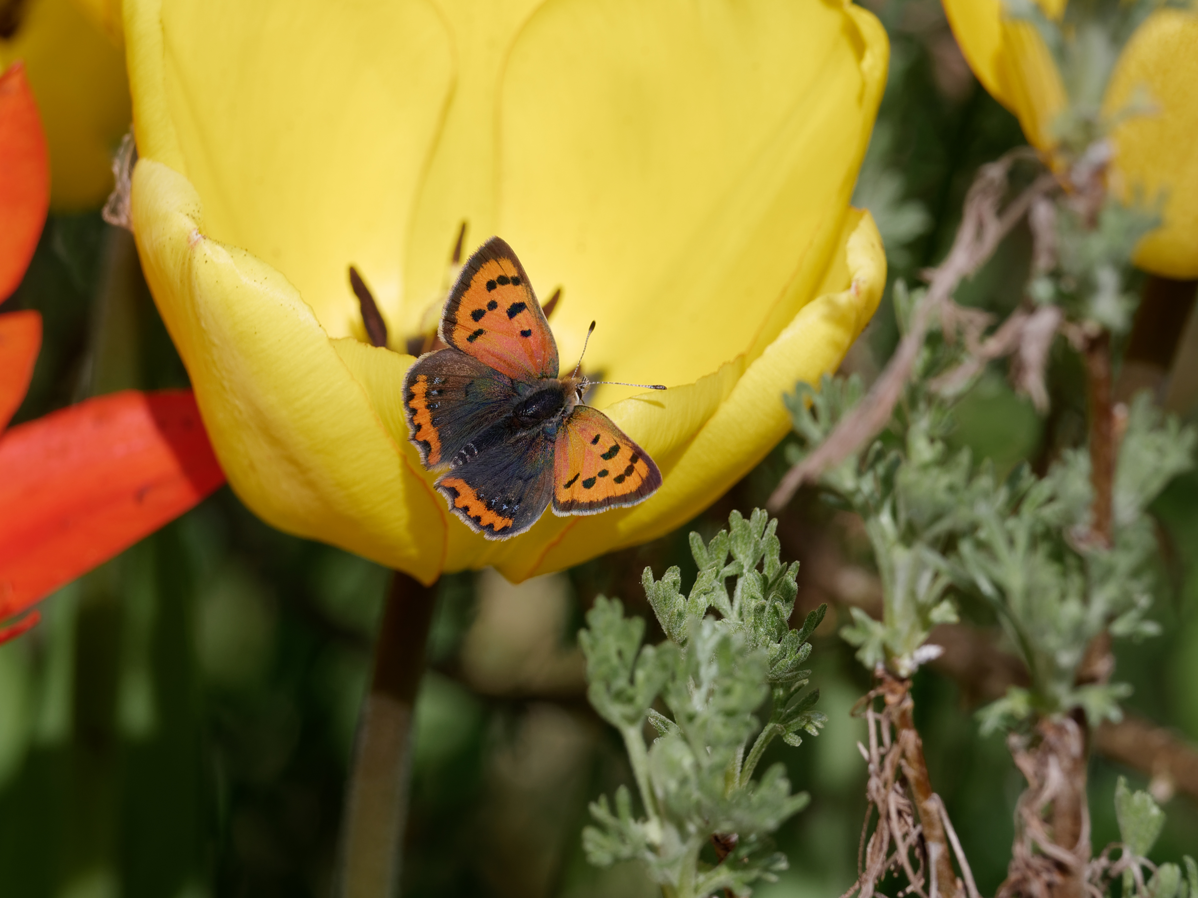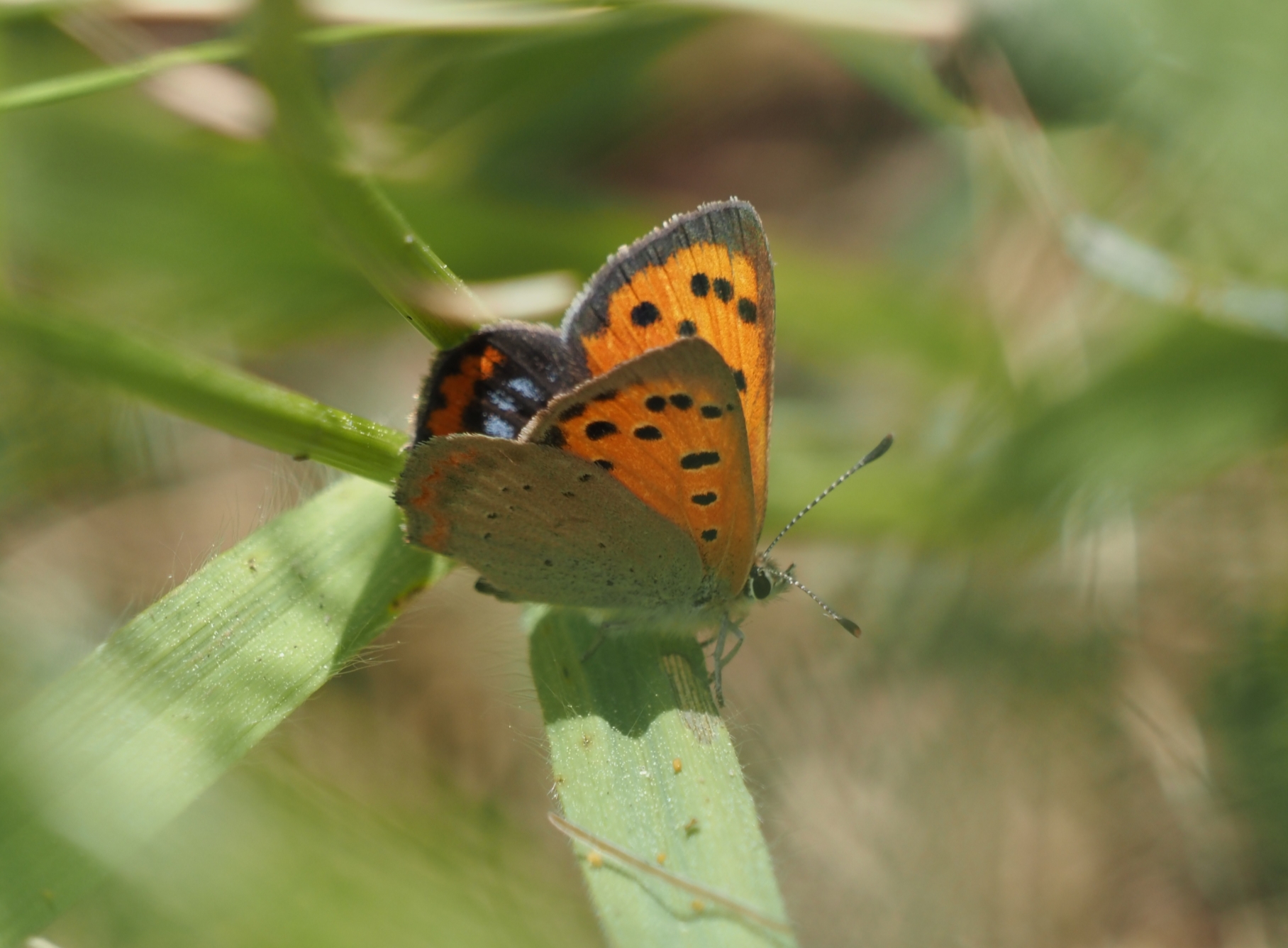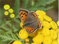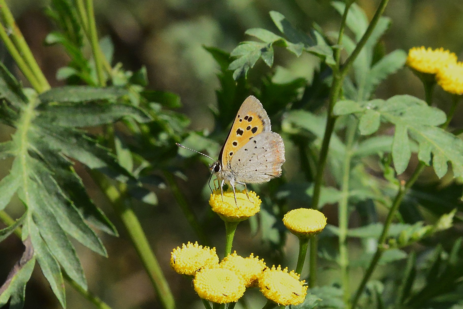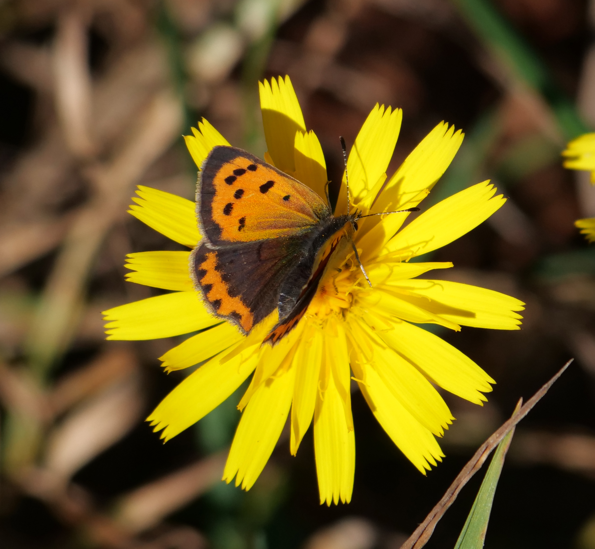 Kleiner Feuerfalter (Lycaena phlaeas (Linnaeus, 1761)), Laue, Rekultivierungsbereich der Tagebaulandschaft Goitzsche östlich vom Seelhausener See, nahe Leipzig, 16. Juni 2019