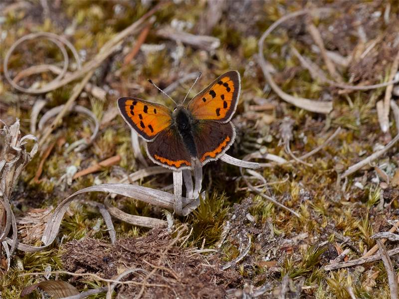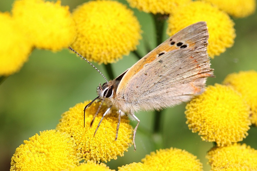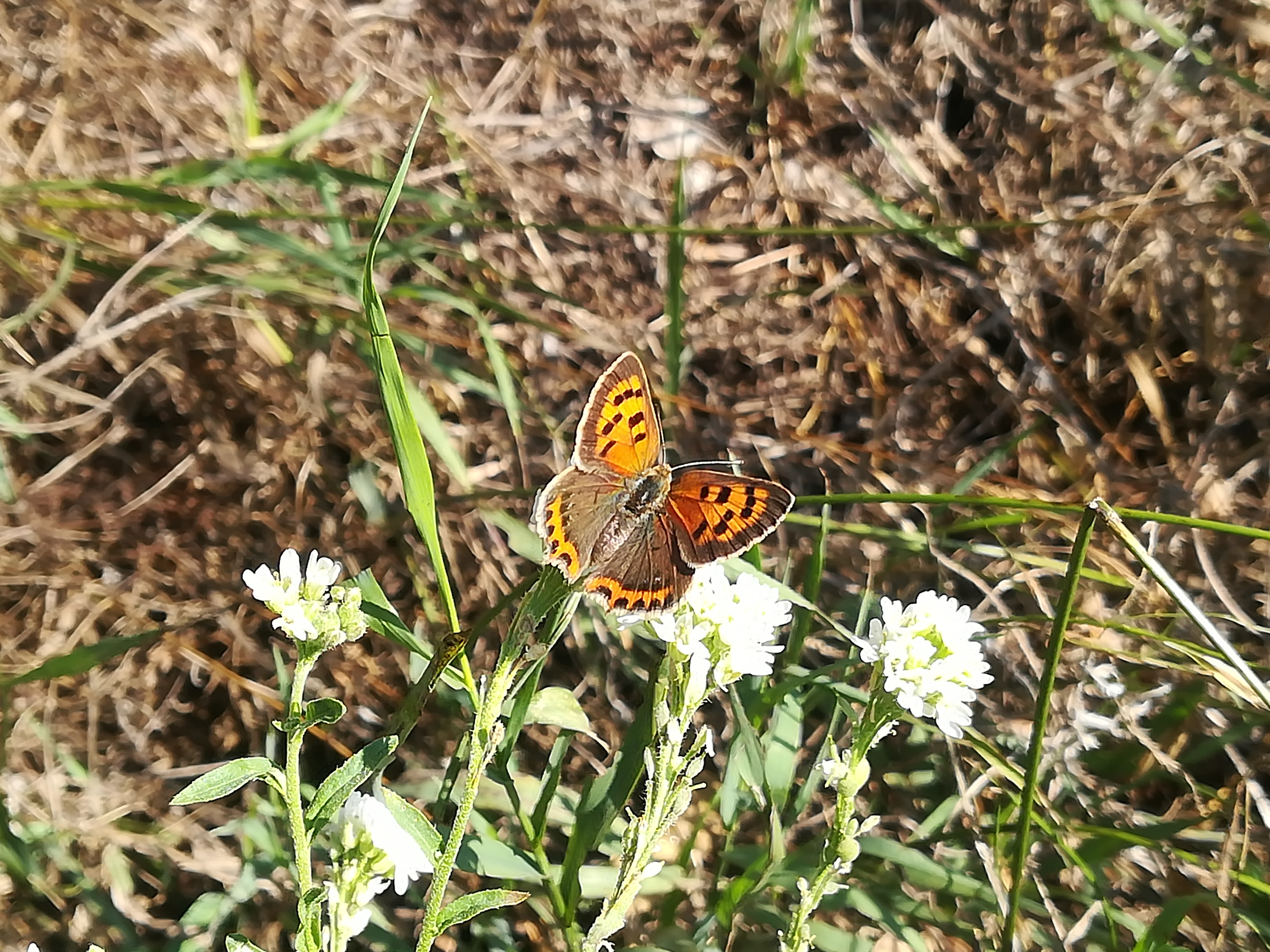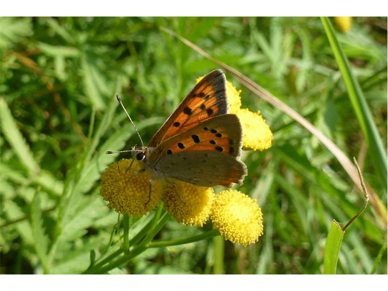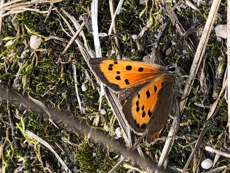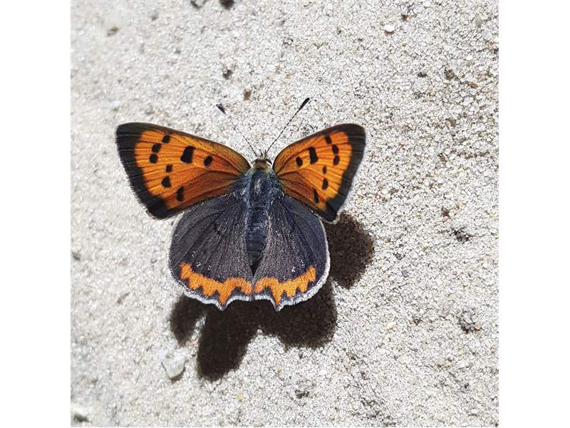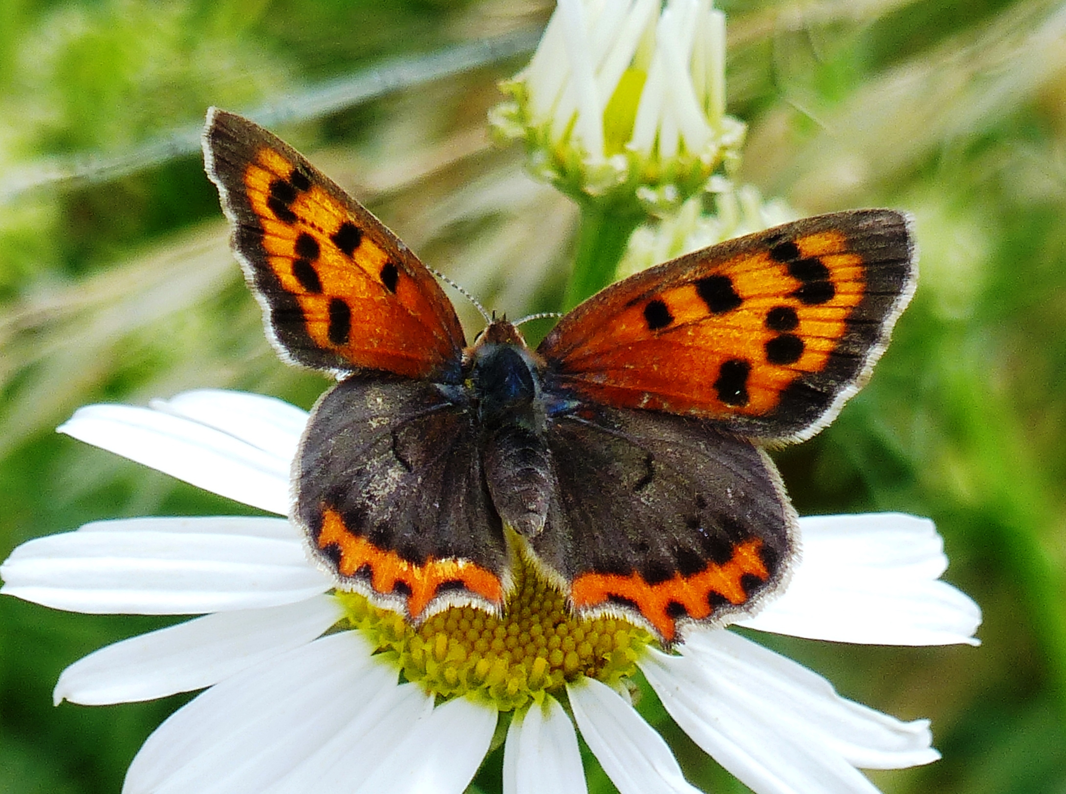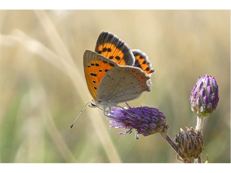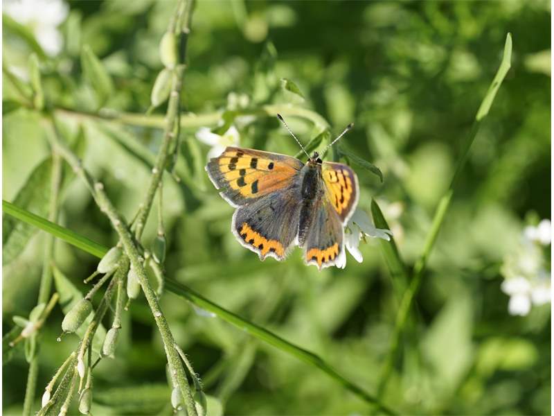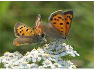 Kleiner Feuerfalter (Lycaena phlaeas (Linnaeus, 1761)), Laue, Rekultivierungsbereich der Tagebaulandschaft Goitzsche östlich vom Seelhausener See, nahe Leipzig, 16. Juni 2019