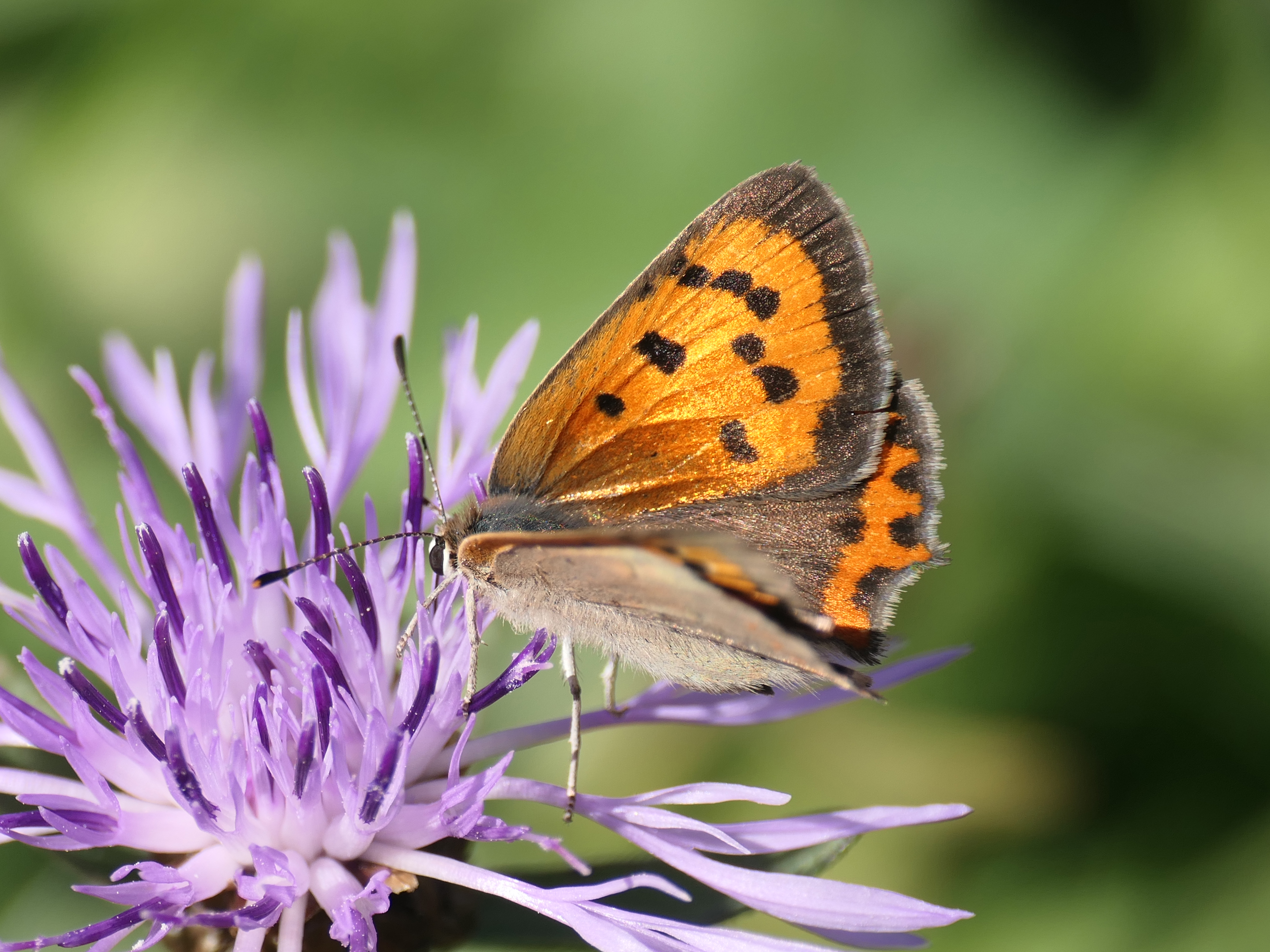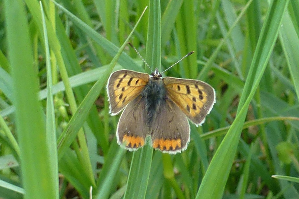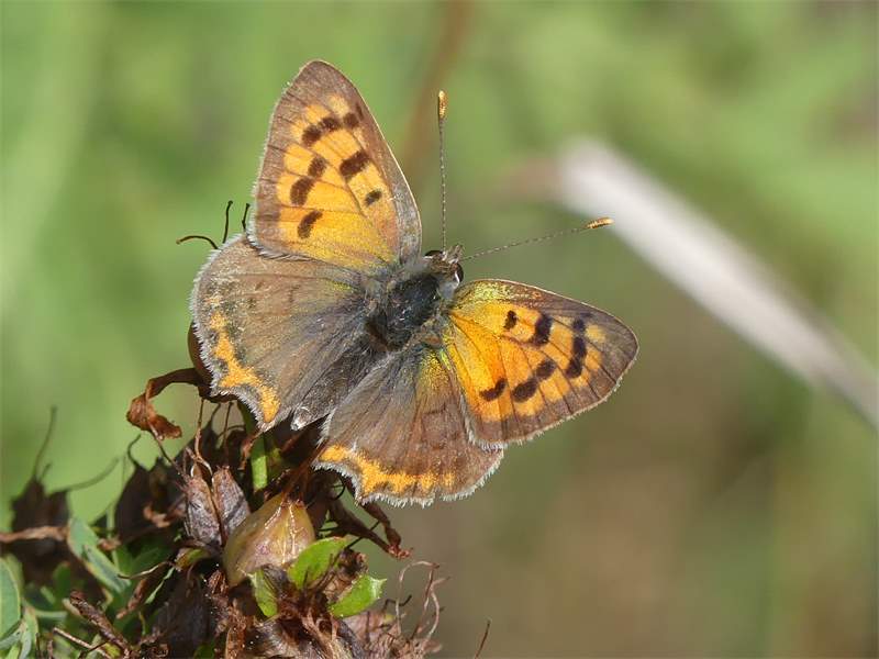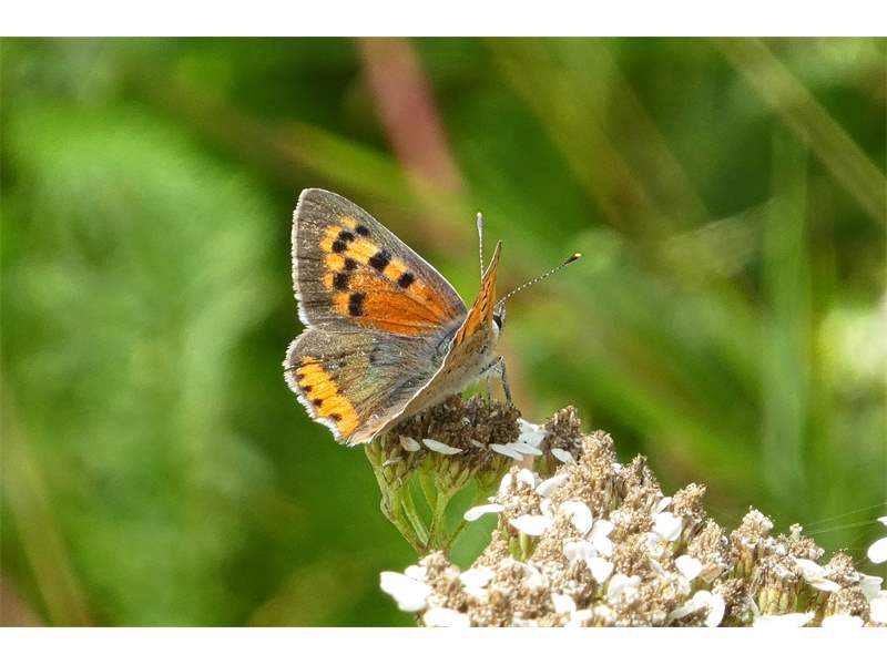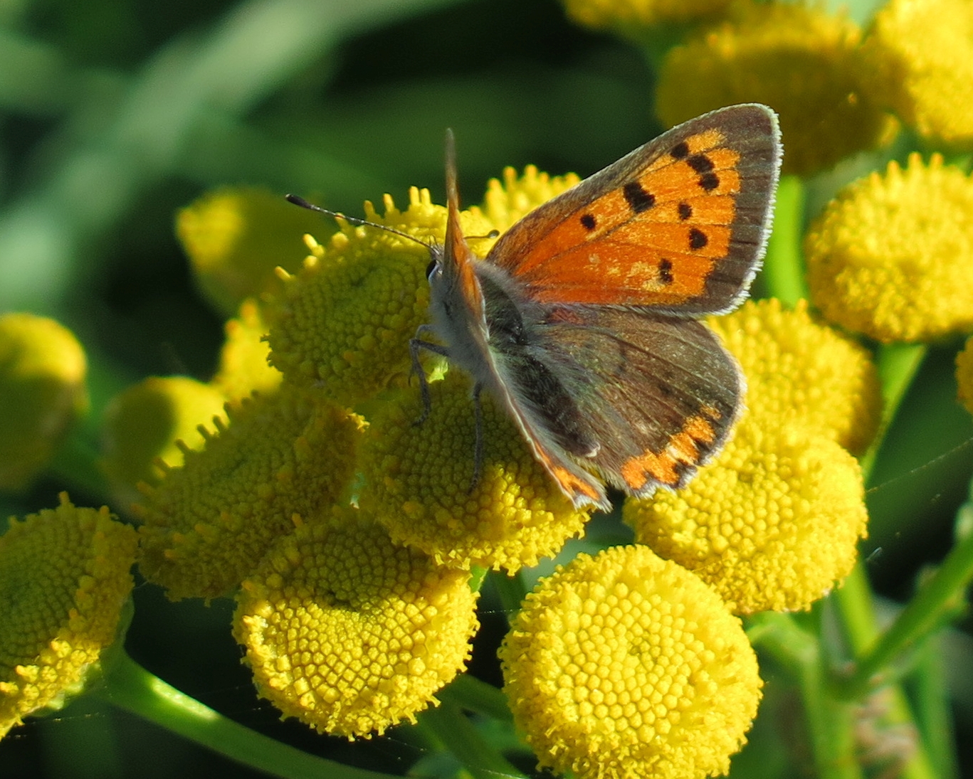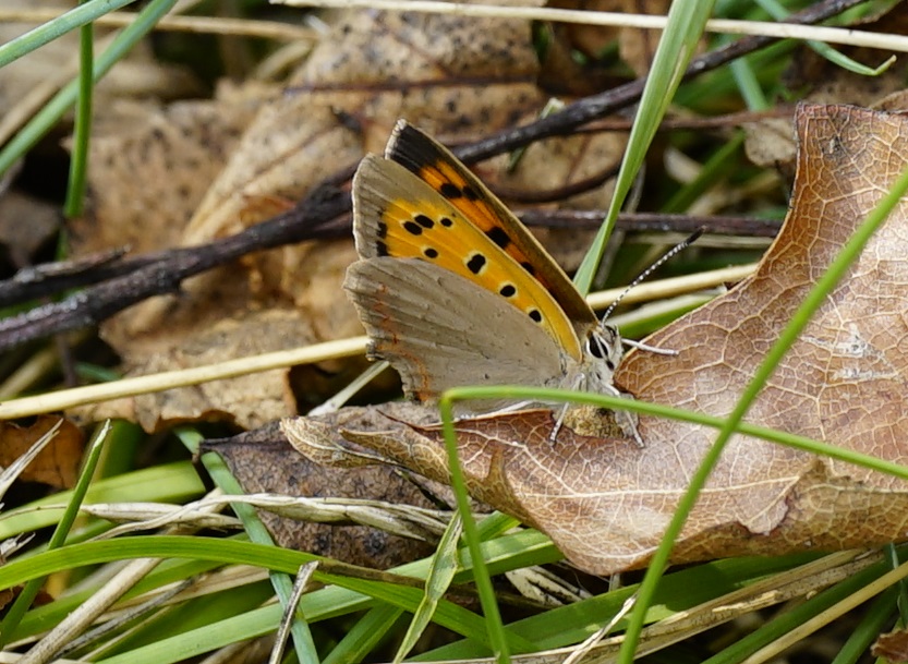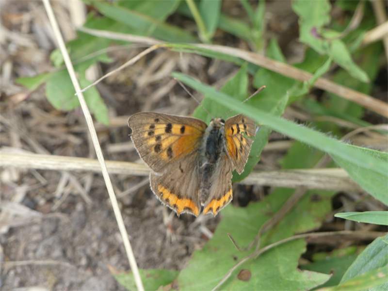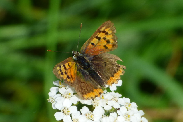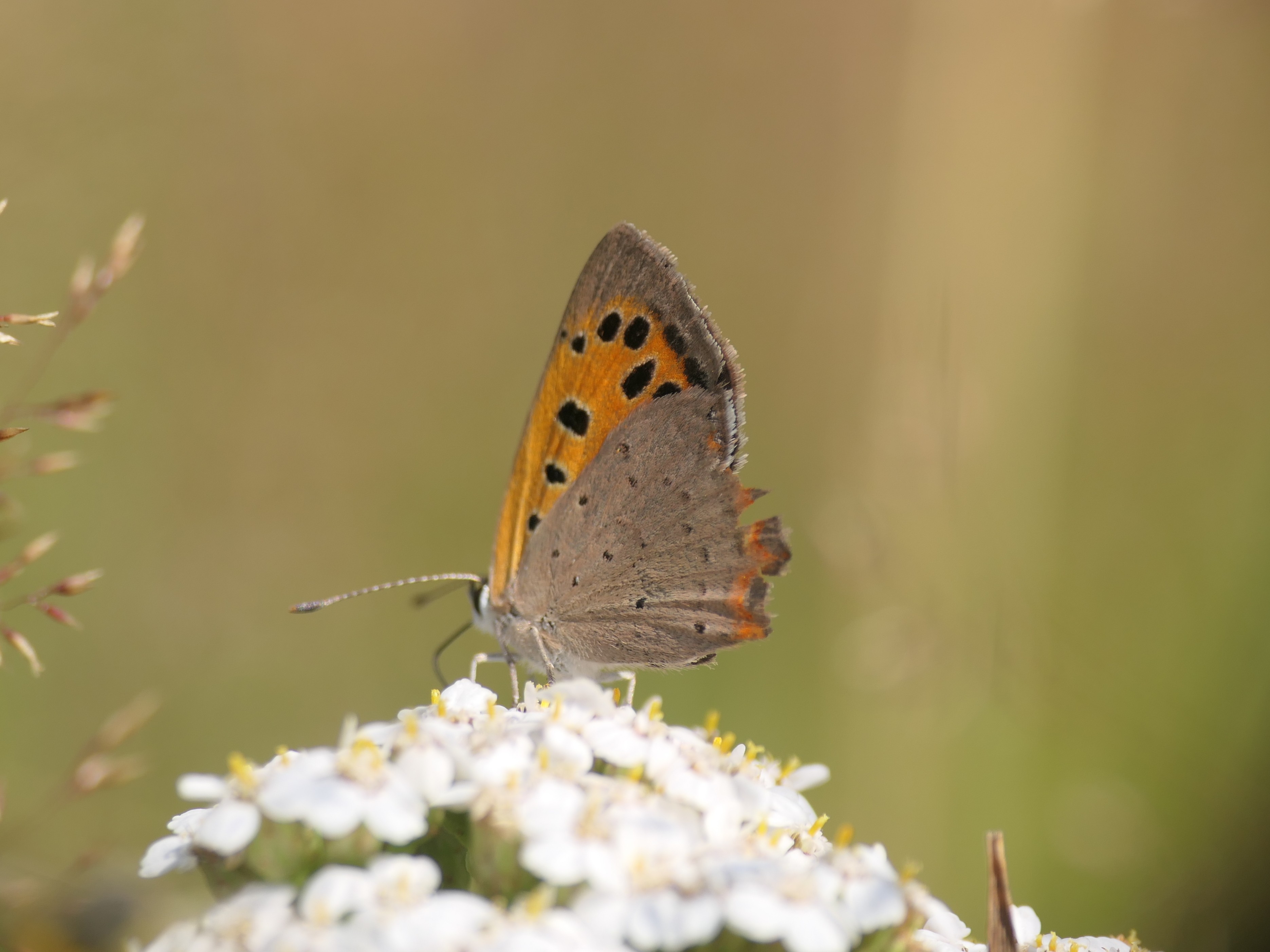 Kleiner Feuerfalter (Lycaena phlaeas (Linnaeus, 1761)), Laue, Rekultivierungsbereich der Tagebaulandschaft Goitzsche östlich vom Seelhausener See, nahe Leipzig, 16. Juni 2019