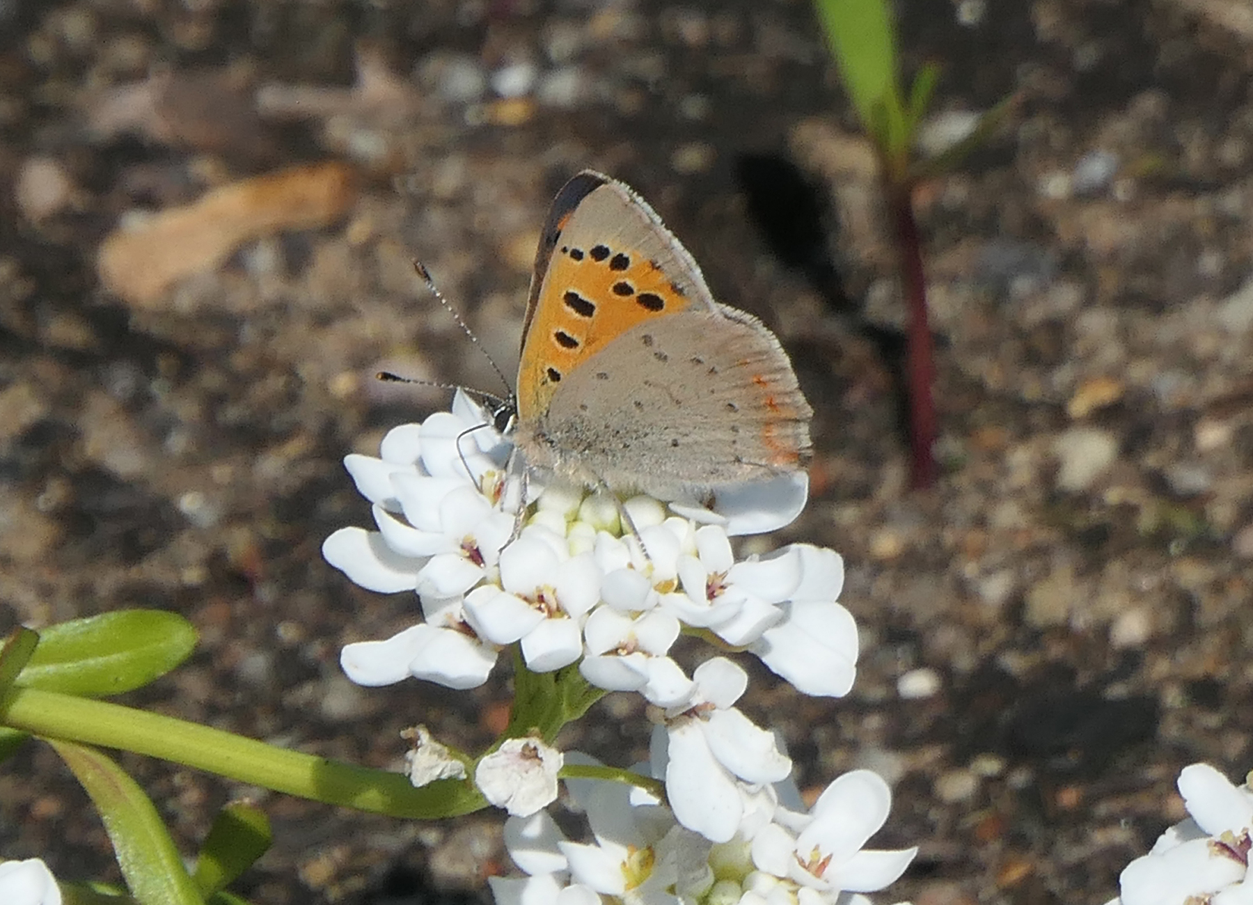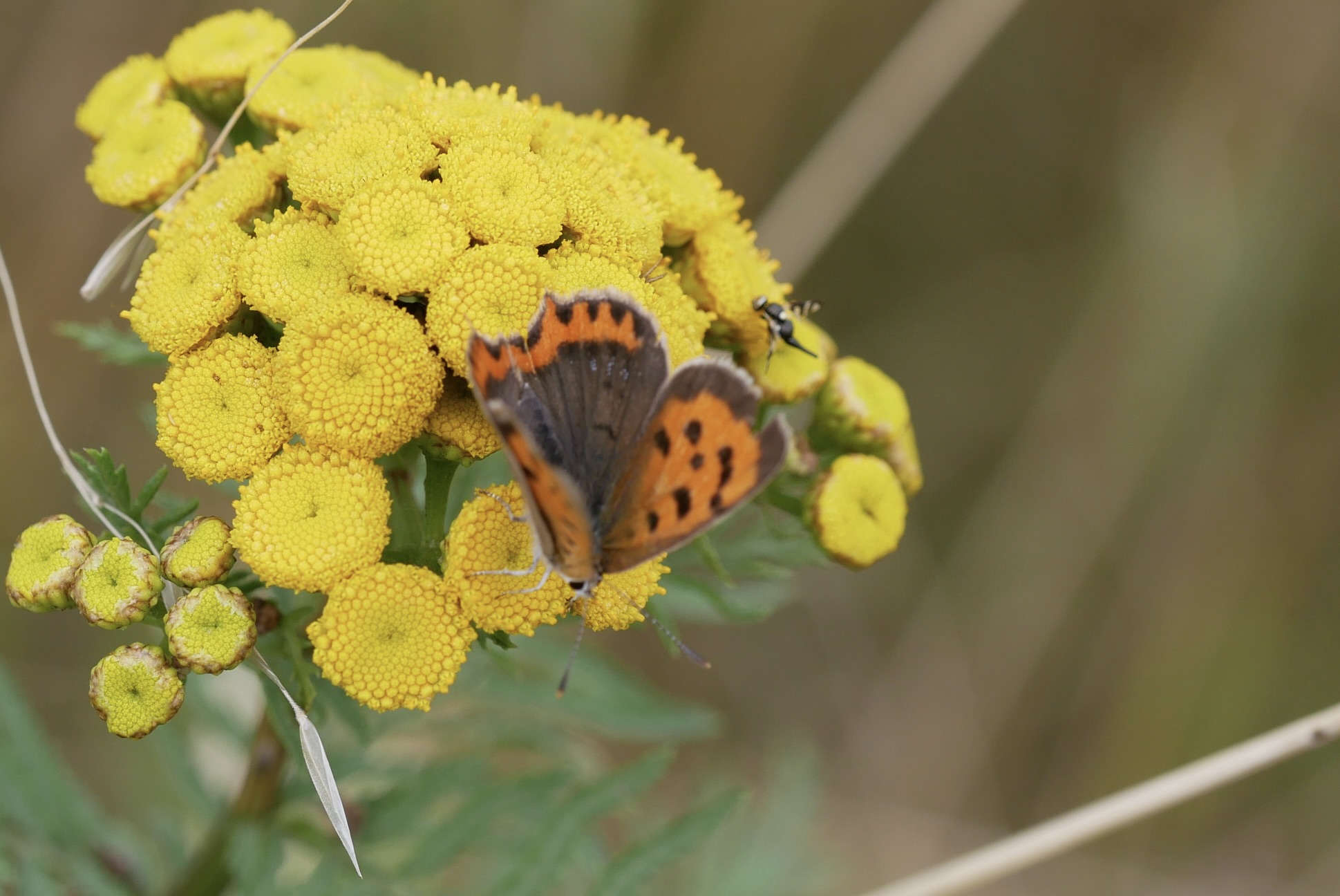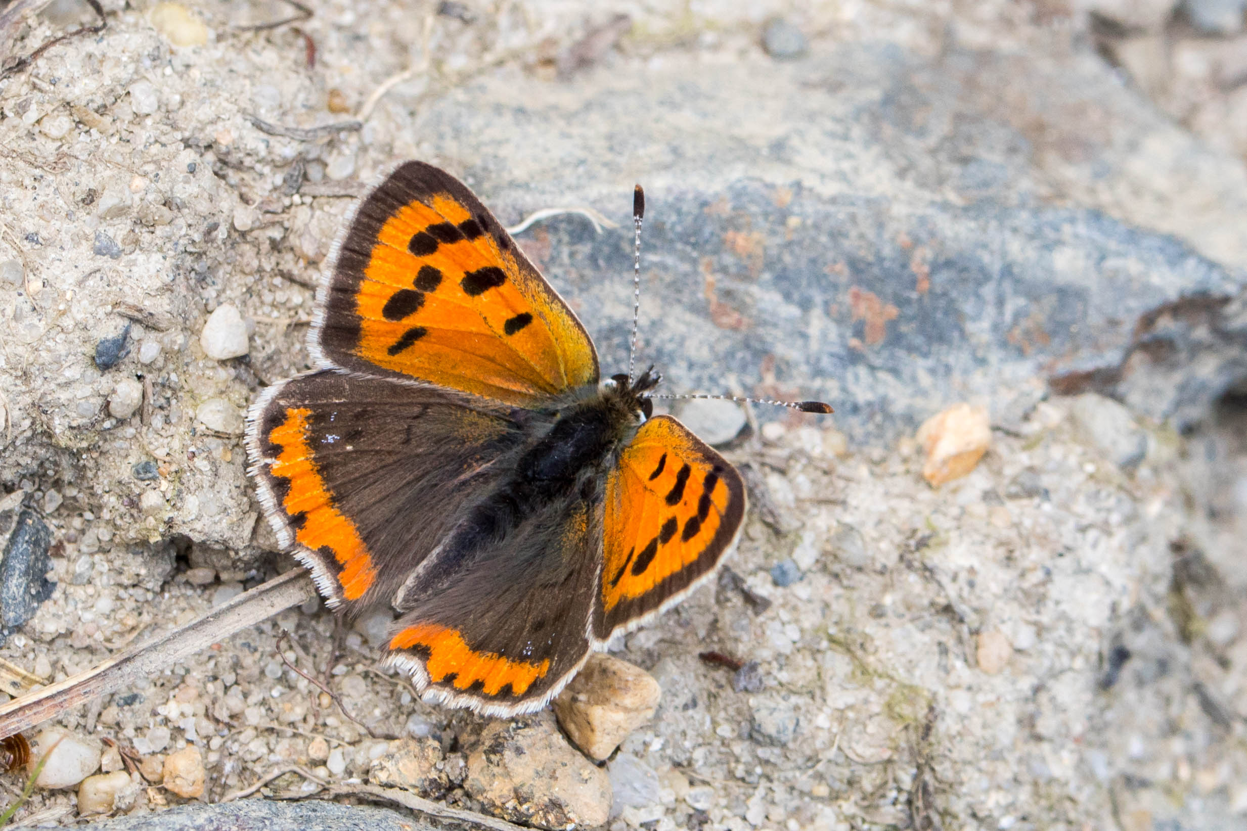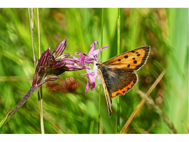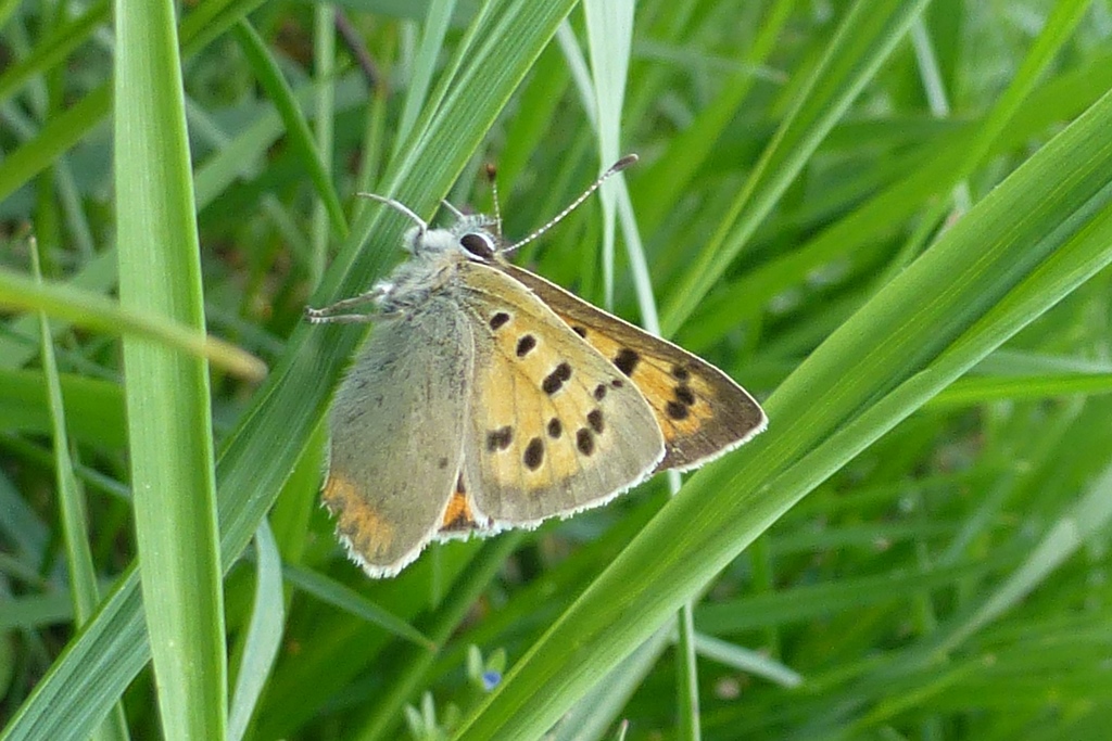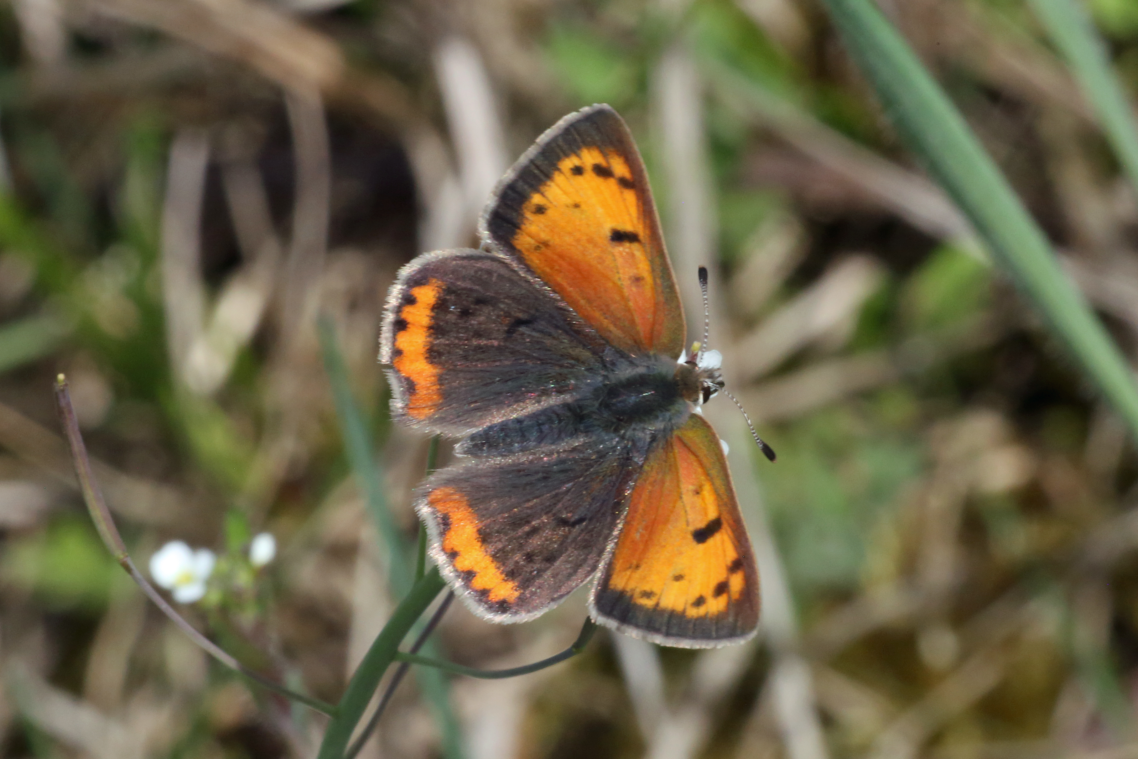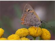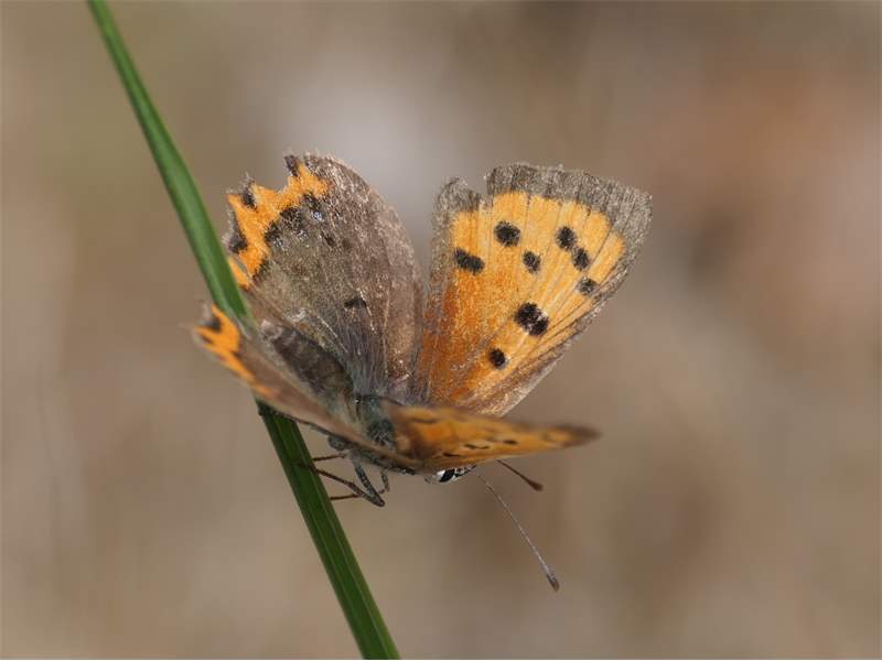Kleiner Feuerfalter (Lycaena phlaeas (Linnaeus, 1761)), Laue, Rekultivierungsbereich der Tagebaulandschaft Goitzsche östlich vom Seelhausener See, nahe Leipzig, 16. Juni 2019