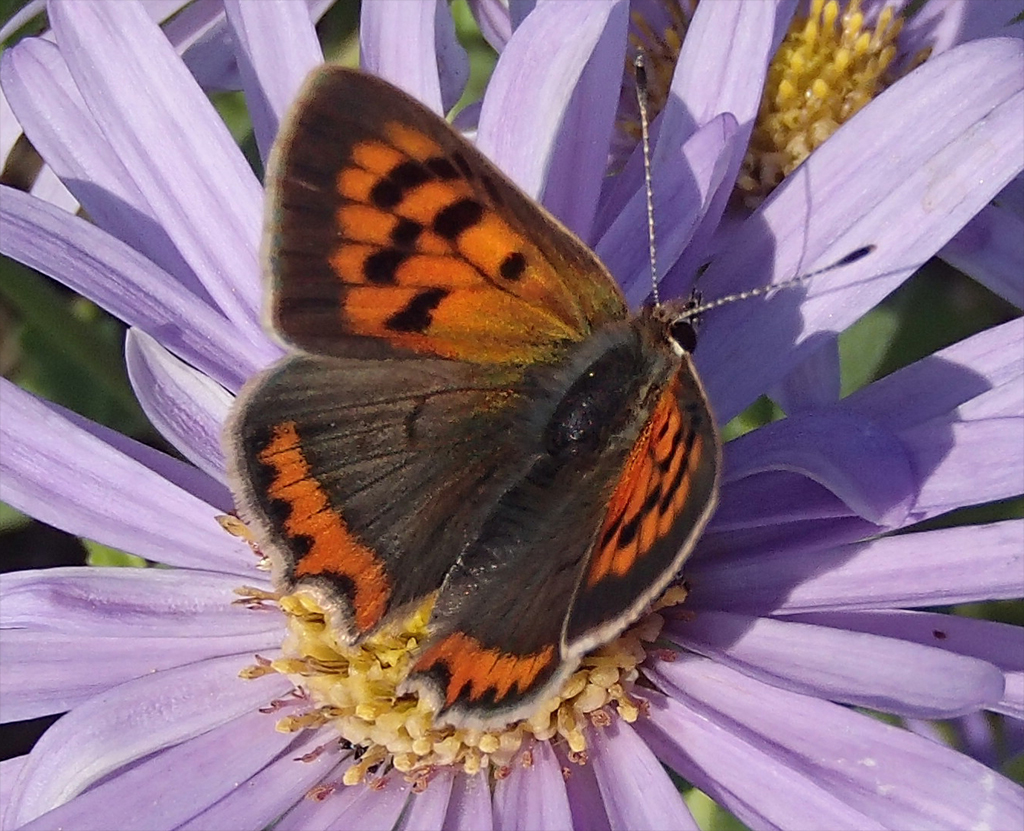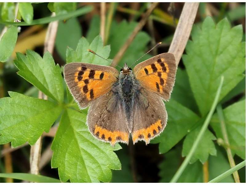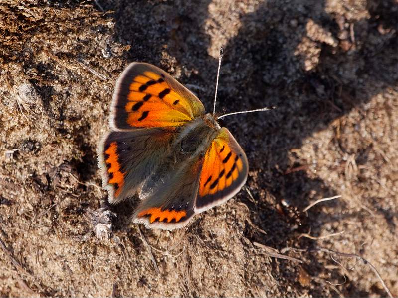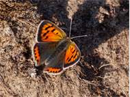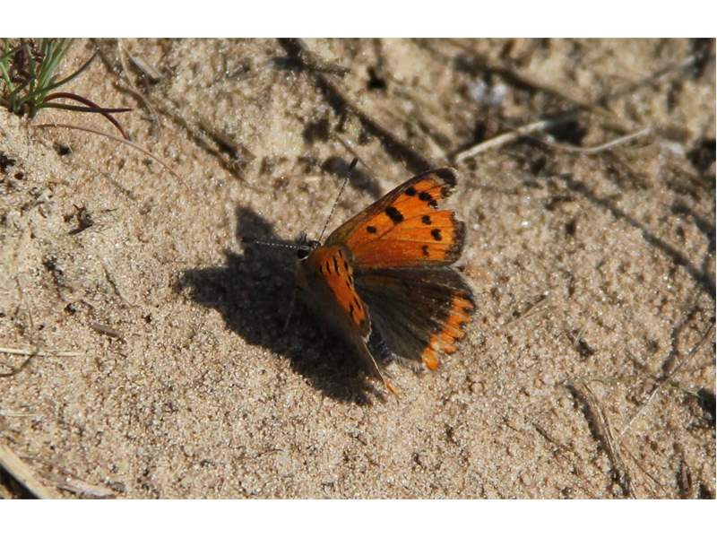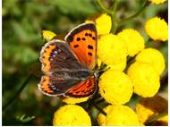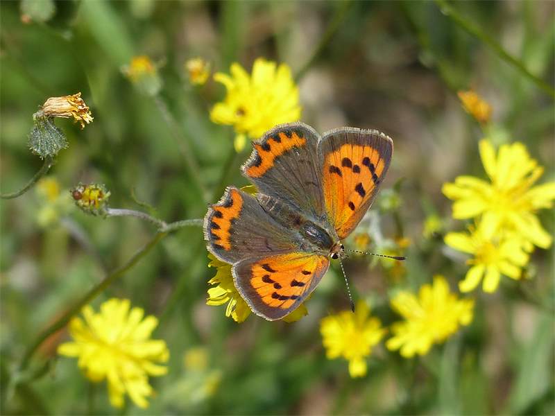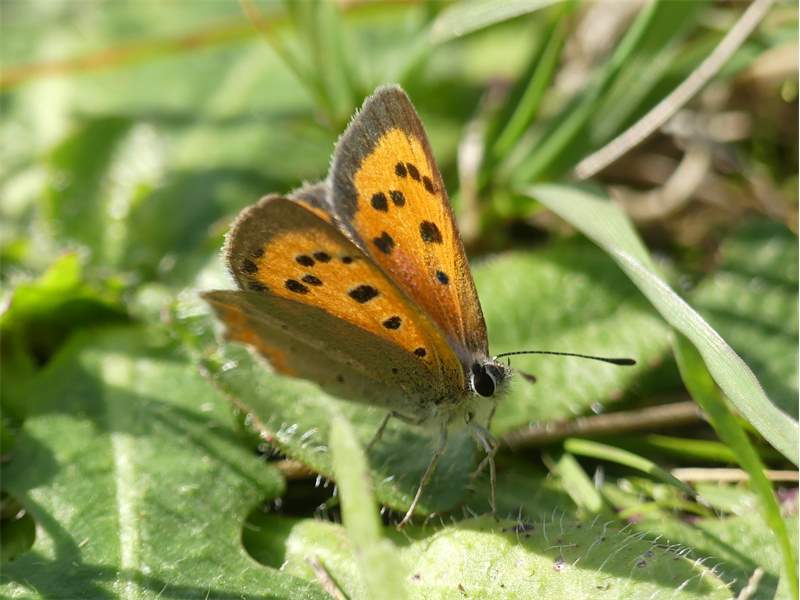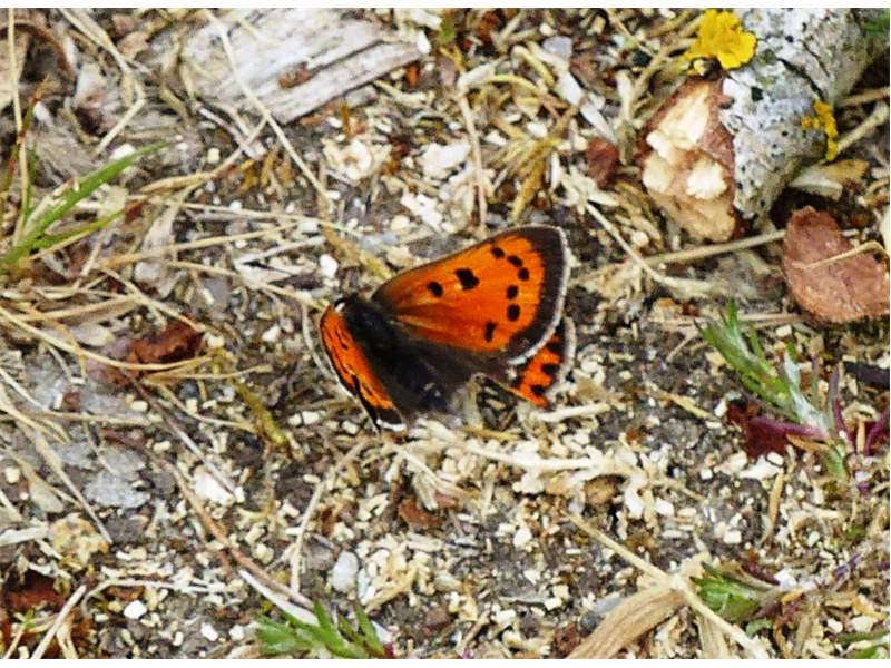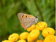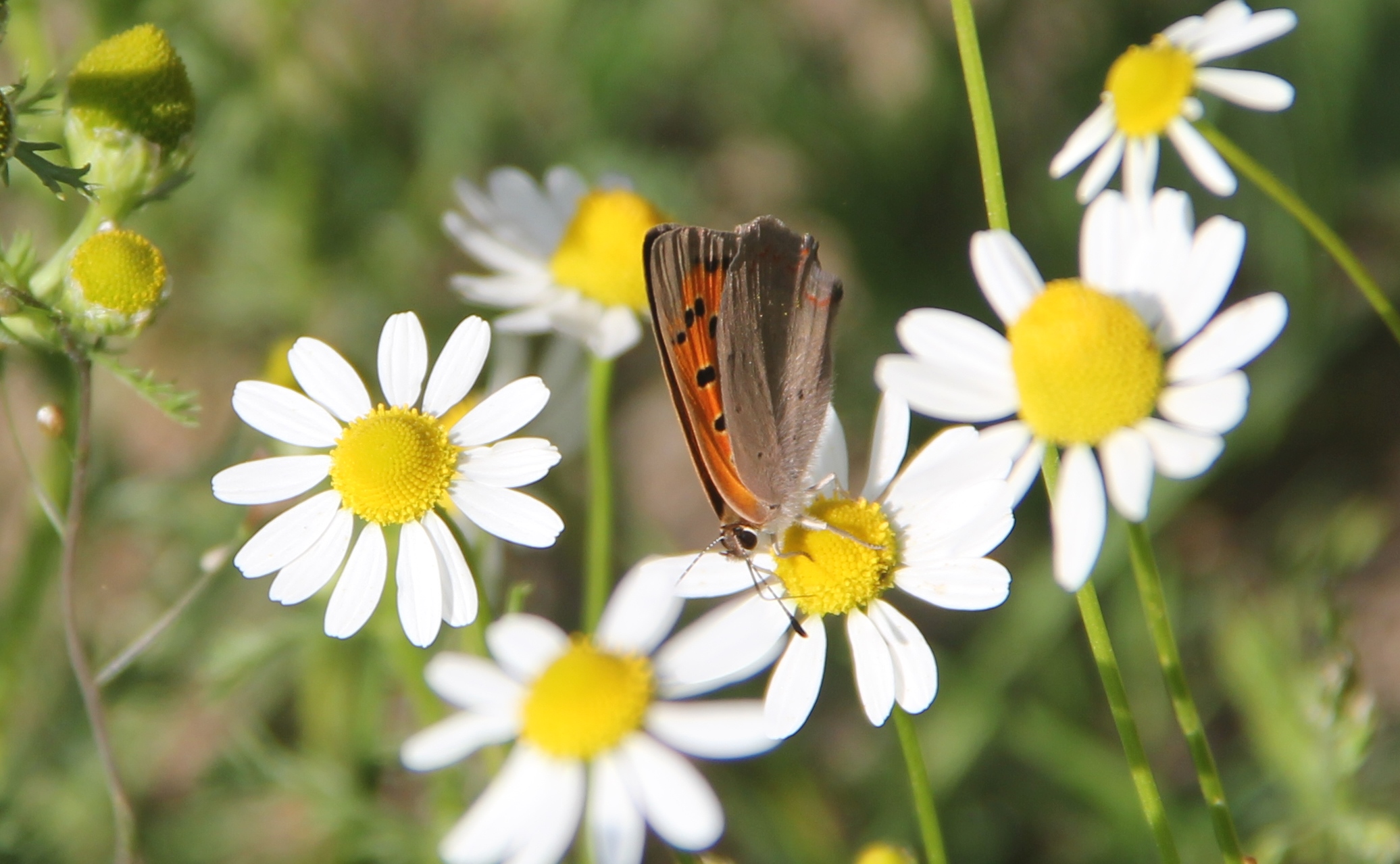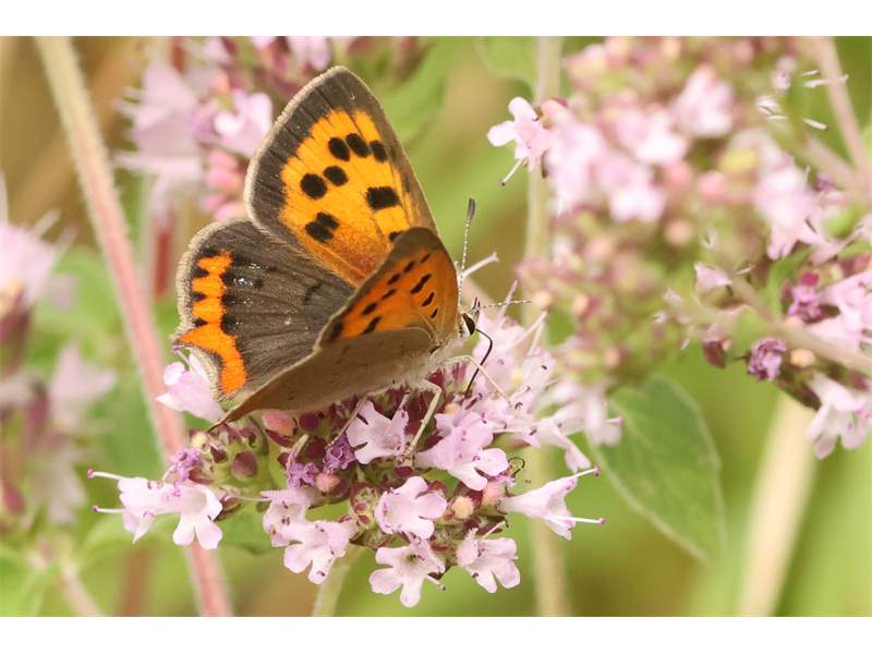 Kleiner Feuerfalter (Lycaena phlaeas (Linnaeus, 1761)), Laue, Rekultivierungsbereich der Tagebaulandschaft Goitzsche östlich vom Seelhausener See, nahe Leipzig, 16. Juni 2019
