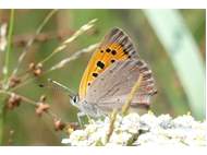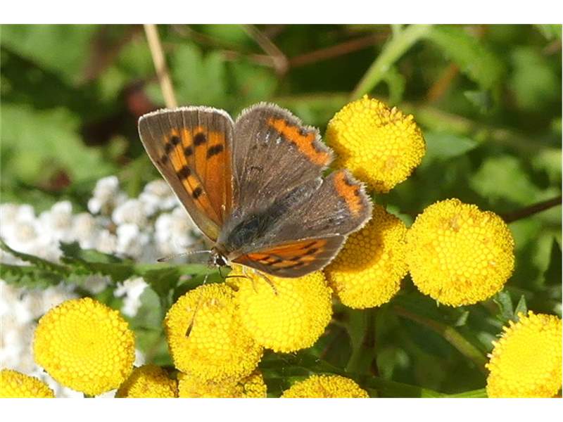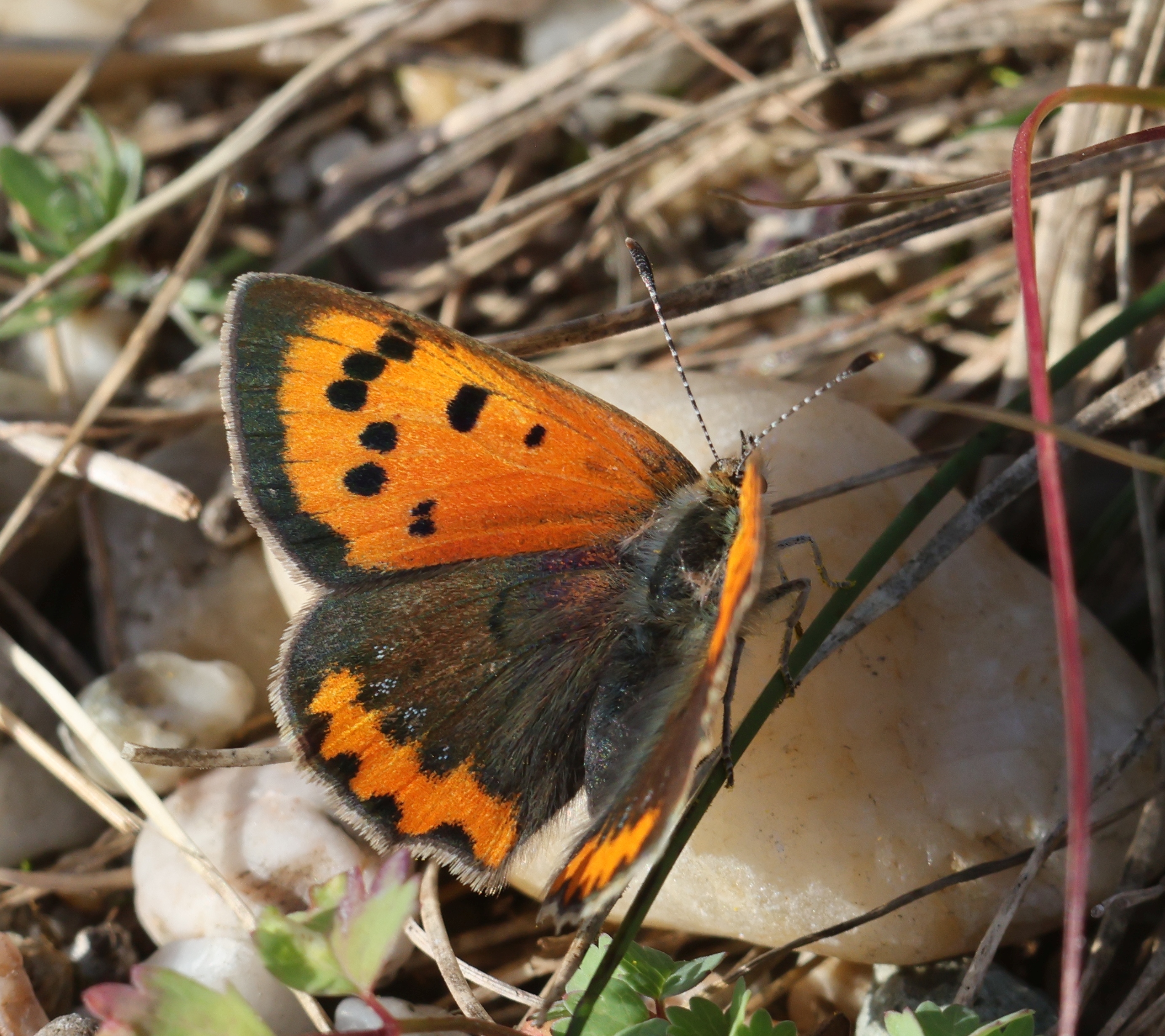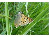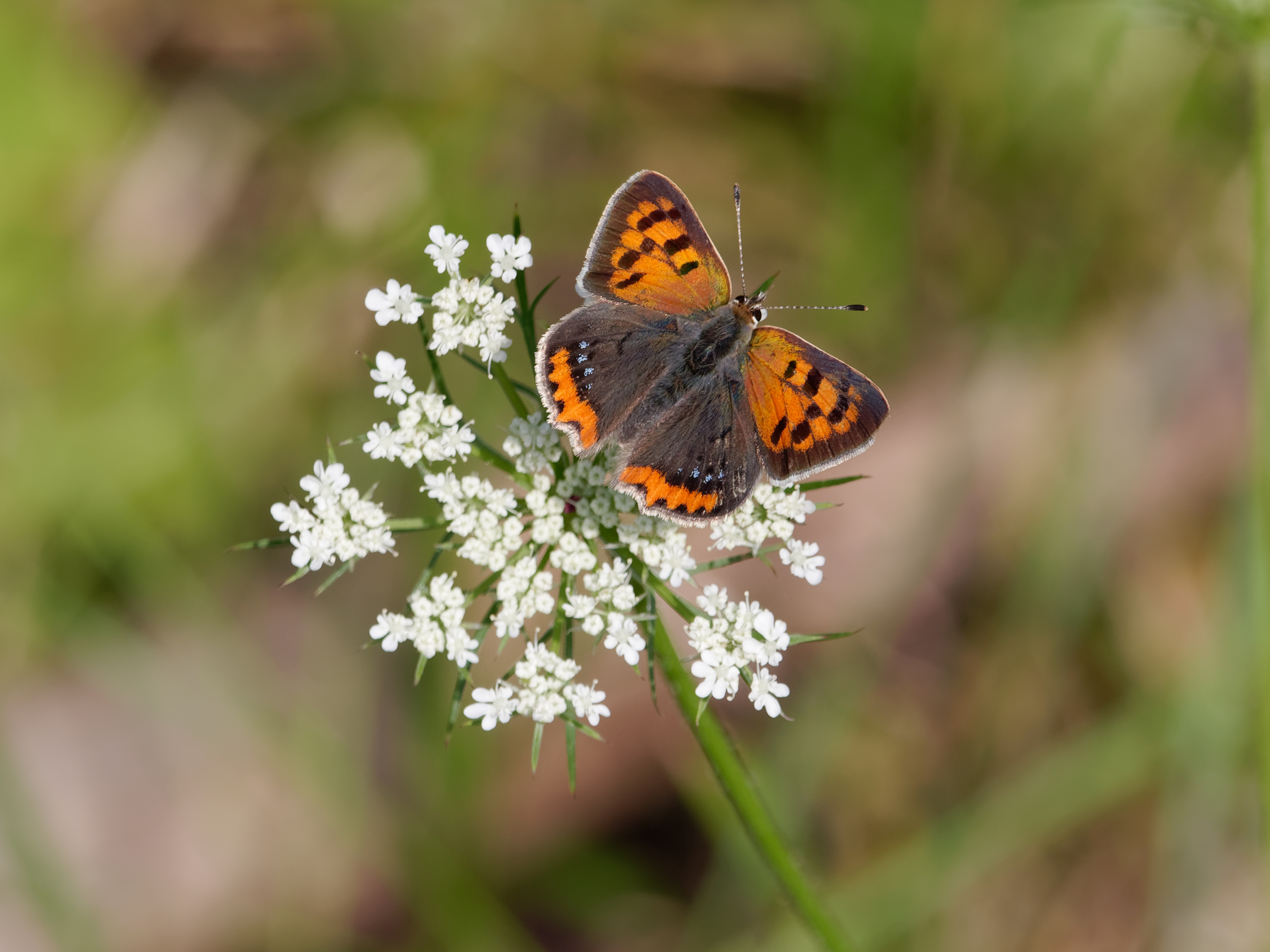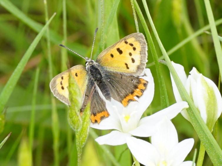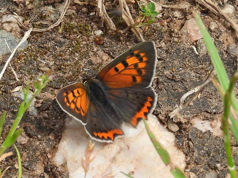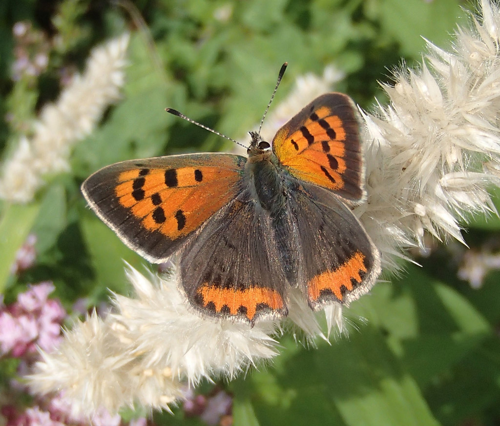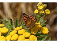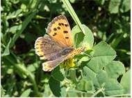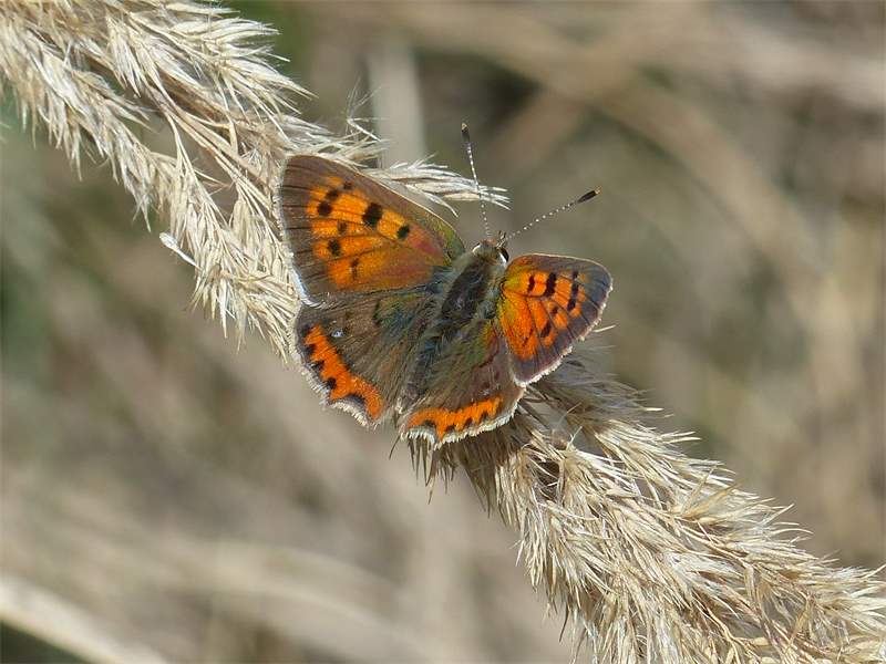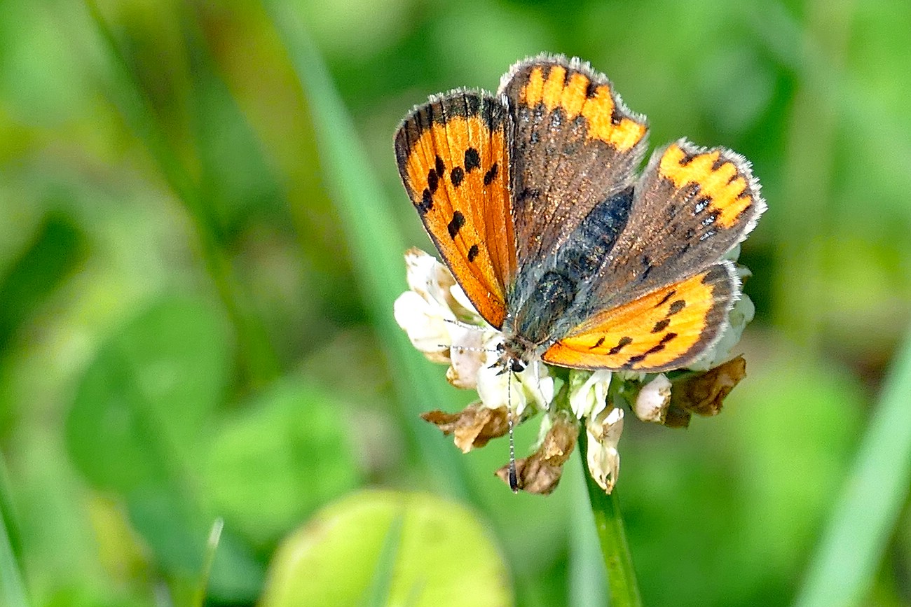 Kleiner Feuerfalter (Lycaena phlaeas (Linnaeus, 1761)), Laue, Rekultivierungsbereich der Tagebaulandschaft Goitzsche östlich vom Seelhausener See, nahe Leipzig, 16. Juni 2019