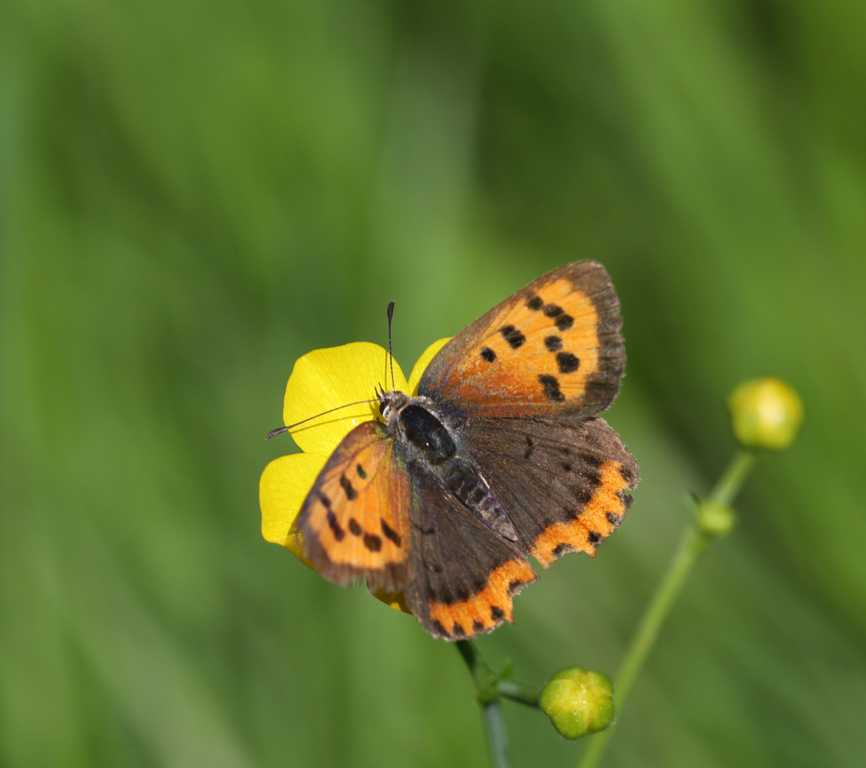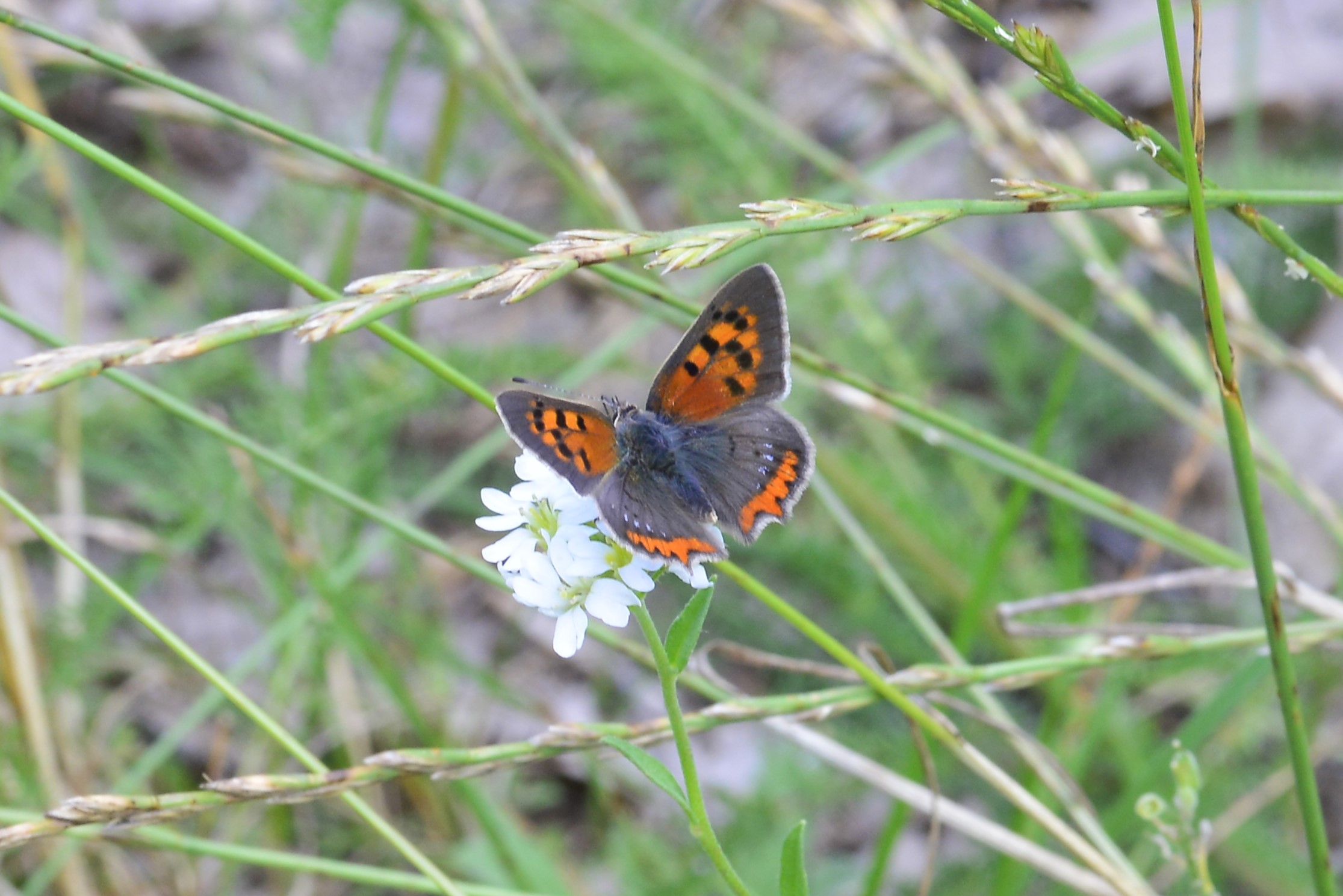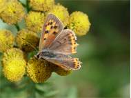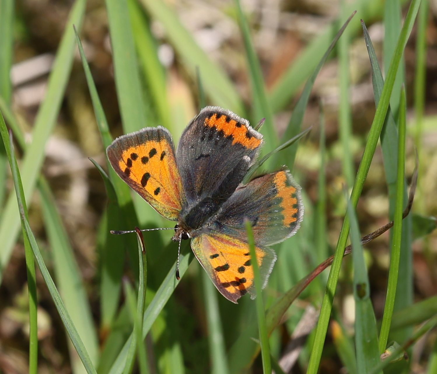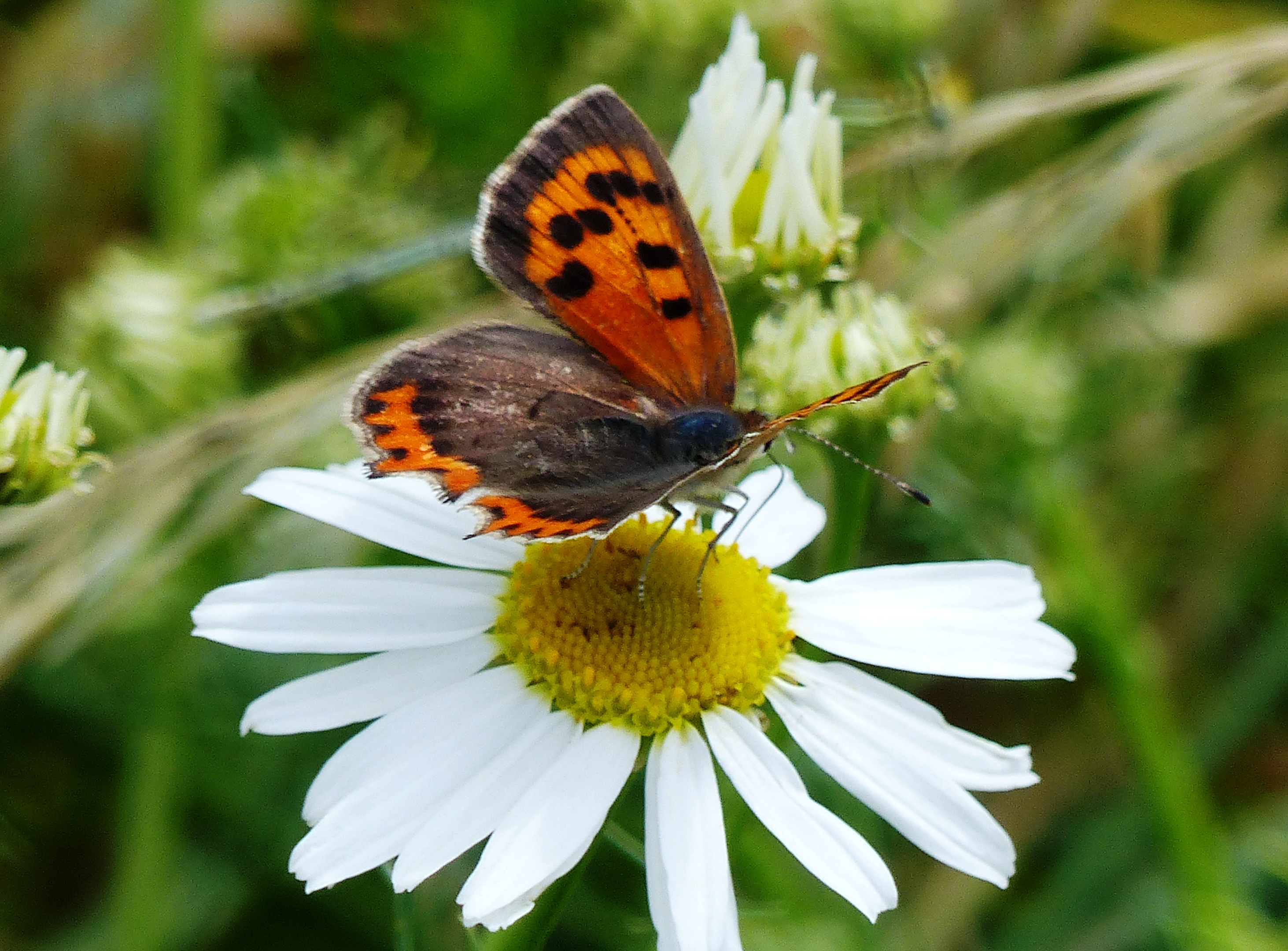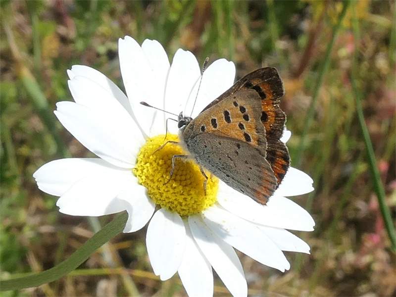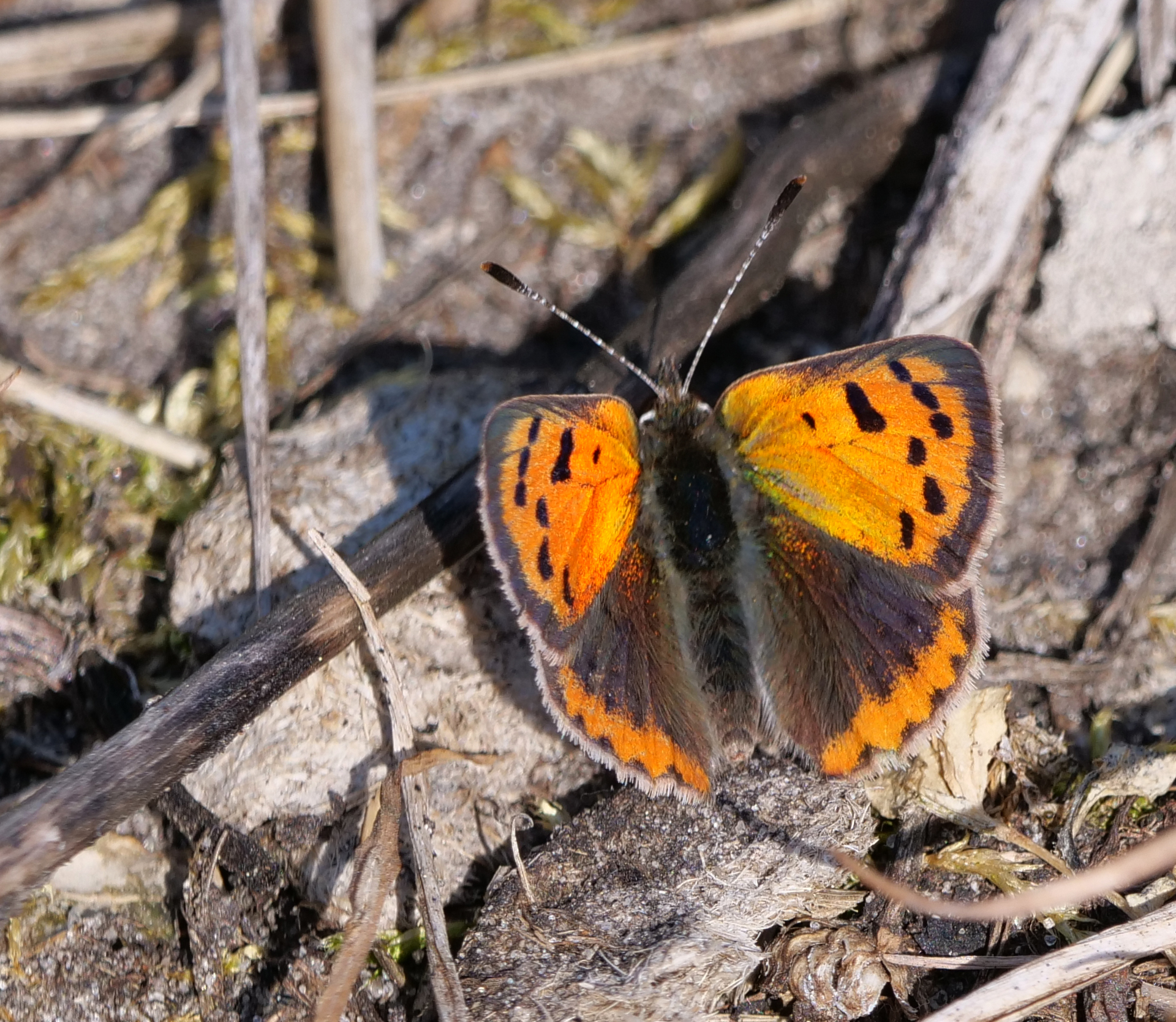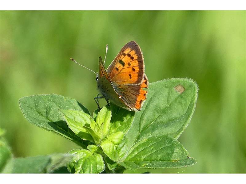 Kleiner Feuerfalter (Lycaena phlaeas (Linnaeus, 1761)), Laue, Rekultivierungsbereich der Tagebaulandschaft Goitzsche östlich vom Seelhausener See, nahe Leipzig, 16. Juni 2019