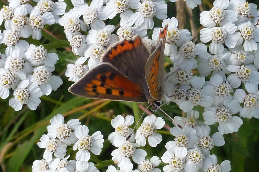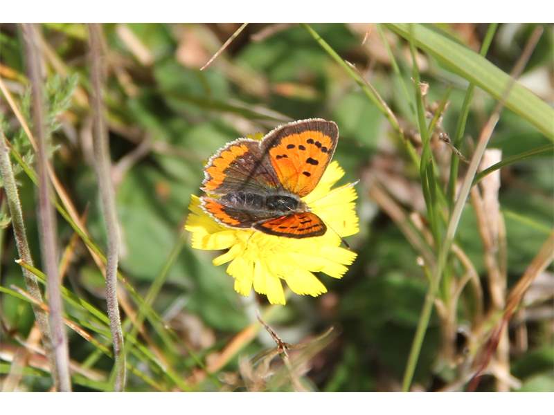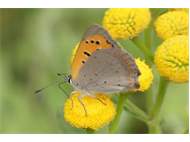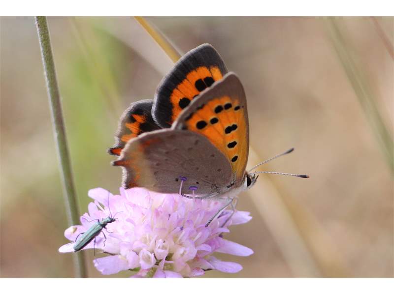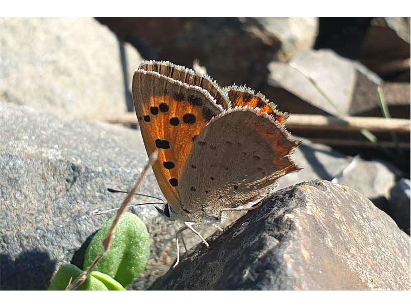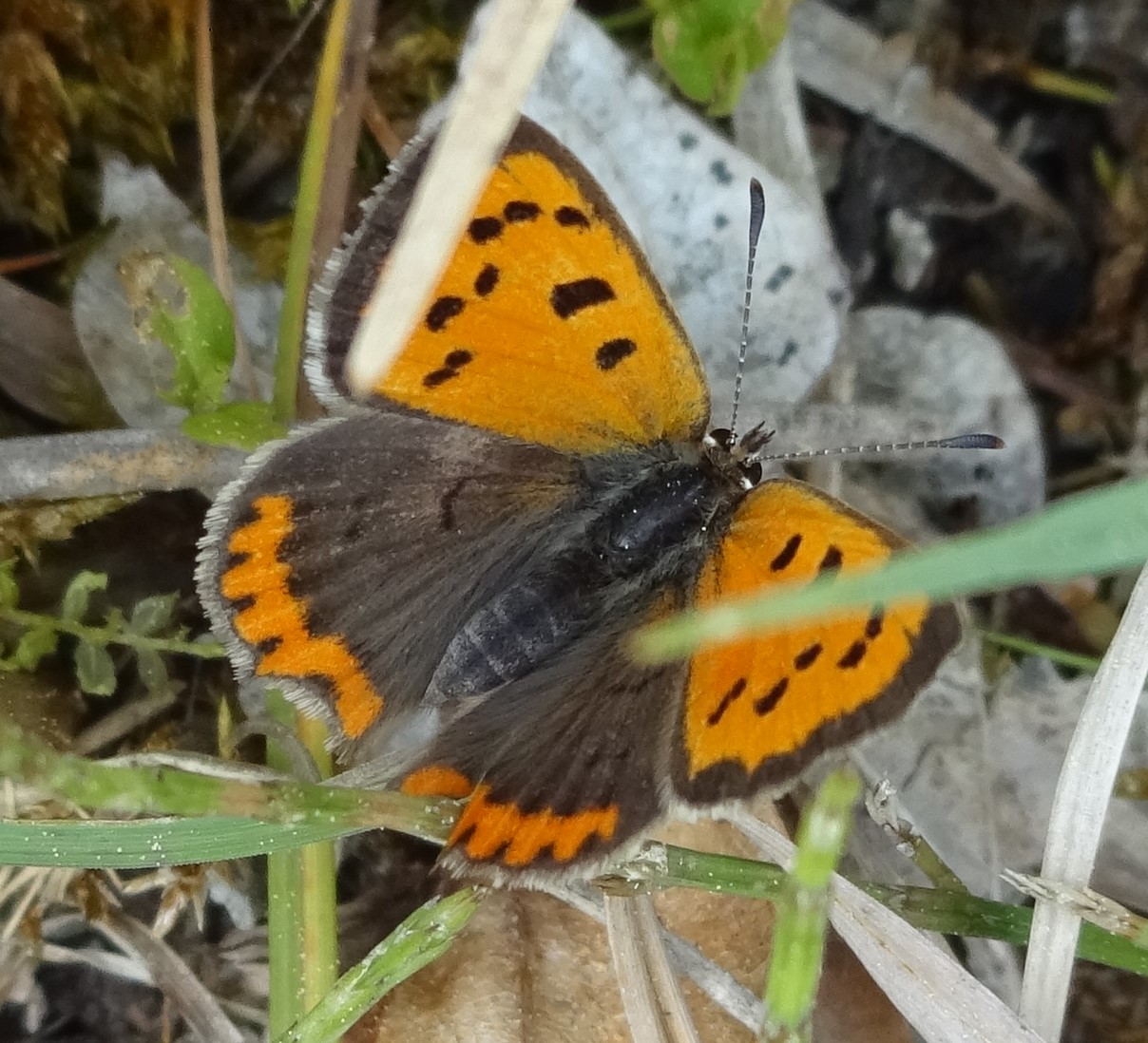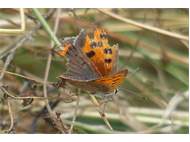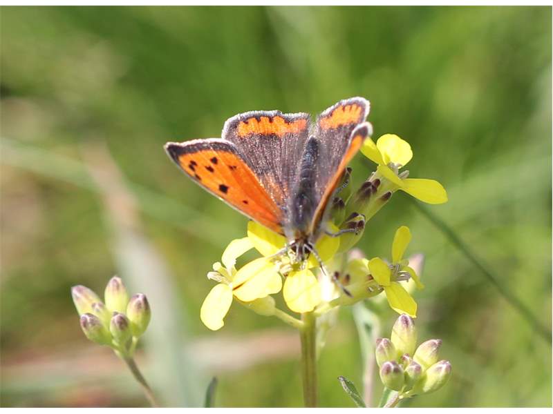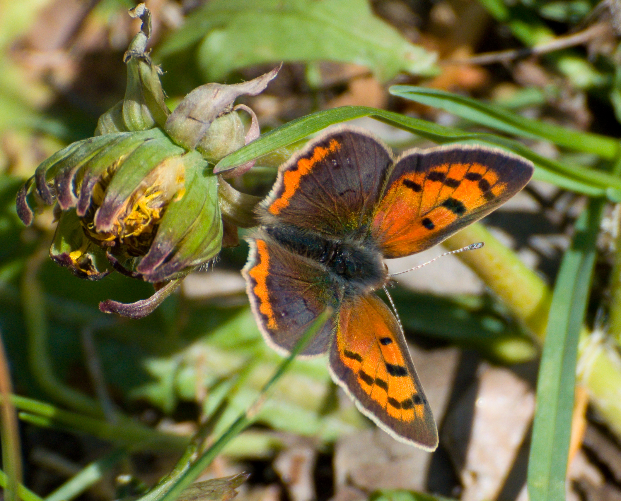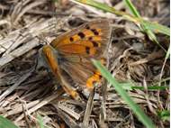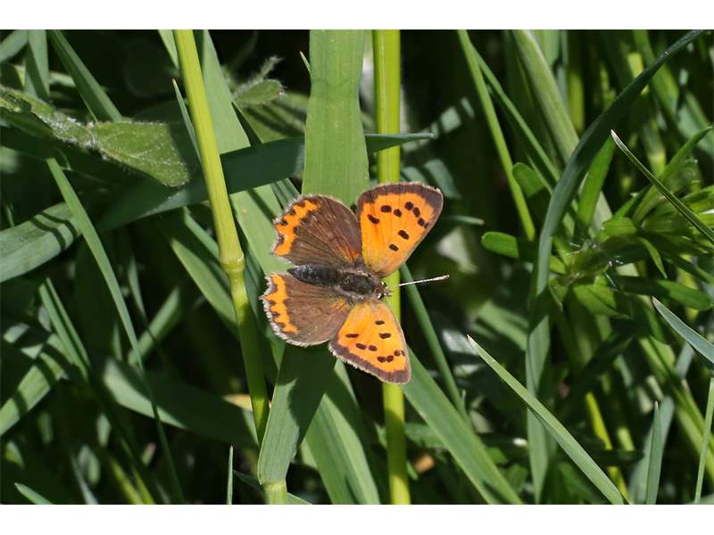 Kleiner Feuerfalter (Lycaena phlaeas (Linnaeus, 1761)), Laue, Rekultivierungsbereich der Tagebaulandschaft Goitzsche östlich vom Seelhausener See, nahe Leipzig, 16. Juni 2019