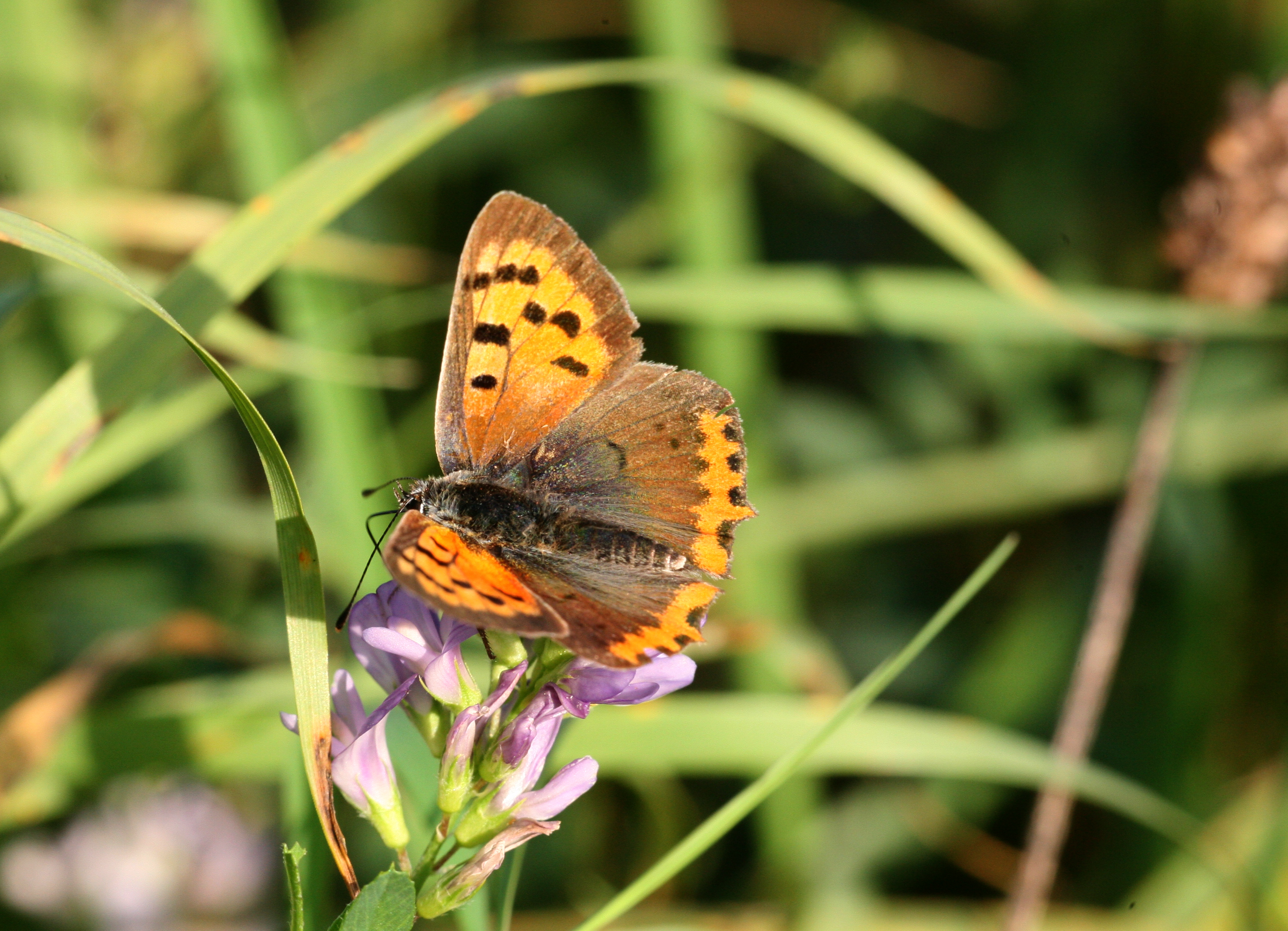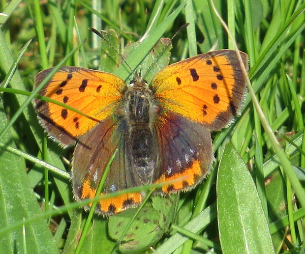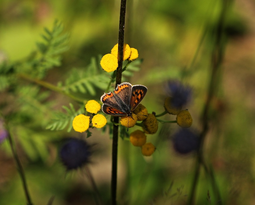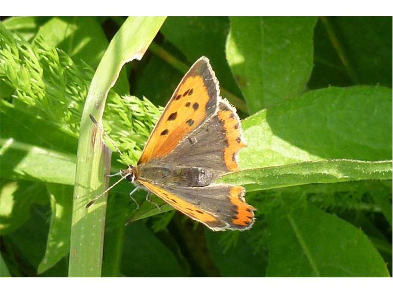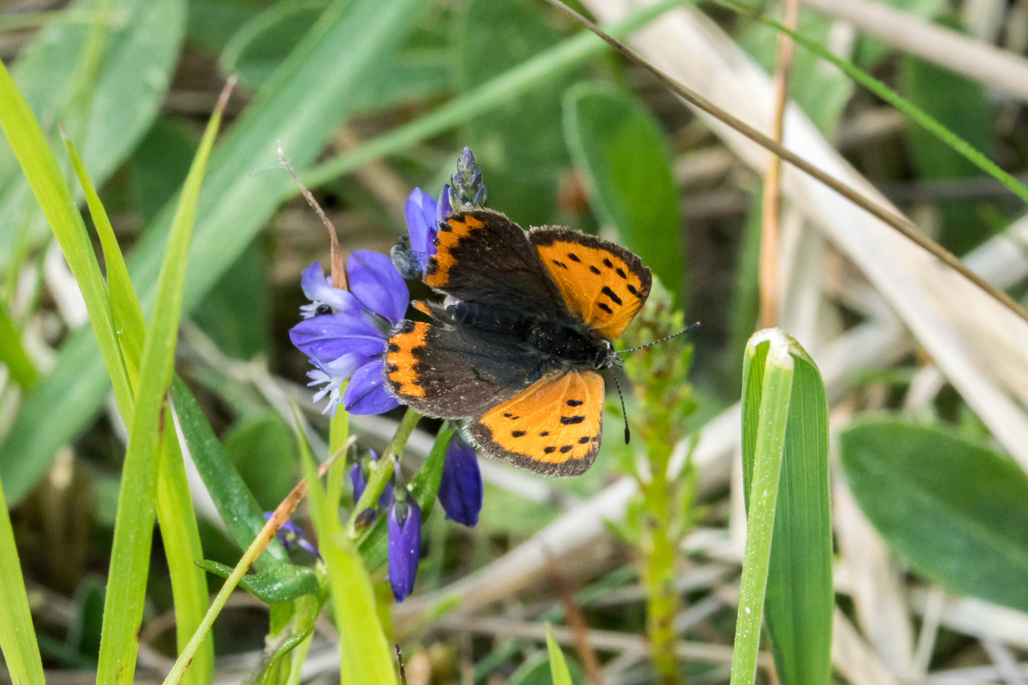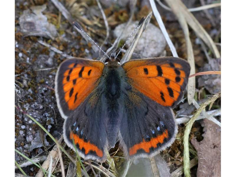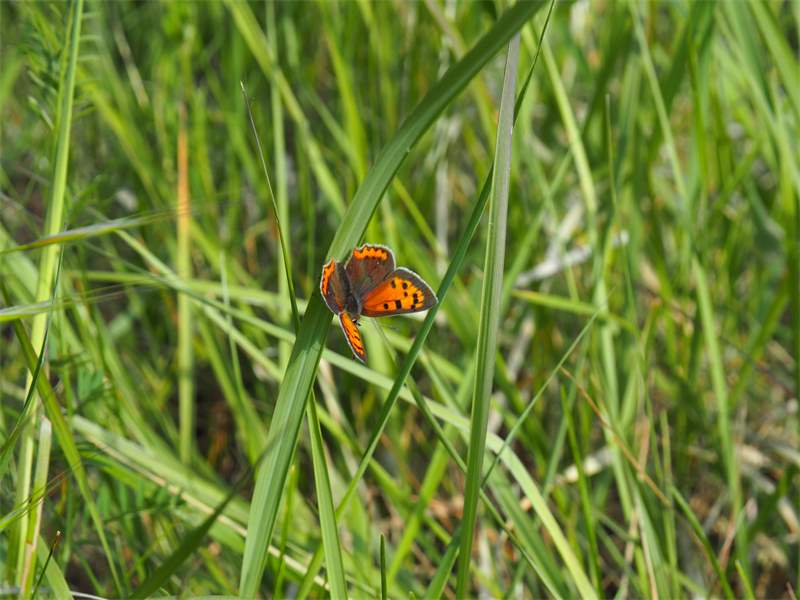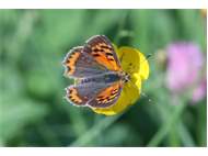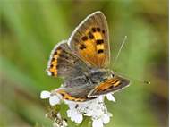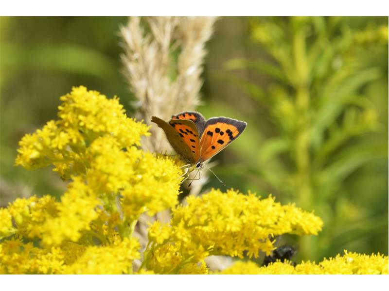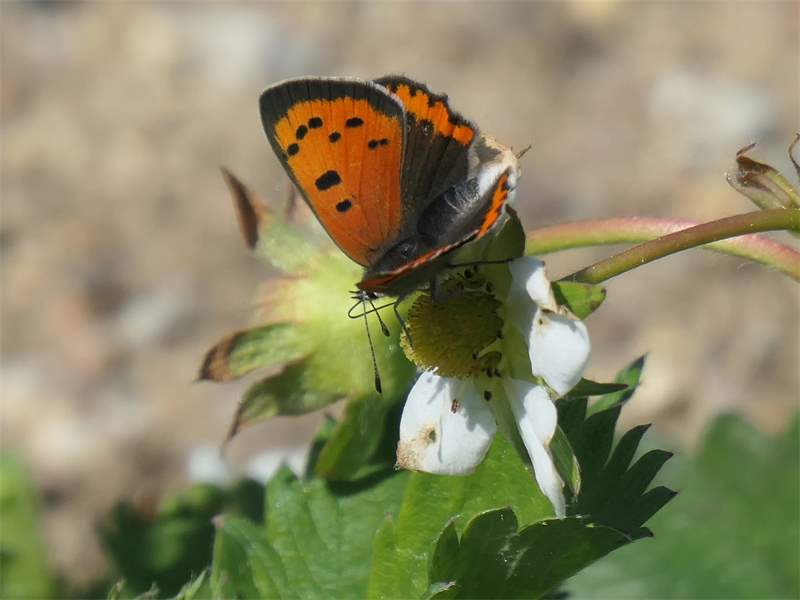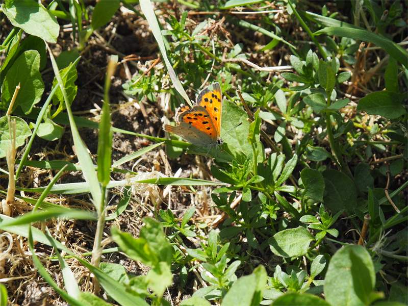 Kleiner Feuerfalter (Lycaena phlaeas (Linnaeus, 1761)), Laue, Rekultivierungsbereich der Tagebaulandschaft Goitzsche östlich vom Seelhausener See, nahe Leipzig, 16. Juni 2019