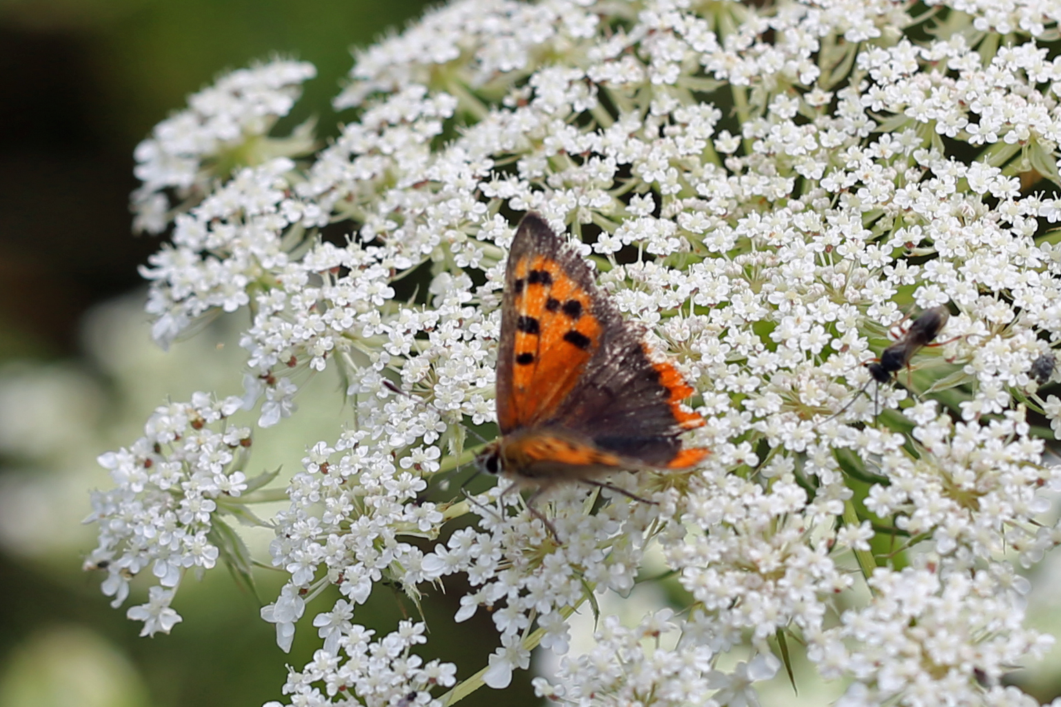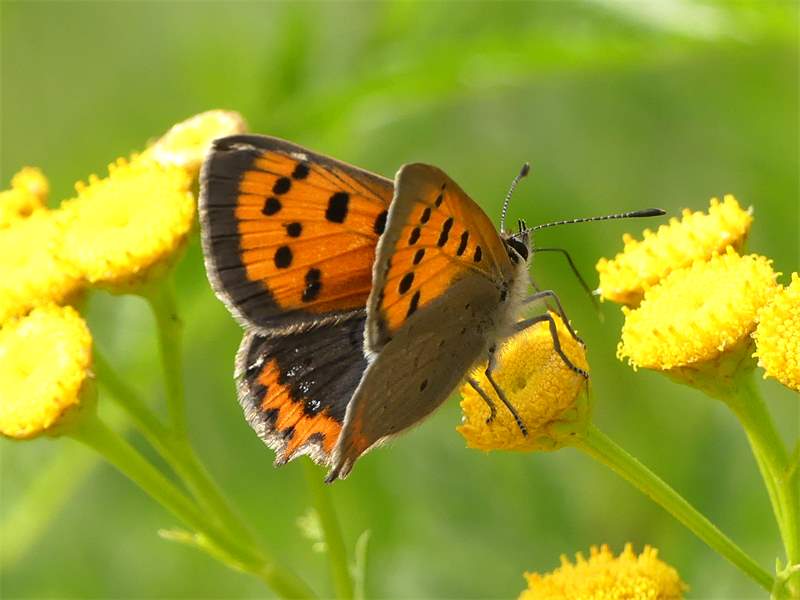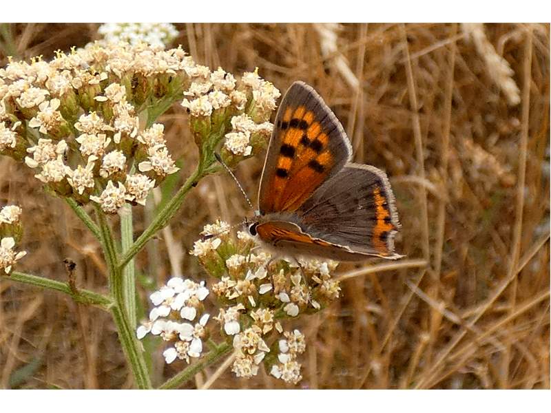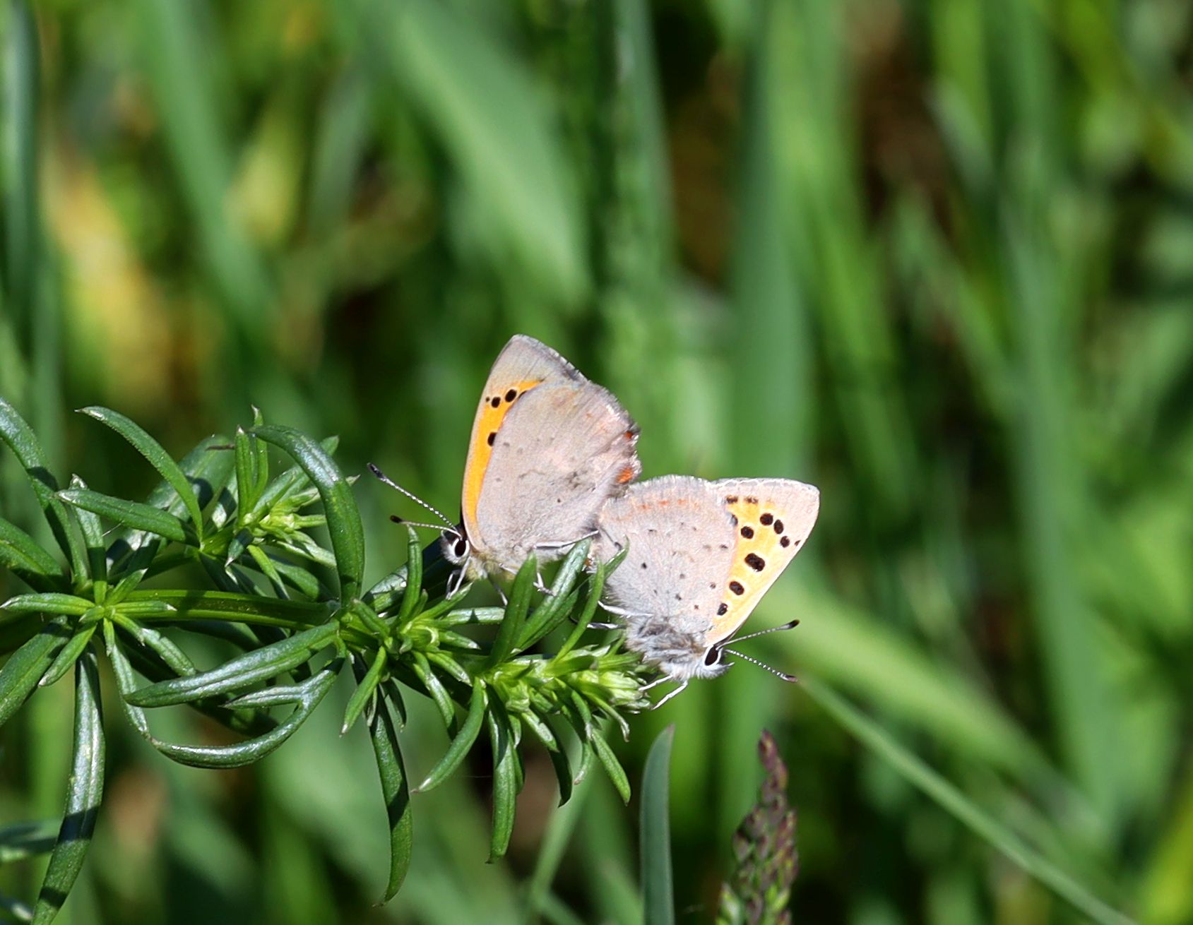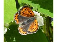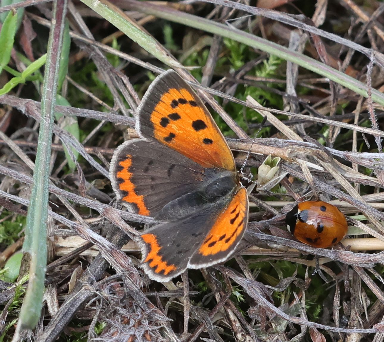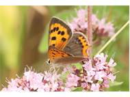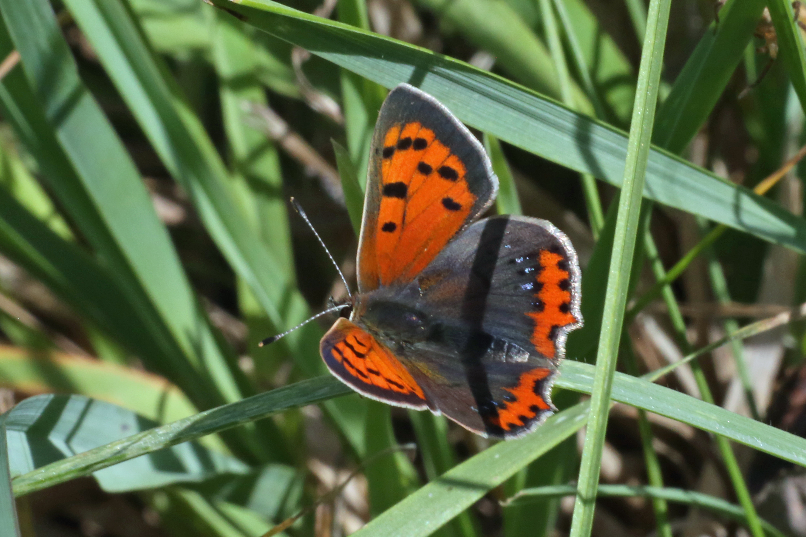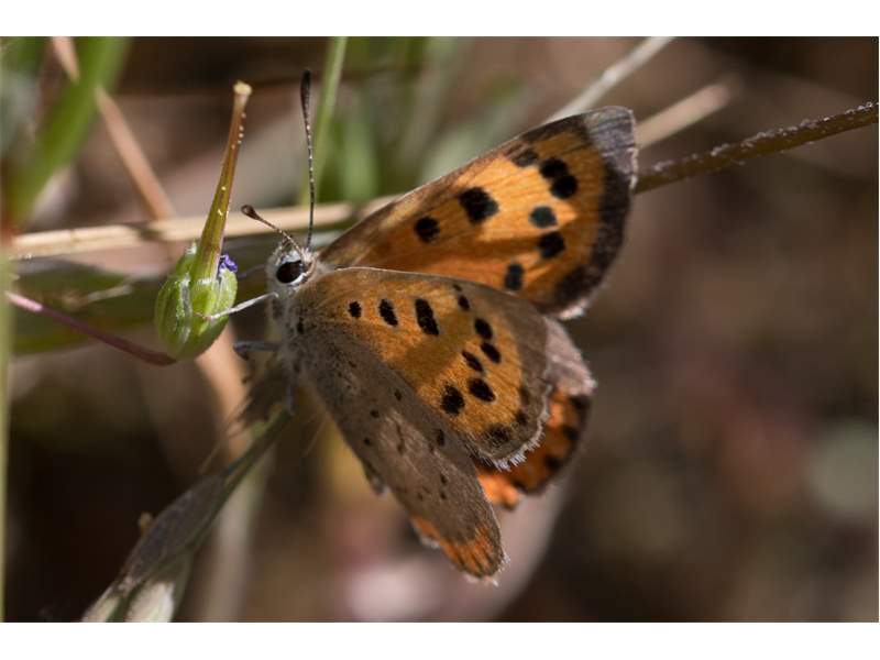 Kleiner Feuerfalter (Lycaena phlaeas (Linnaeus, 1761)), Laue, Rekultivierungsbereich der Tagebaulandschaft Goitzsche östlich vom Seelhausener See, nahe Leipzig, 16. Juni 2019