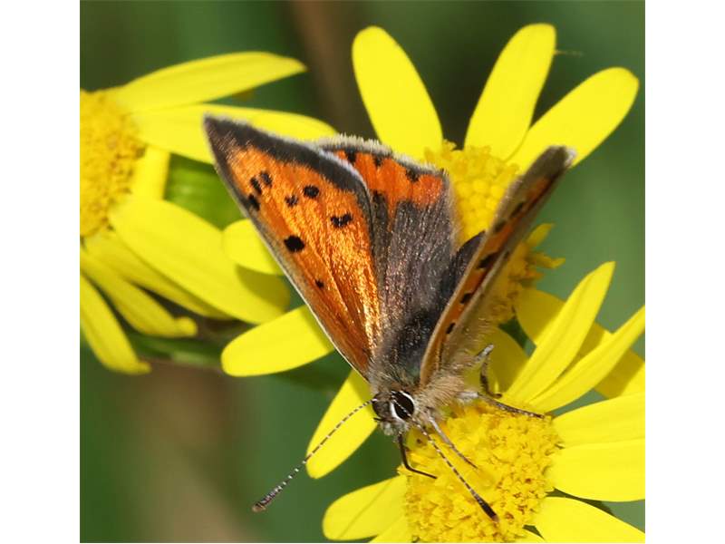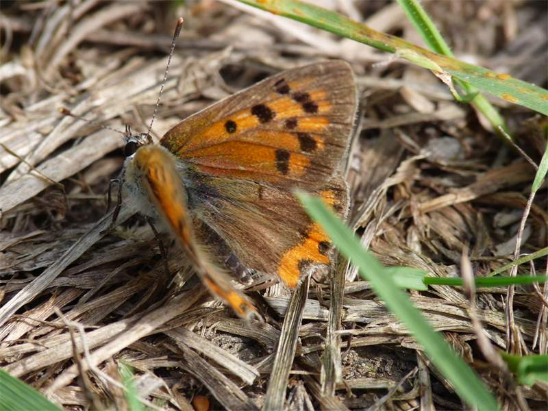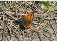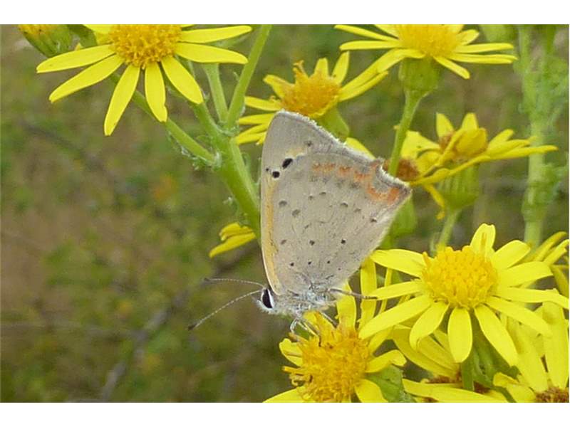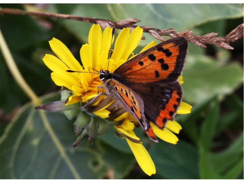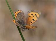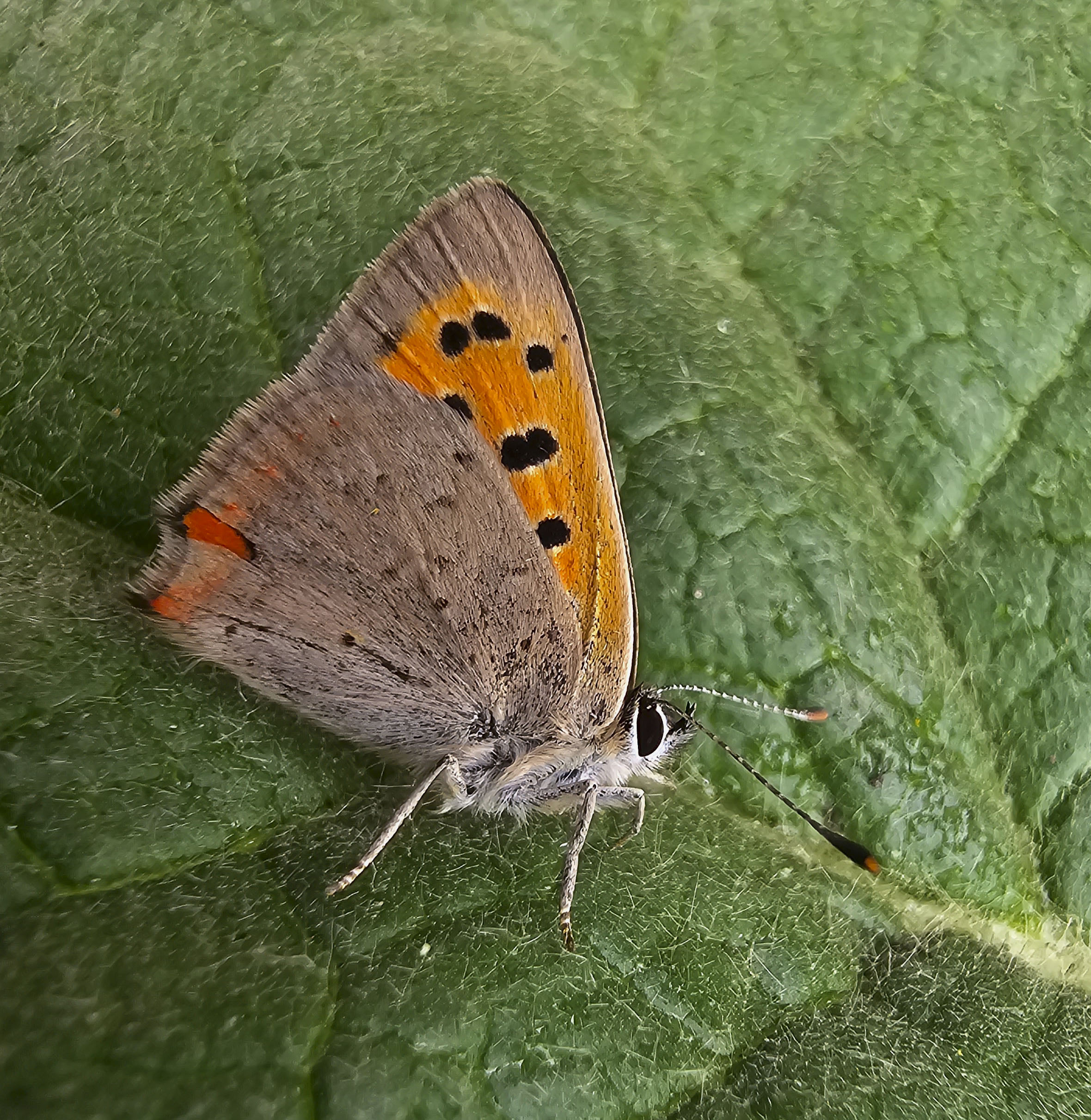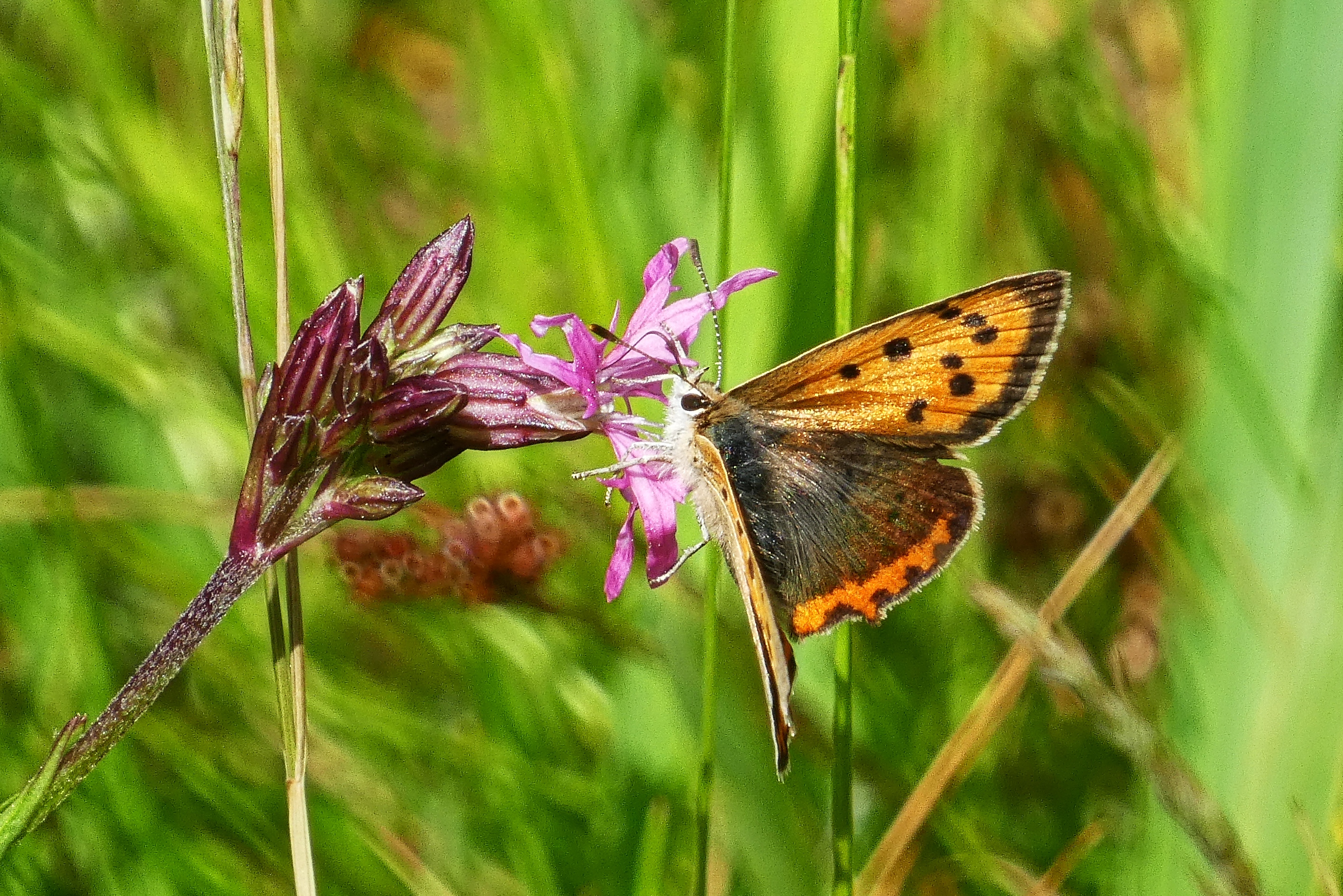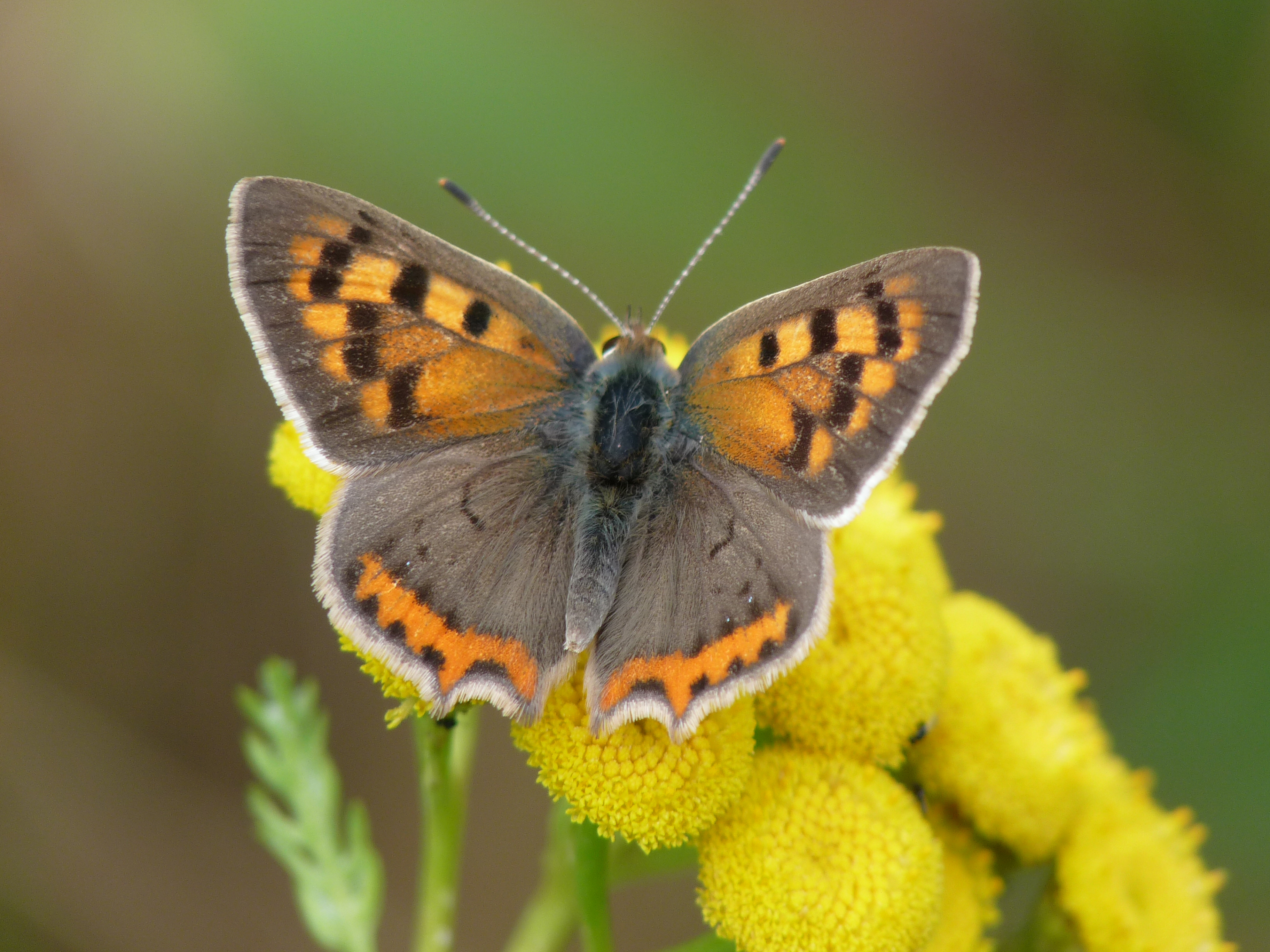 Kleiner Feuerfalter (Lycaena phlaeas (Linnaeus, 1761)), Laue, Rekultivierungsbereich der Tagebaulandschaft Goitzsche östlich vom Seelhausener See, nahe Leipzig, 16. Juni 2019