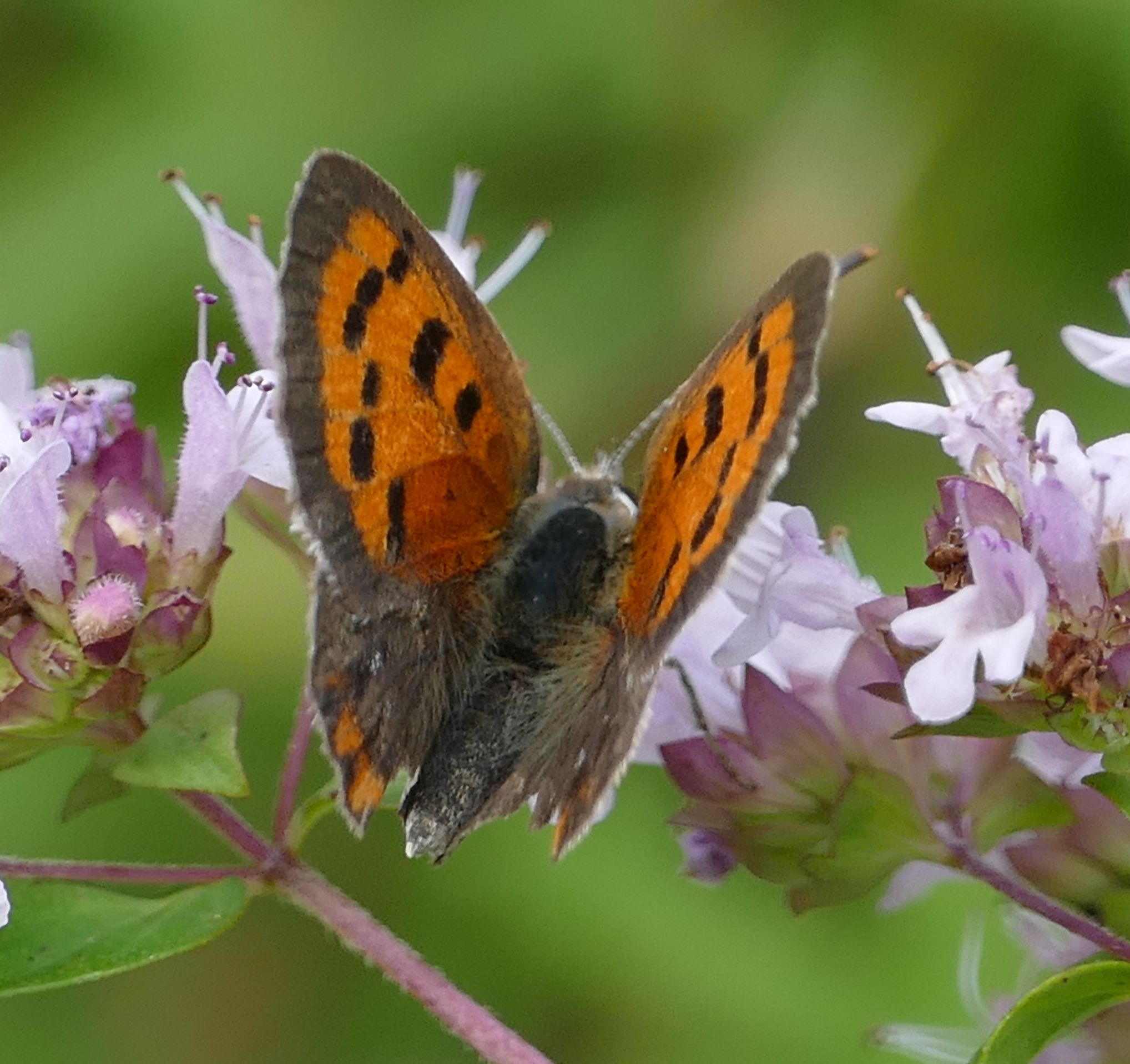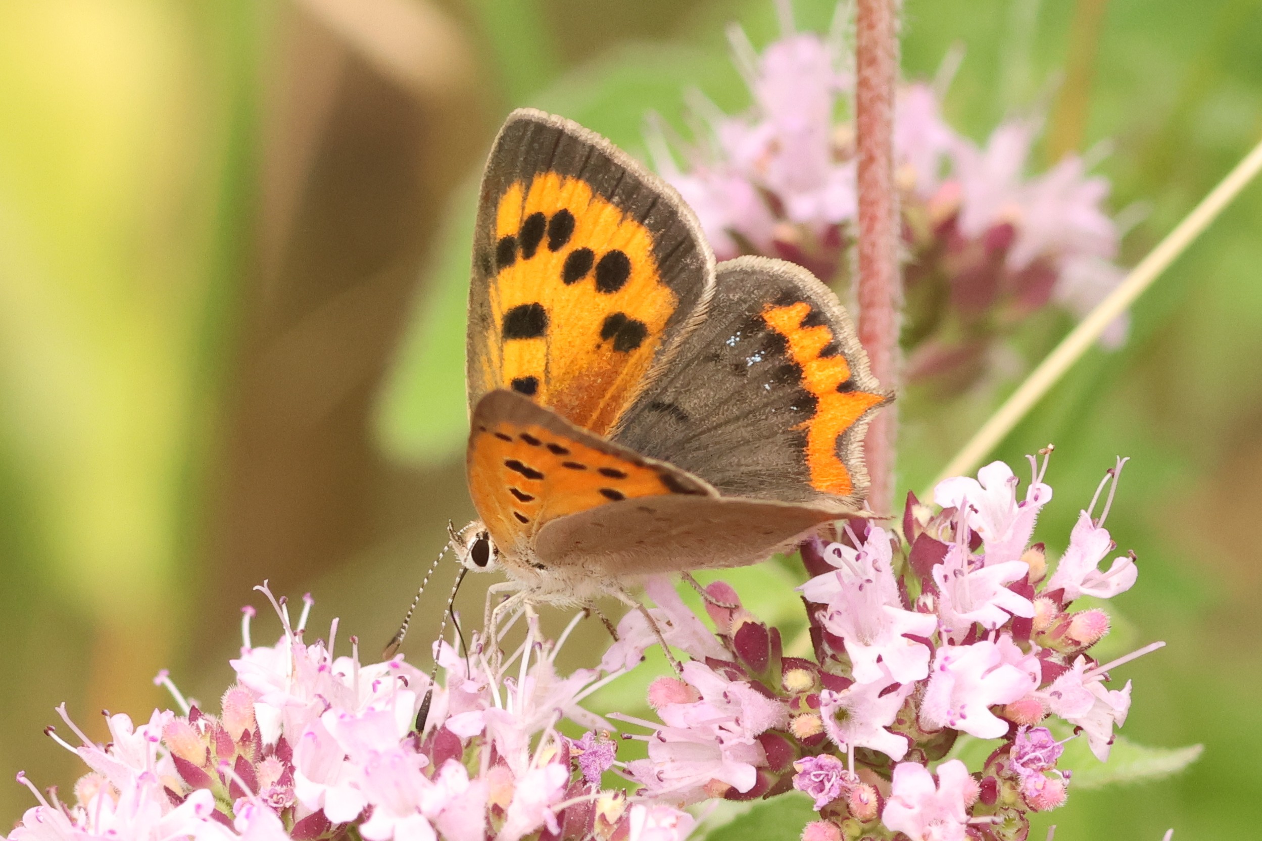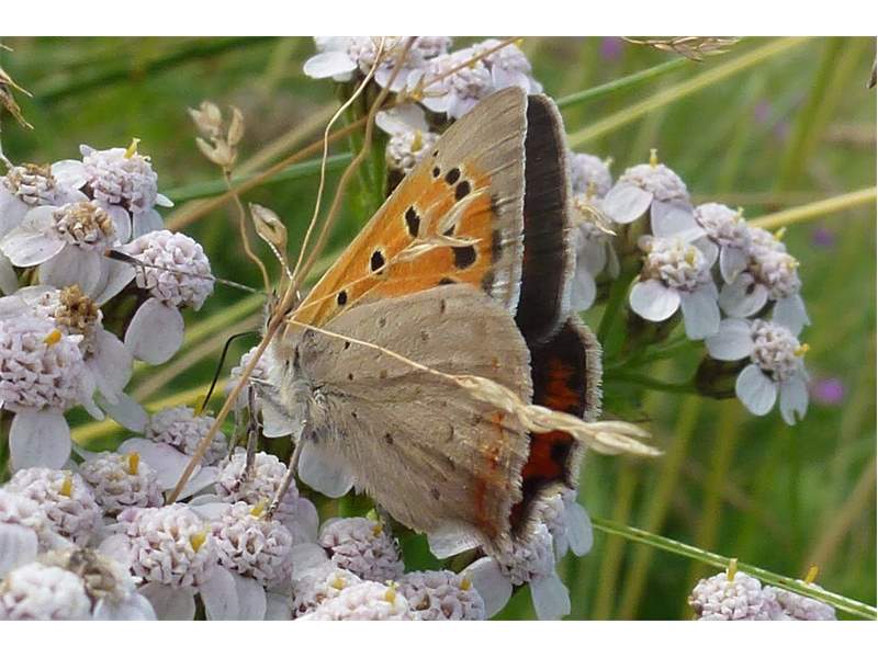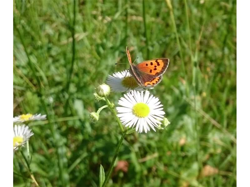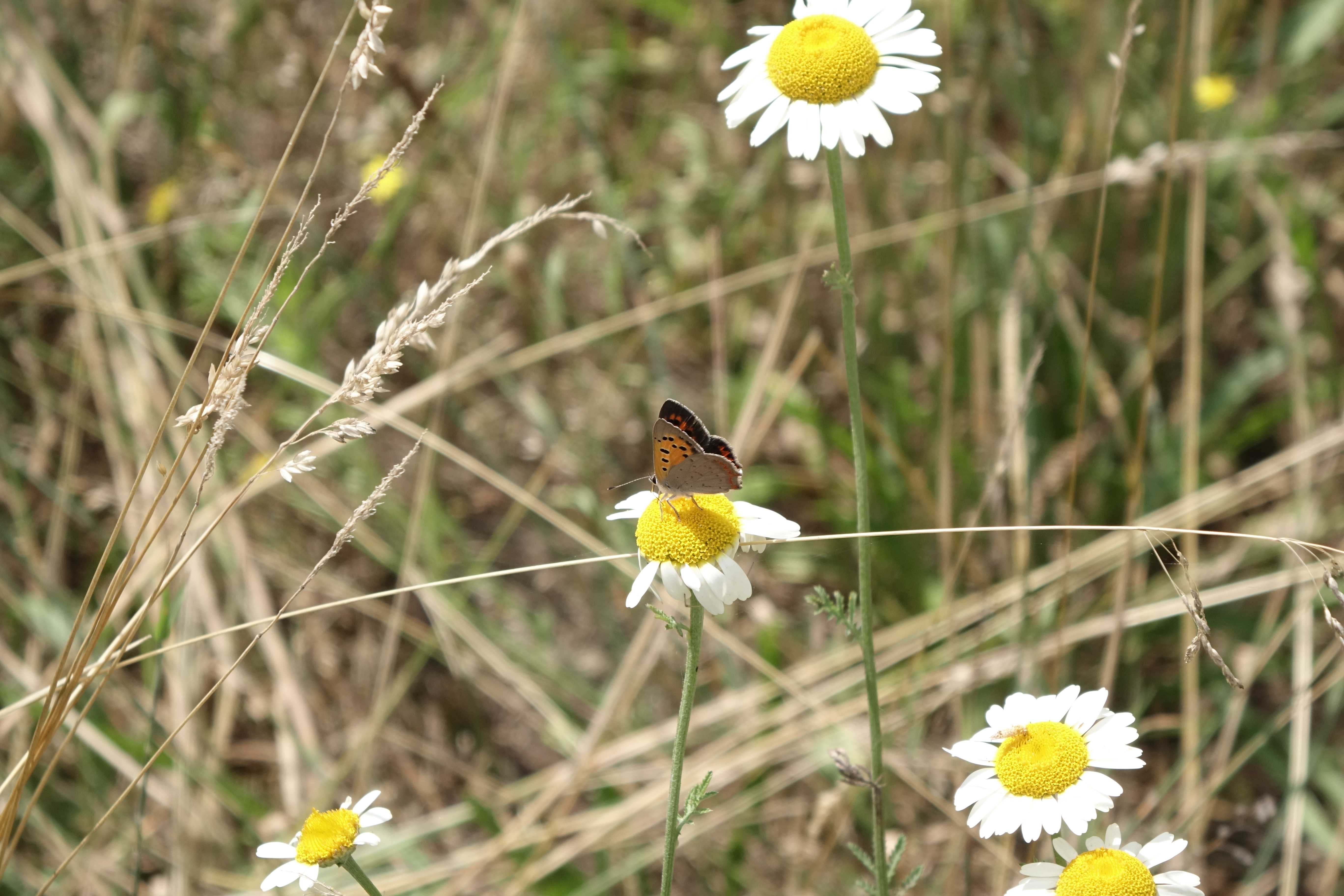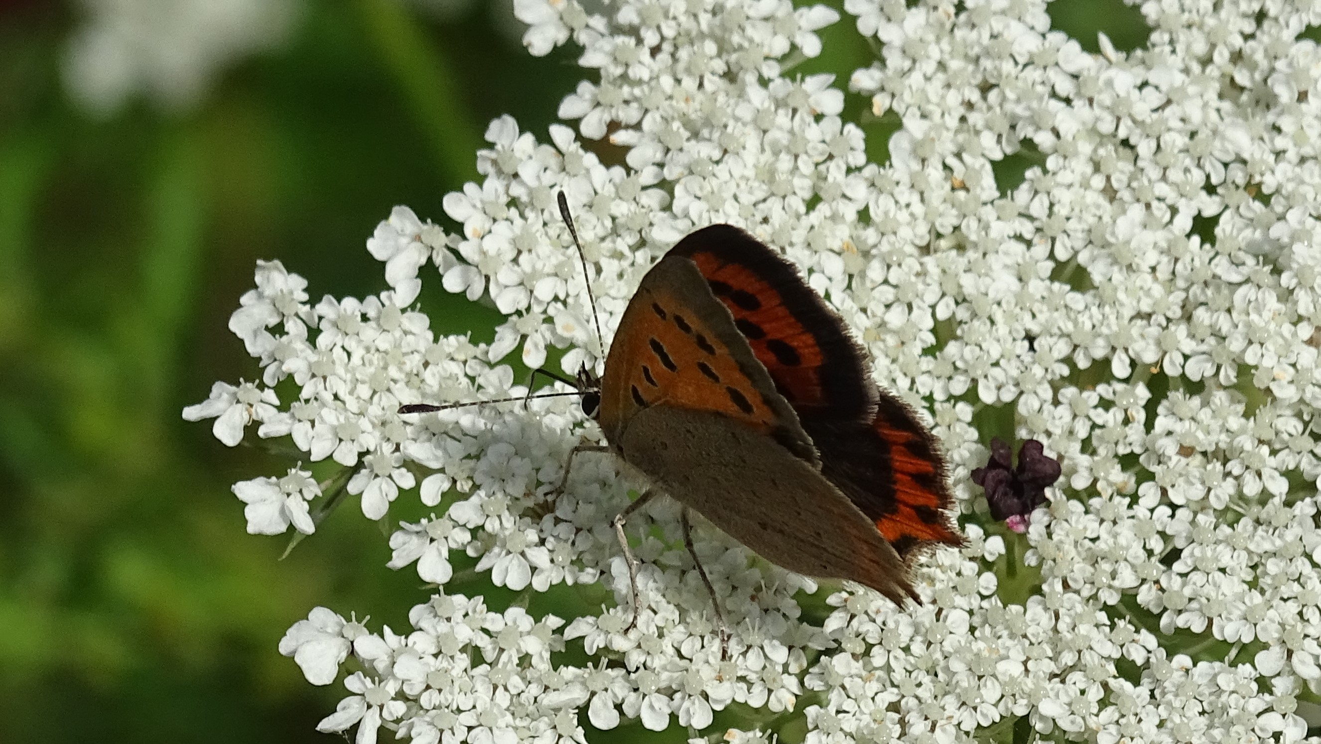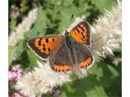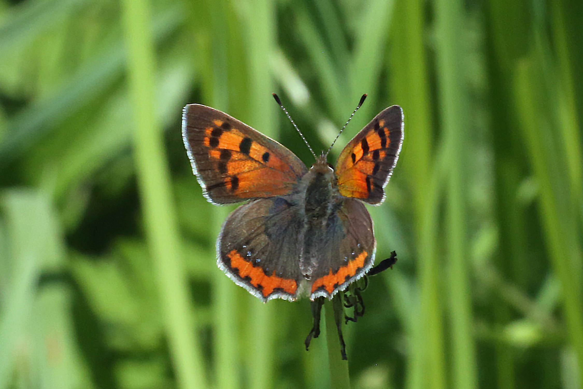 Kleiner Feuerfalter (Lycaena phlaeas (Linnaeus, 1761)), Laue, Rekultivierungsbereich der Tagebaulandschaft Goitzsche östlich vom Seelhausener See, nahe Leipzig, 16. Juni 2019