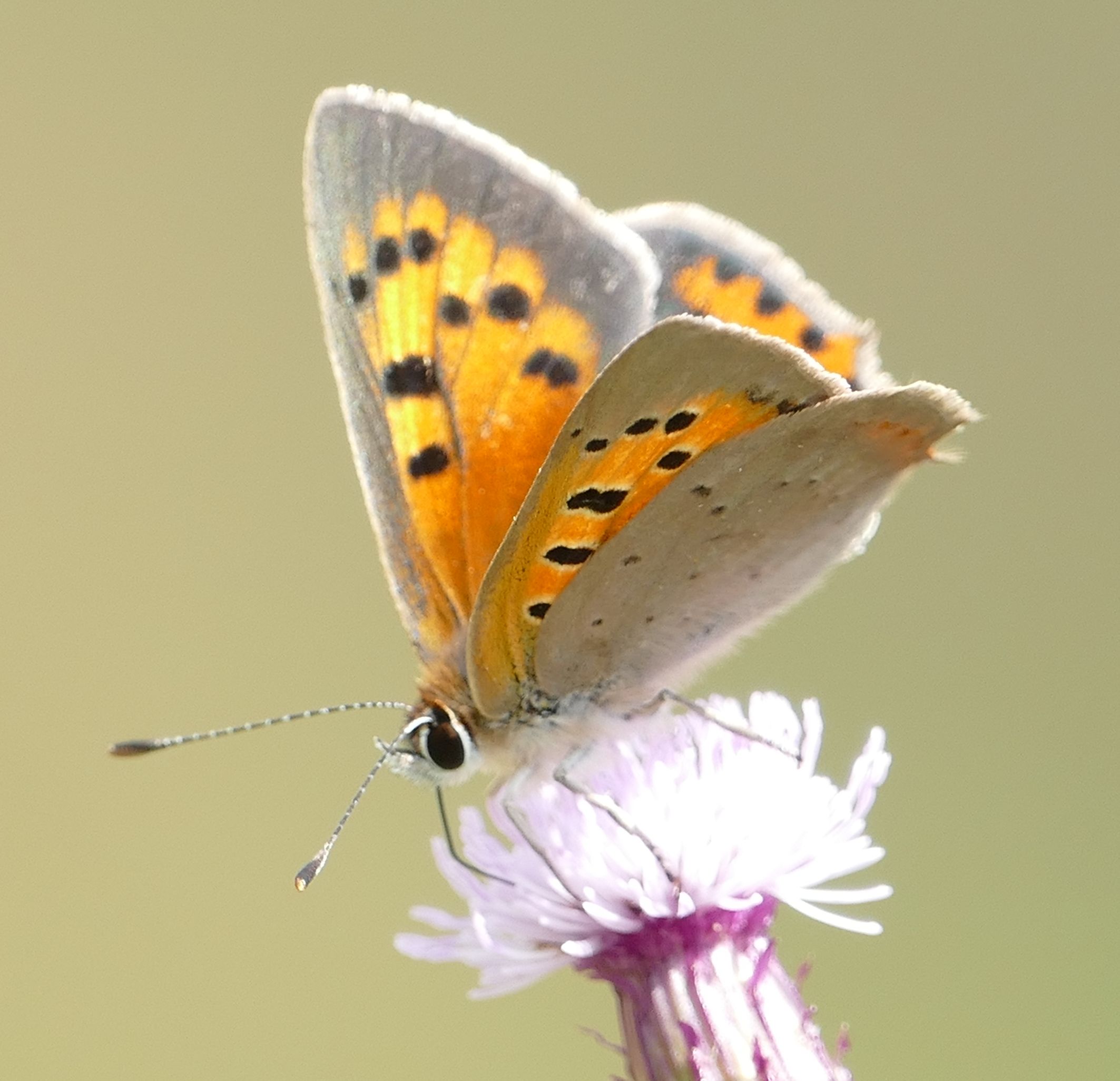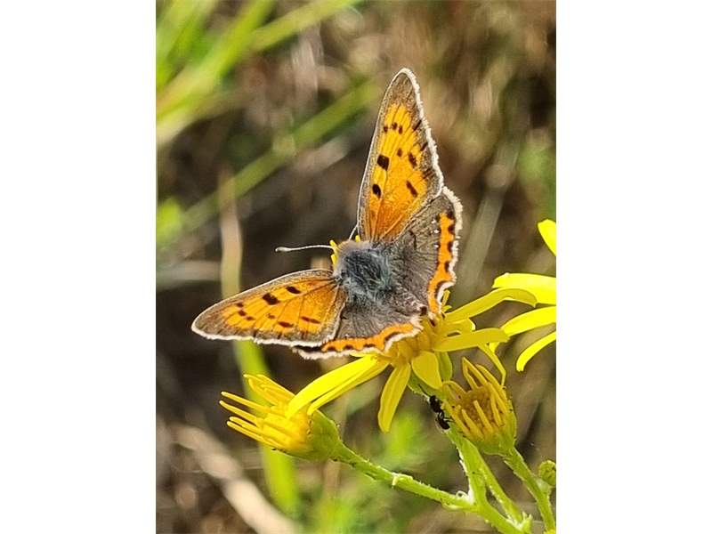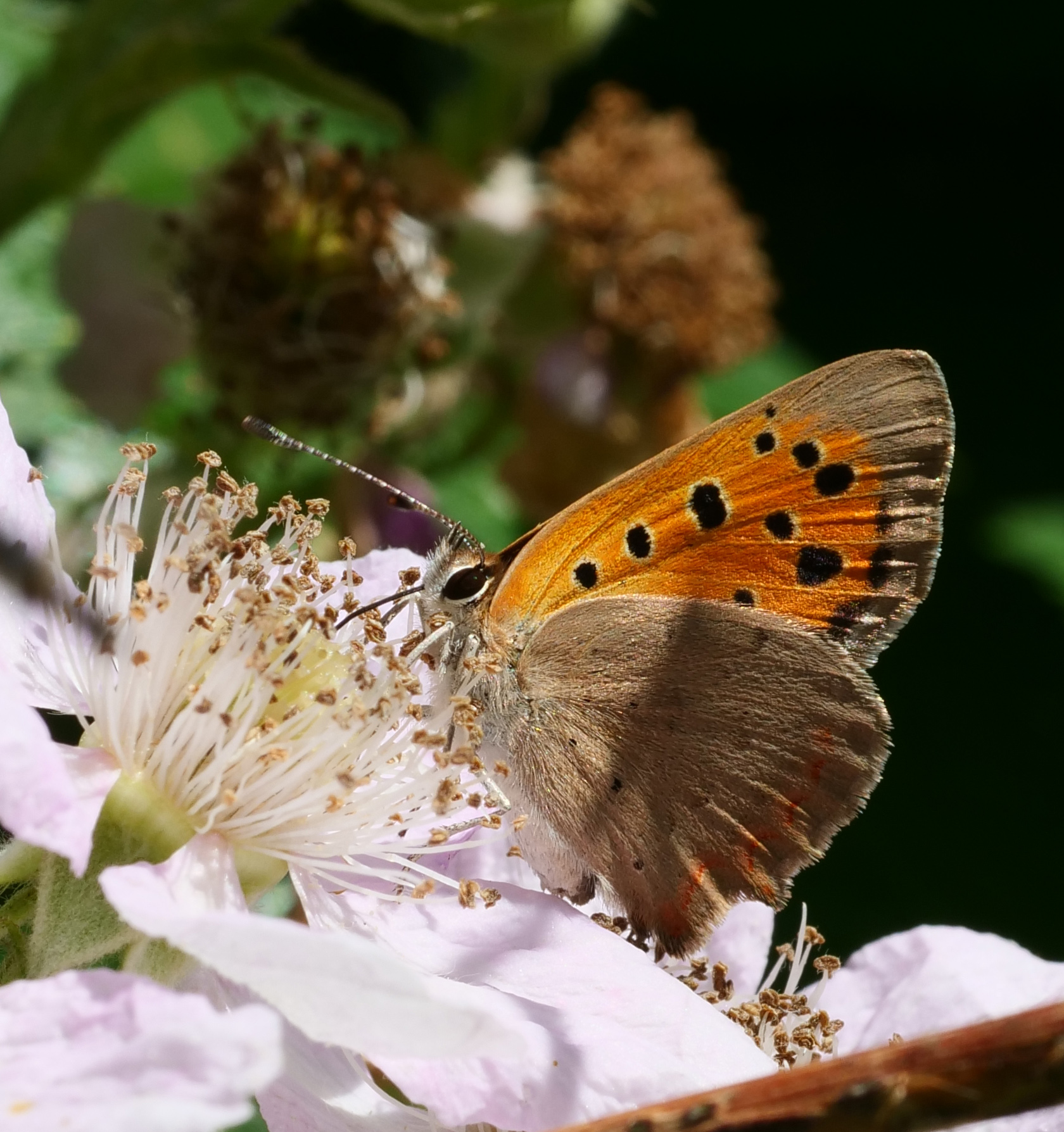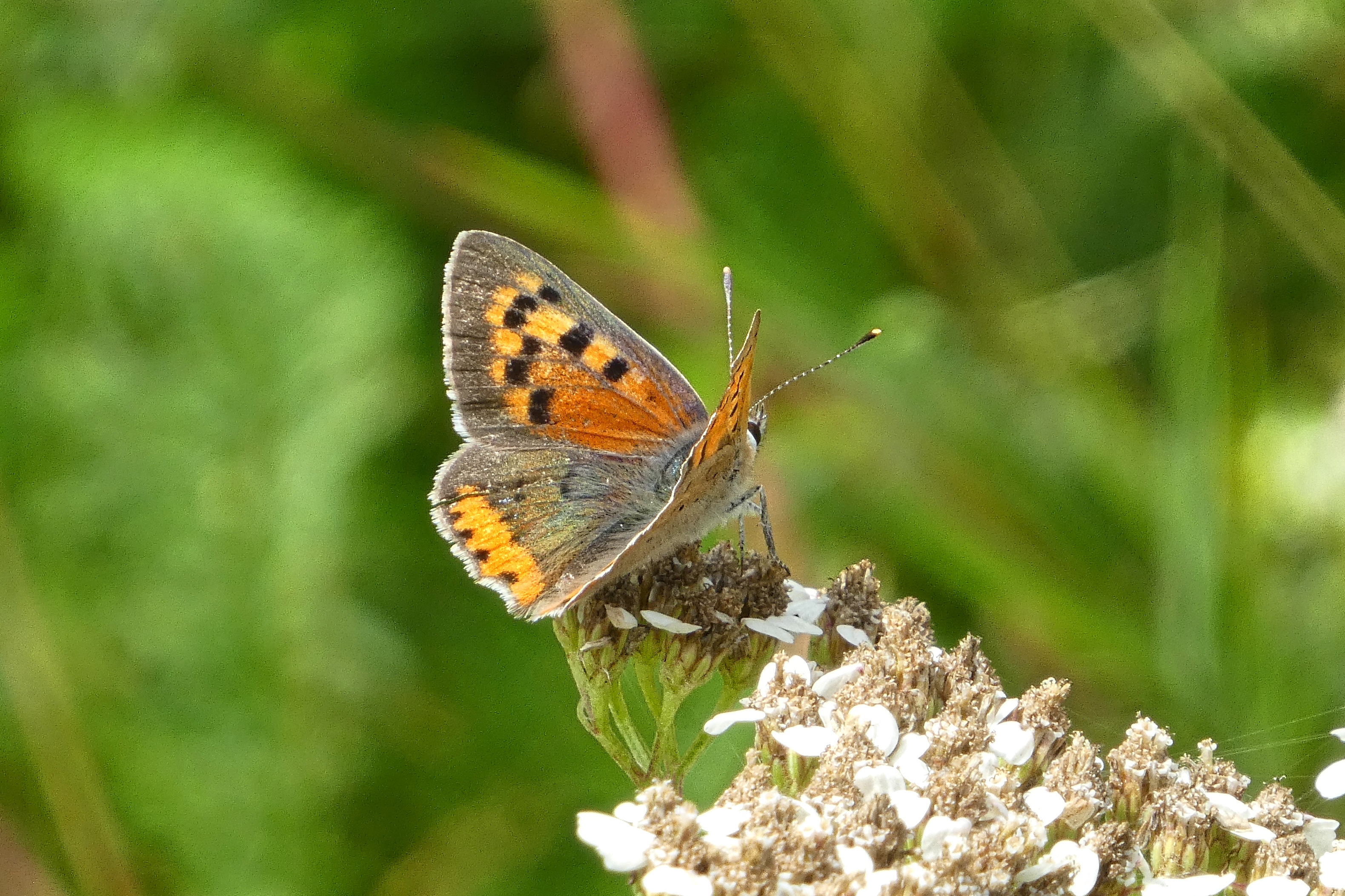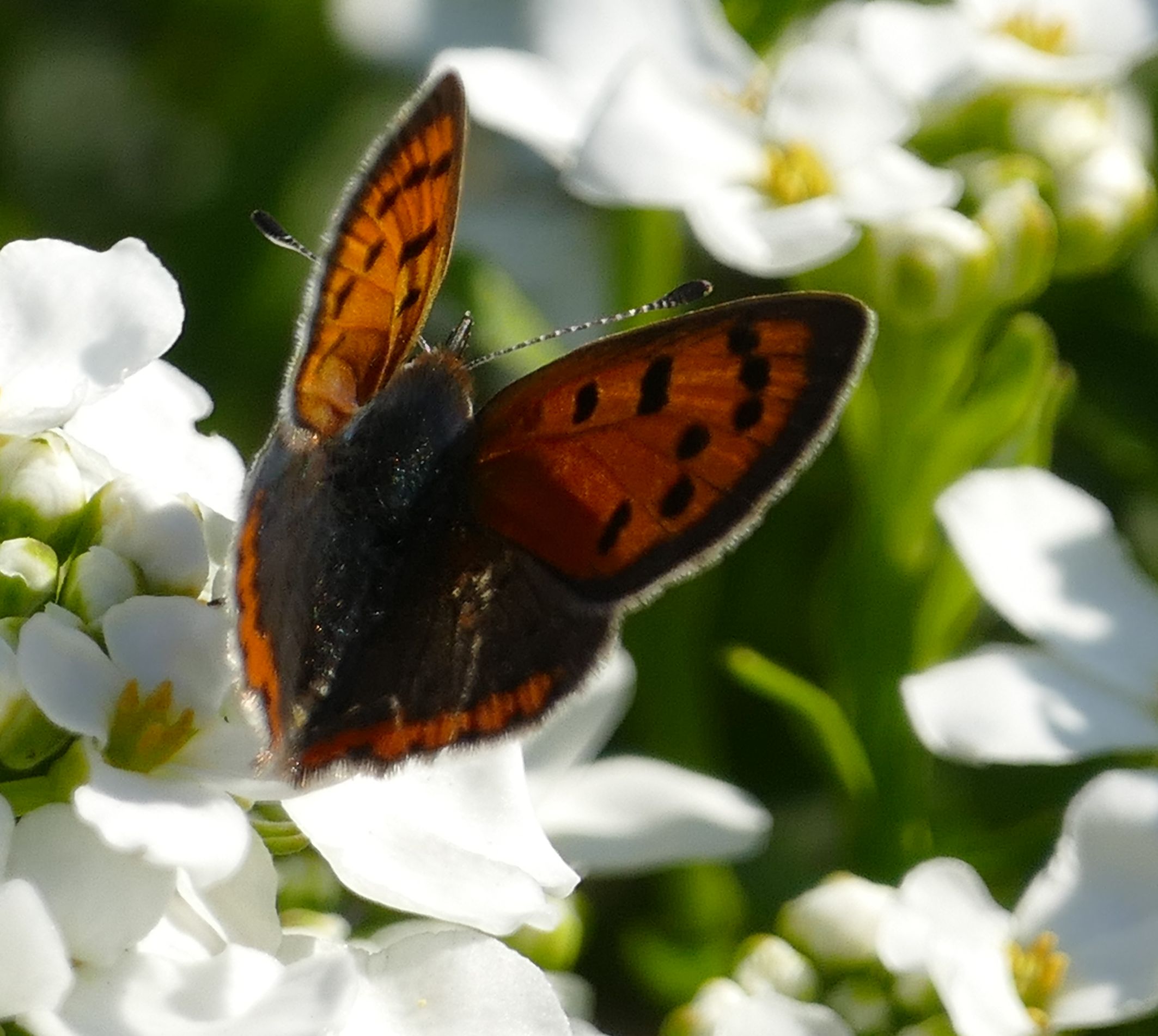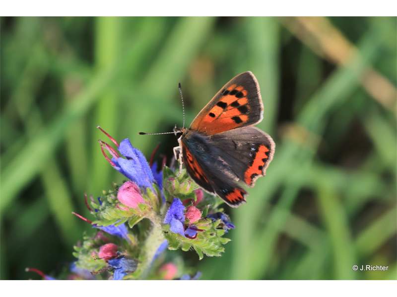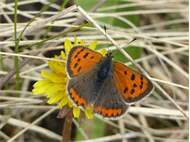 Kleiner Feuerfalter (Lycaena phlaeas (Linnaeus, 1761)), Laue, Rekultivierungsbereich der Tagebaulandschaft Goitzsche östlich vom Seelhausener See, nahe Leipzig, 16. Juni 2019