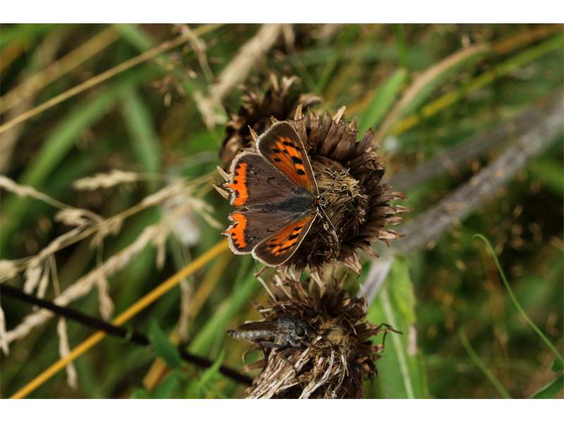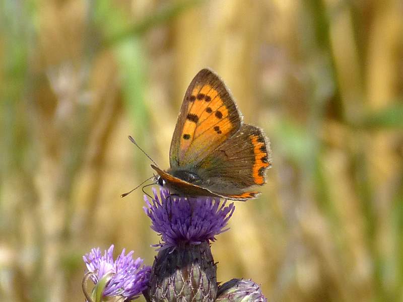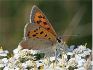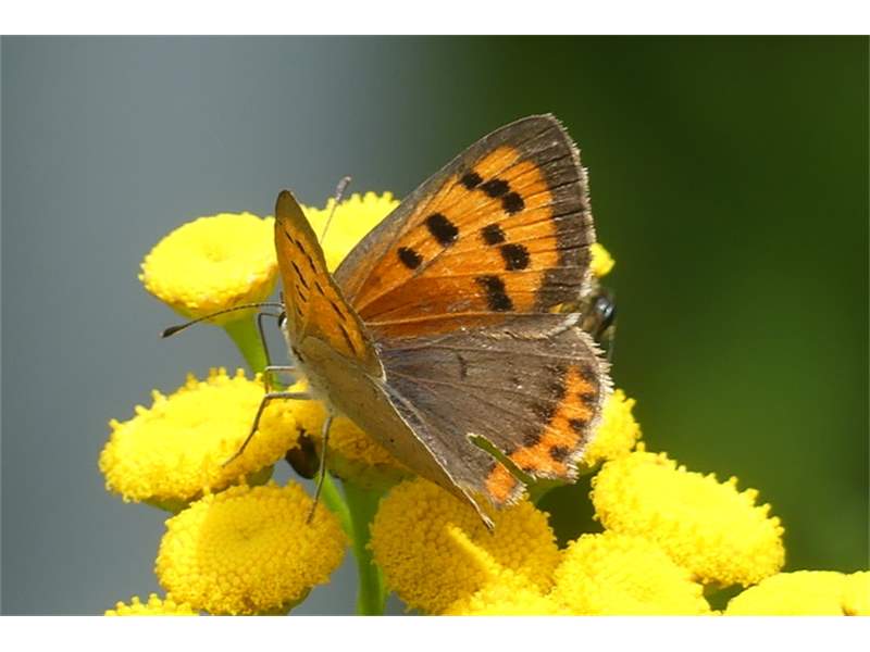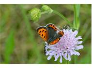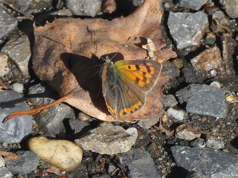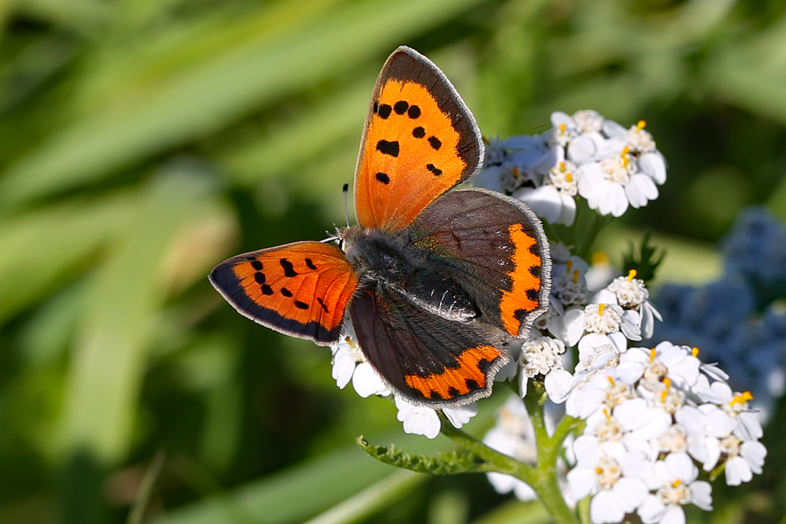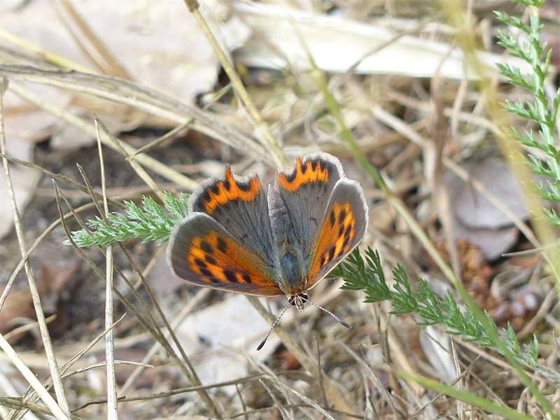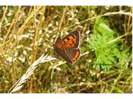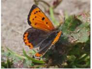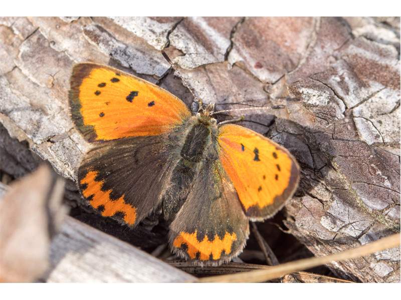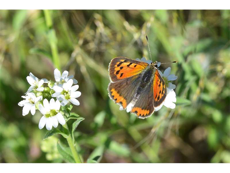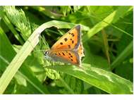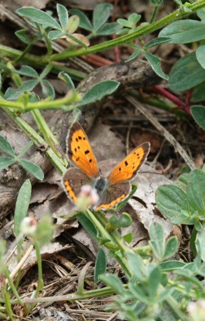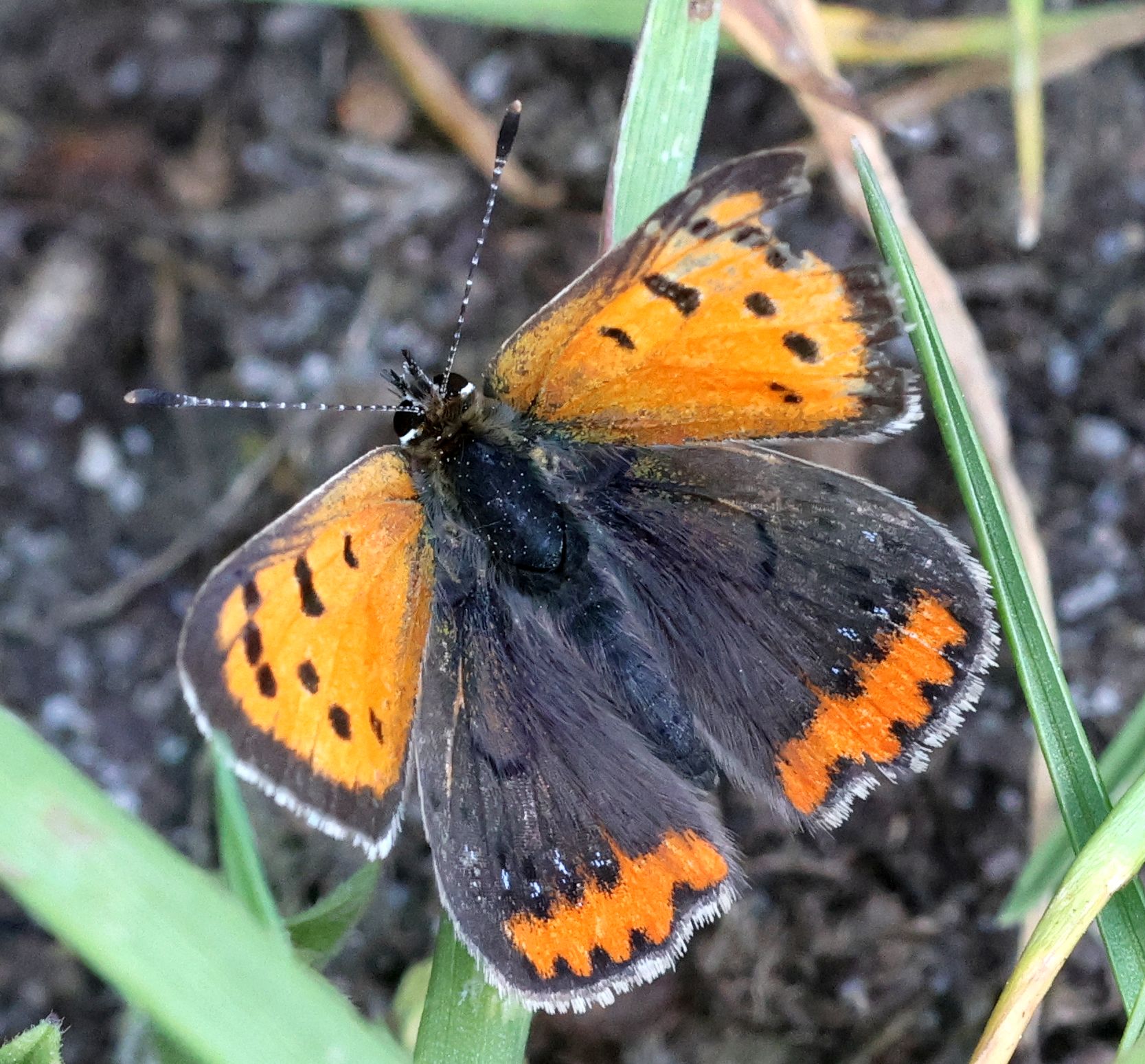 Kleiner Feuerfalter (Lycaena phlaeas (Linnaeus, 1761)), Laue, Rekultivierungsbereich der Tagebaulandschaft Goitzsche östlich vom Seelhausener See, nahe Leipzig, 16. Juni 2019