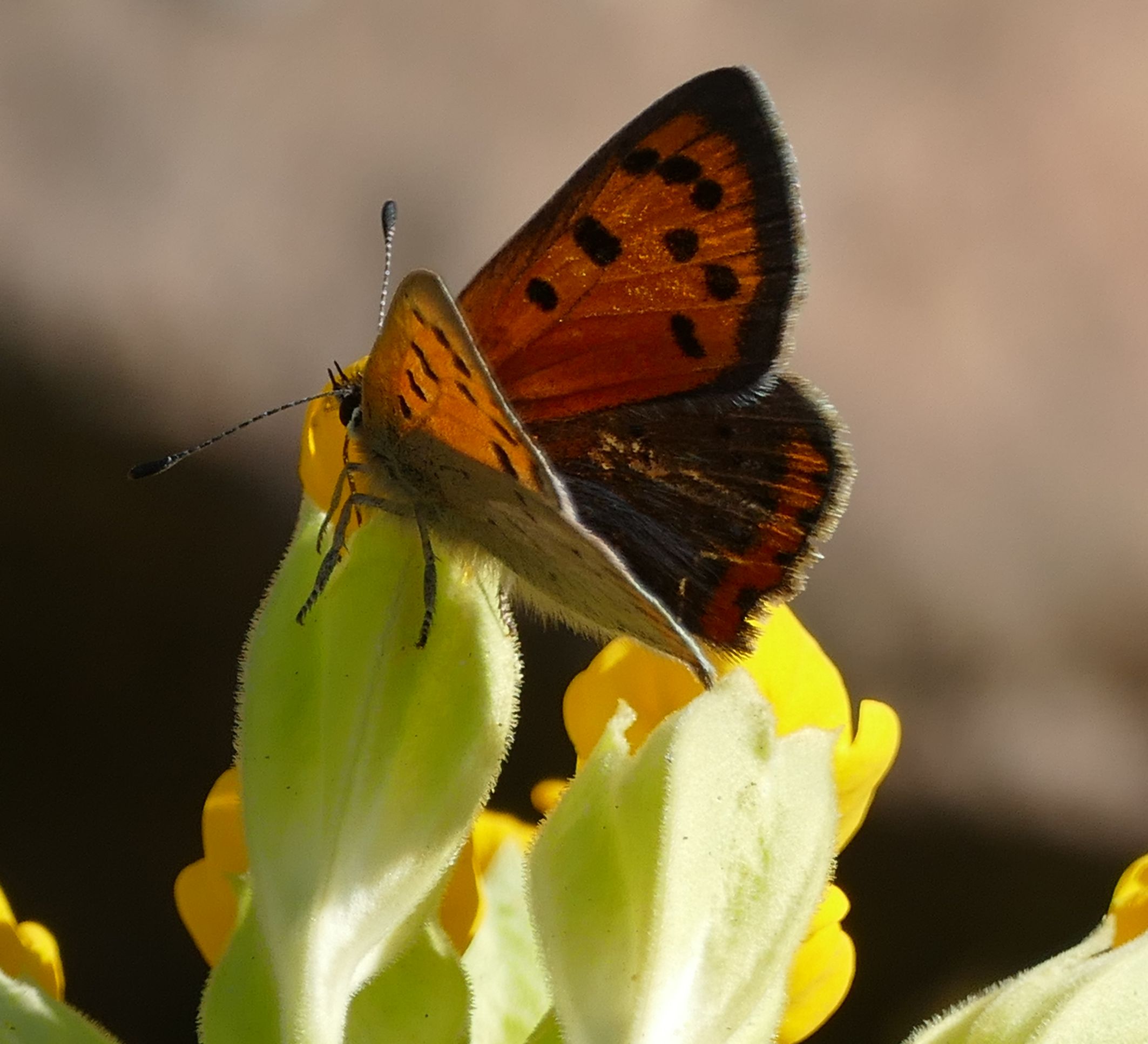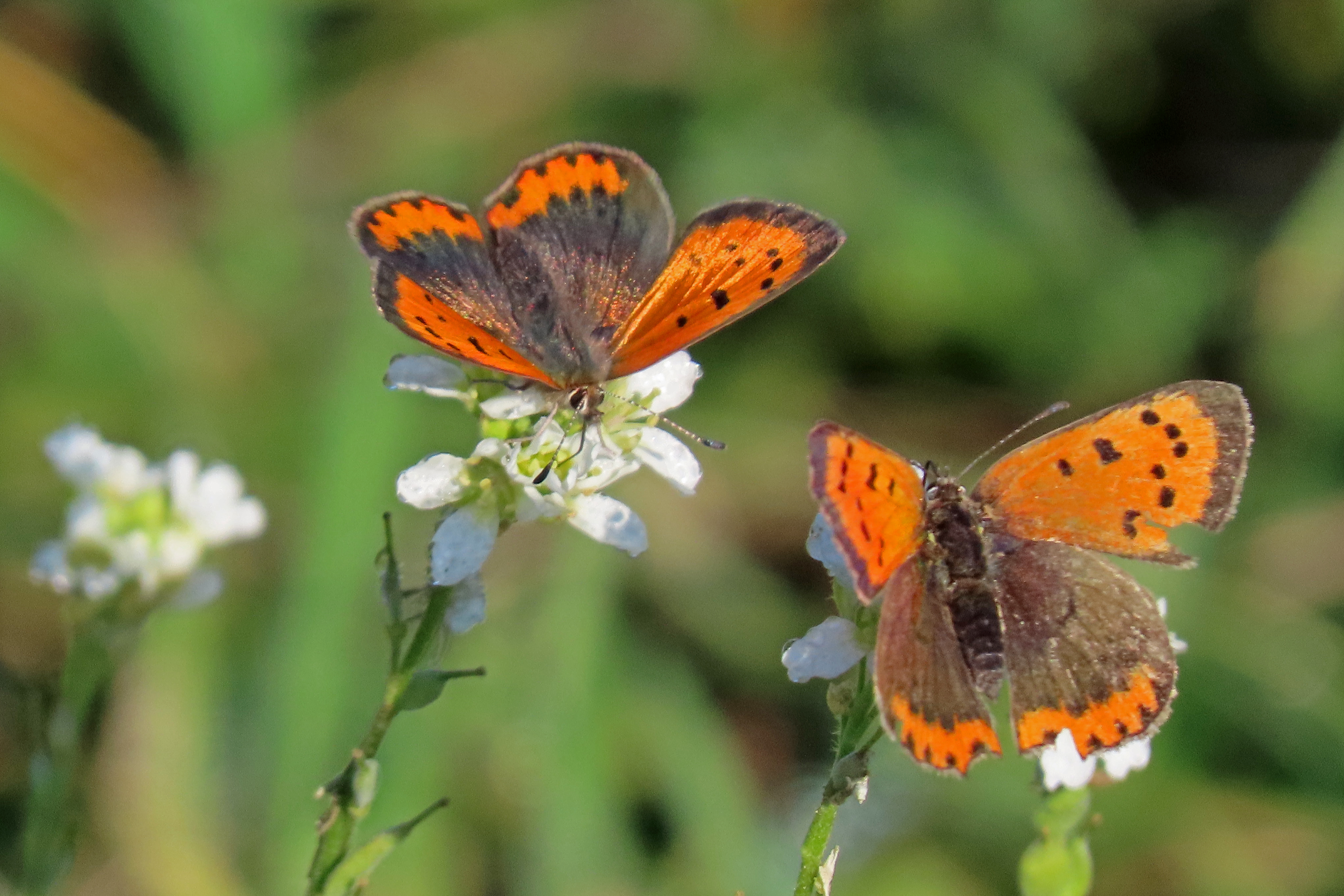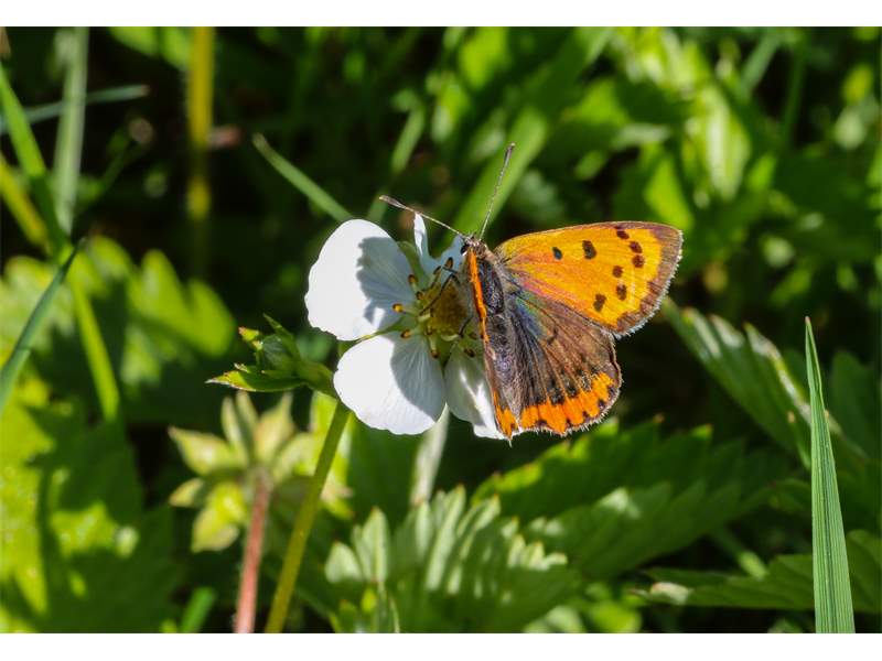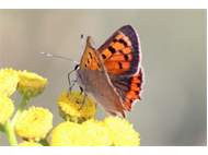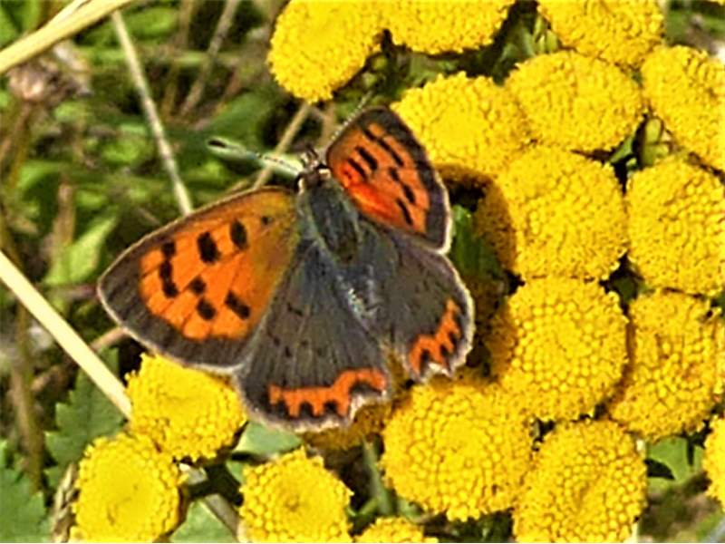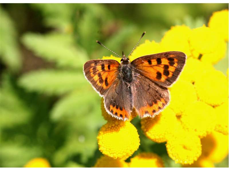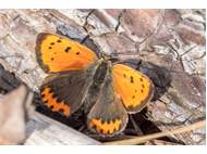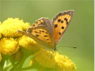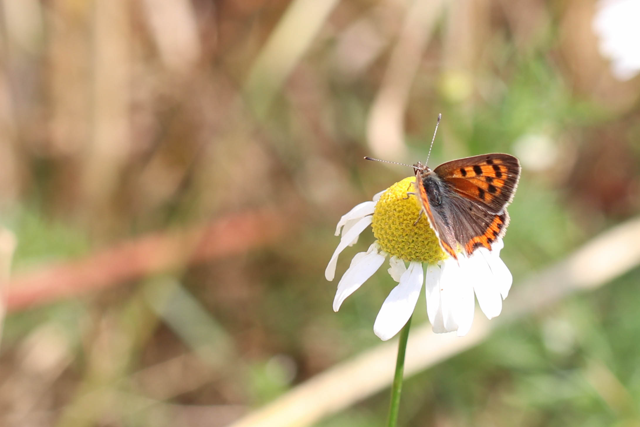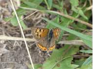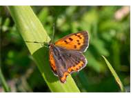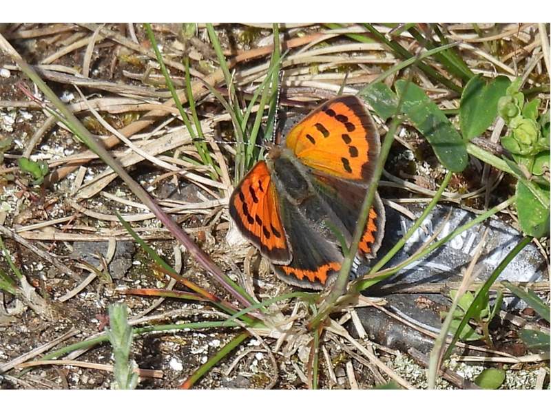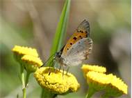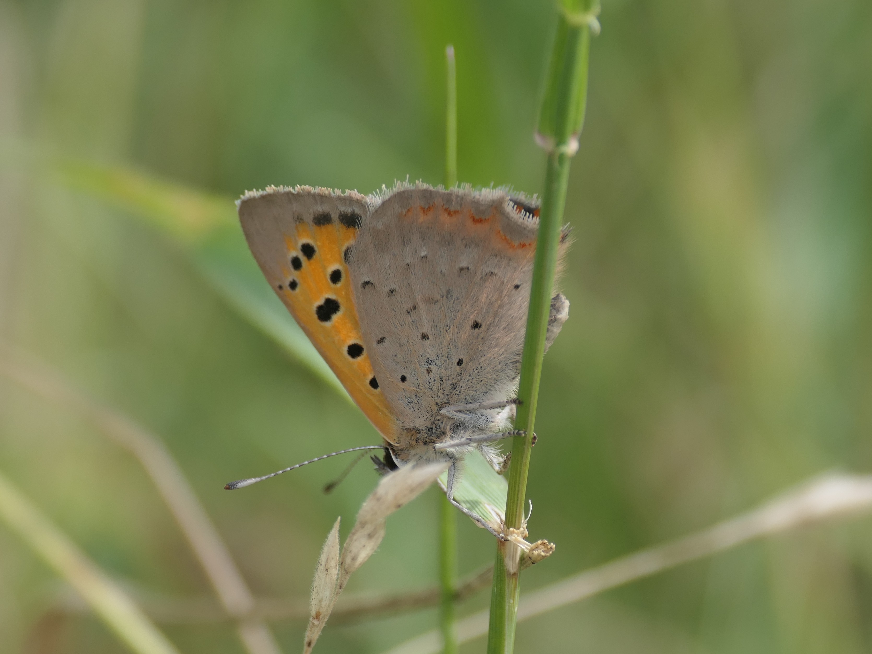 Kleiner Feuerfalter (Lycaena phlaeas (Linnaeus, 1761)), Laue, Rekultivierungsbereich der Tagebaulandschaft Goitzsche östlich vom Seelhausener See, nahe Leipzig, 16. Juni 2019