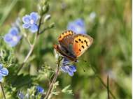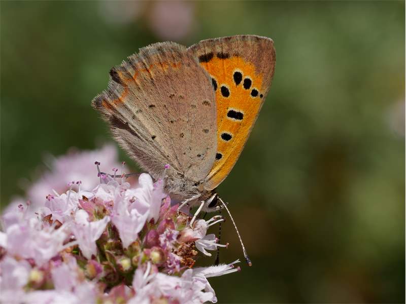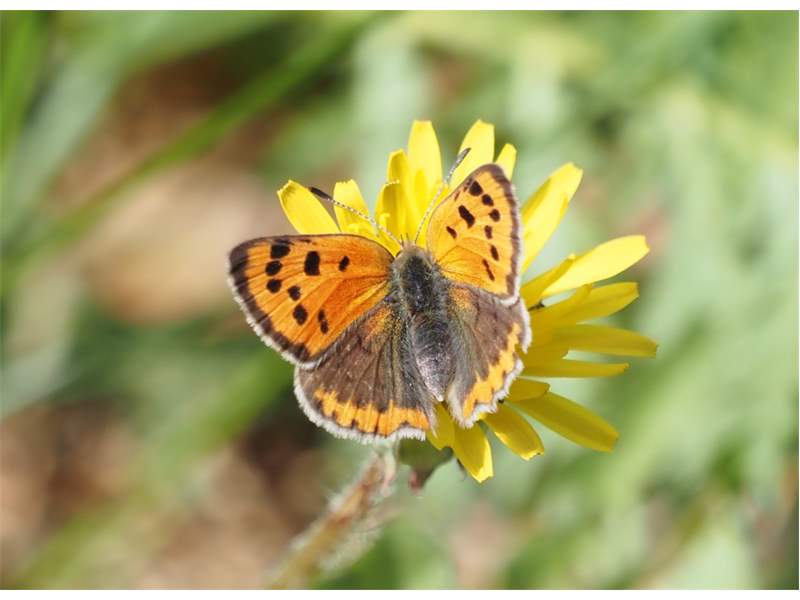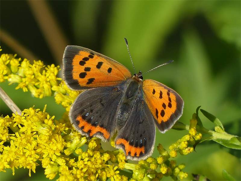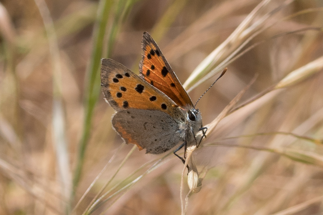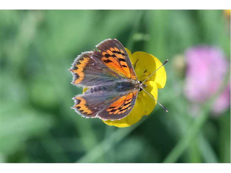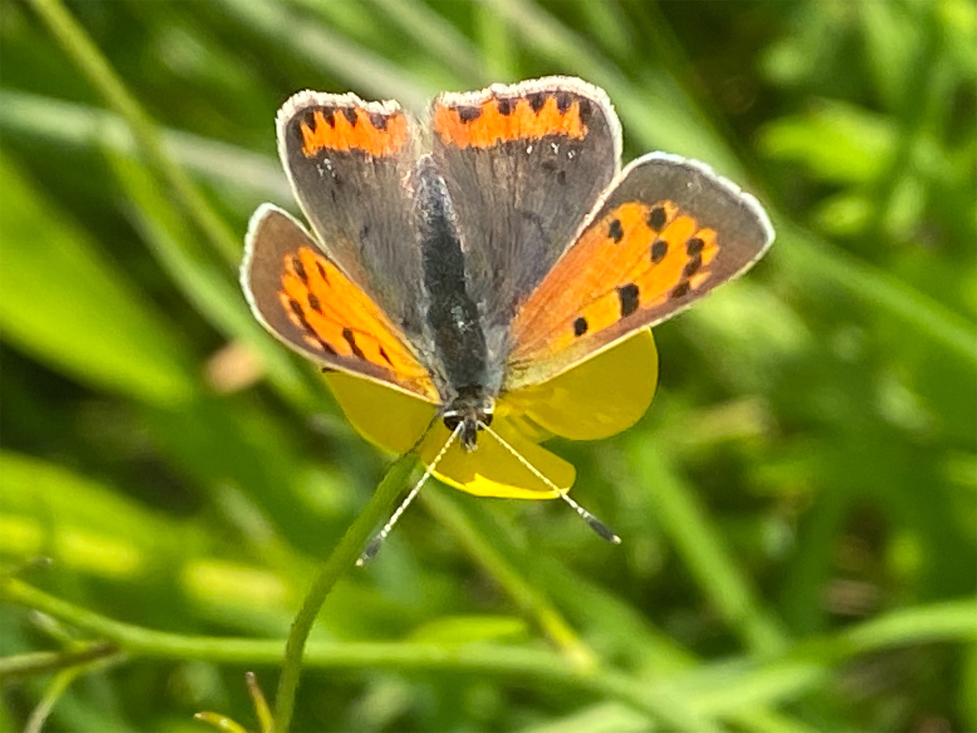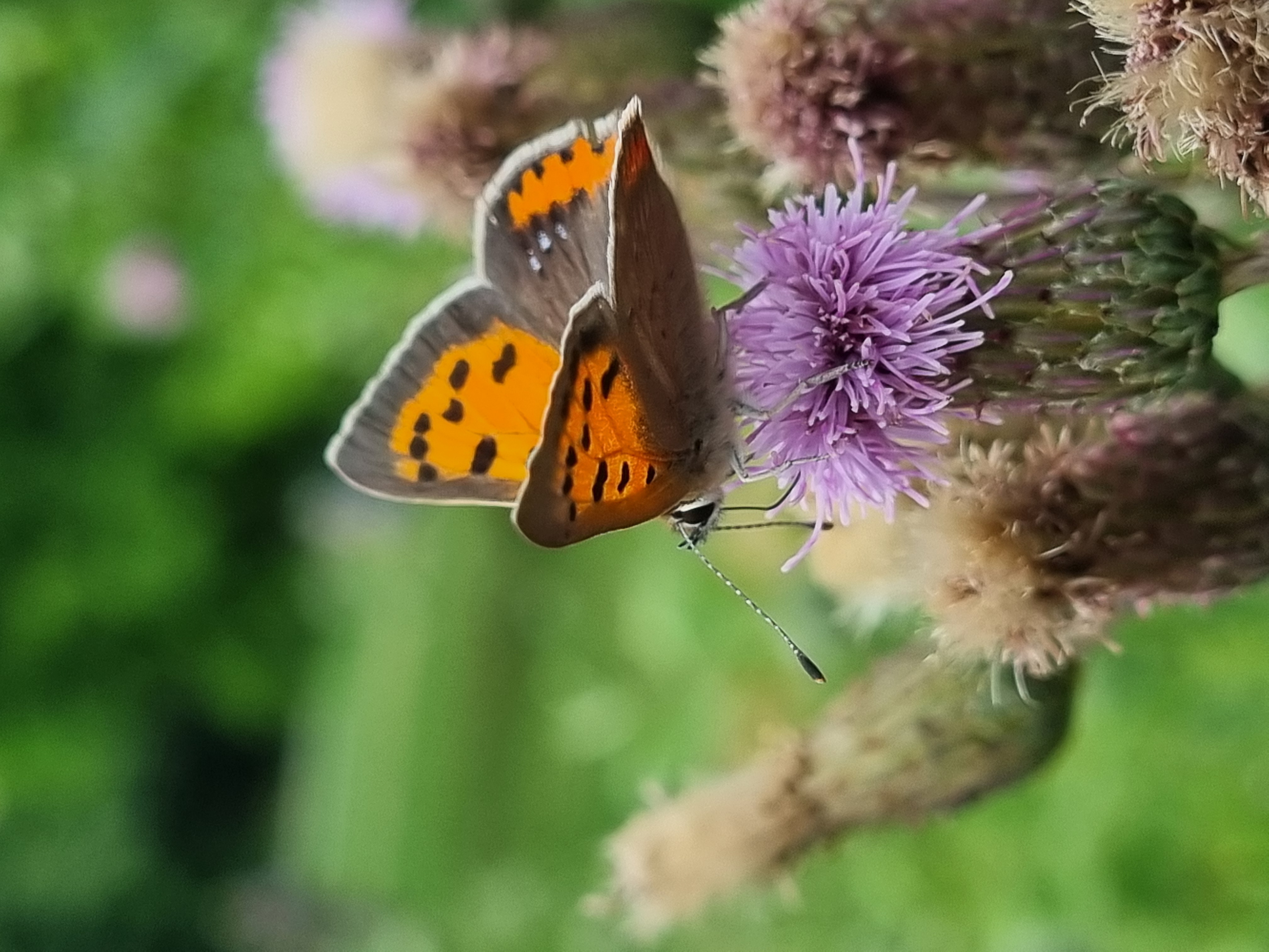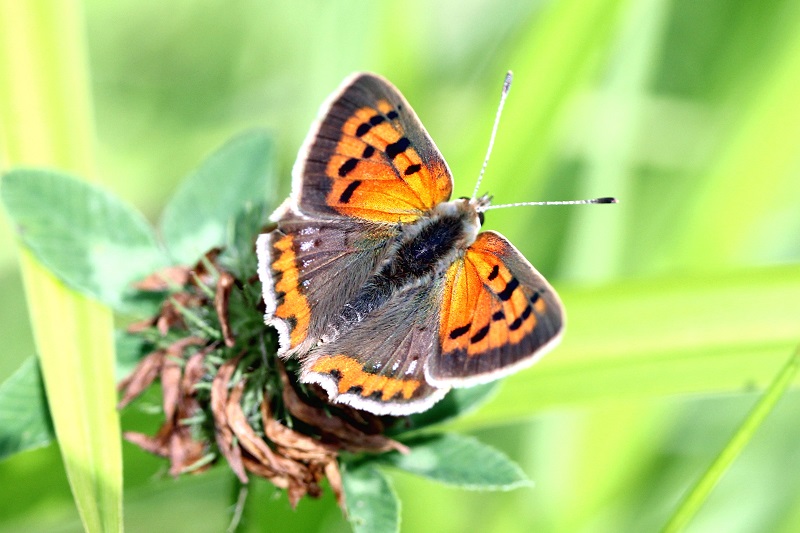 Kleiner Feuerfalter (Lycaena phlaeas (Linnaeus, 1761)), Laue, Rekultivierungsbereich der Tagebaulandschaft Goitzsche östlich vom Seelhausener See, nahe Leipzig, 16. Juni 2019