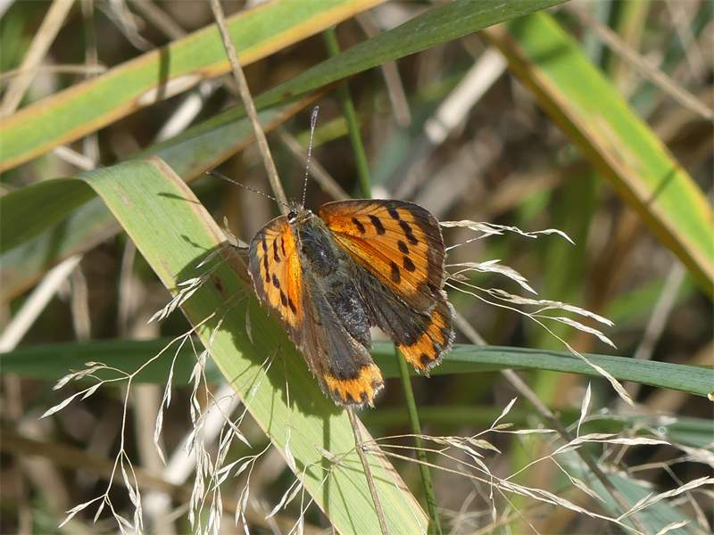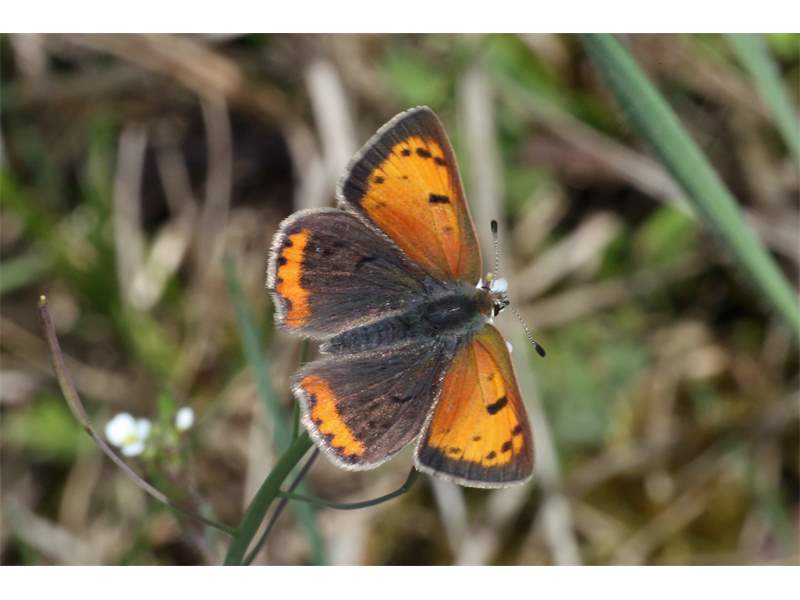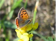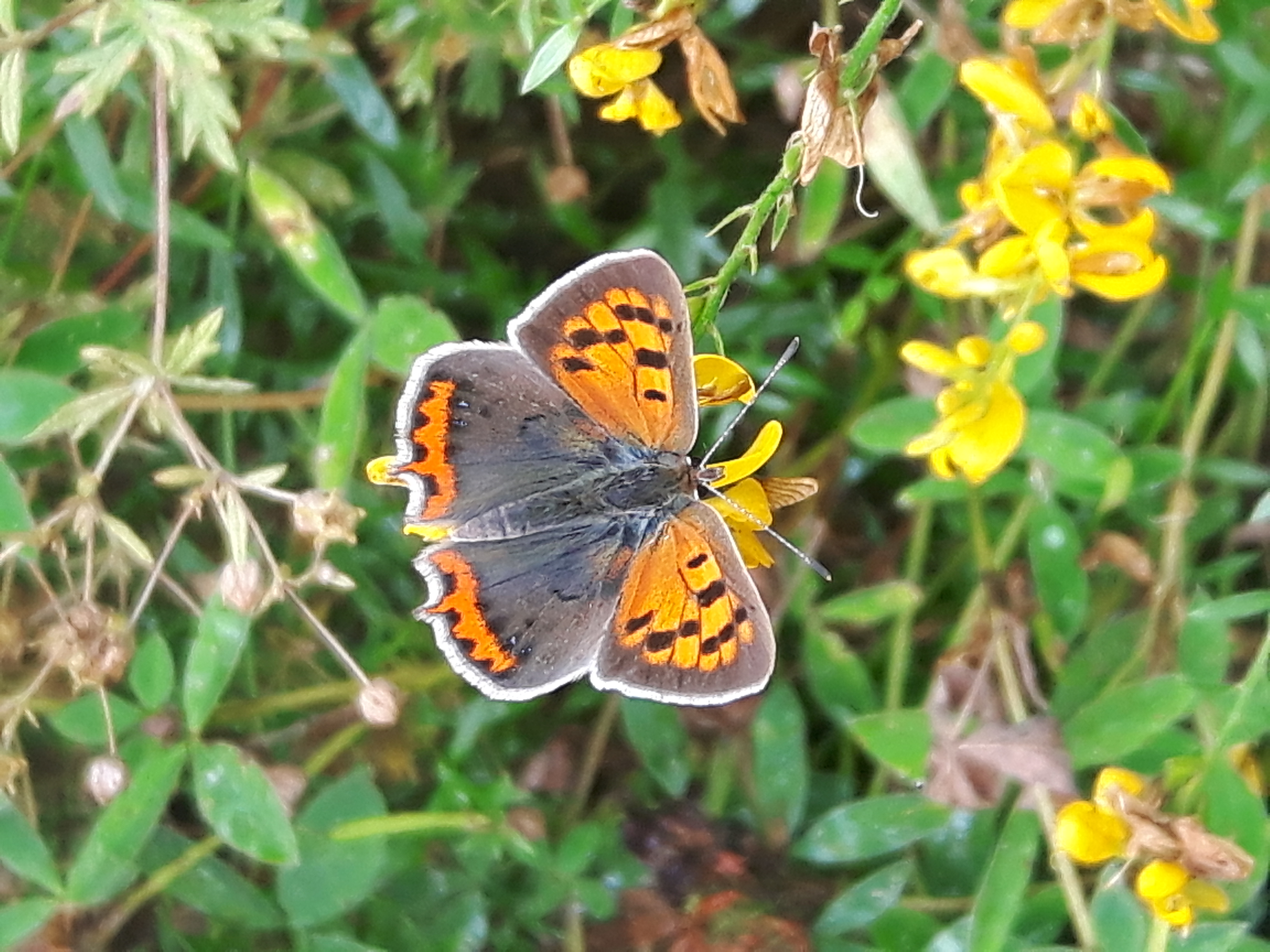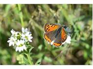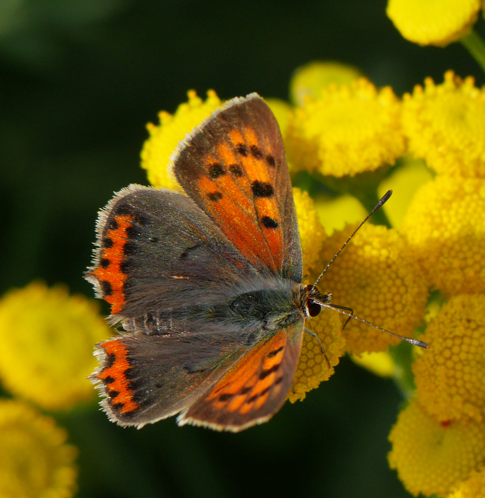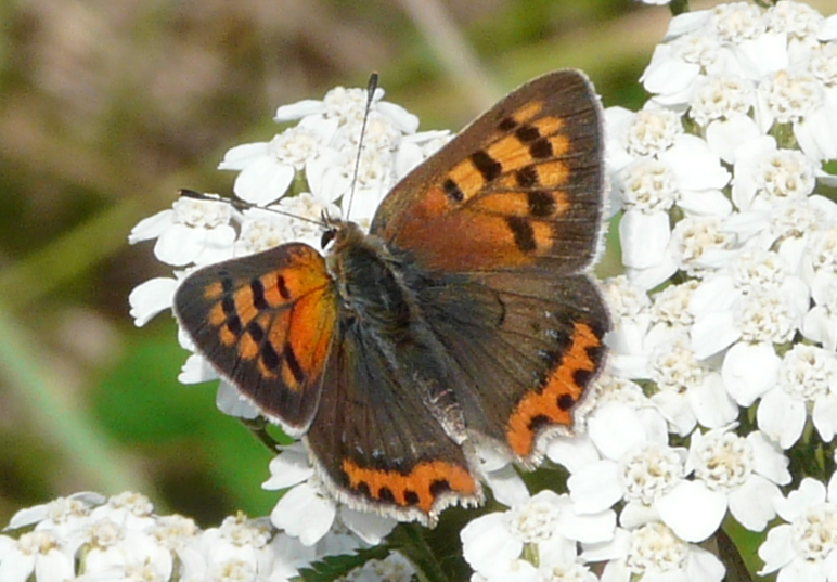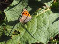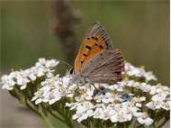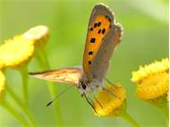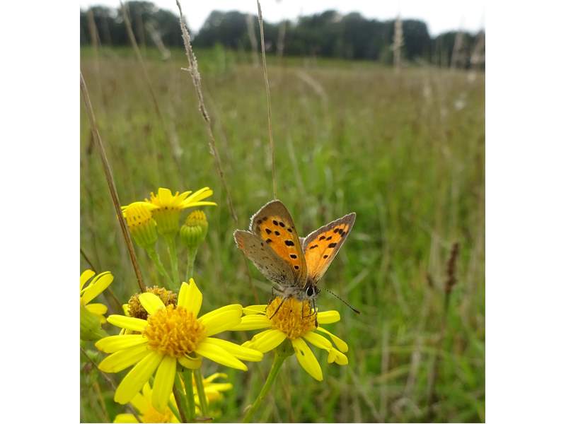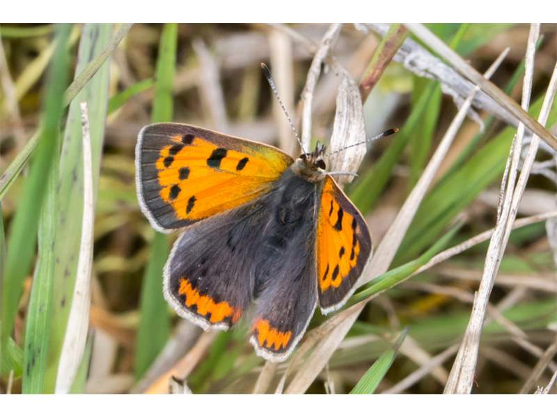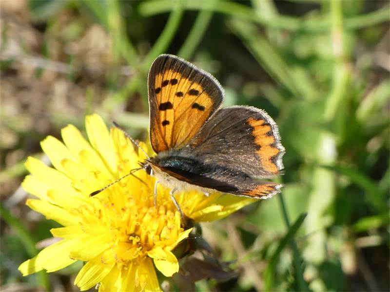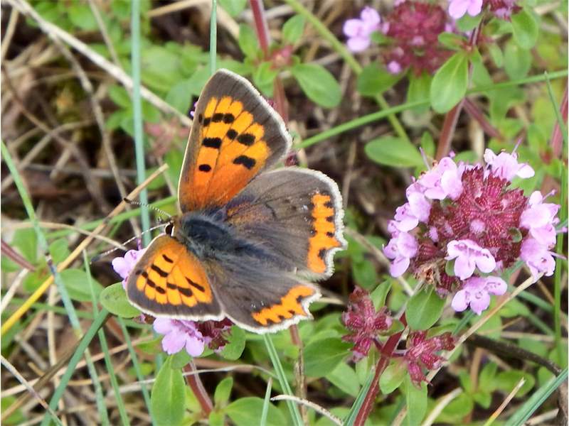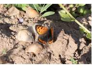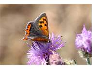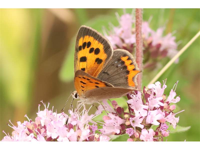 Kleiner Feuerfalter (Lycaena phlaeas (Linnaeus, 1761)), Laue, Rekultivierungsbereich der Tagebaulandschaft Goitzsche östlich vom Seelhausener See, nahe Leipzig, 16. Juni 2019