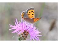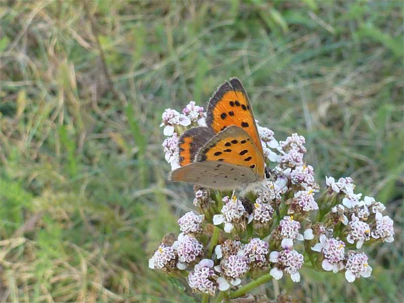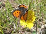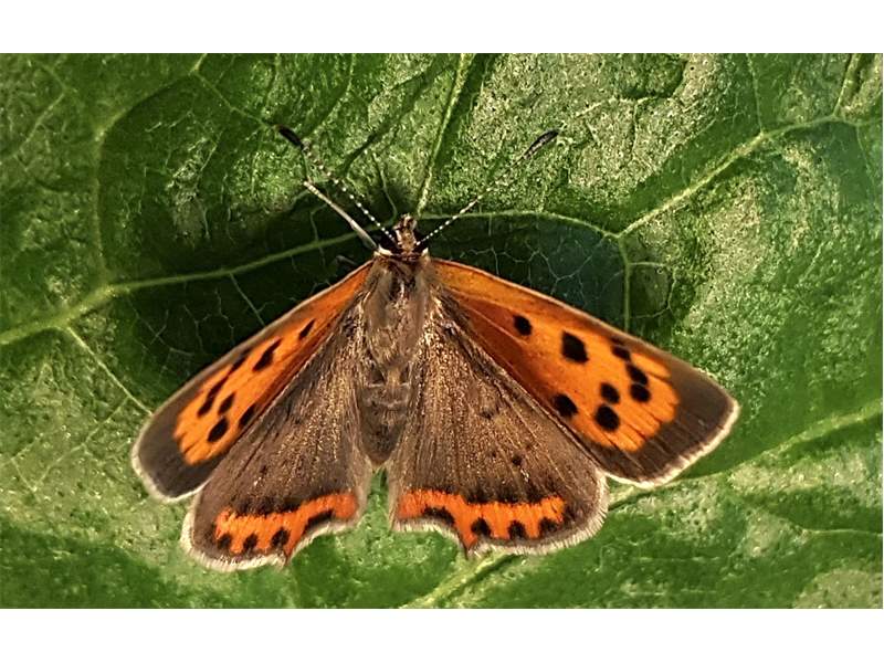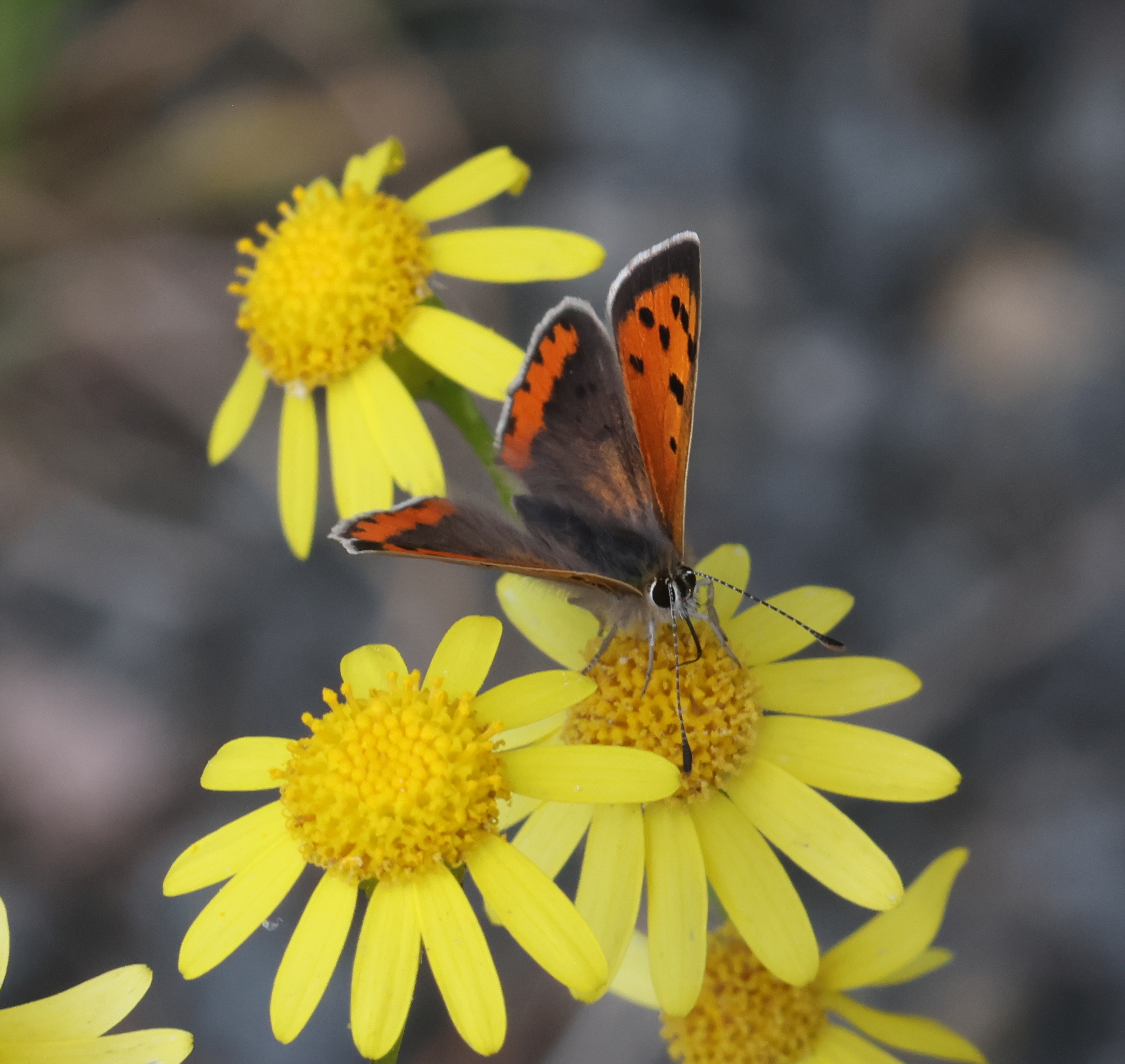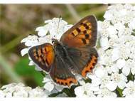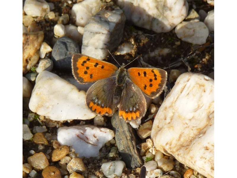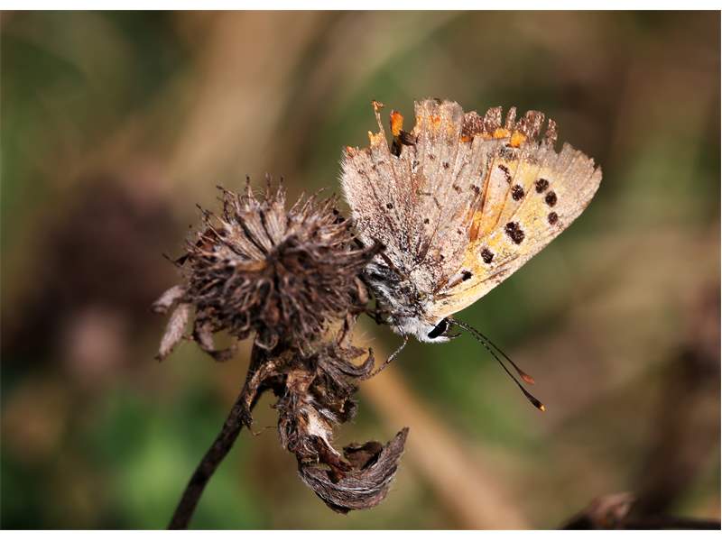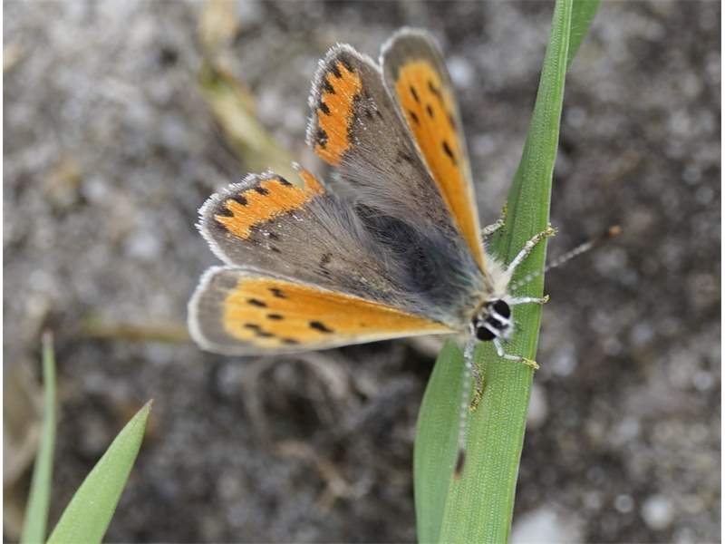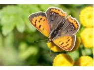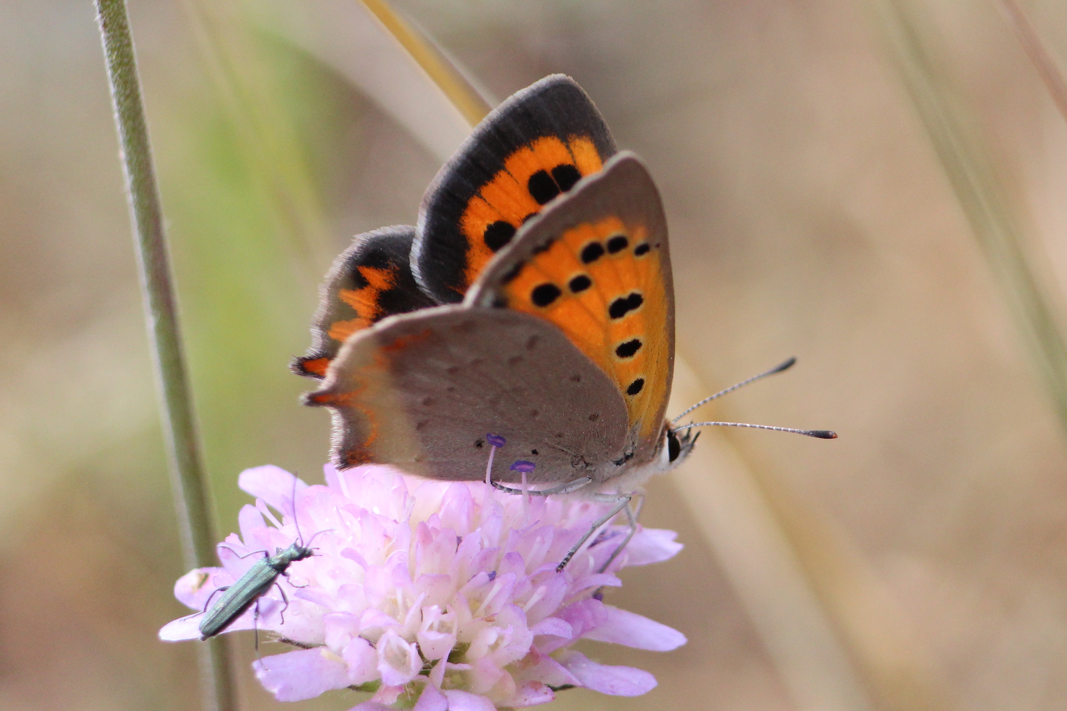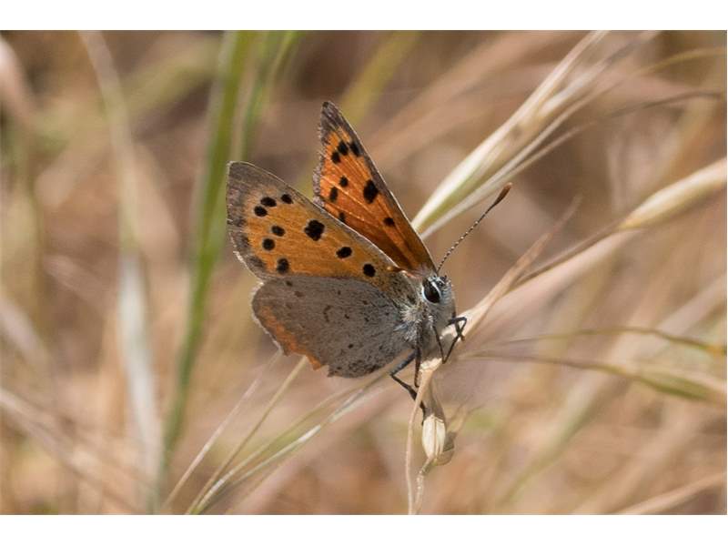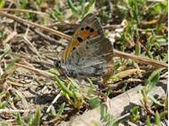 Kleiner Feuerfalter (Lycaena phlaeas (Linnaeus, 1761)), Laue, Rekultivierungsbereich der Tagebaulandschaft Goitzsche östlich vom Seelhausener See, nahe Leipzig, 16. Juni 2019