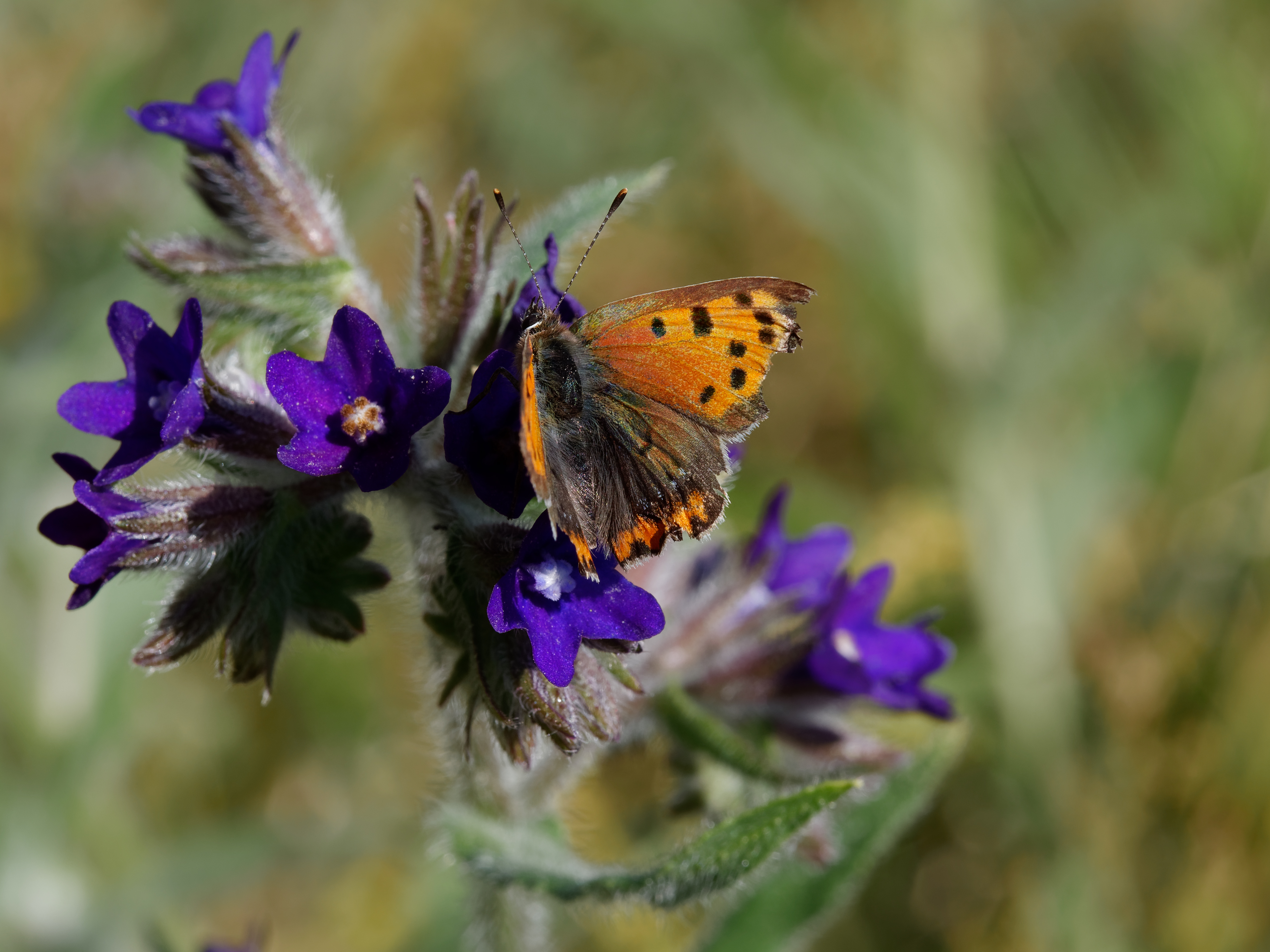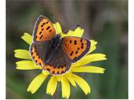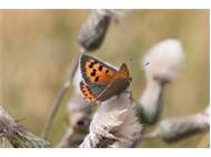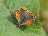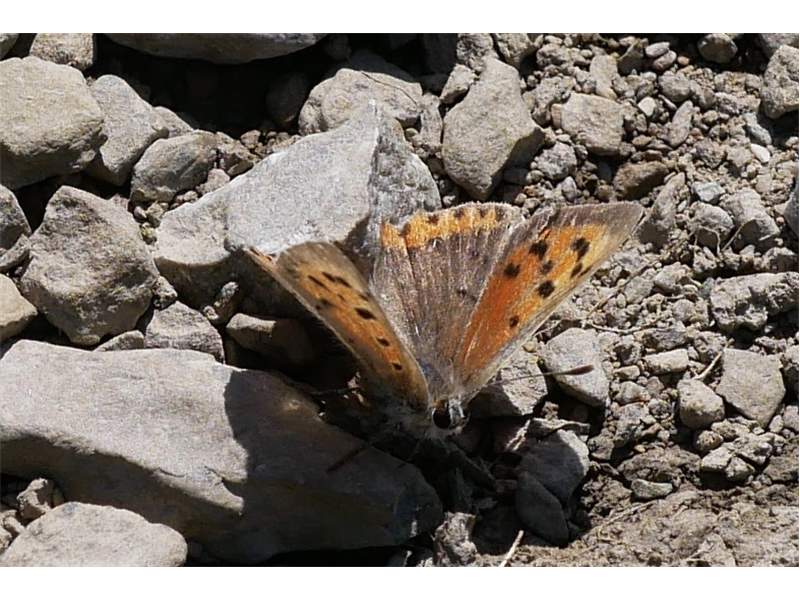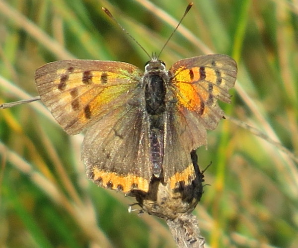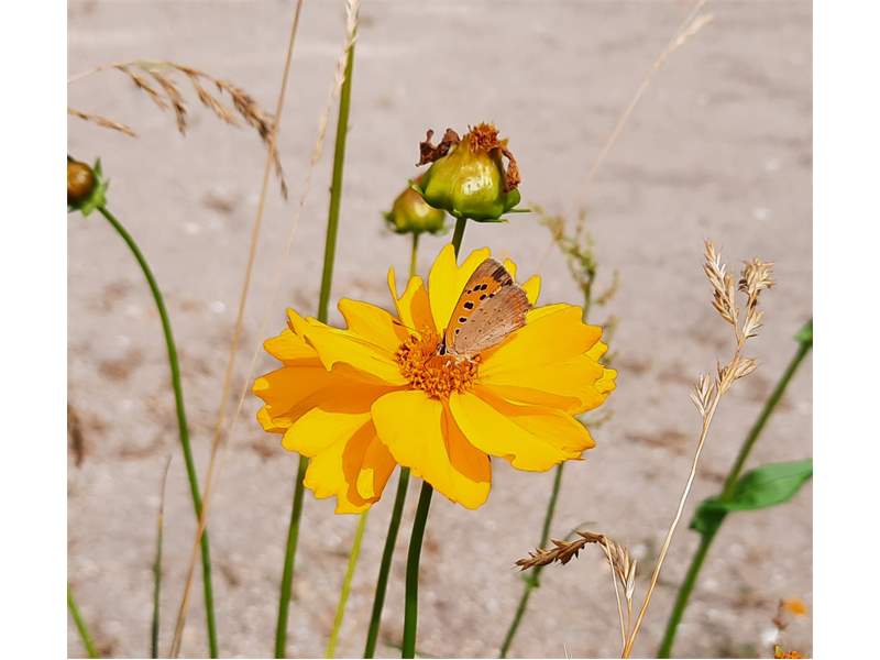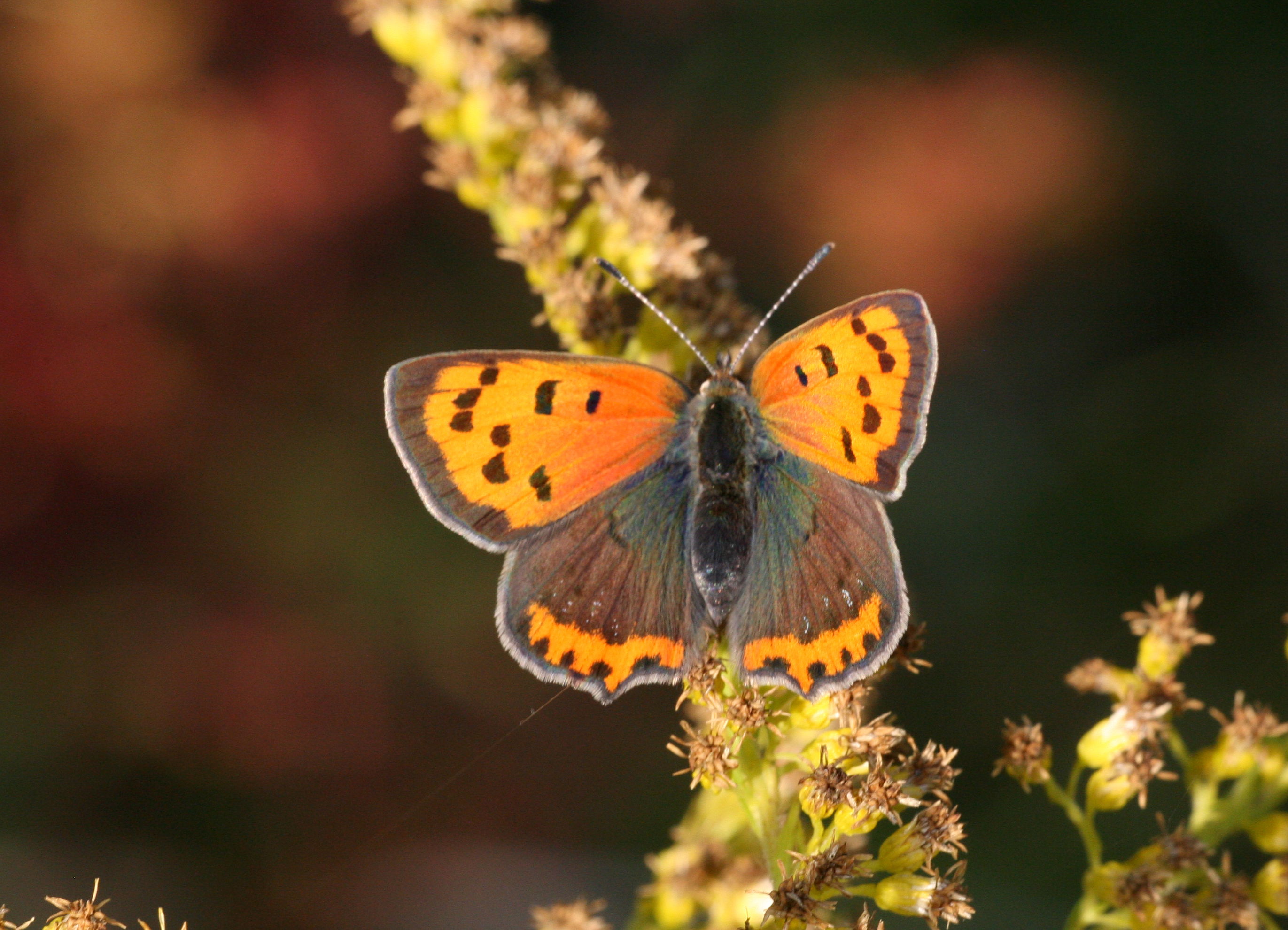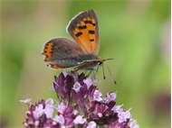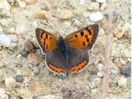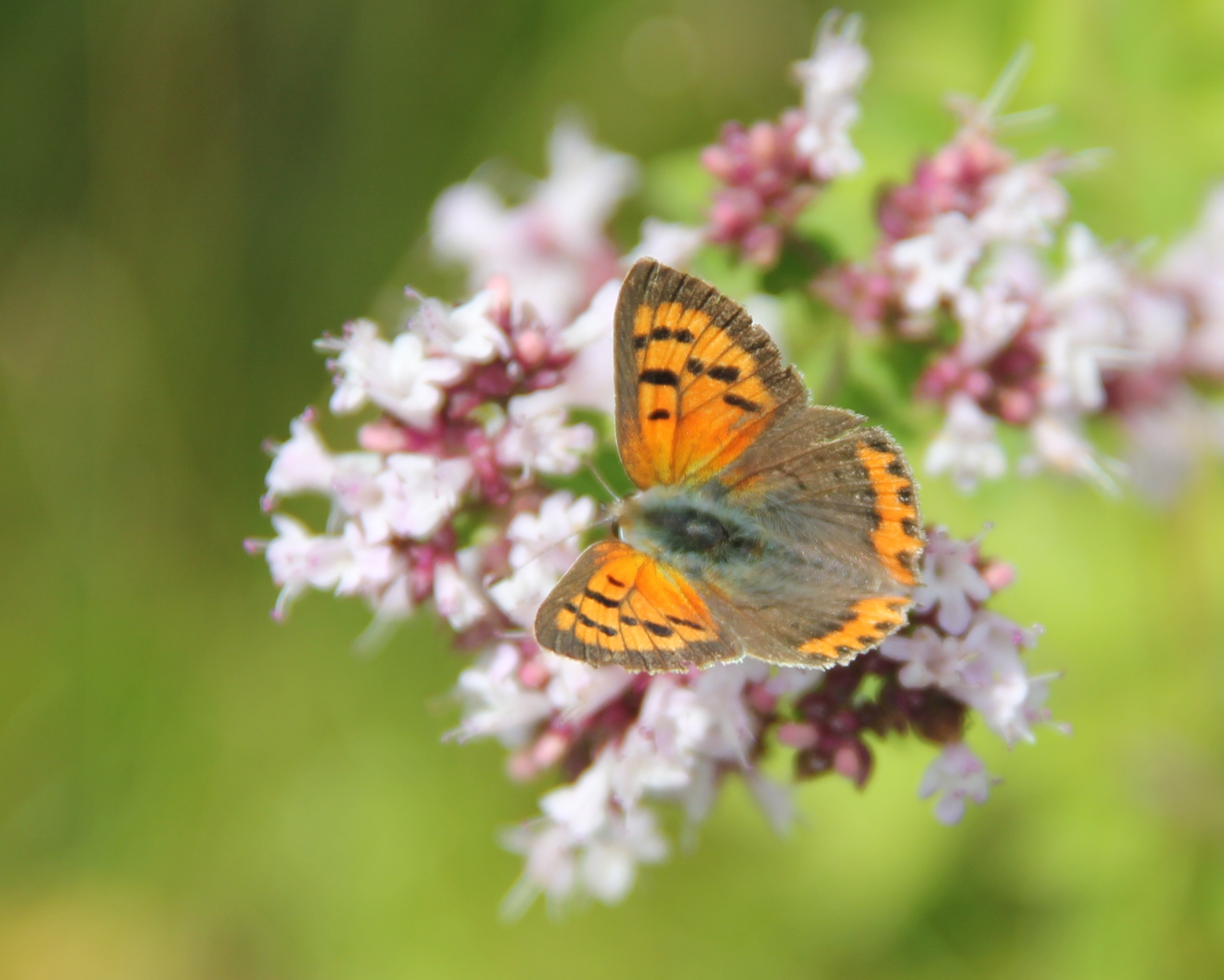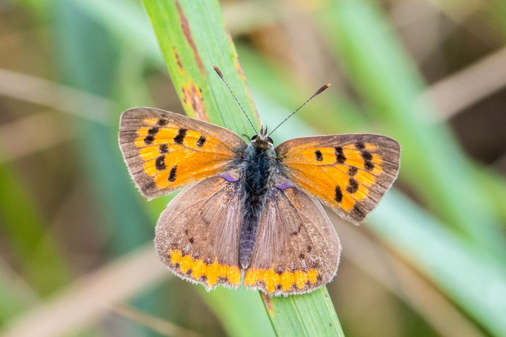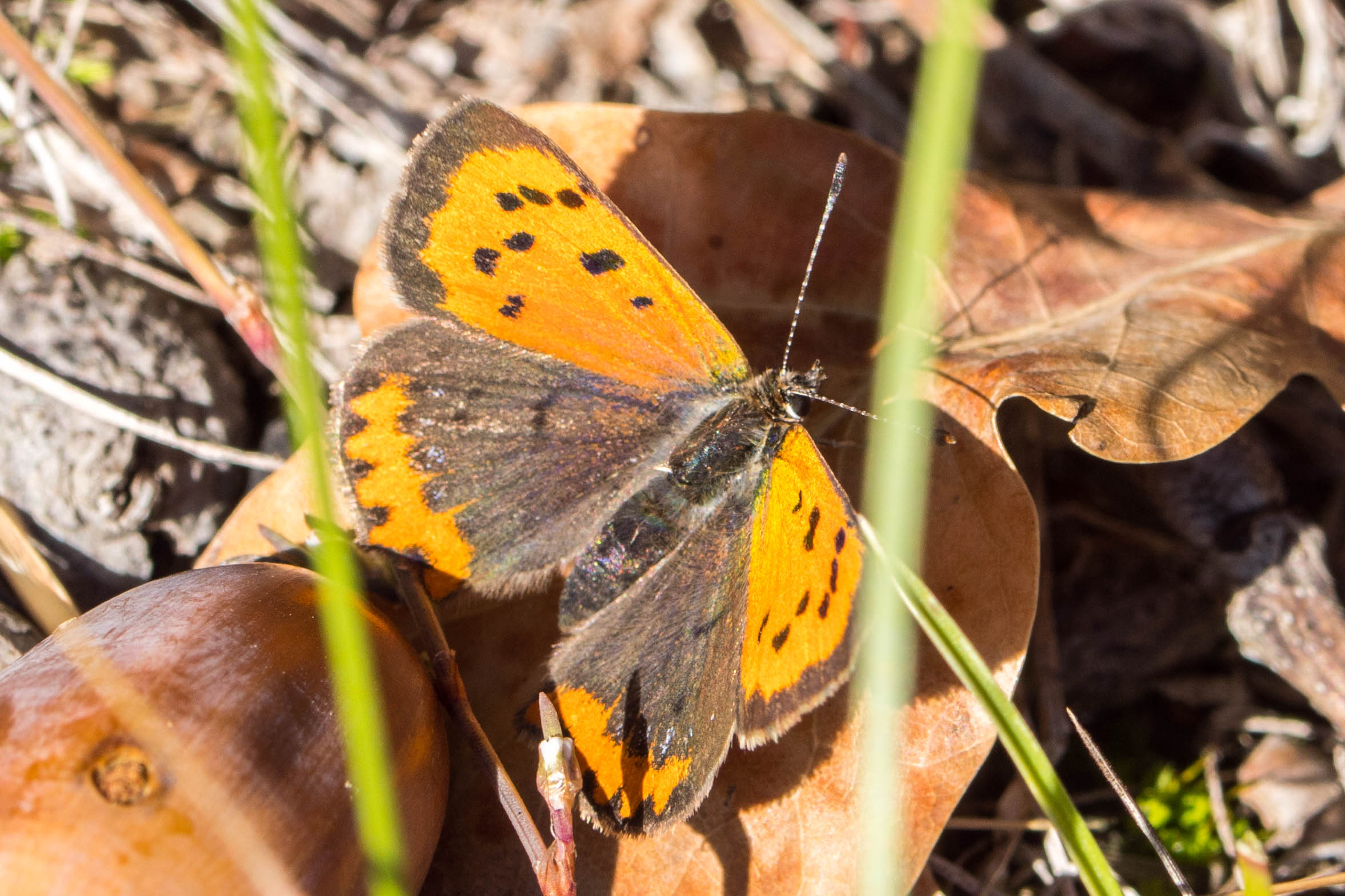 Kleiner Feuerfalter (Lycaena phlaeas (Linnaeus, 1761)), Laue, Rekultivierungsbereich der Tagebaulandschaft Goitzsche östlich vom Seelhausener See, nahe Leipzig, 16. Juni 2019