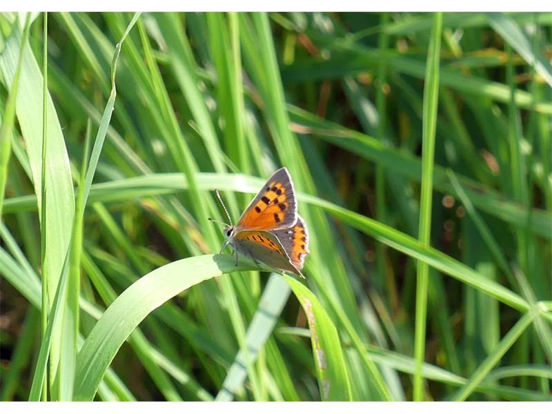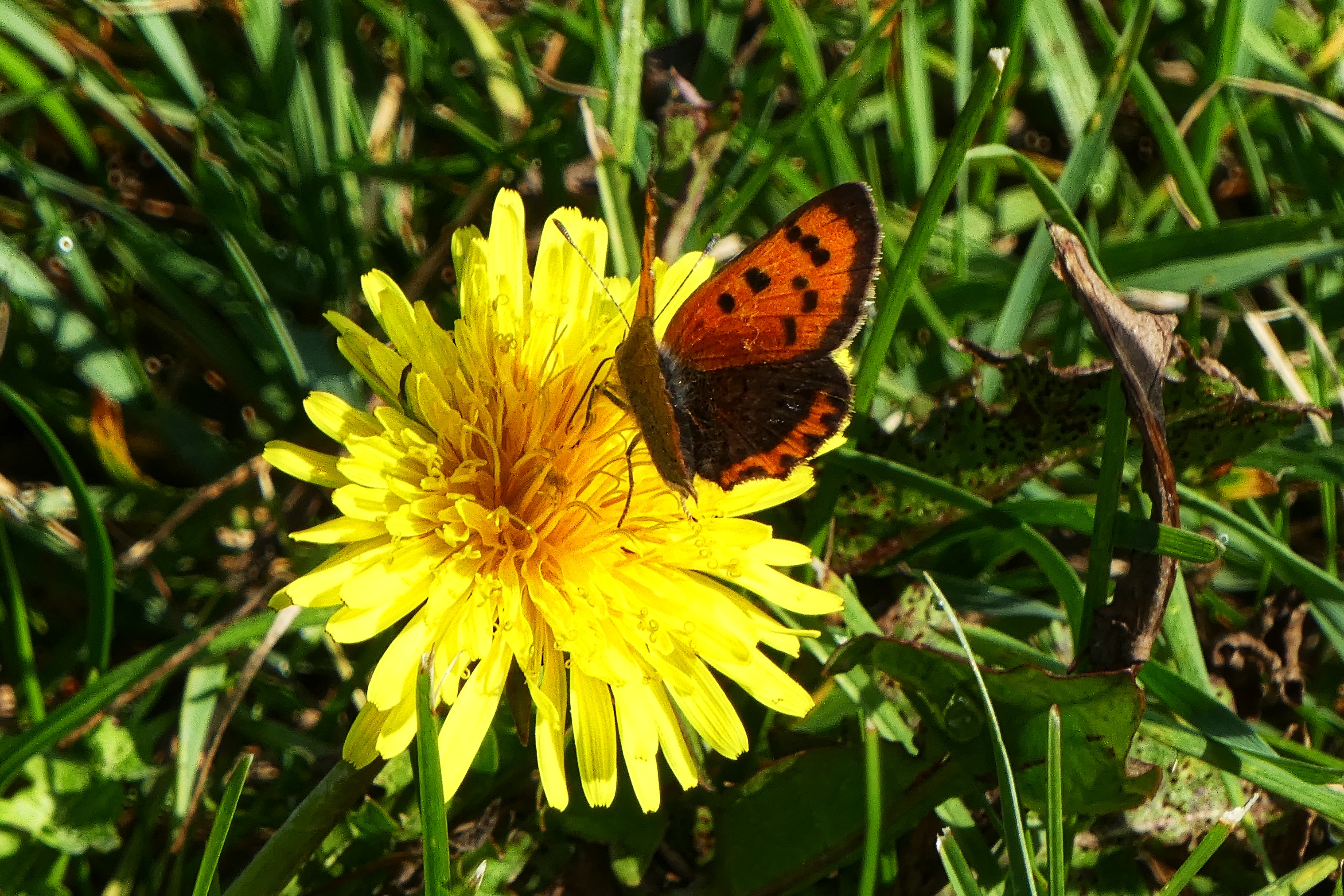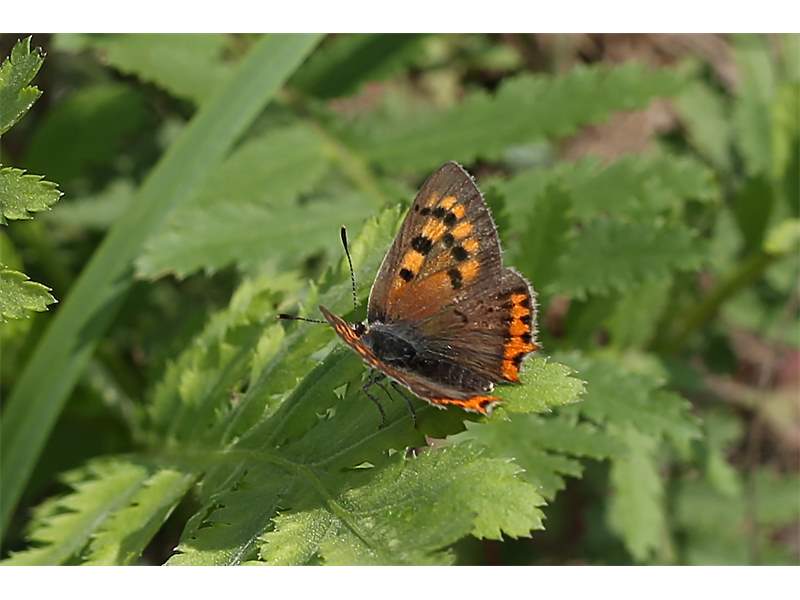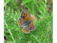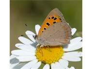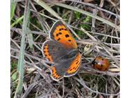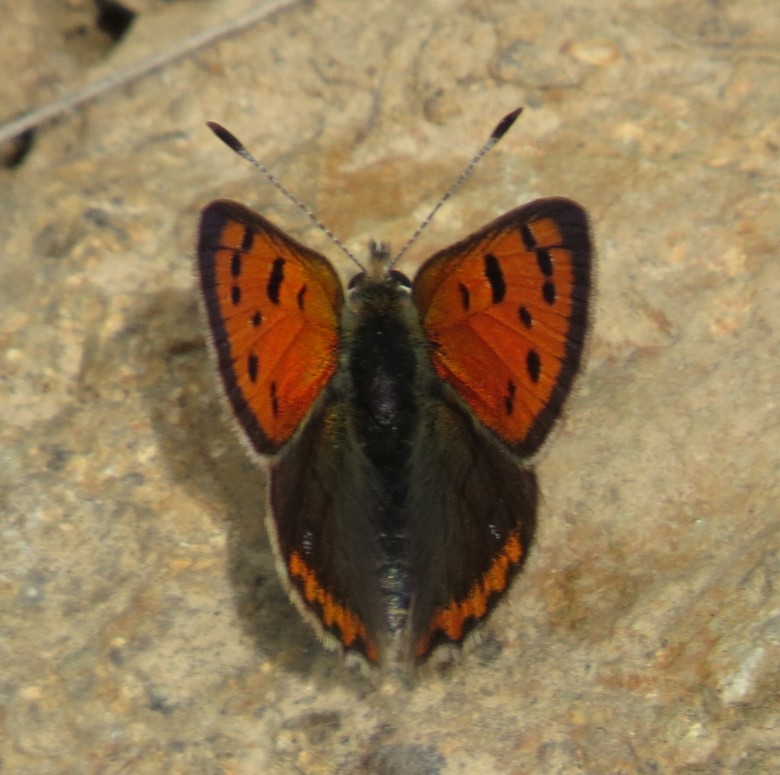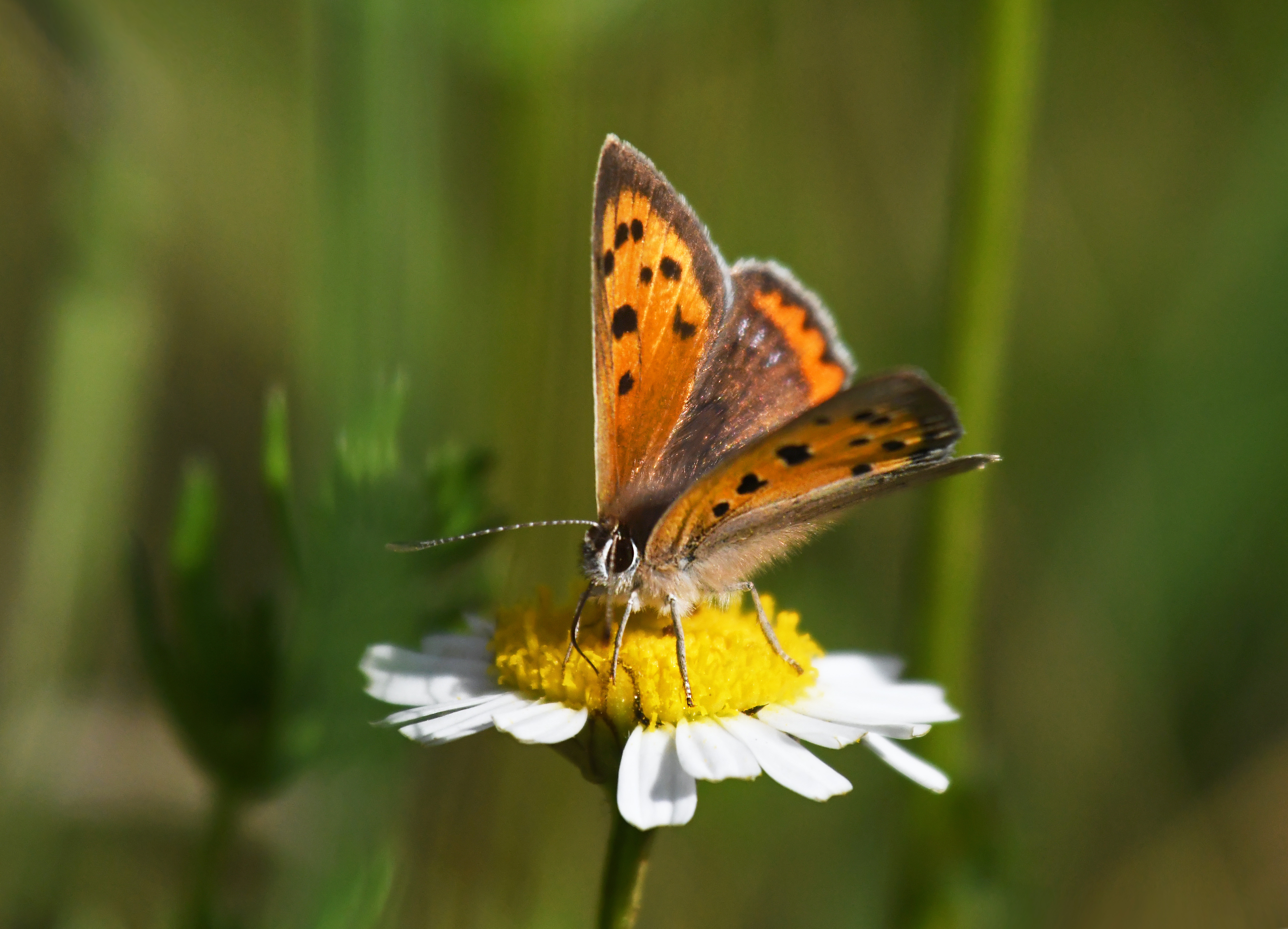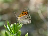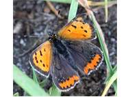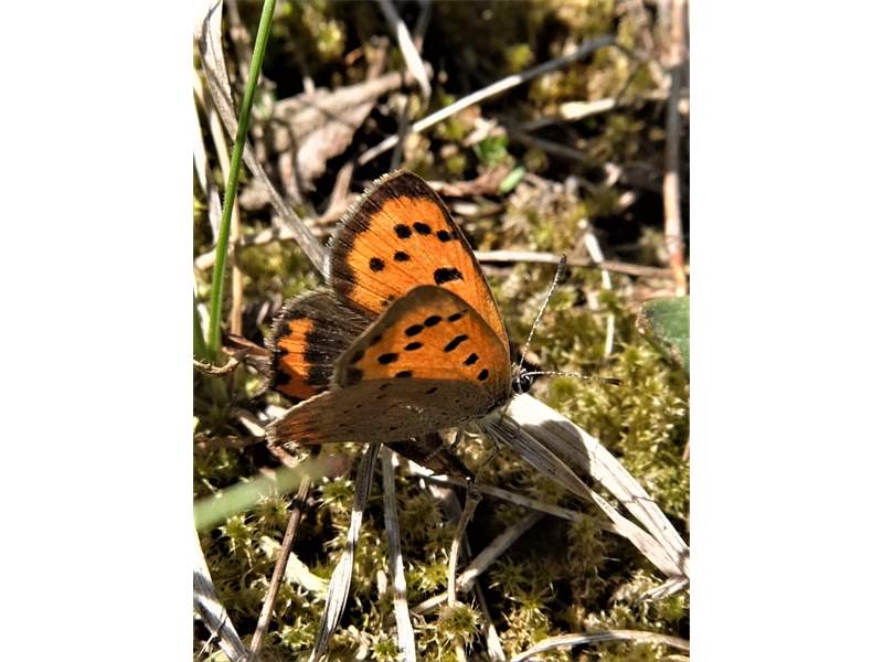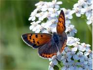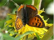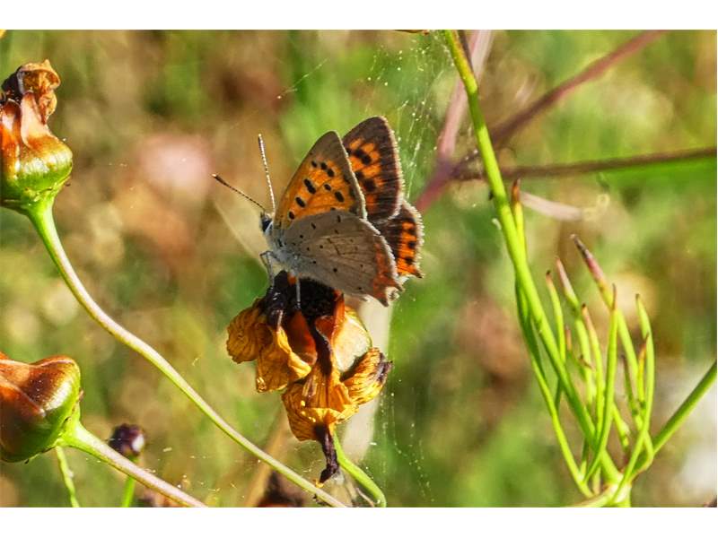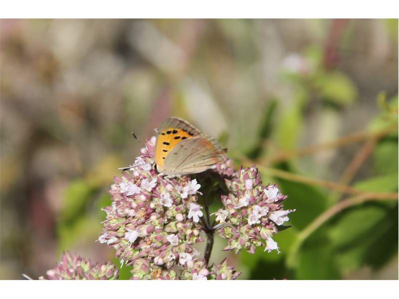 Kleiner Feuerfalter (Lycaena phlaeas (Linnaeus, 1761)), Laue, Rekultivierungsbereich der Tagebaulandschaft Goitzsche östlich vom Seelhausener See, nahe Leipzig, 16. Juni 2019