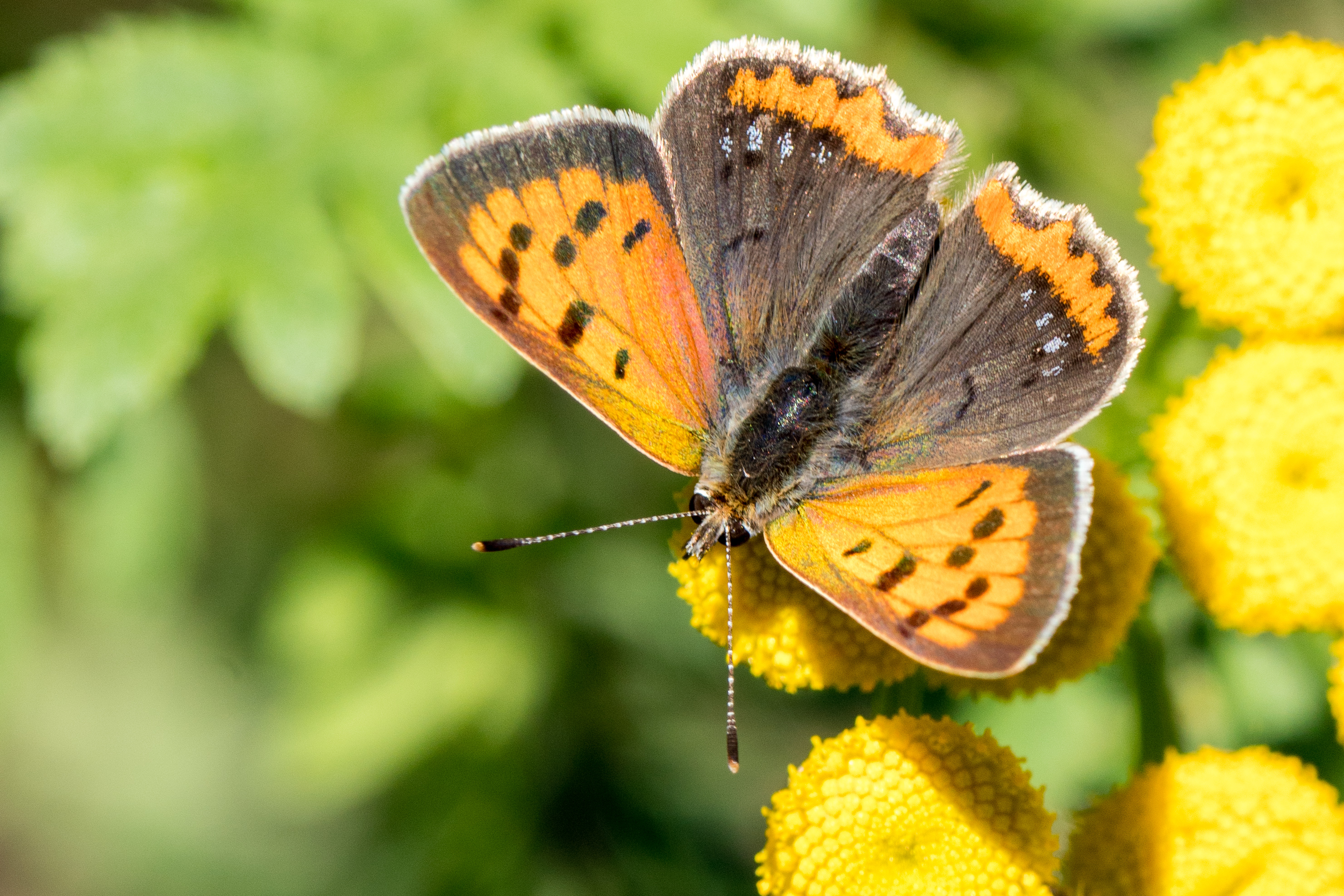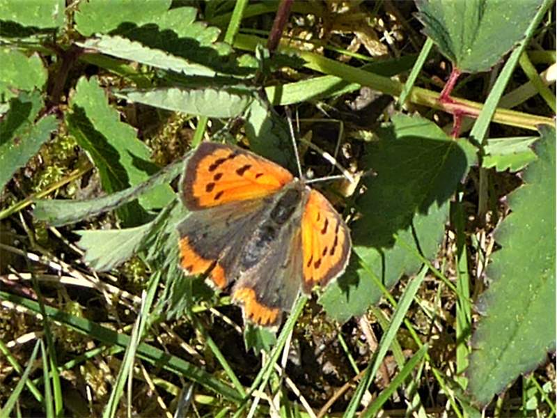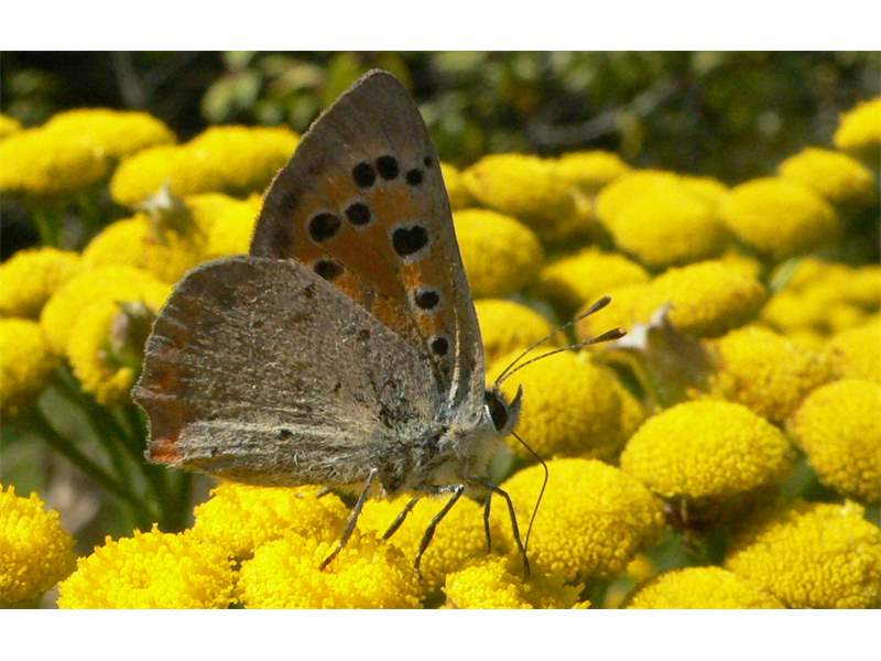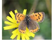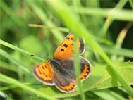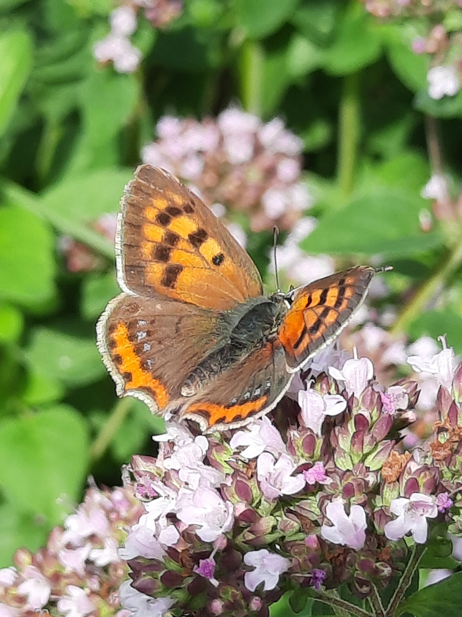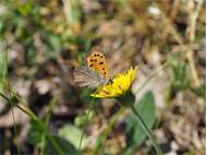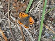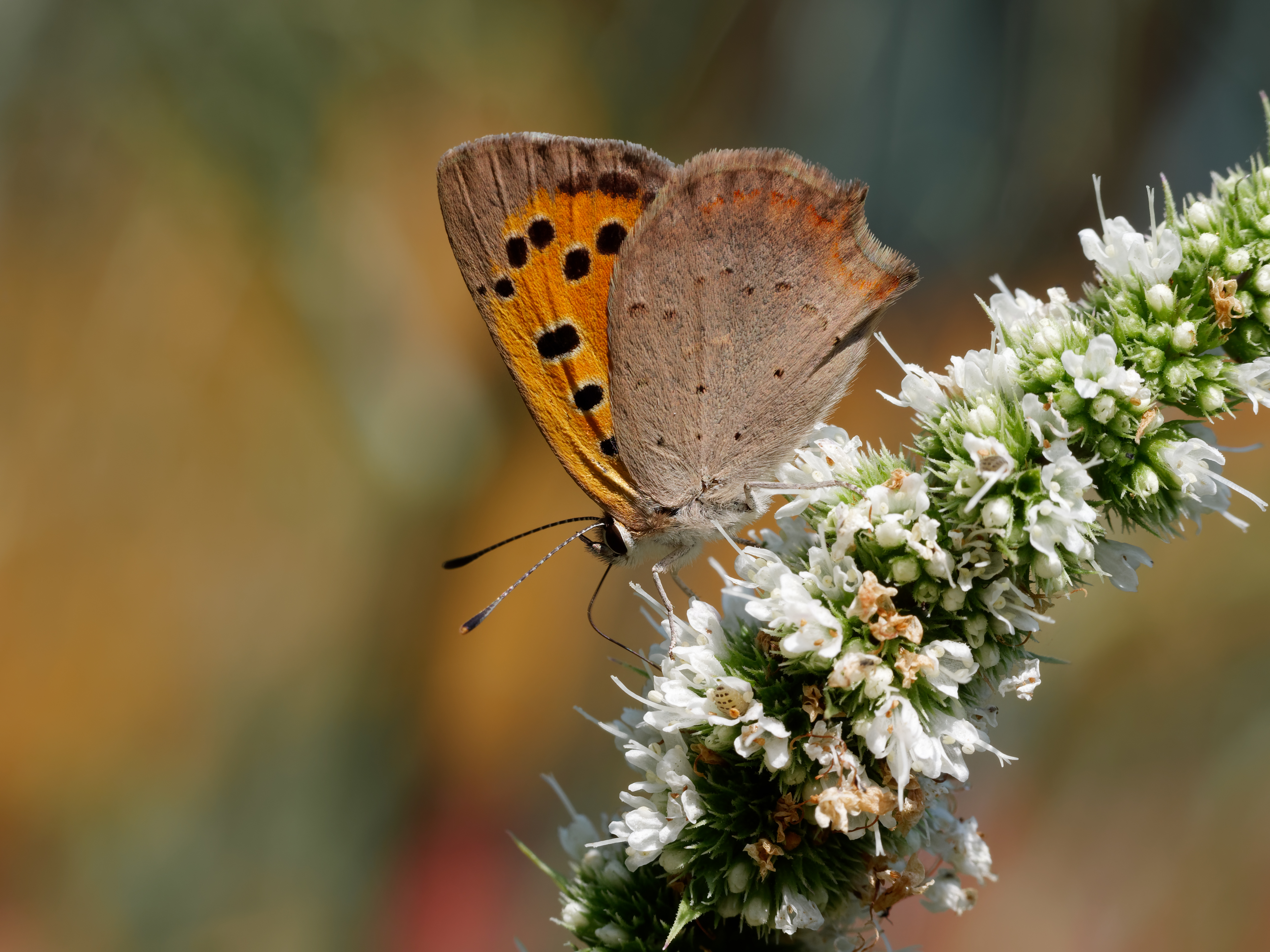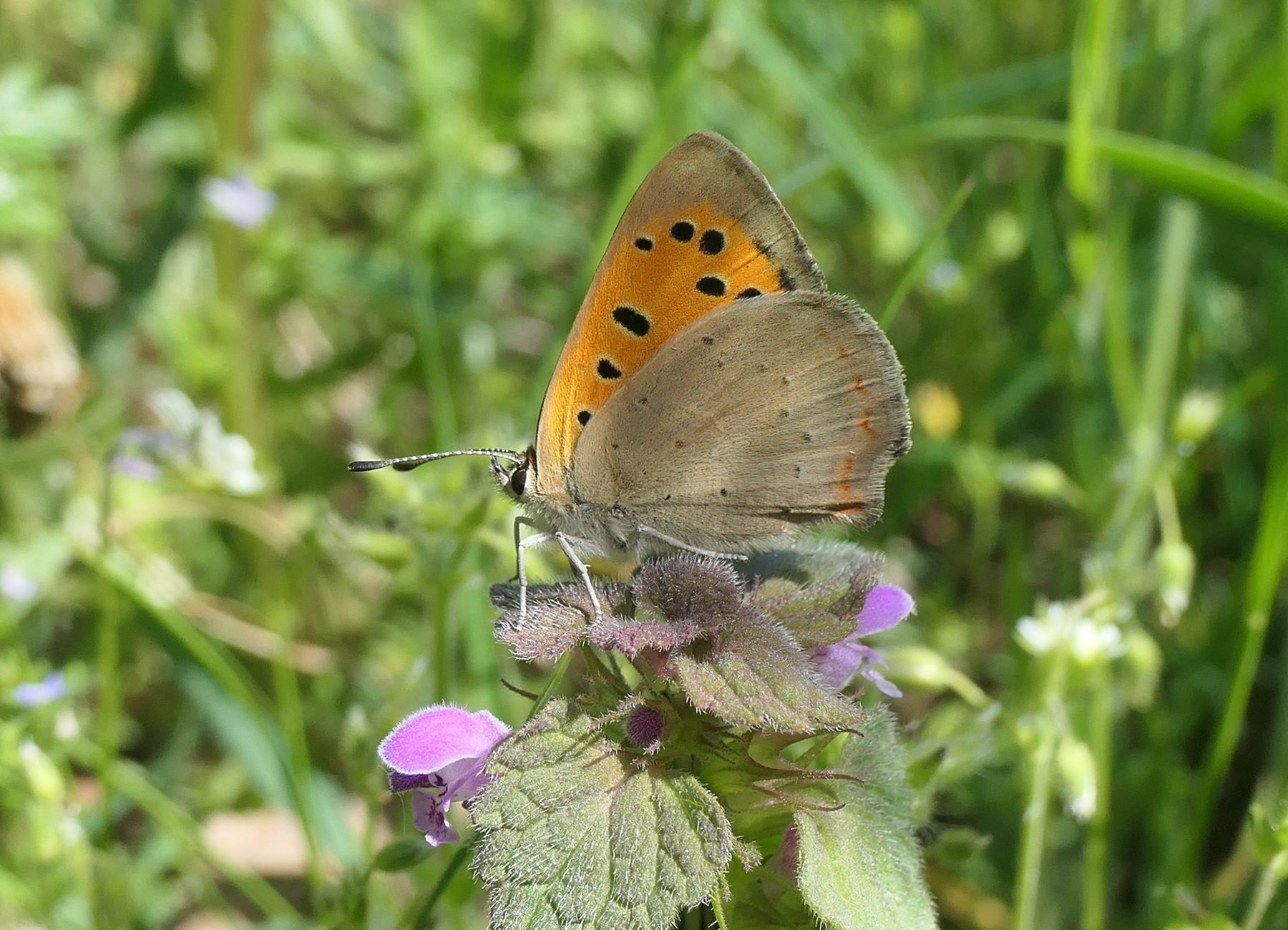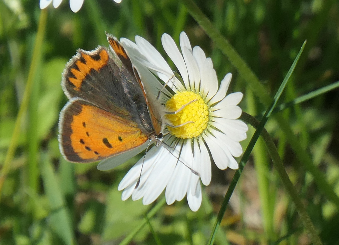Kleiner Feuerfalter (Lycaena phlaeas (Linnaeus, 1761)), Laue, Rekultivierungsbereich der Tagebaulandschaft Goitzsche östlich vom Seelhausener See, nahe Leipzig, 16. Juni 2019