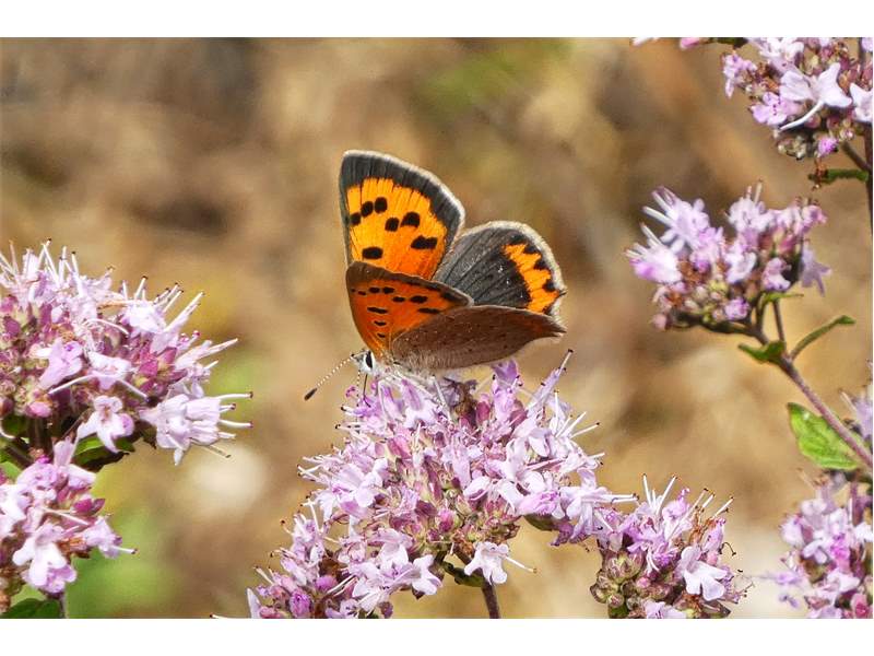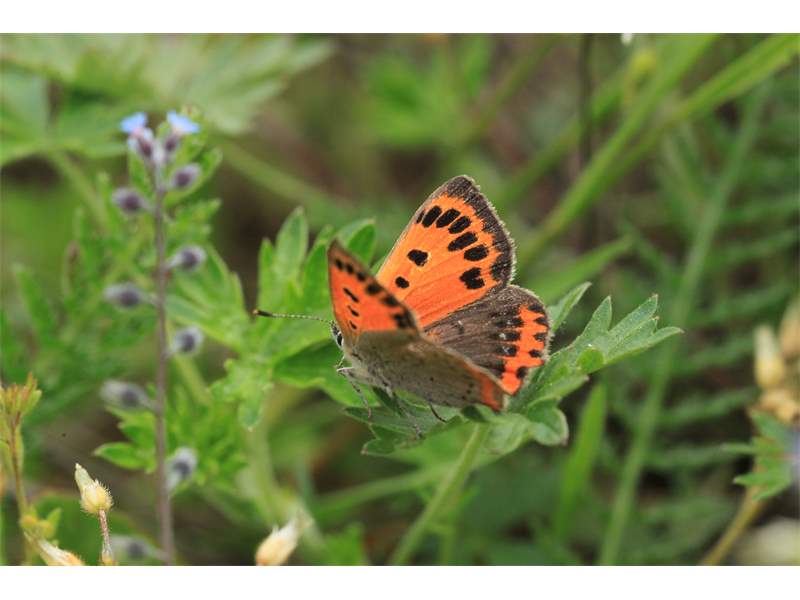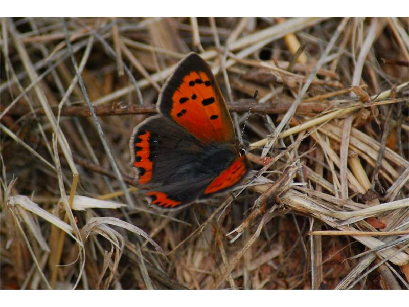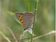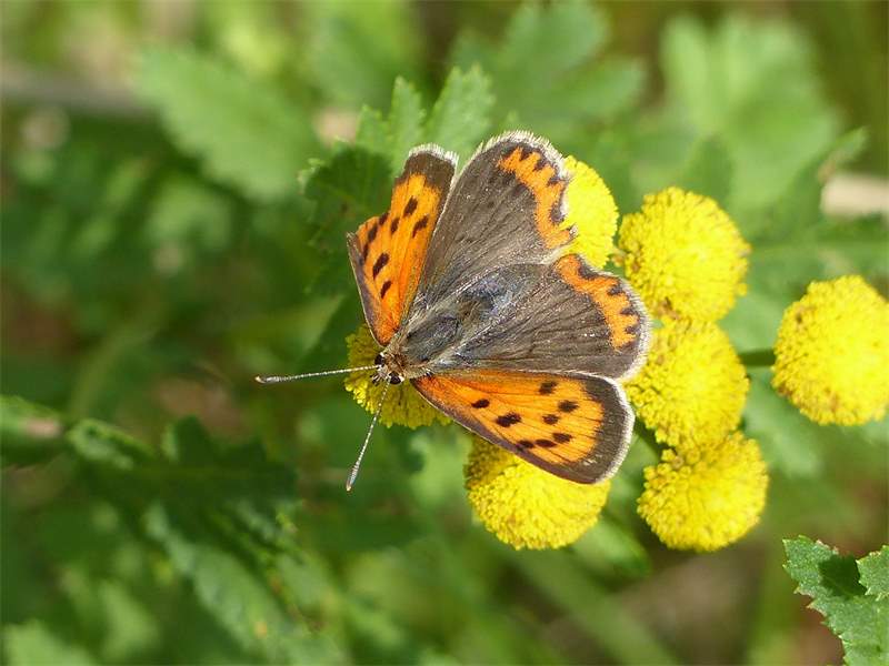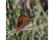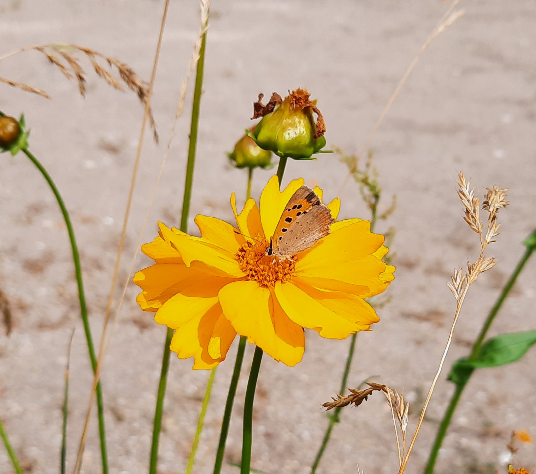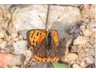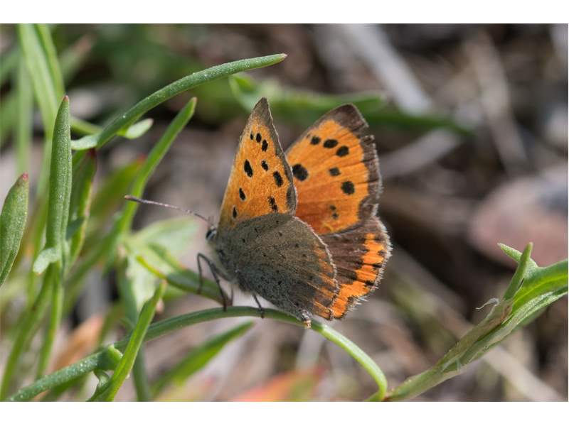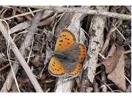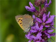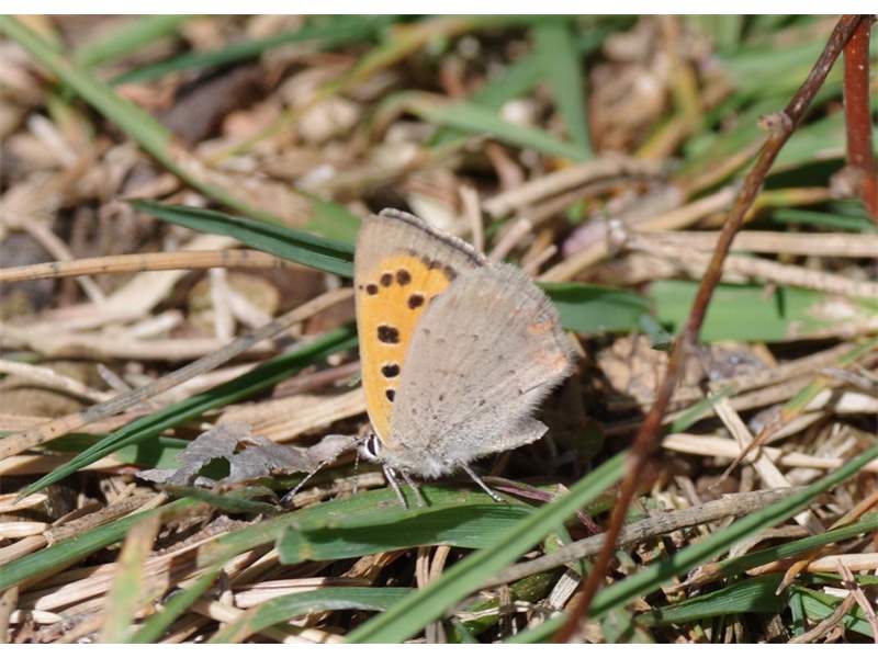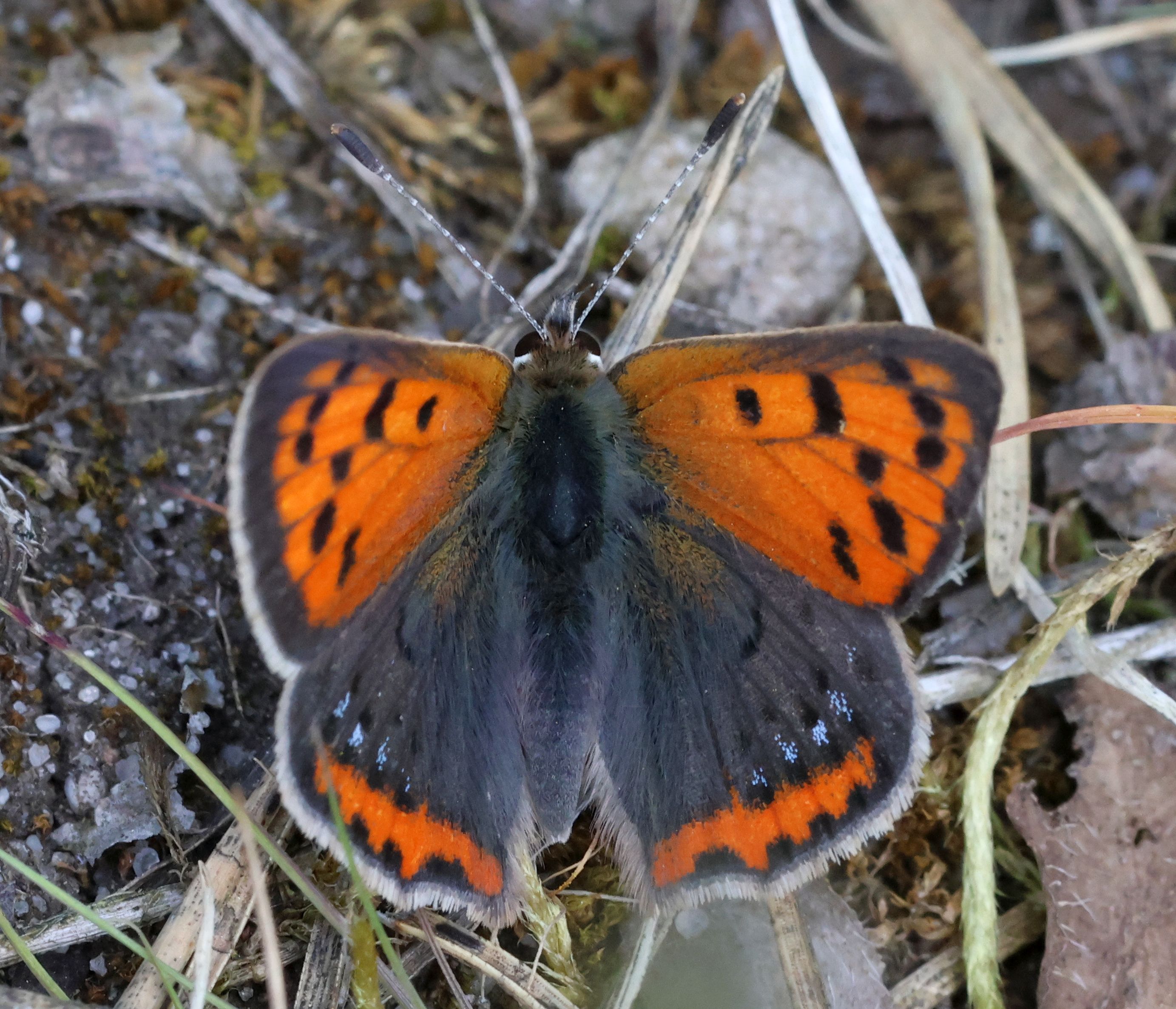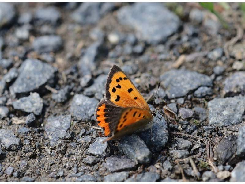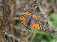 Kleiner Feuerfalter (Lycaena phlaeas (Linnaeus, 1761)), Laue, Rekultivierungsbereich der Tagebaulandschaft Goitzsche östlich vom Seelhausener See, nahe Leipzig, 16. Juni 2019