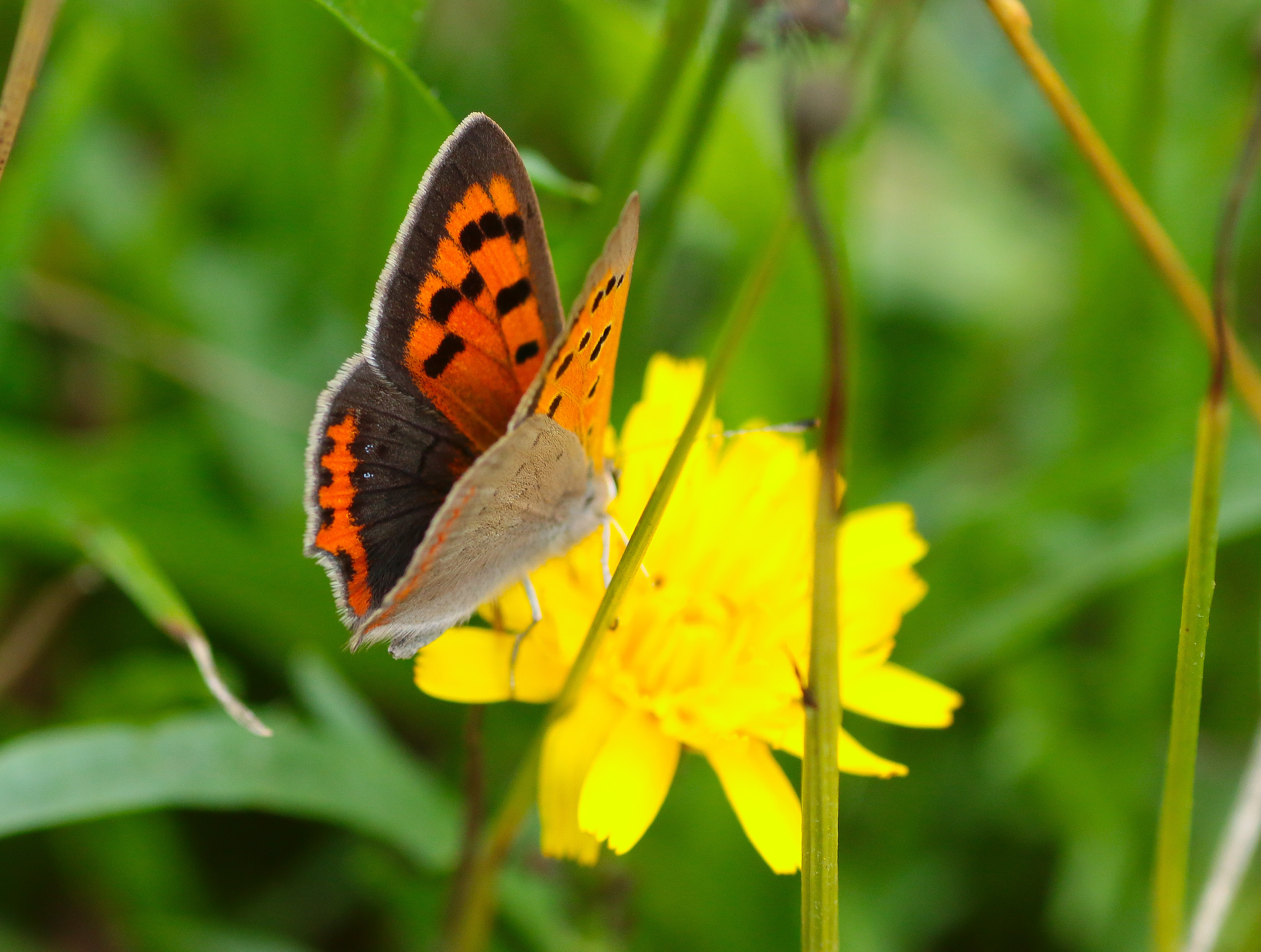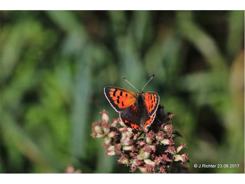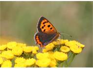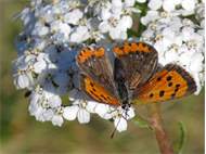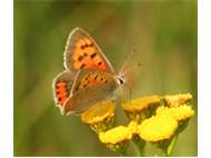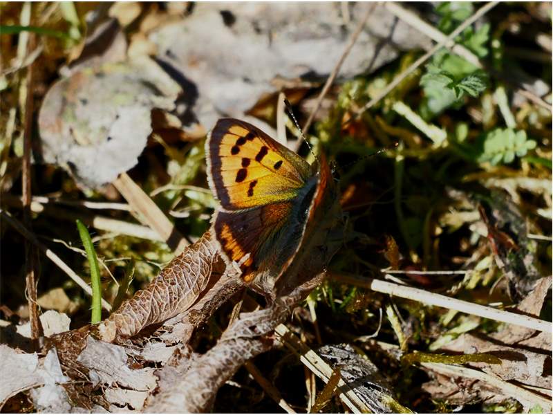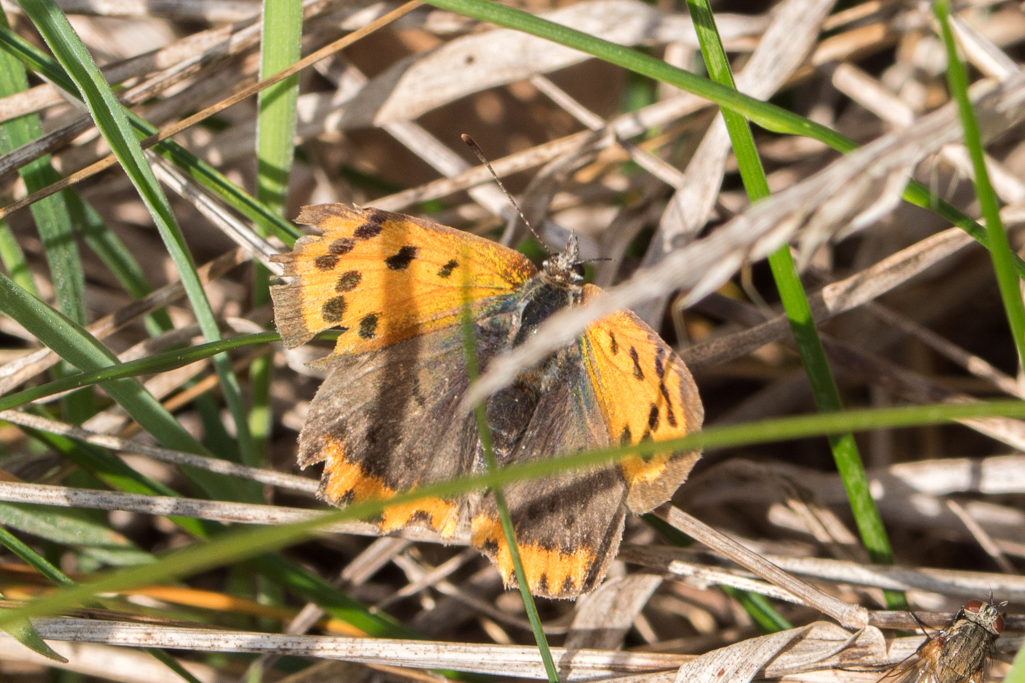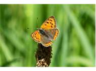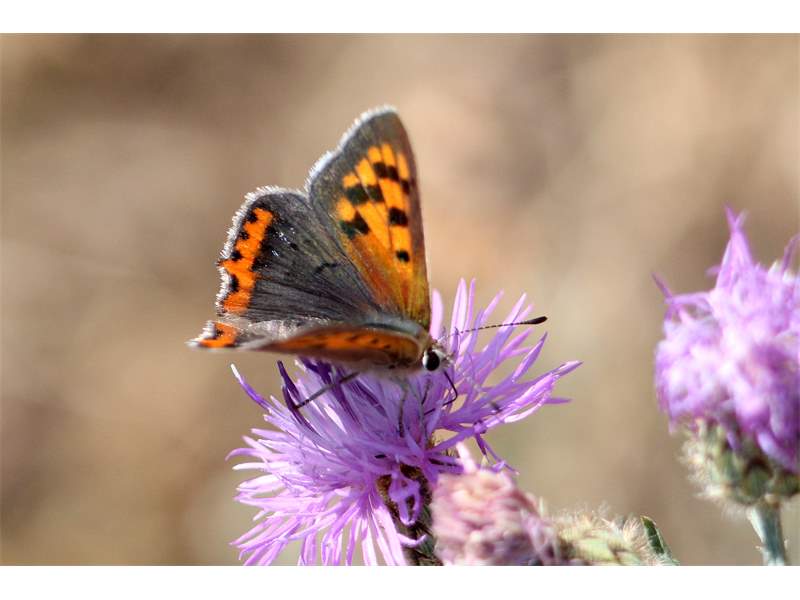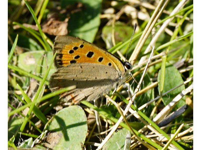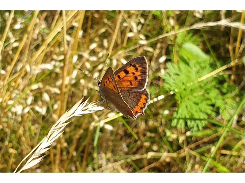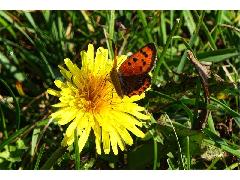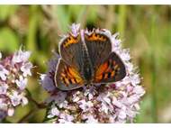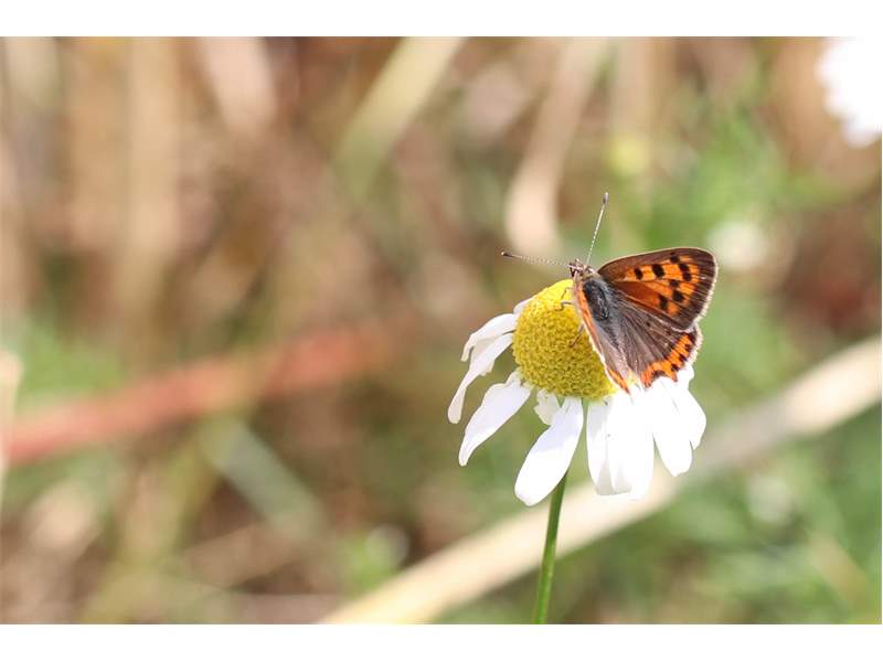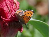 Kleiner Feuerfalter (Lycaena phlaeas (Linnaeus, 1761)), Laue, Rekultivierungsbereich der Tagebaulandschaft Goitzsche östlich vom Seelhausener See, nahe Leipzig, 16. Juni 2019