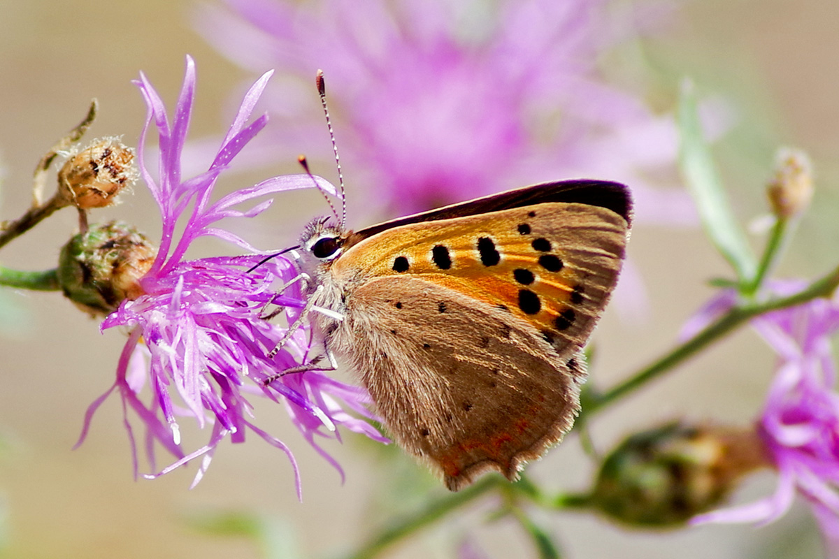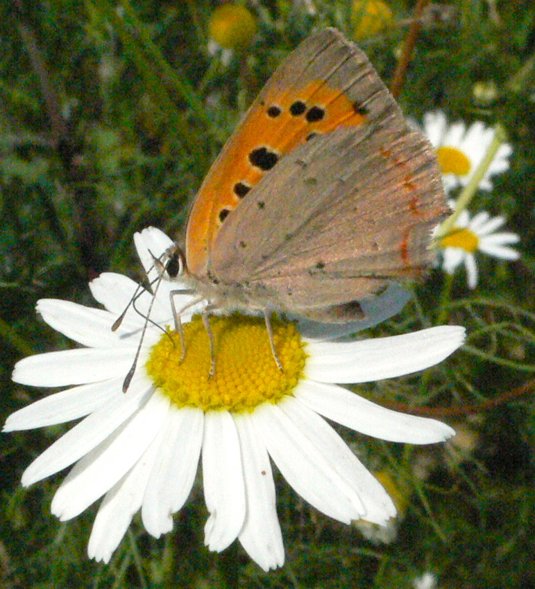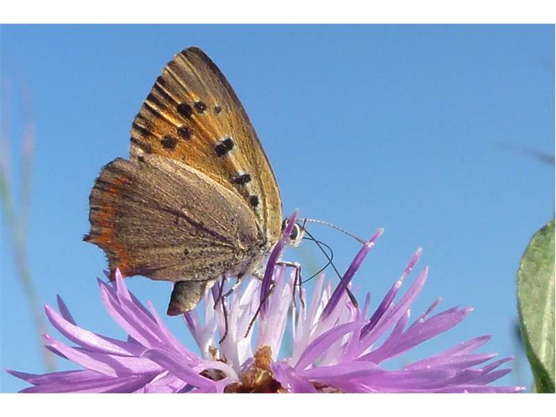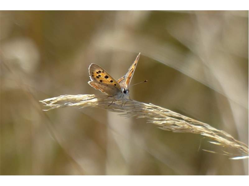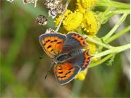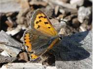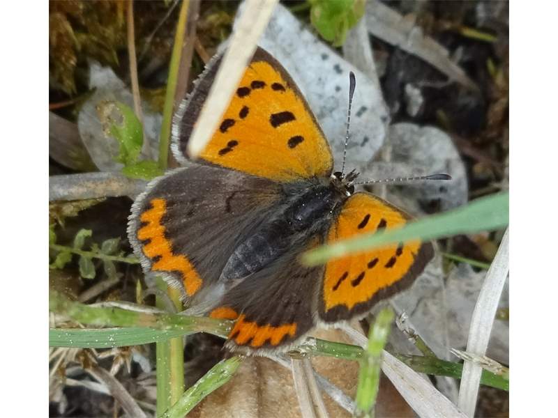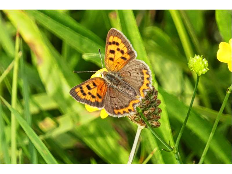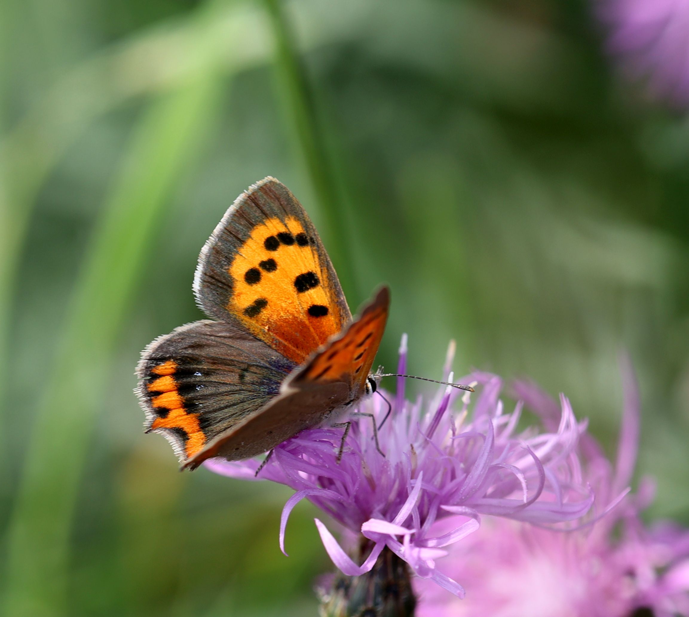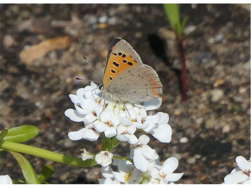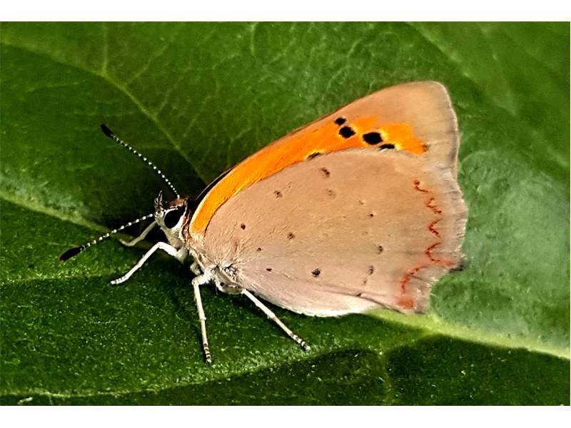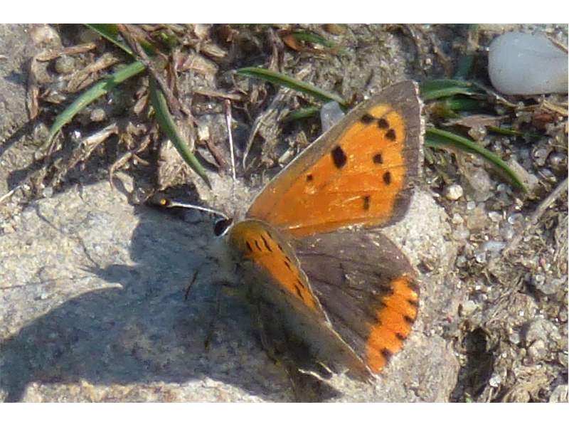 Kleiner Feuerfalter (Lycaena phlaeas (Linnaeus, 1761)), Laue, Rekultivierungsbereich der Tagebaulandschaft Goitzsche östlich vom Seelhausener See, nahe Leipzig, 16. Juni 2019
