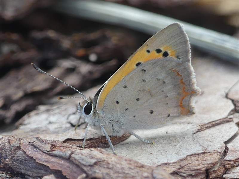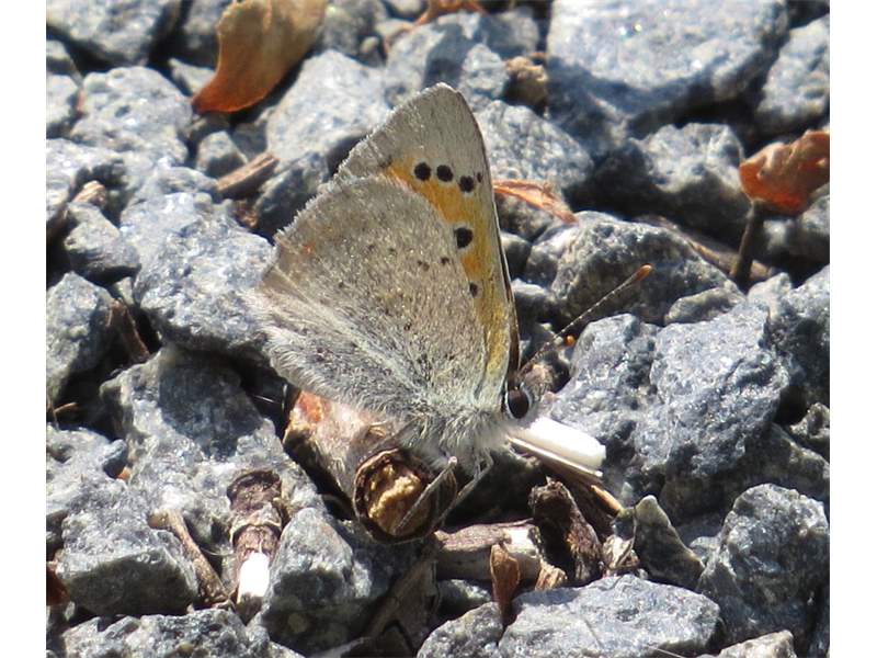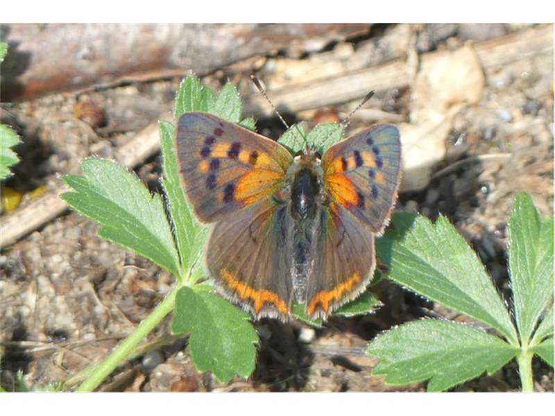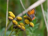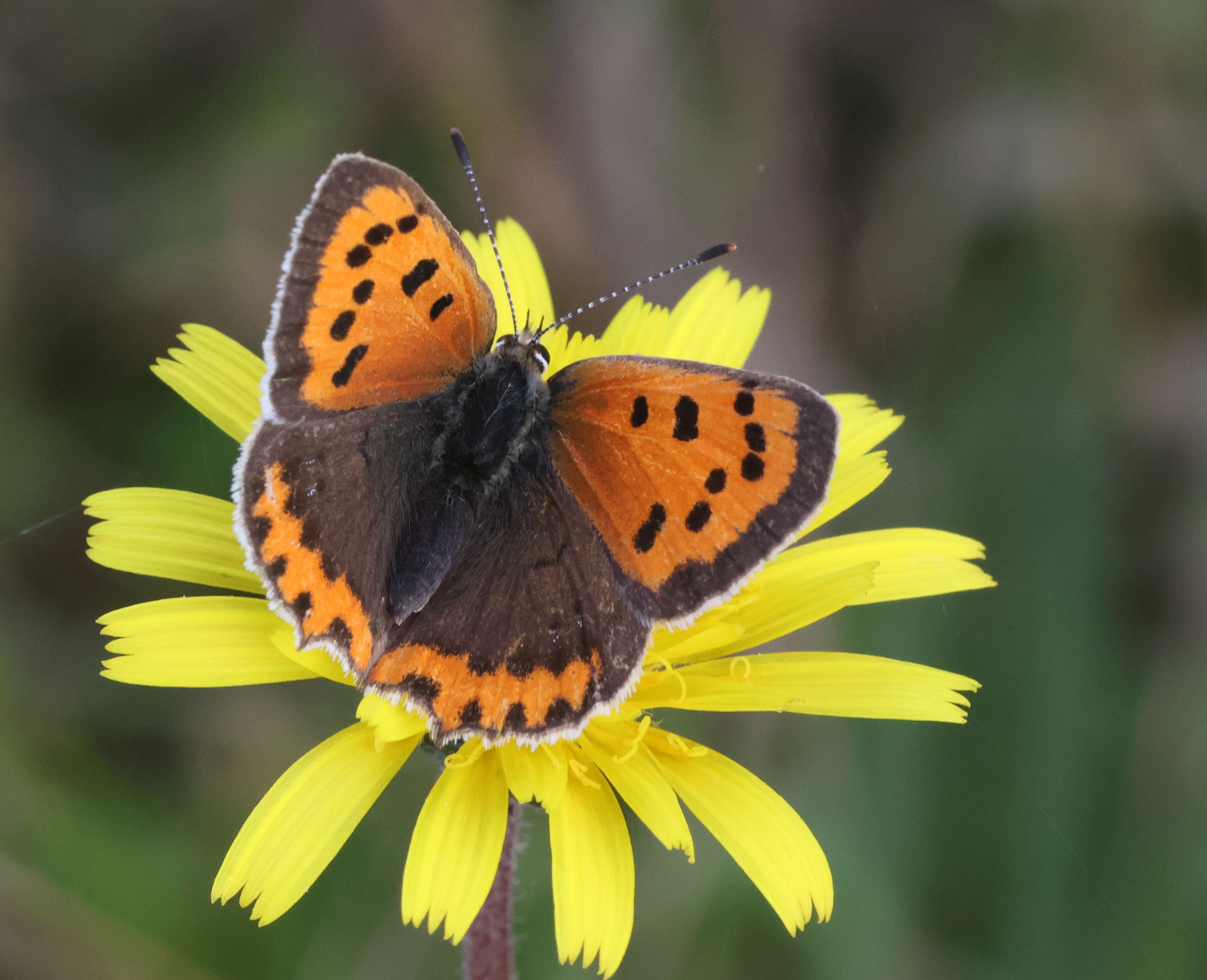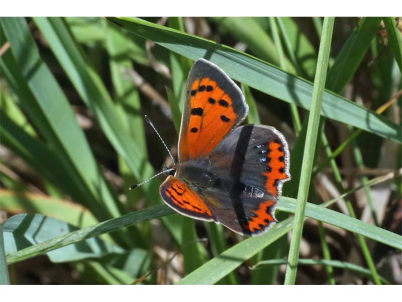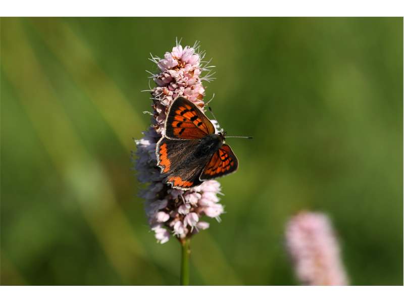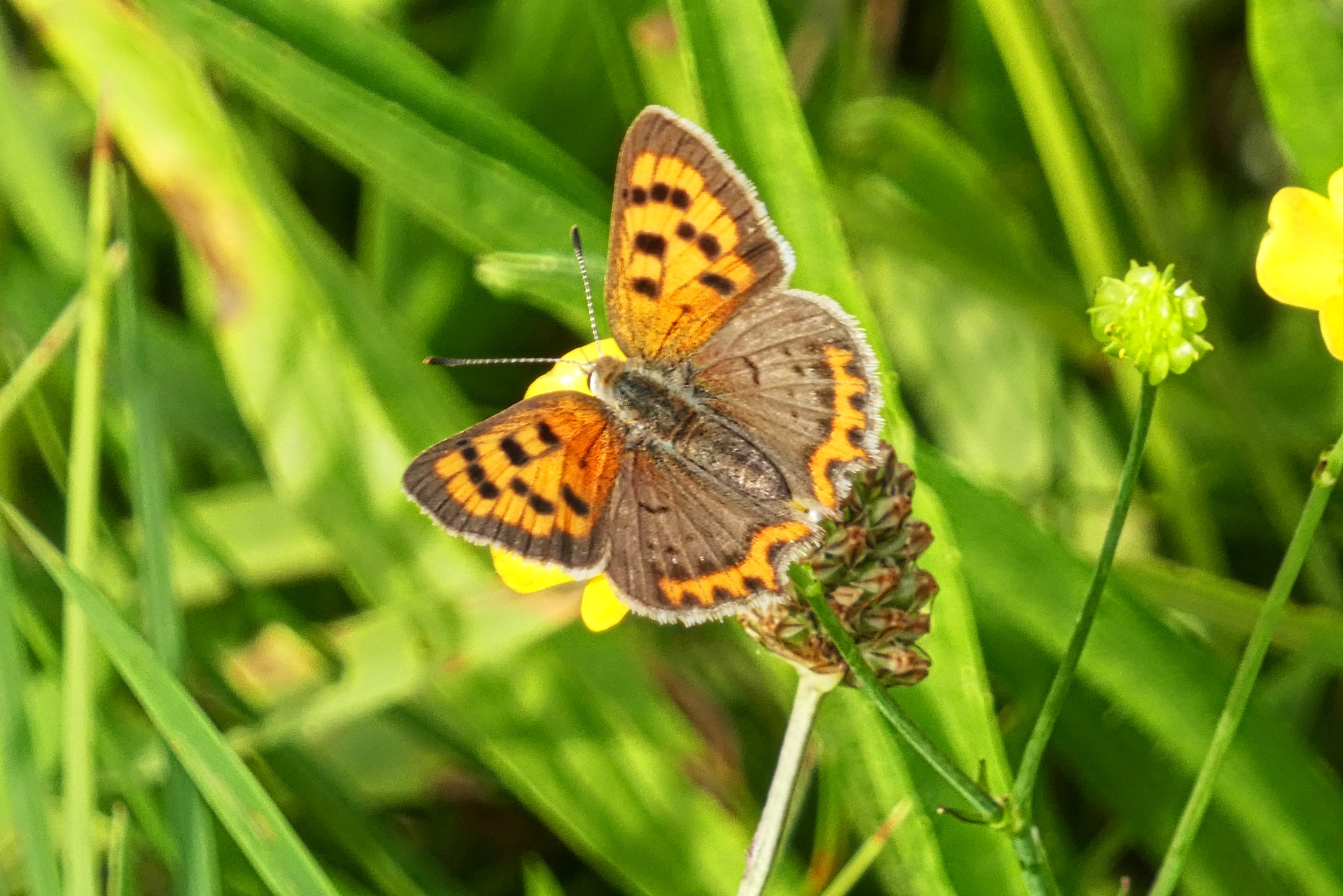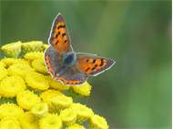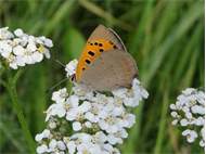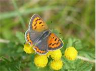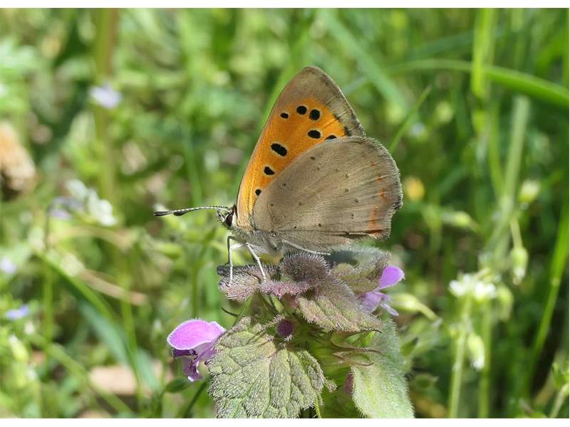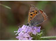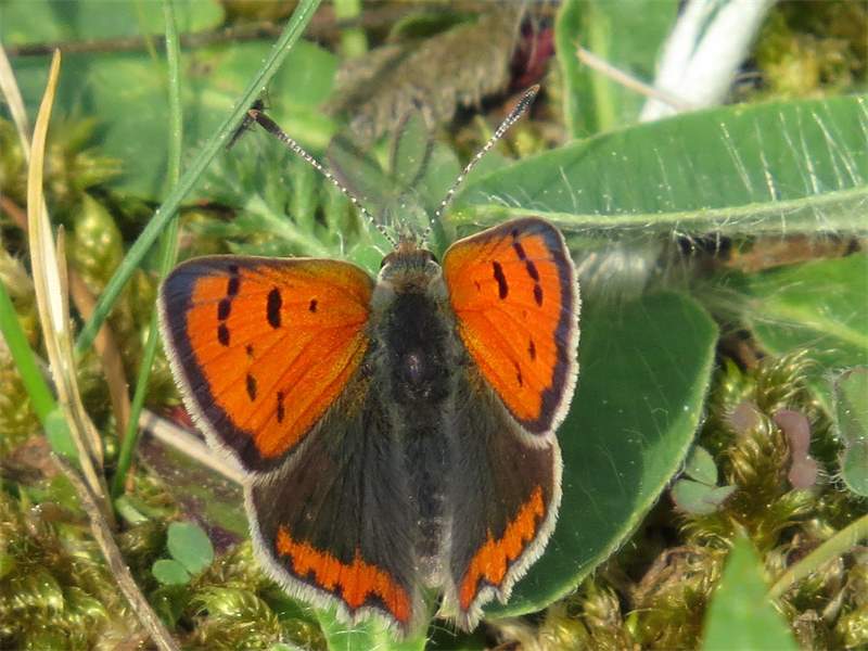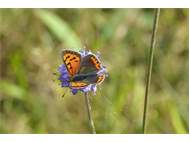 Kleiner Feuerfalter (Lycaena phlaeas (Linnaeus, 1761)), Laue, Rekultivierungsbereich der Tagebaulandschaft Goitzsche östlich vom Seelhausener See, nahe Leipzig, 16. Juni 2019