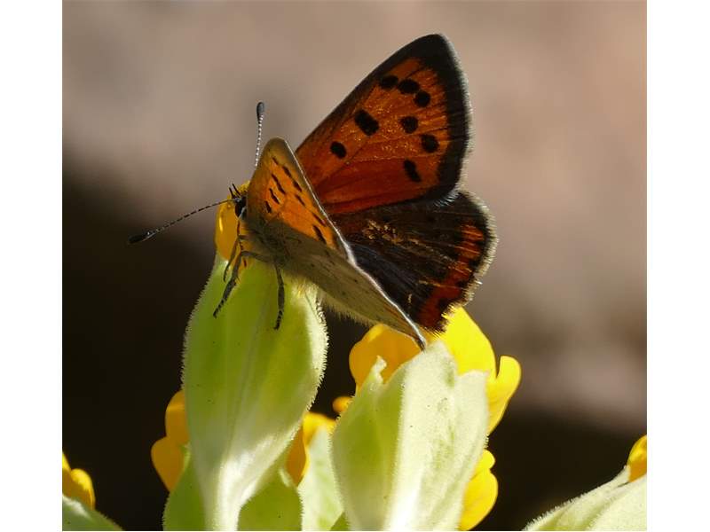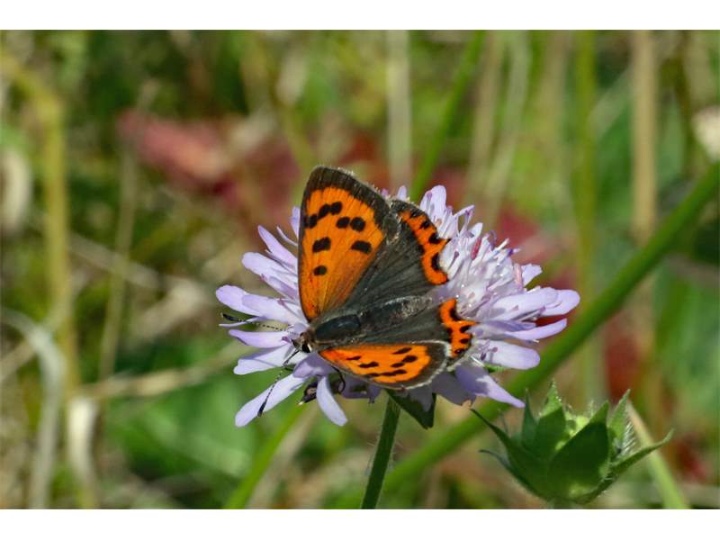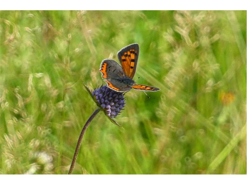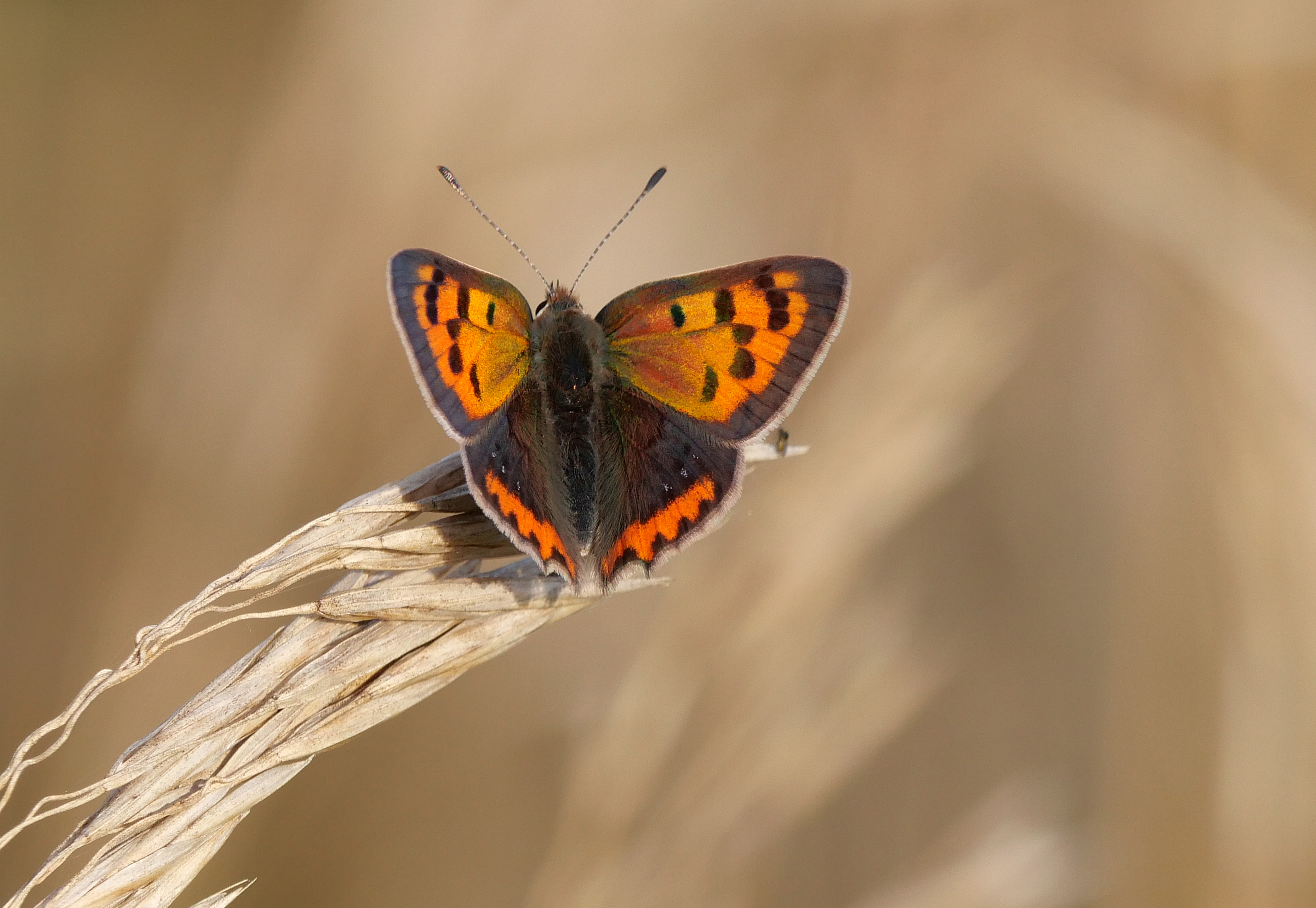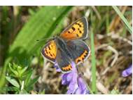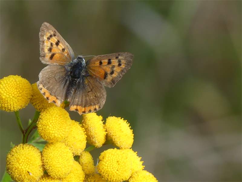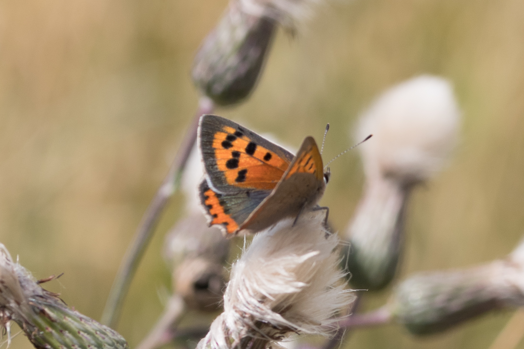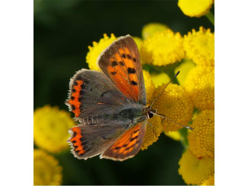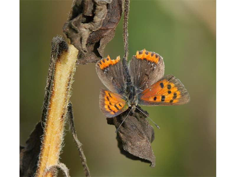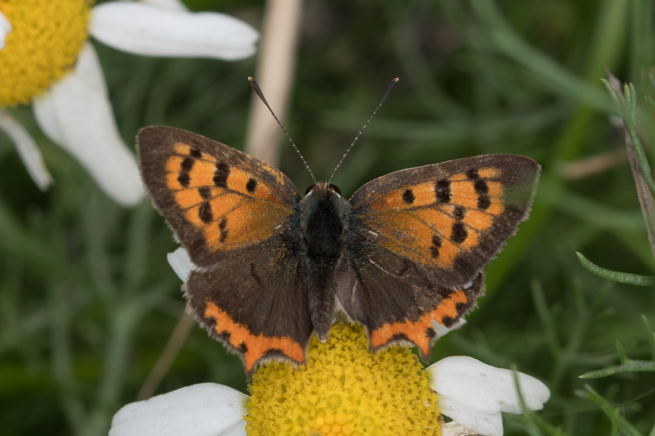 Kleiner Feuerfalter (Lycaena phlaeas (Linnaeus, 1761)), Laue, Rekultivierungsbereich der Tagebaulandschaft Goitzsche östlich vom Seelhausener See, nahe Leipzig, 16. Juni 2019