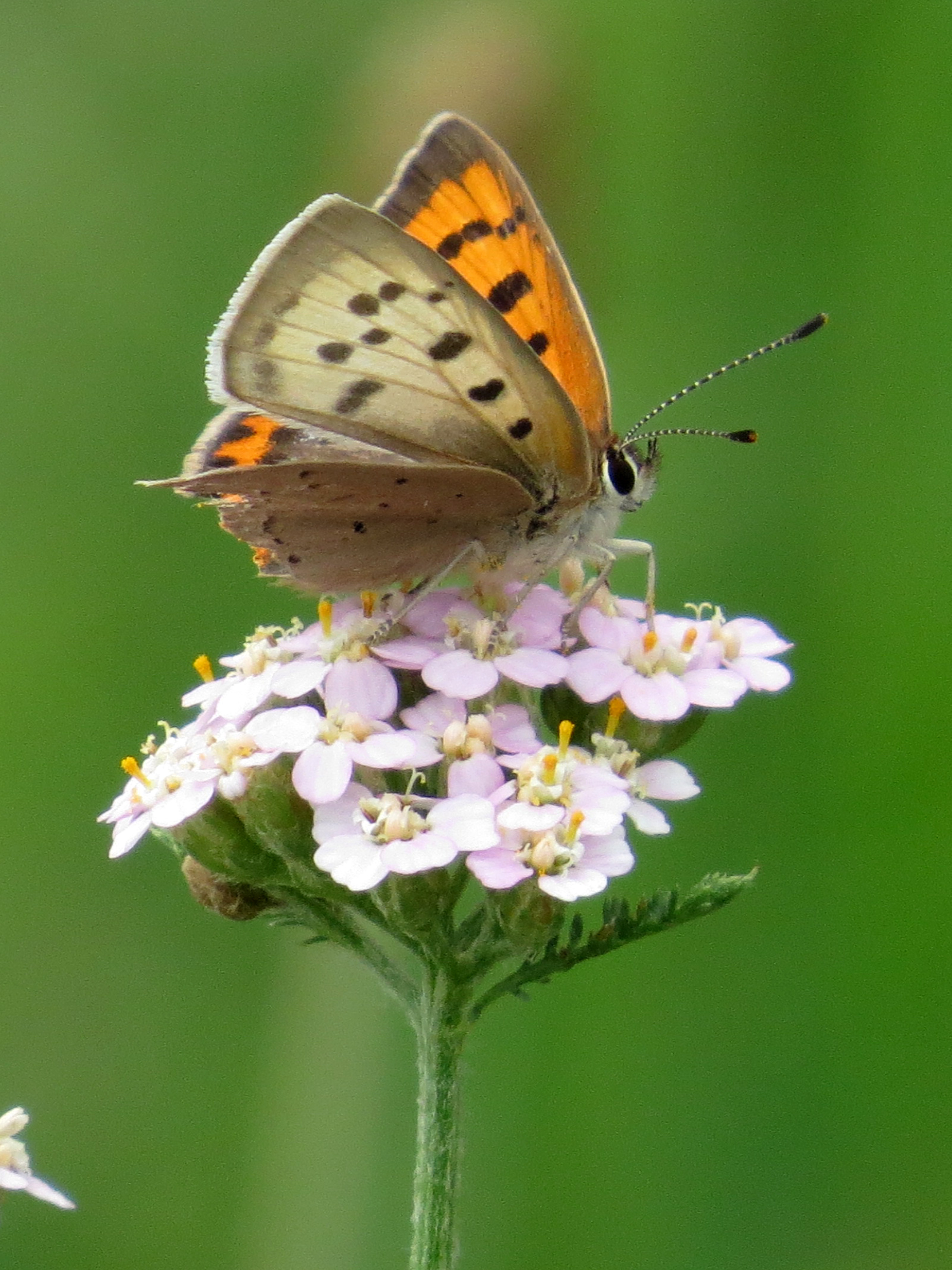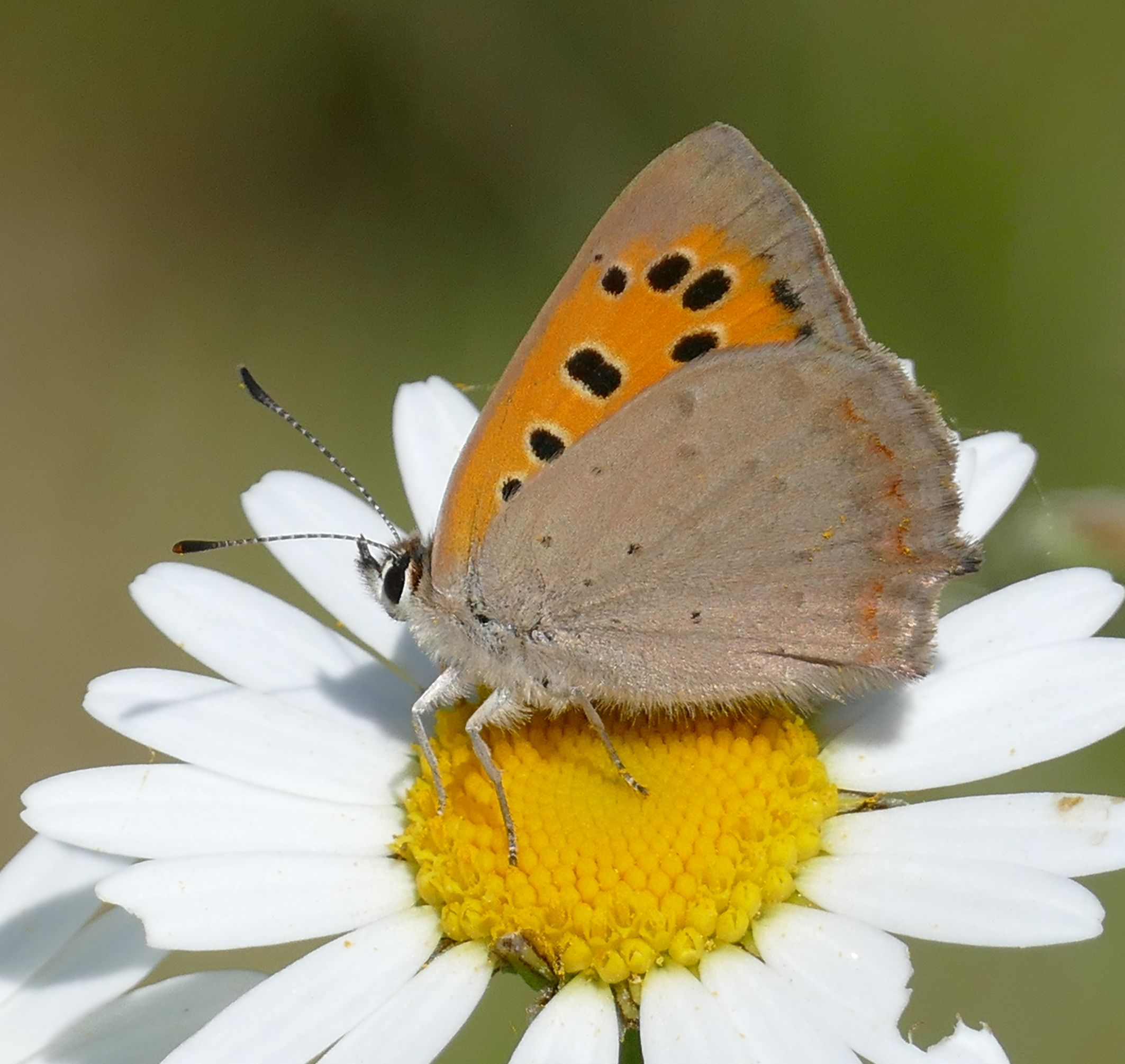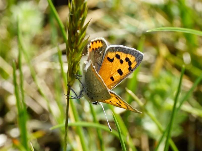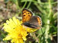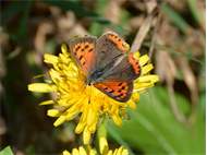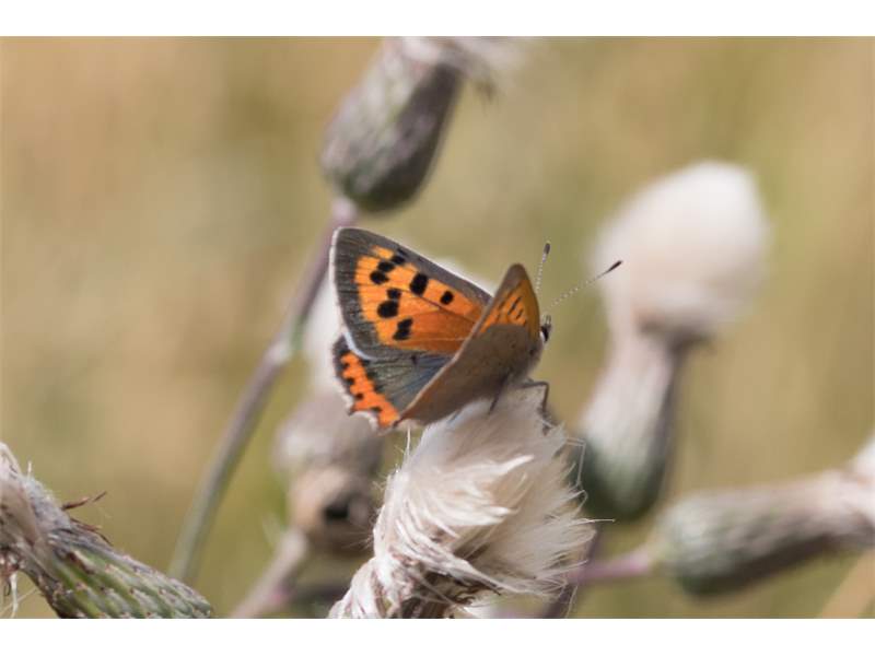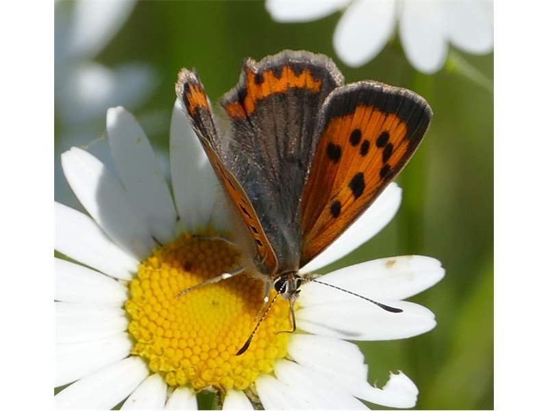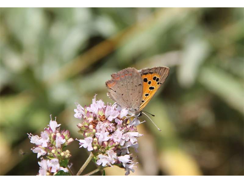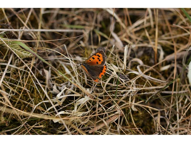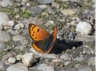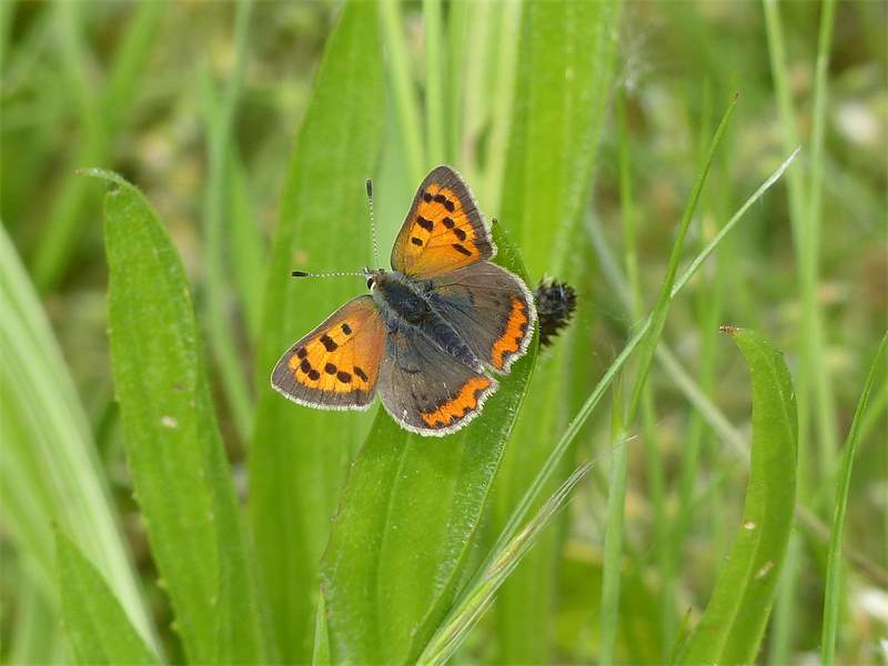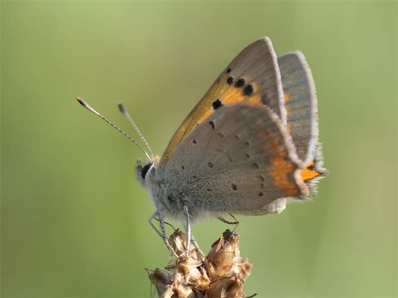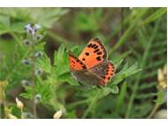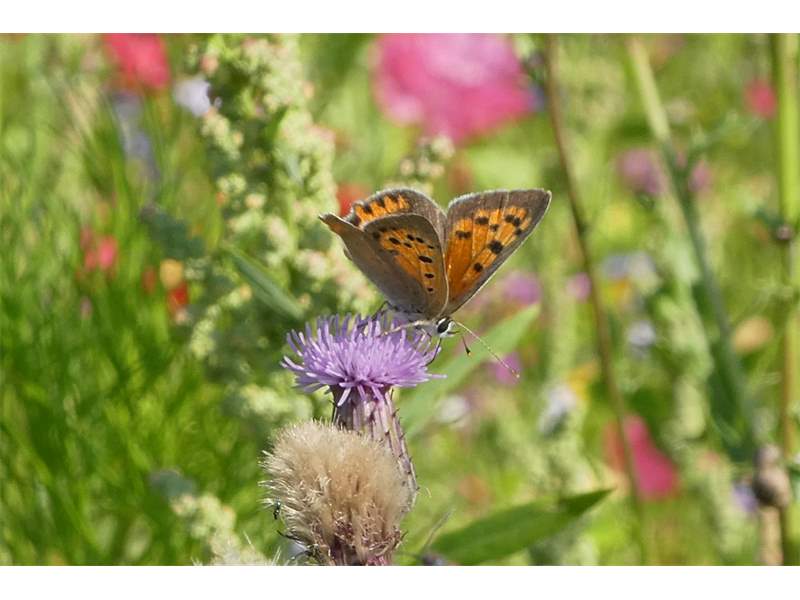 Kleiner Feuerfalter (Lycaena phlaeas (Linnaeus, 1761)), Laue, Rekultivierungsbereich der Tagebaulandschaft Goitzsche östlich vom Seelhausener See, nahe Leipzig, 16. Juni 2019