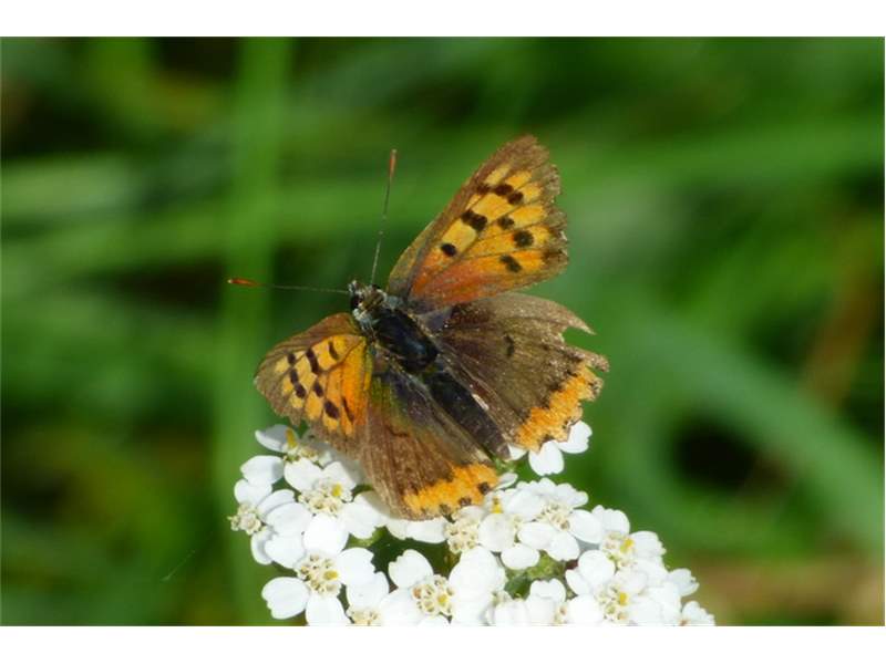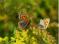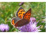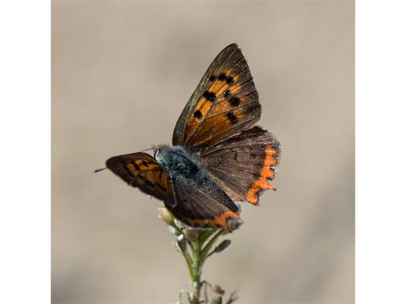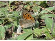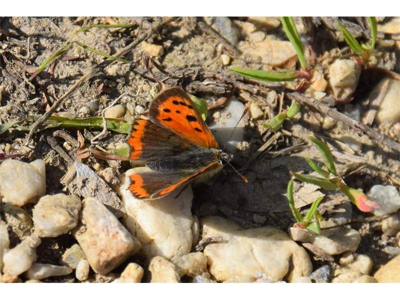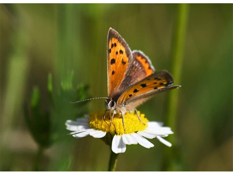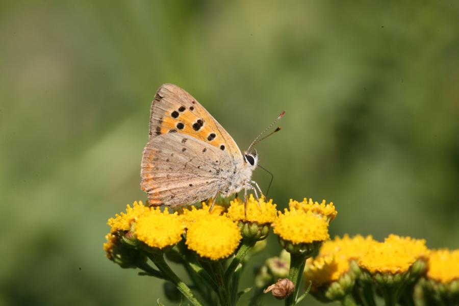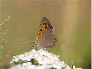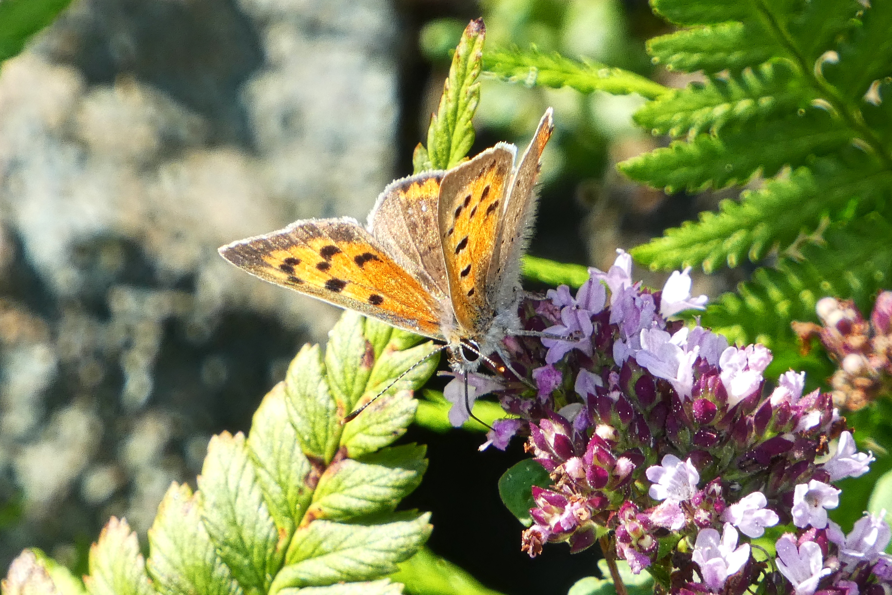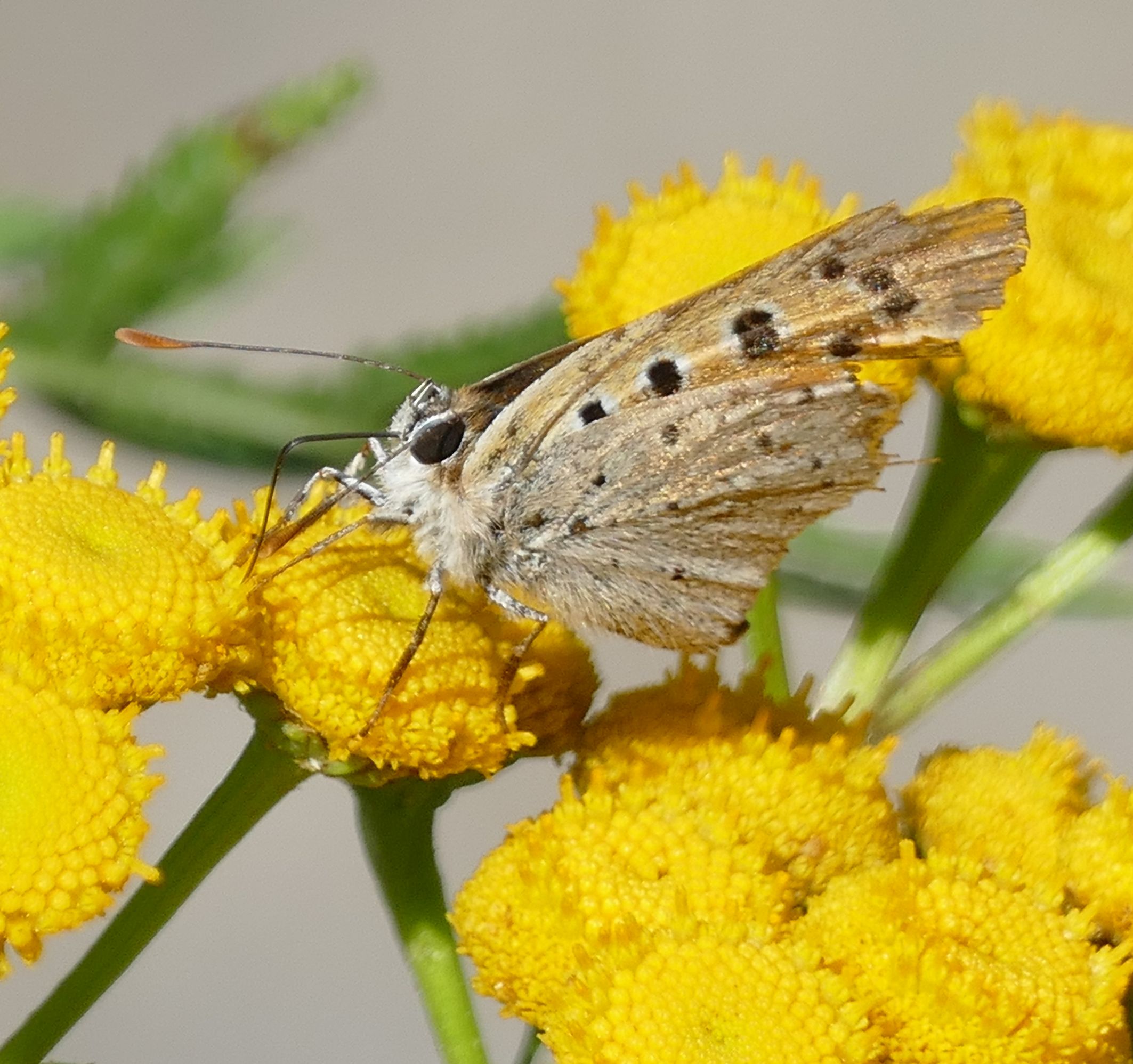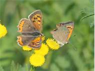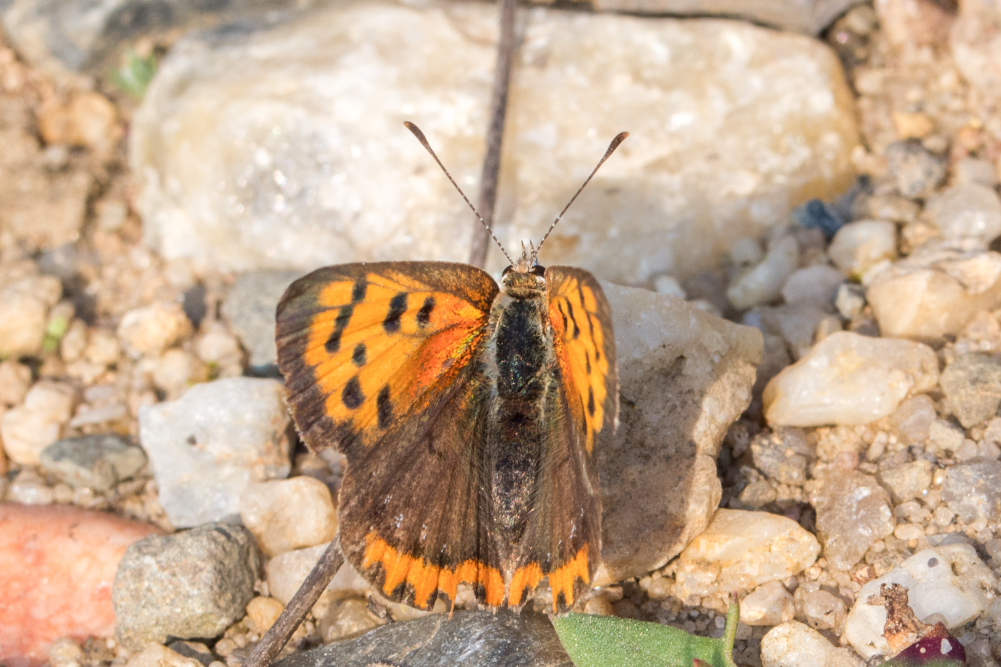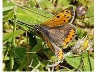 Kleiner Feuerfalter (Lycaena phlaeas (Linnaeus, 1761)), Laue, Rekultivierungsbereich der Tagebaulandschaft Goitzsche östlich vom Seelhausener See, nahe Leipzig, 16. Juni 2019