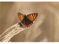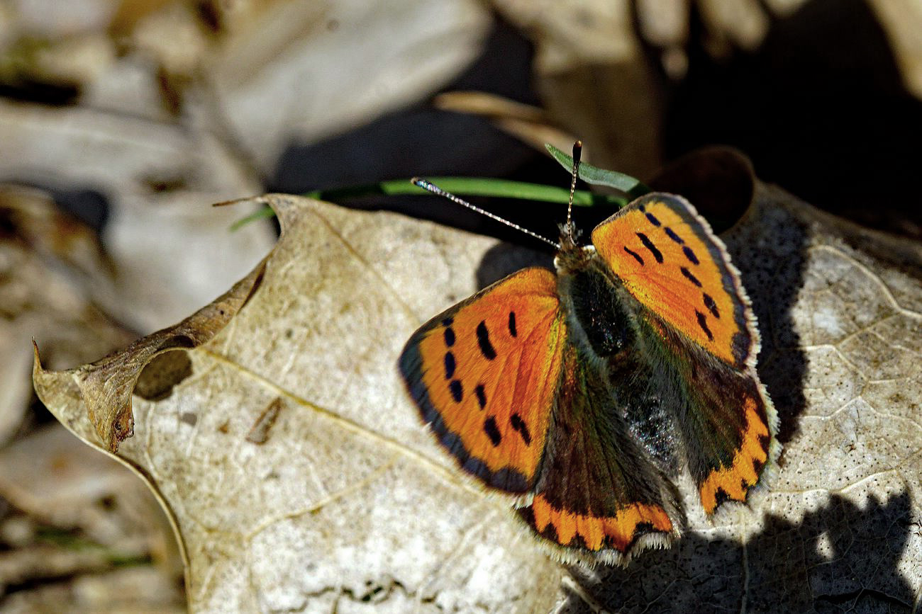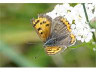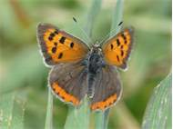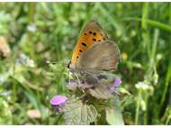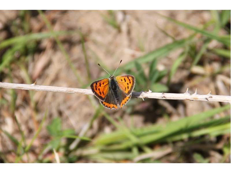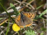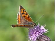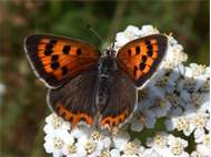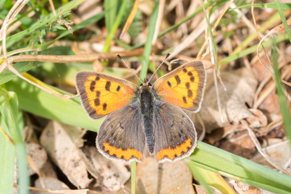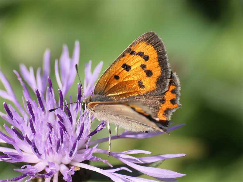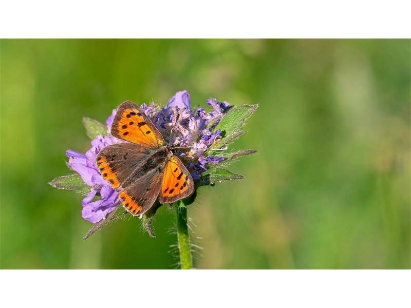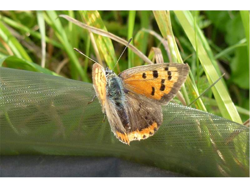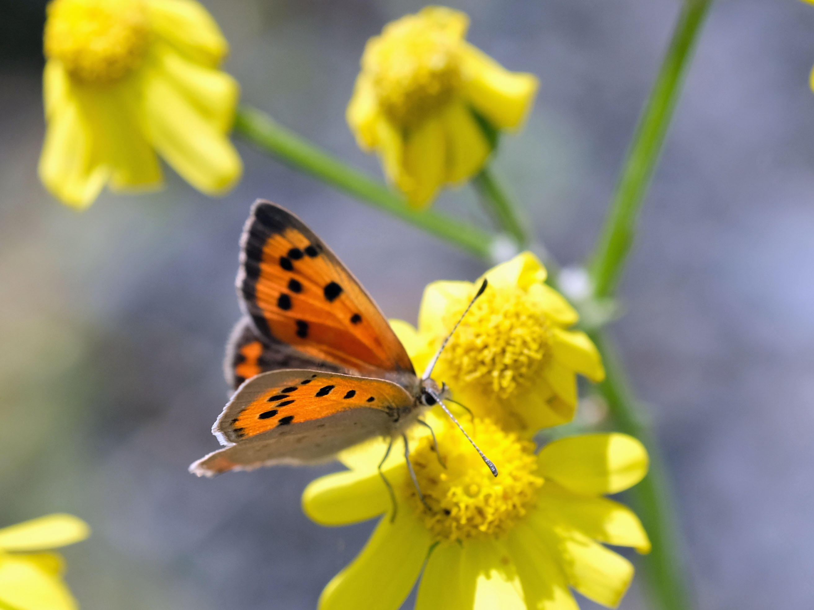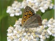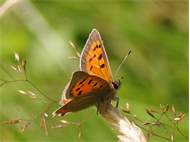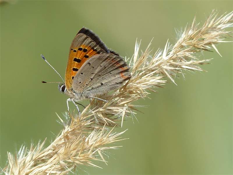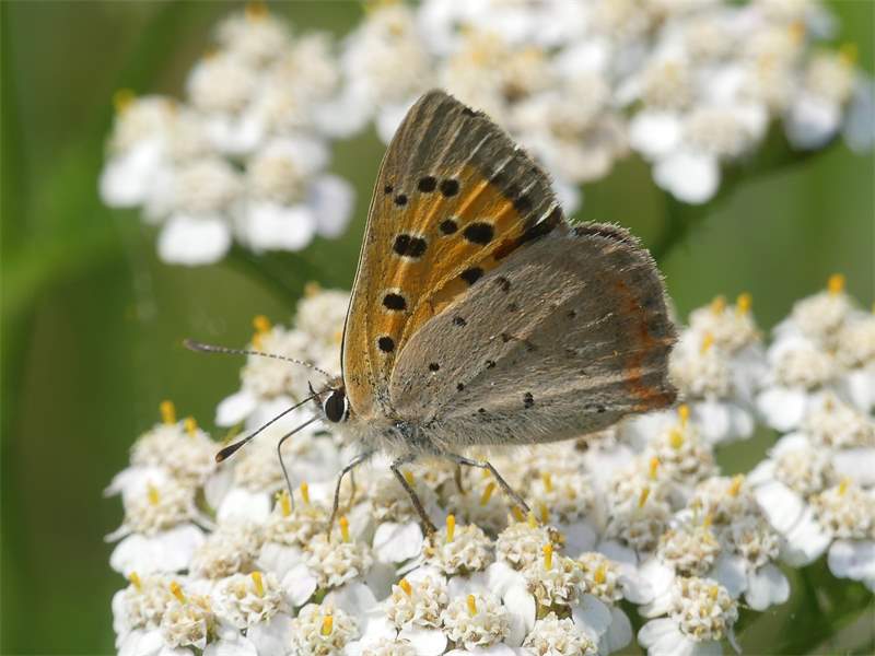 Kleiner Feuerfalter (Lycaena phlaeas (Linnaeus, 1761)), Laue, Rekultivierungsbereich der Tagebaulandschaft Goitzsche östlich vom Seelhausener See, nahe Leipzig, 16. Juni 2019