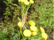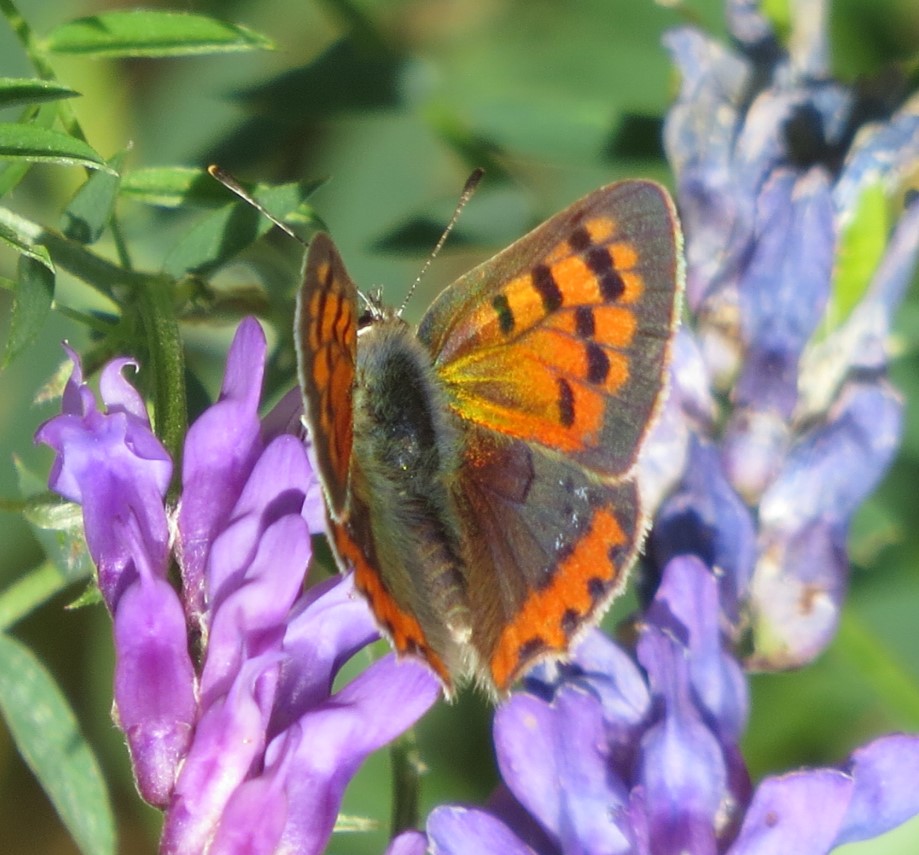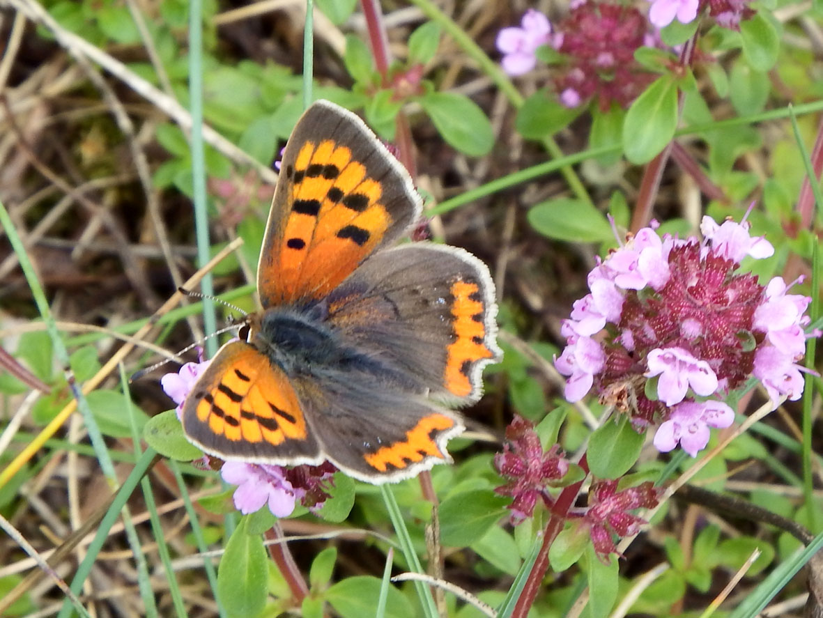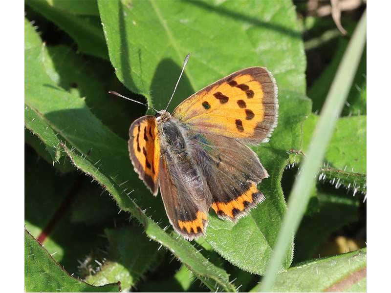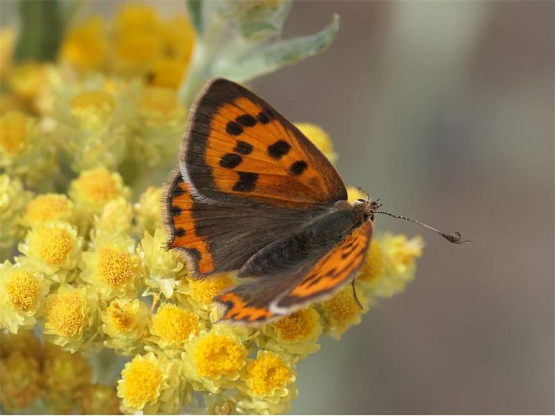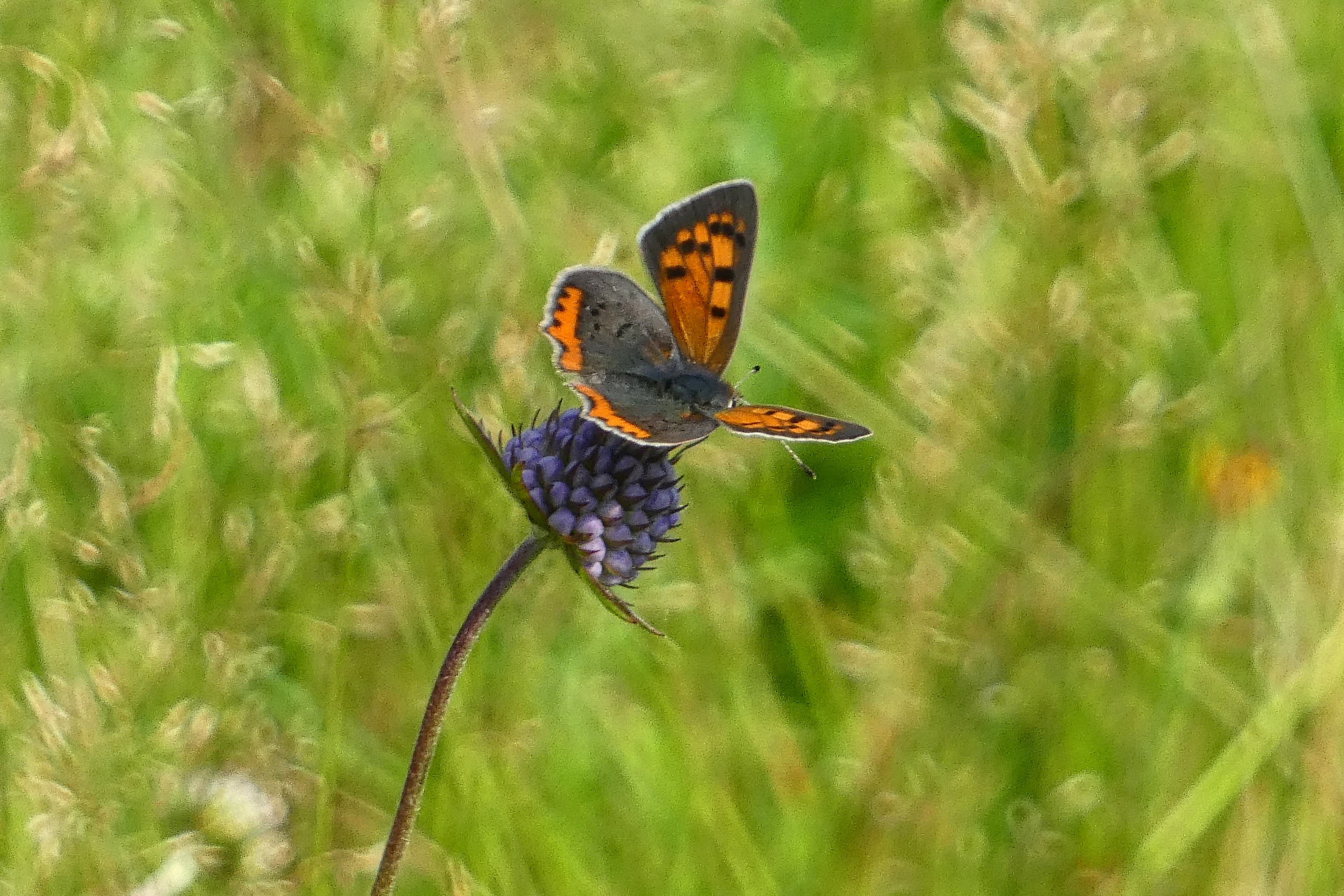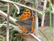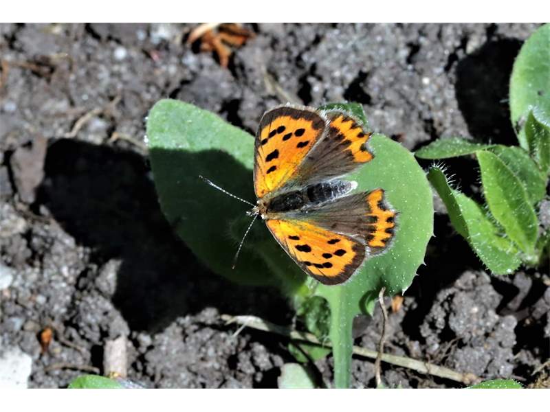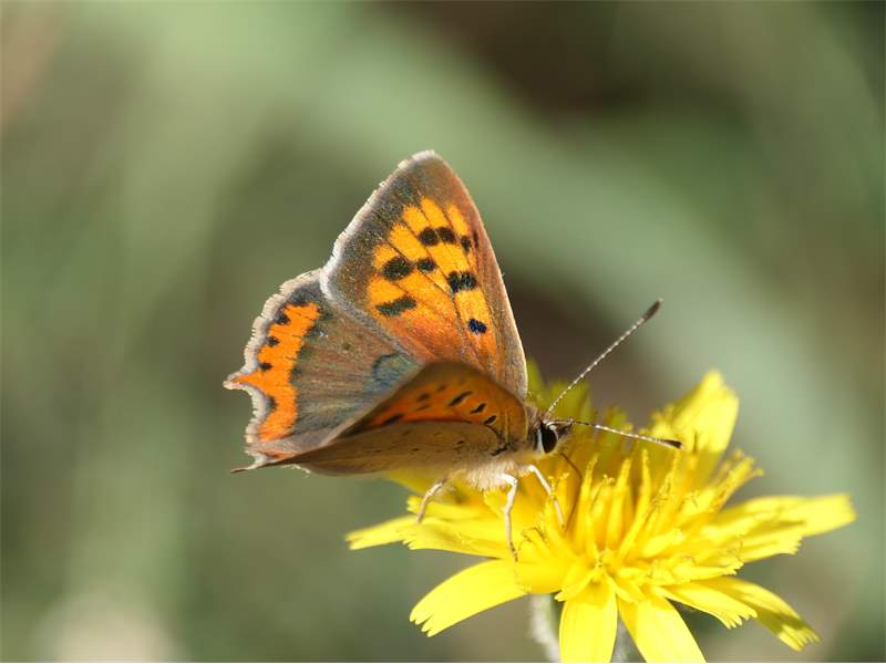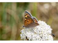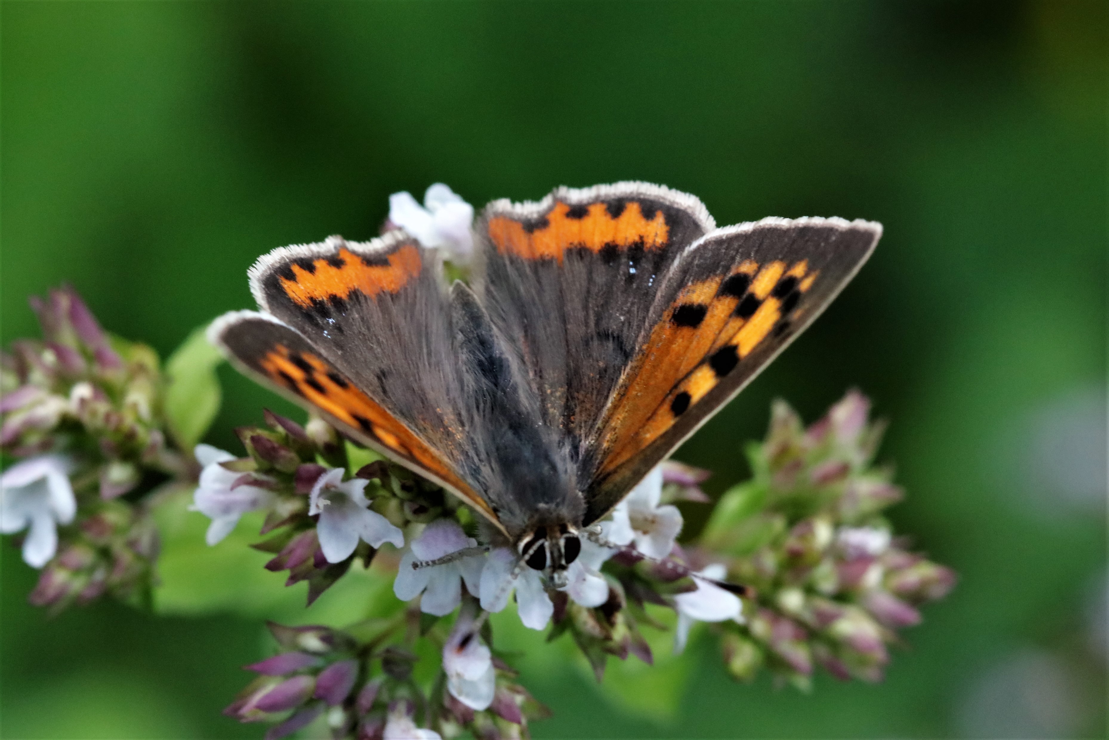 Kleiner Feuerfalter (Lycaena phlaeas (Linnaeus, 1761)), Laue, Rekultivierungsbereich der Tagebaulandschaft Goitzsche östlich vom Seelhausener See, nahe Leipzig, 16. Juni 2019