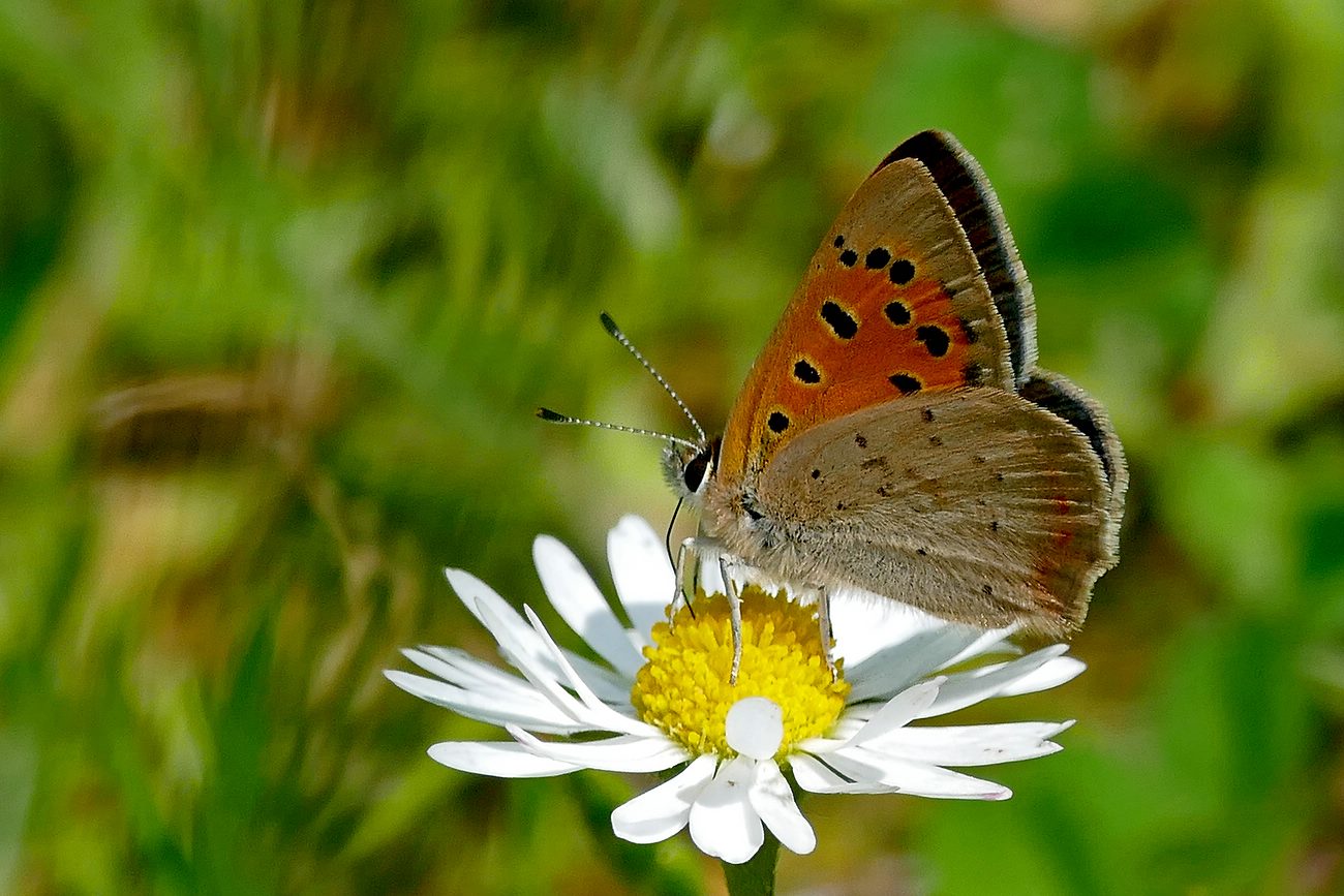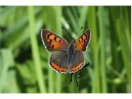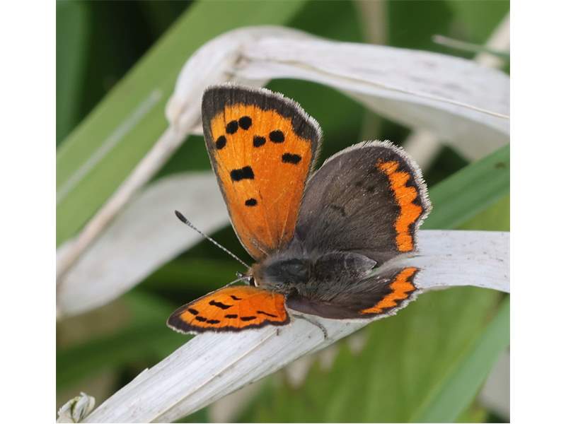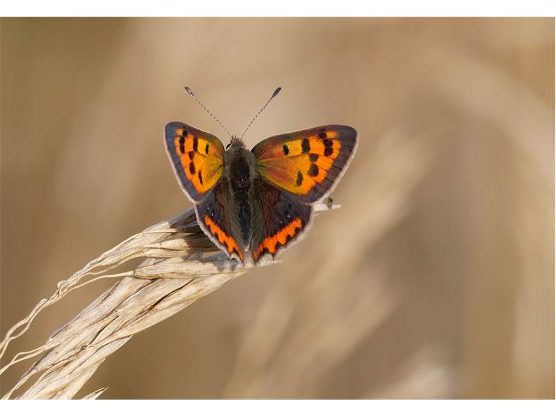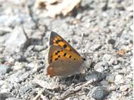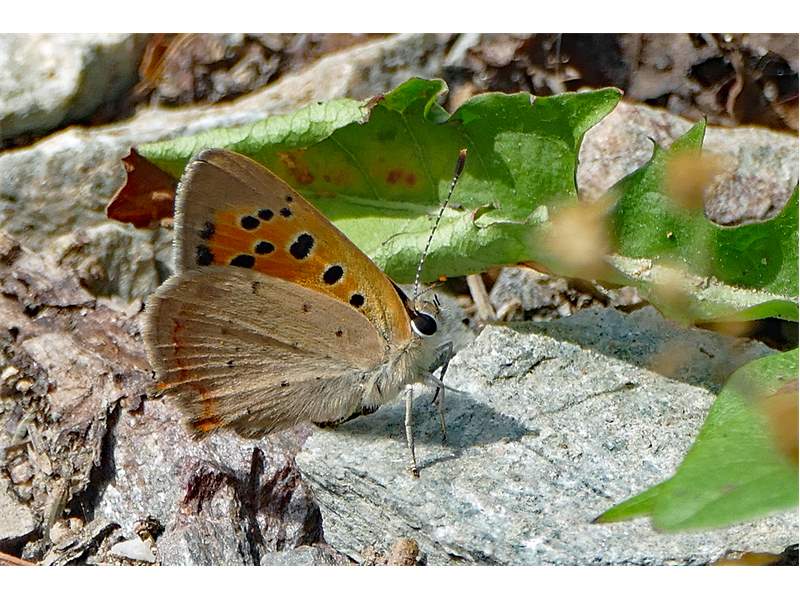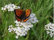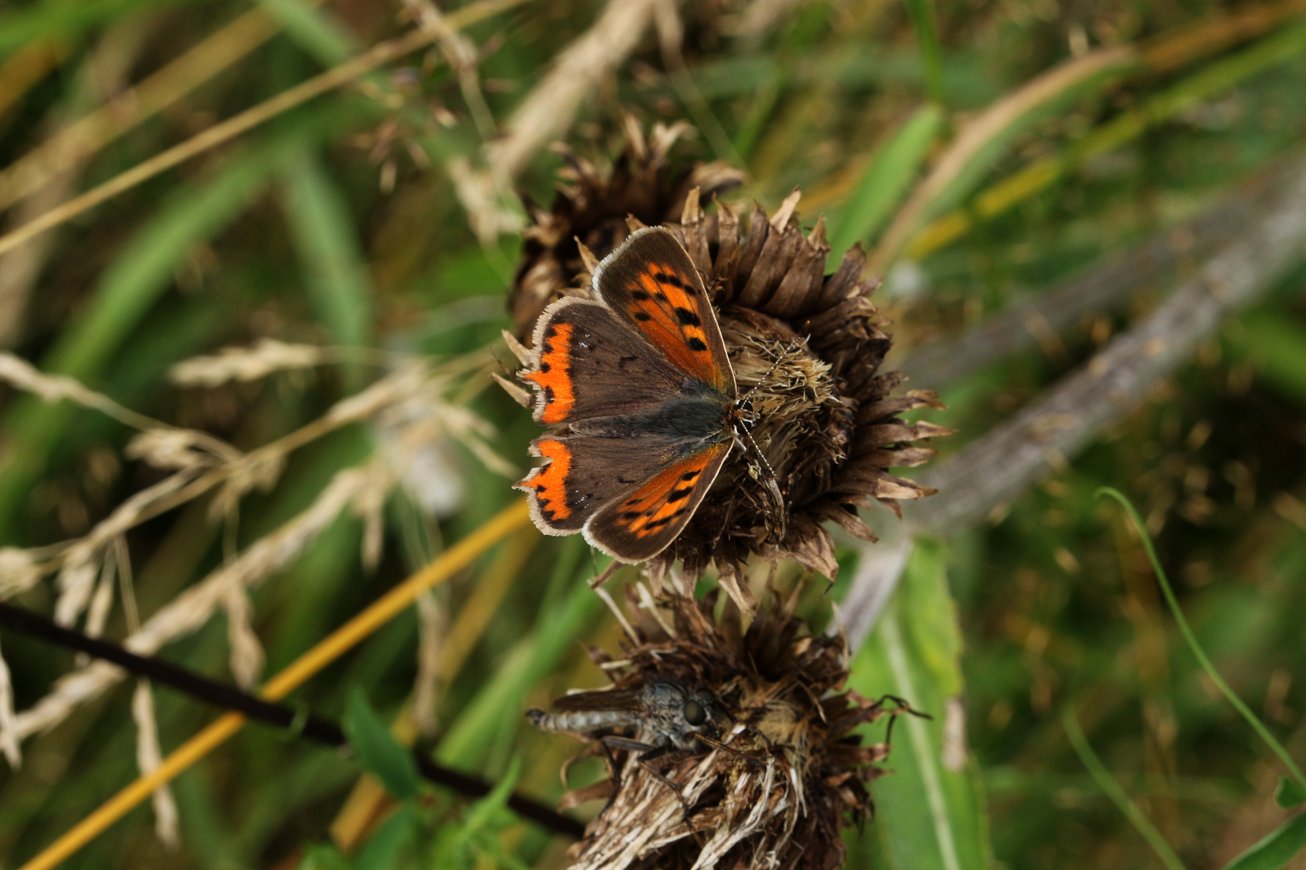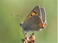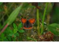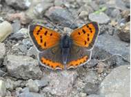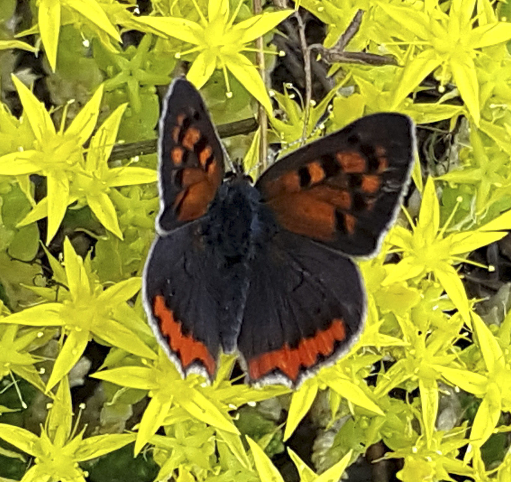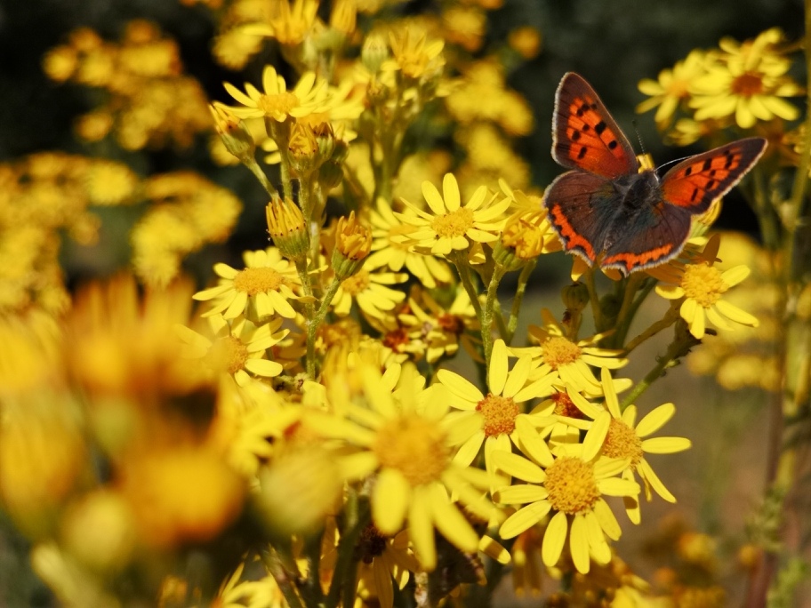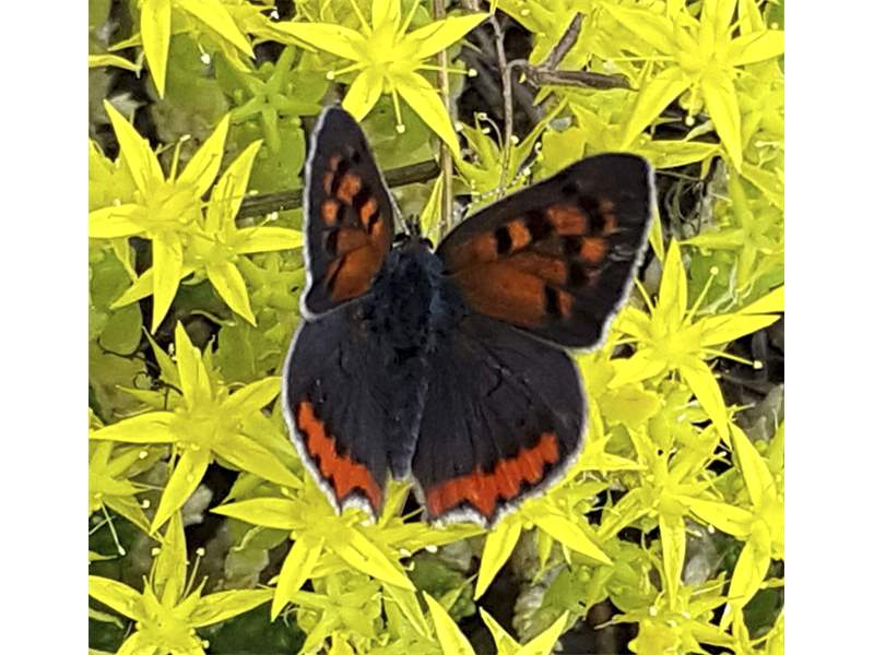 Kleiner Feuerfalter (Lycaena phlaeas (Linnaeus, 1761)), Laue, Rekultivierungsbereich der Tagebaulandschaft Goitzsche östlich vom Seelhausener See, nahe Leipzig, 16. Juni 2019