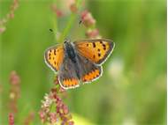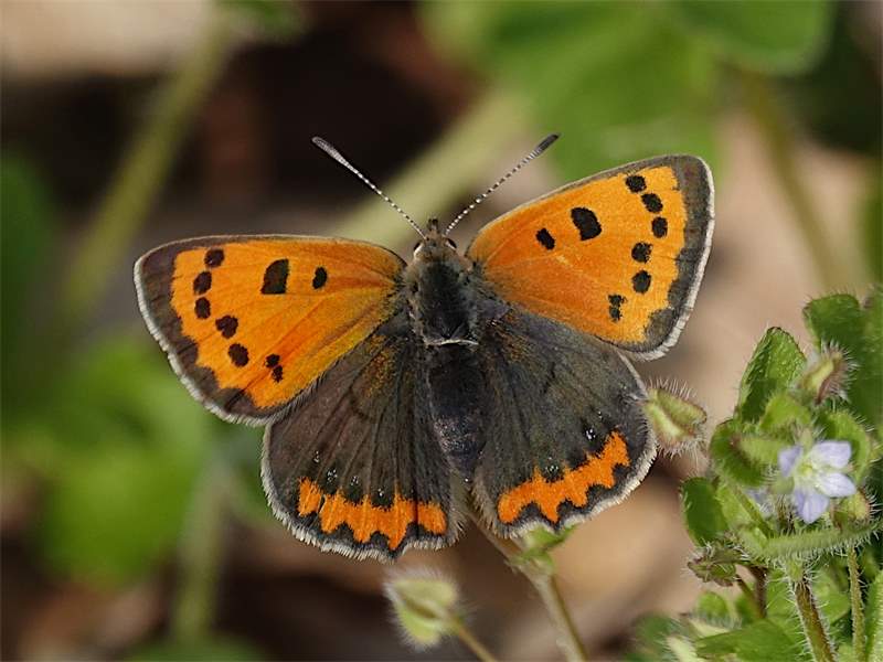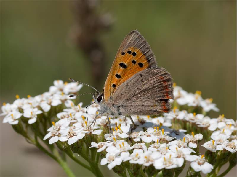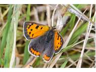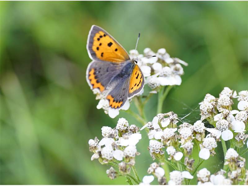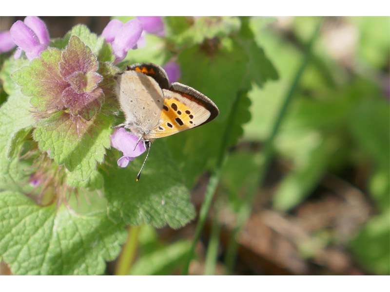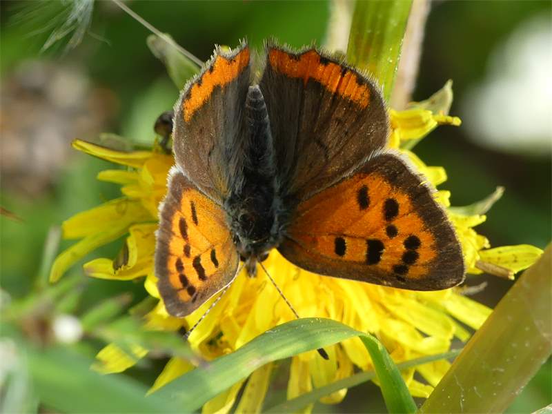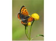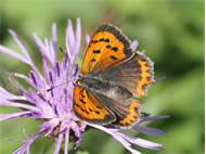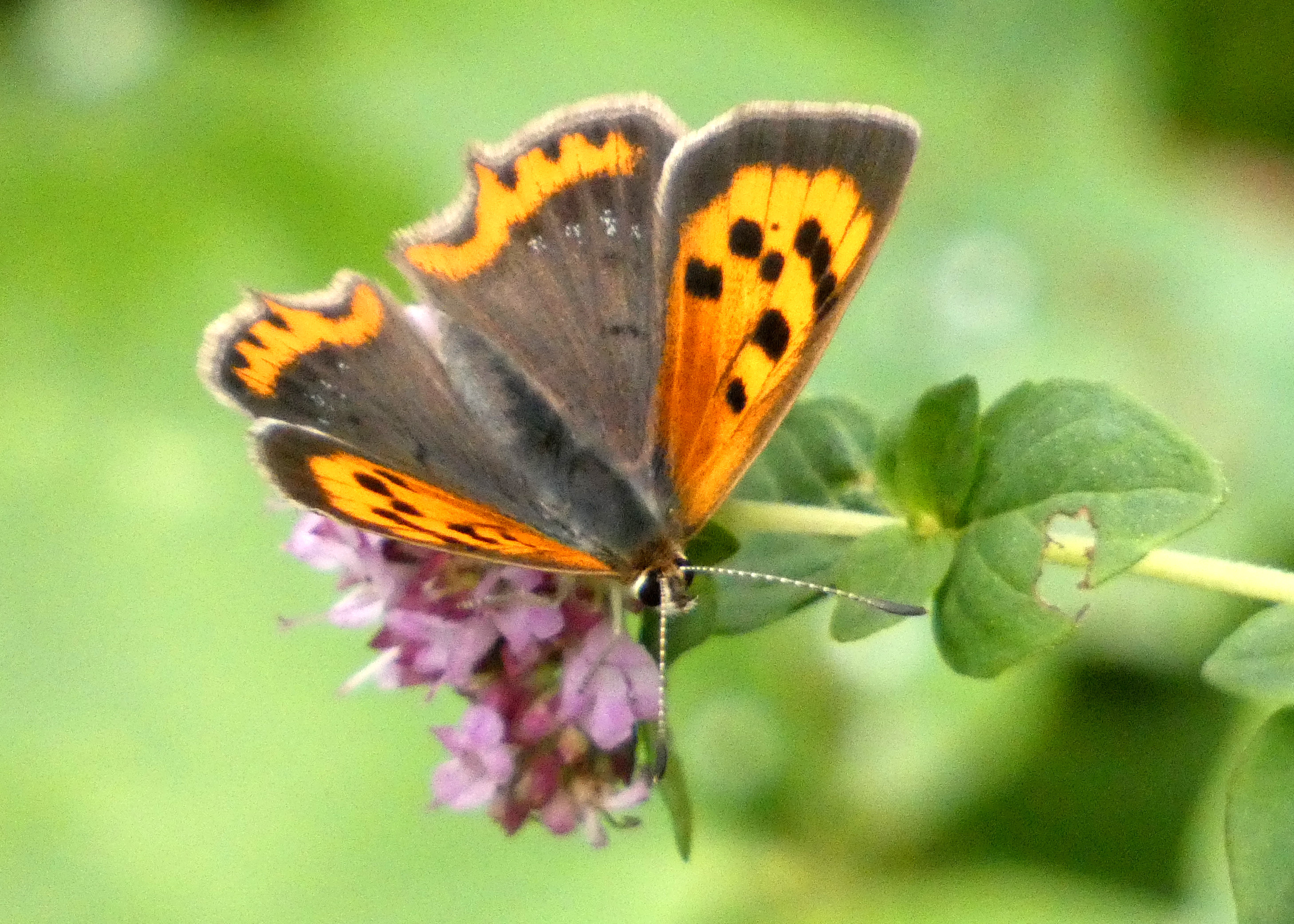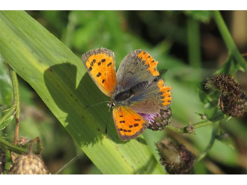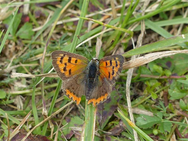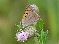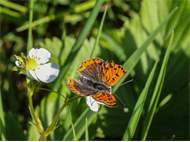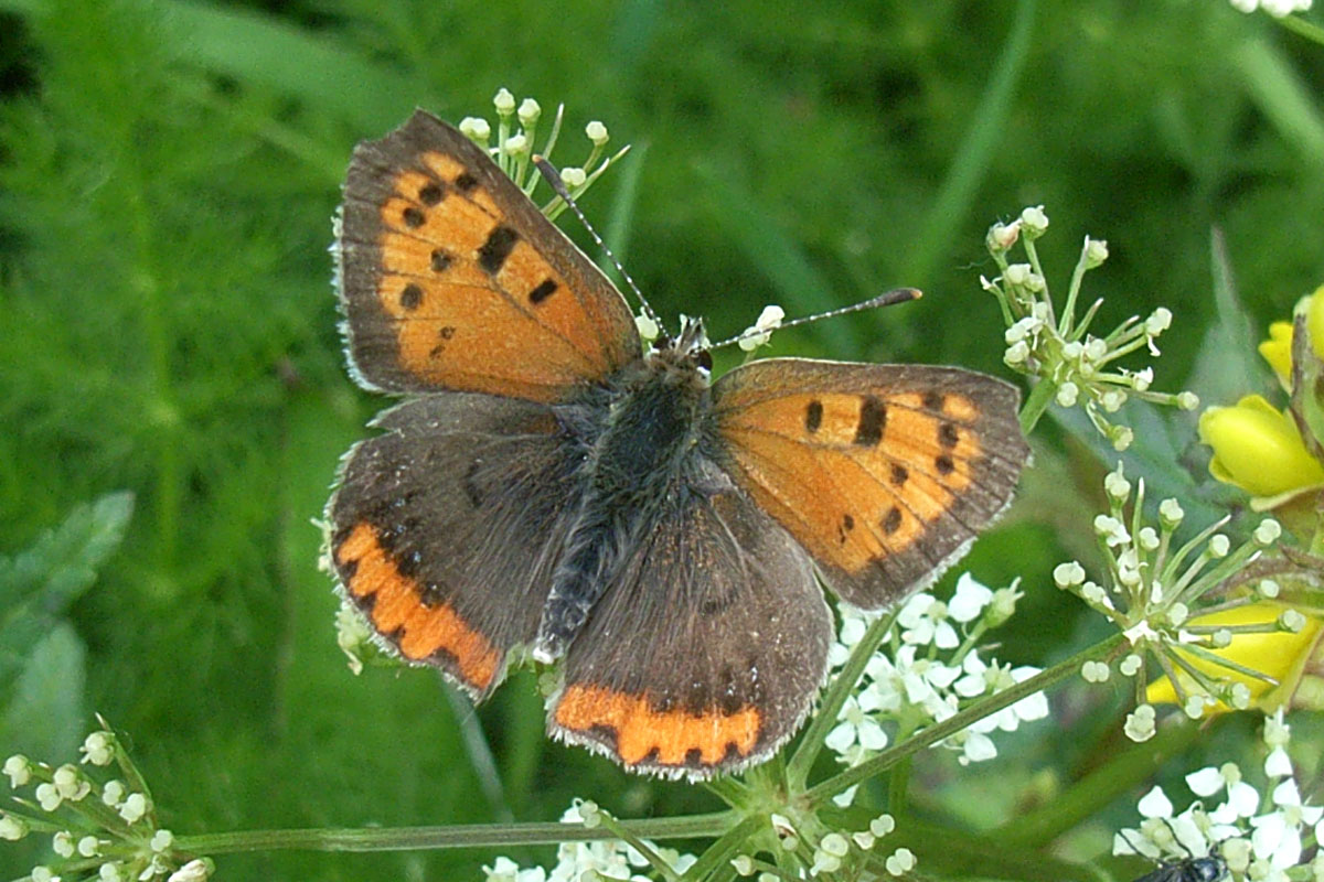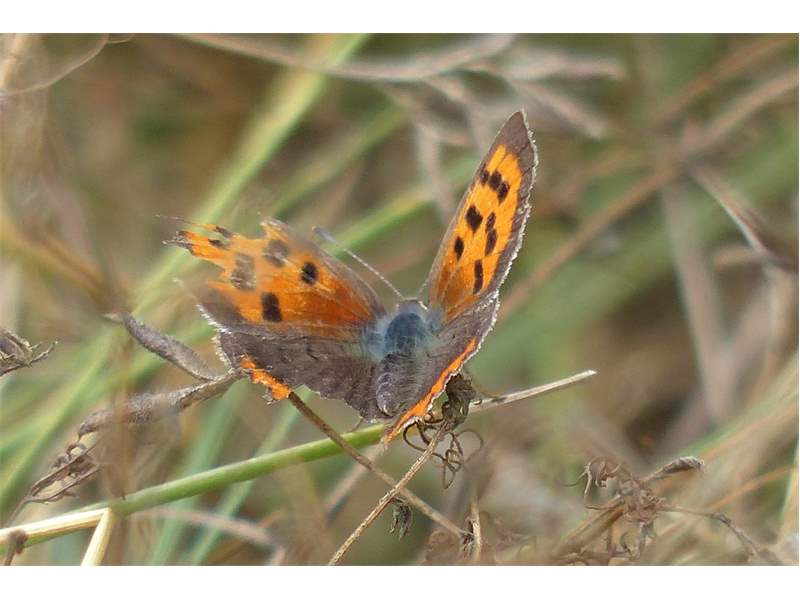 Kleiner Feuerfalter (Lycaena phlaeas (Linnaeus, 1761)), Laue, Rekultivierungsbereich der Tagebaulandschaft Goitzsche östlich vom Seelhausener See, nahe Leipzig, 16. Juni 2019