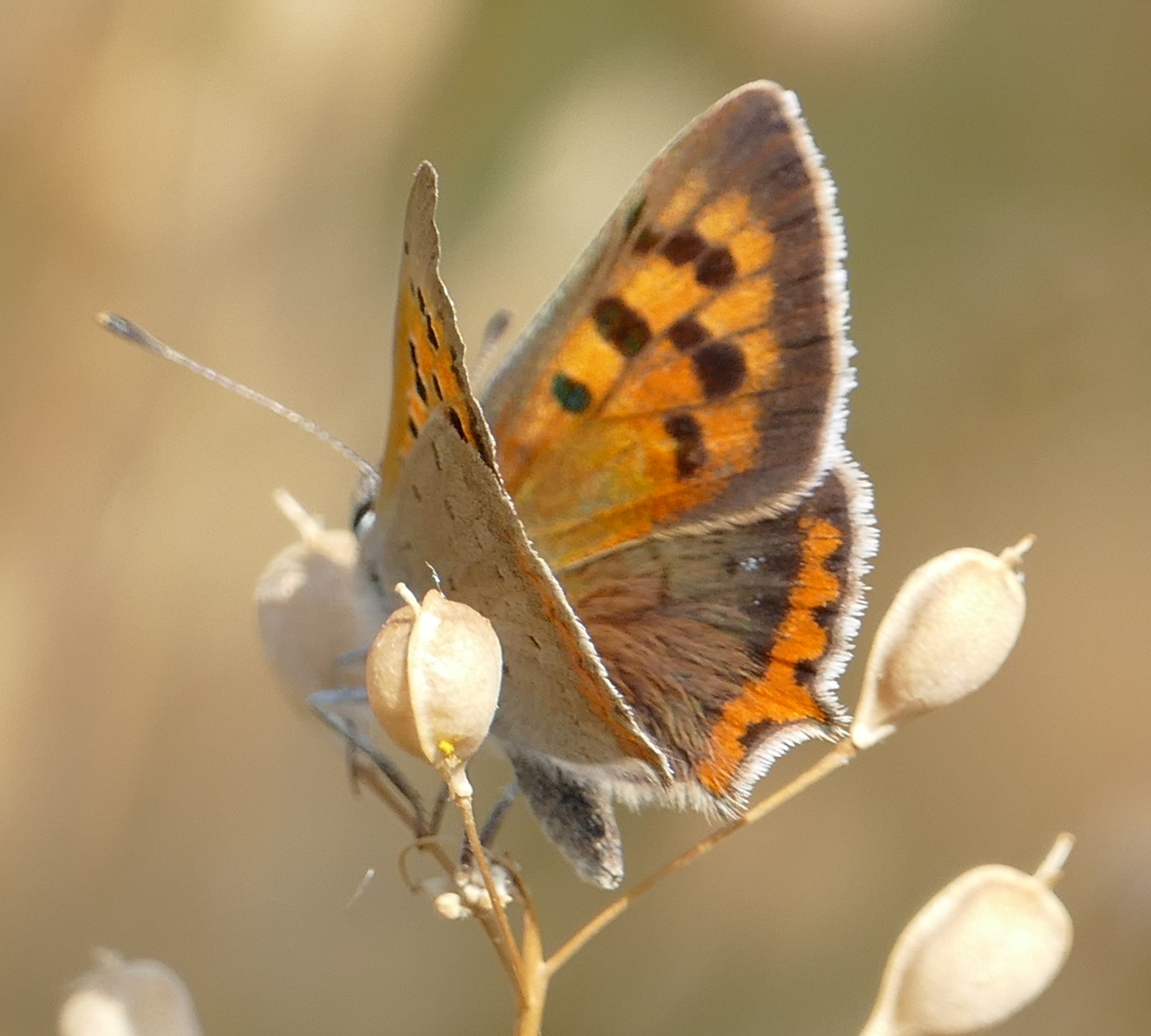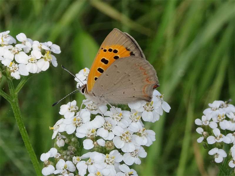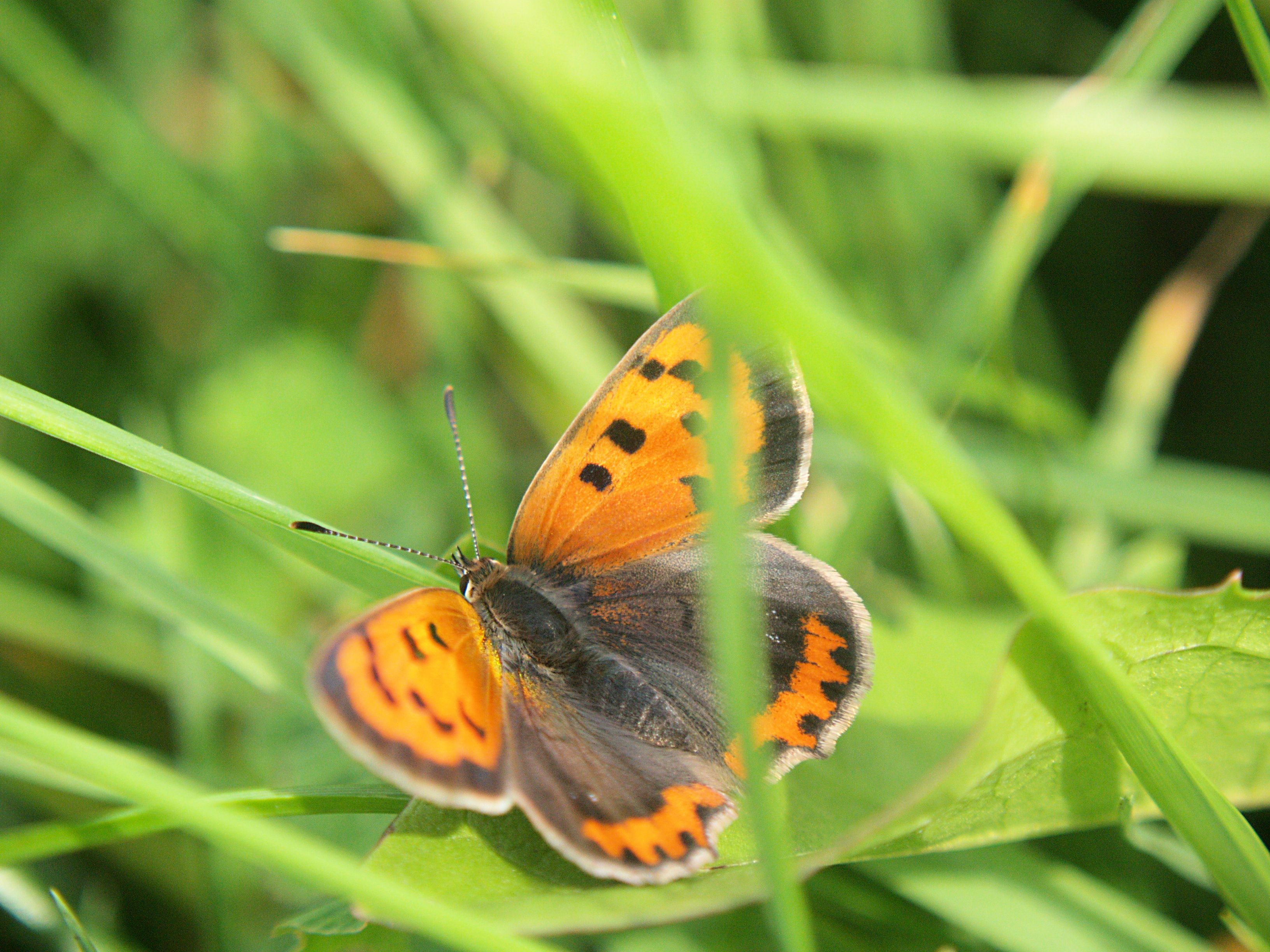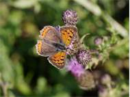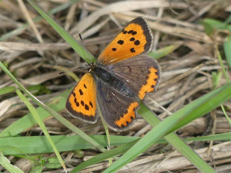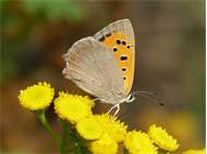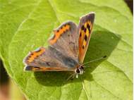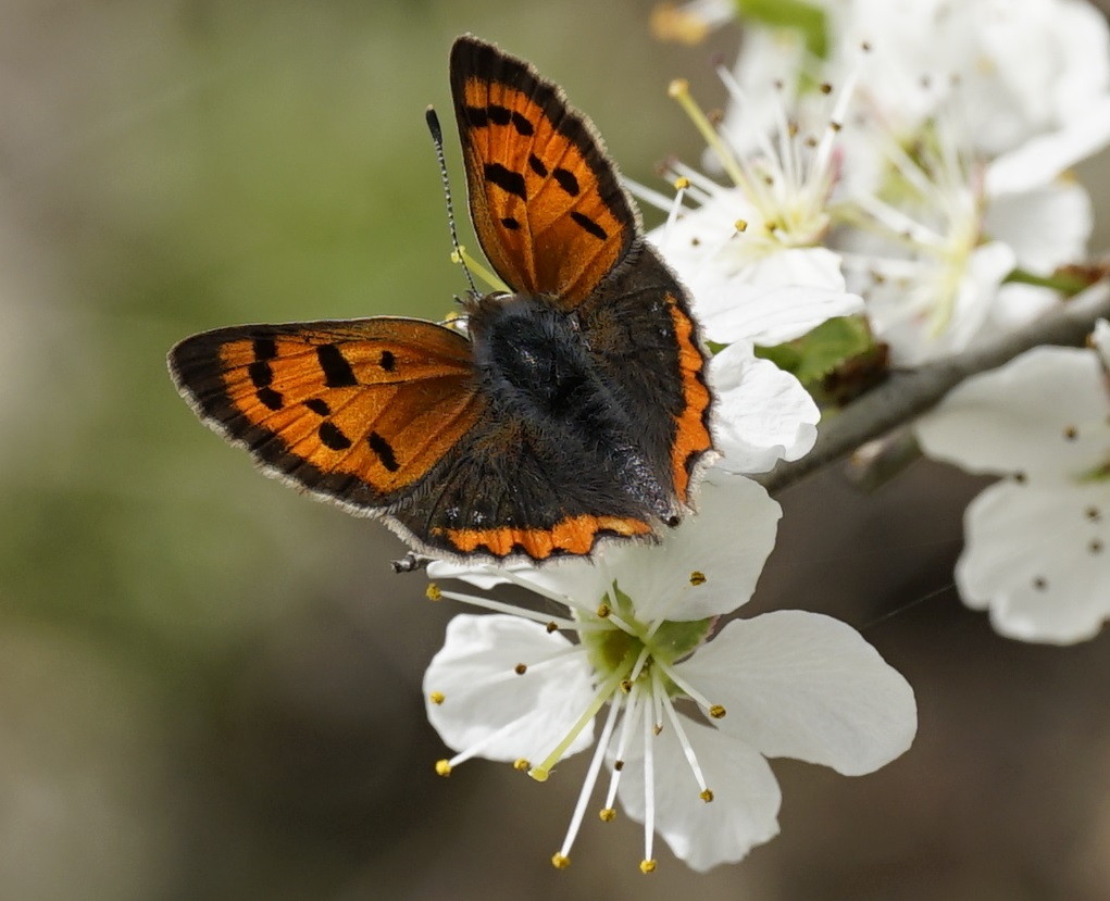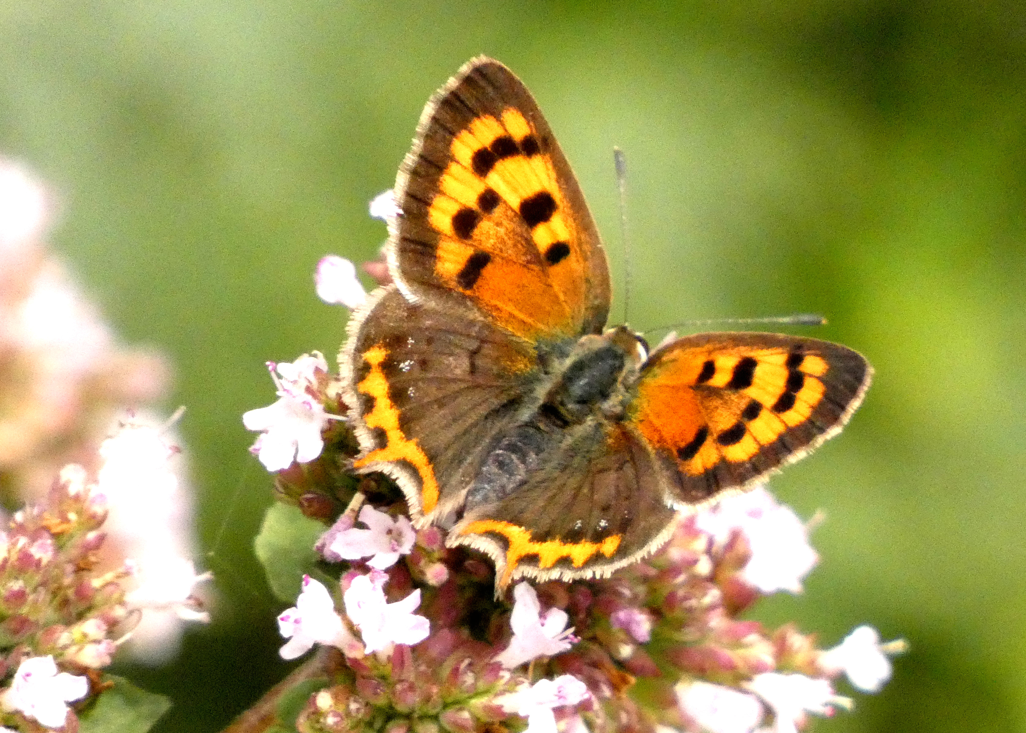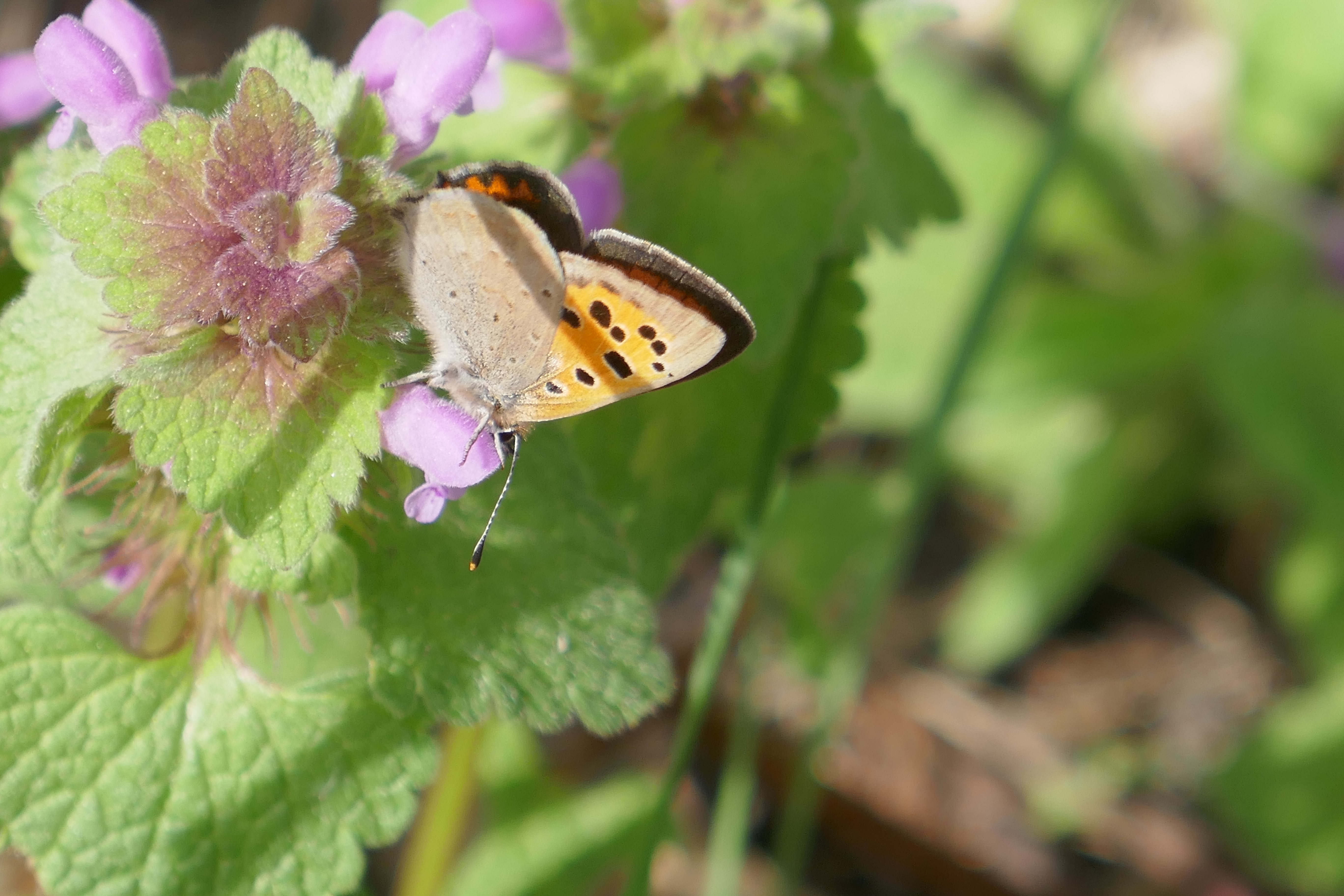 Kleiner Feuerfalter (Lycaena phlaeas (Linnaeus, 1761)), Laue, Rekultivierungsbereich der Tagebaulandschaft Goitzsche östlich vom Seelhausener See, nahe Leipzig, 16. Juni 2019