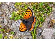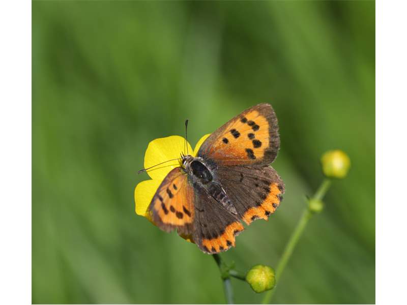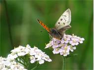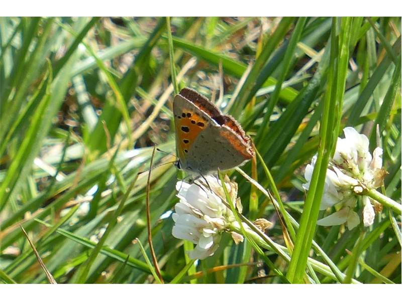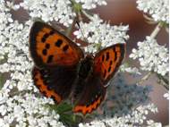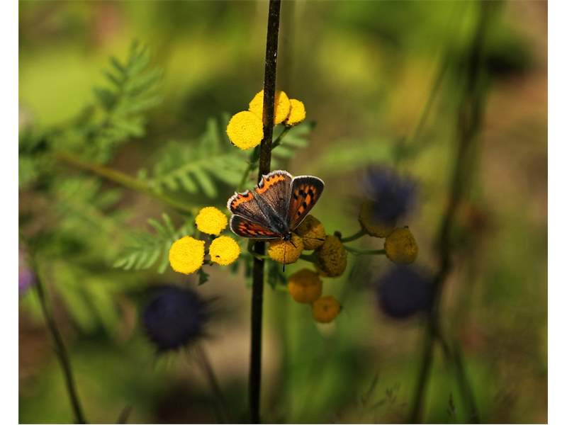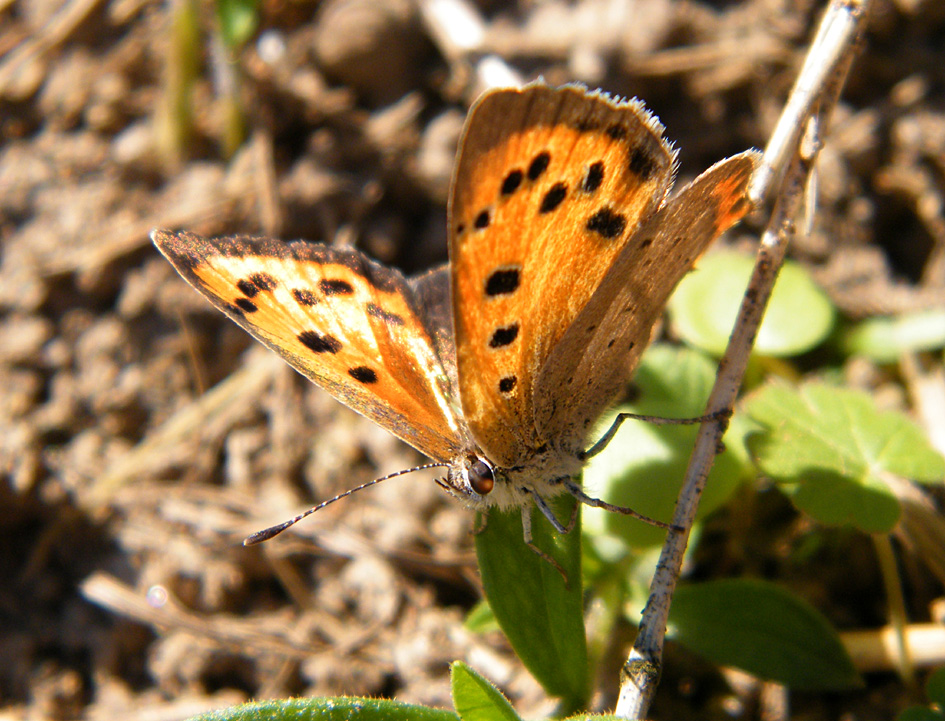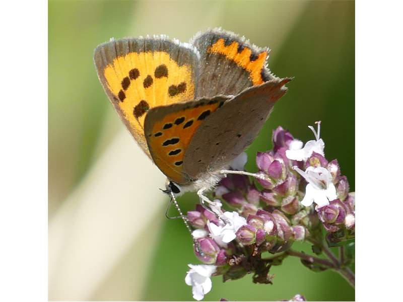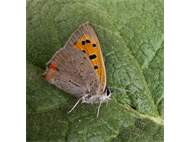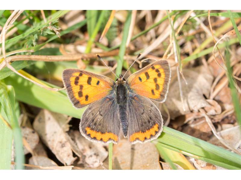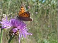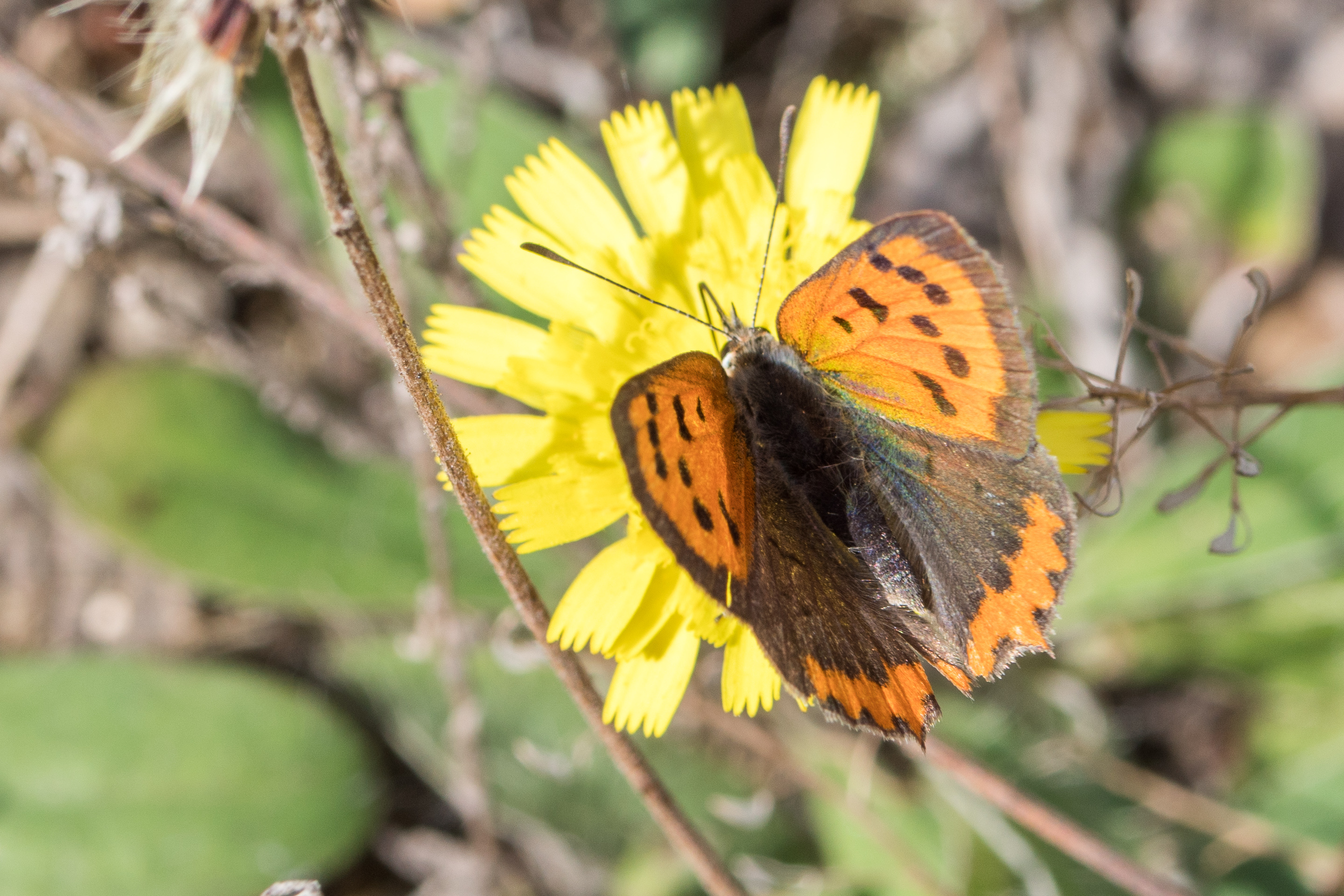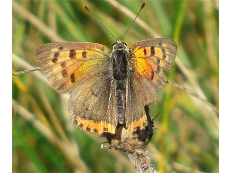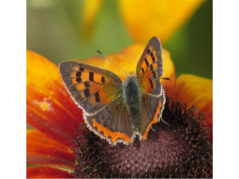 Kleiner Feuerfalter (Lycaena phlaeas (Linnaeus, 1761)), Laue, Rekultivierungsbereich der Tagebaulandschaft Goitzsche östlich vom Seelhausener See, nahe Leipzig, 16. Juni 2019