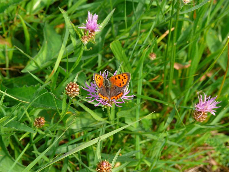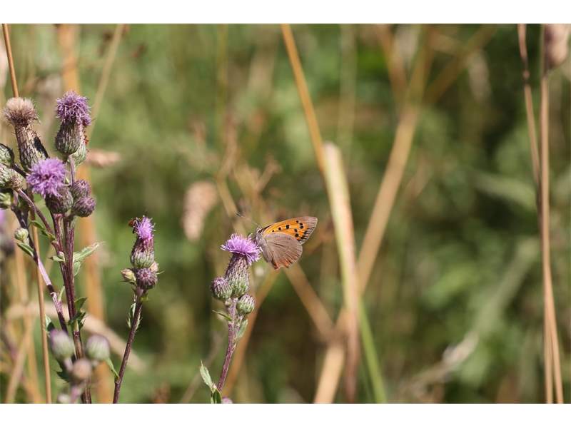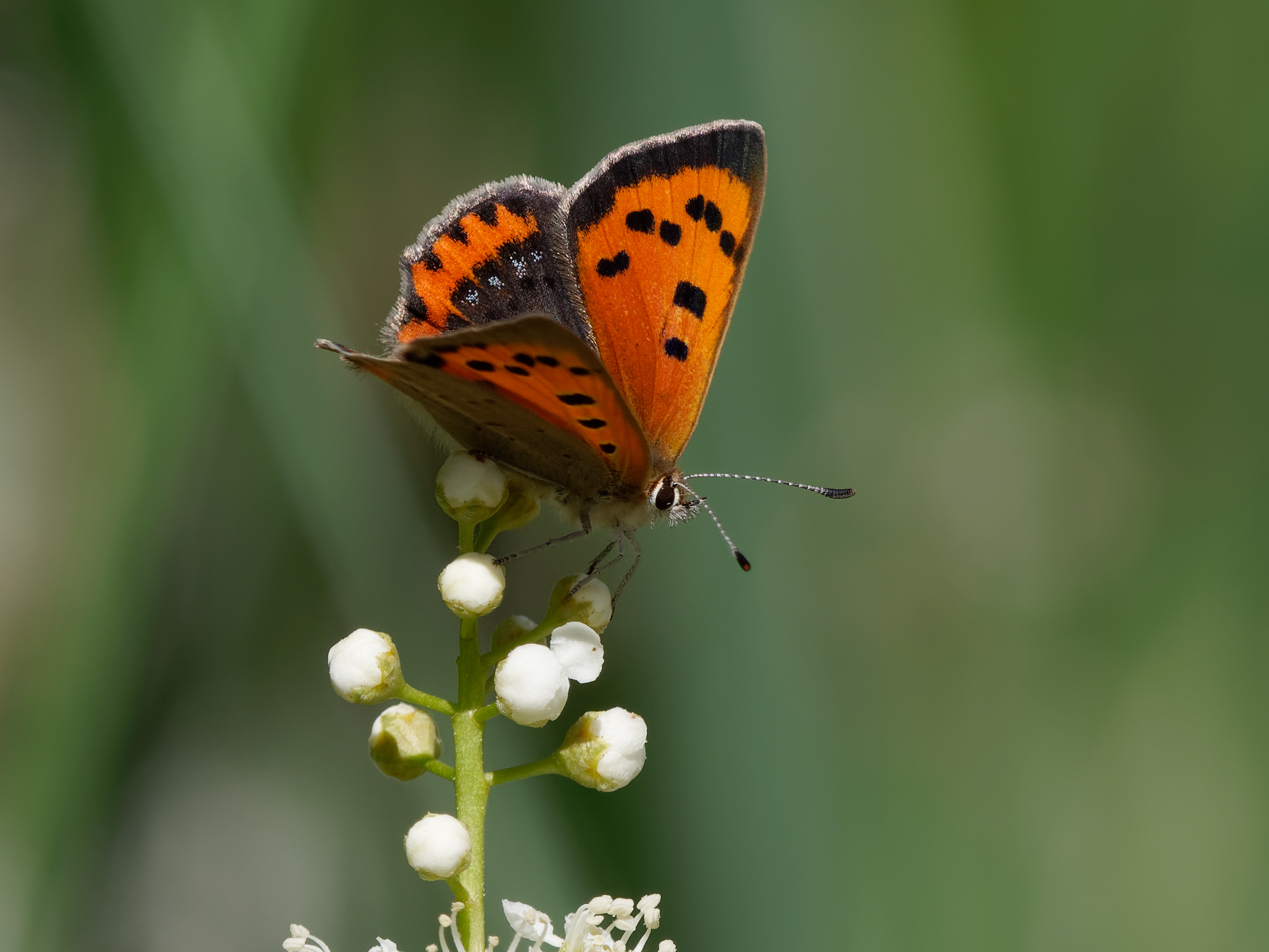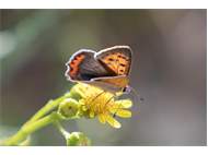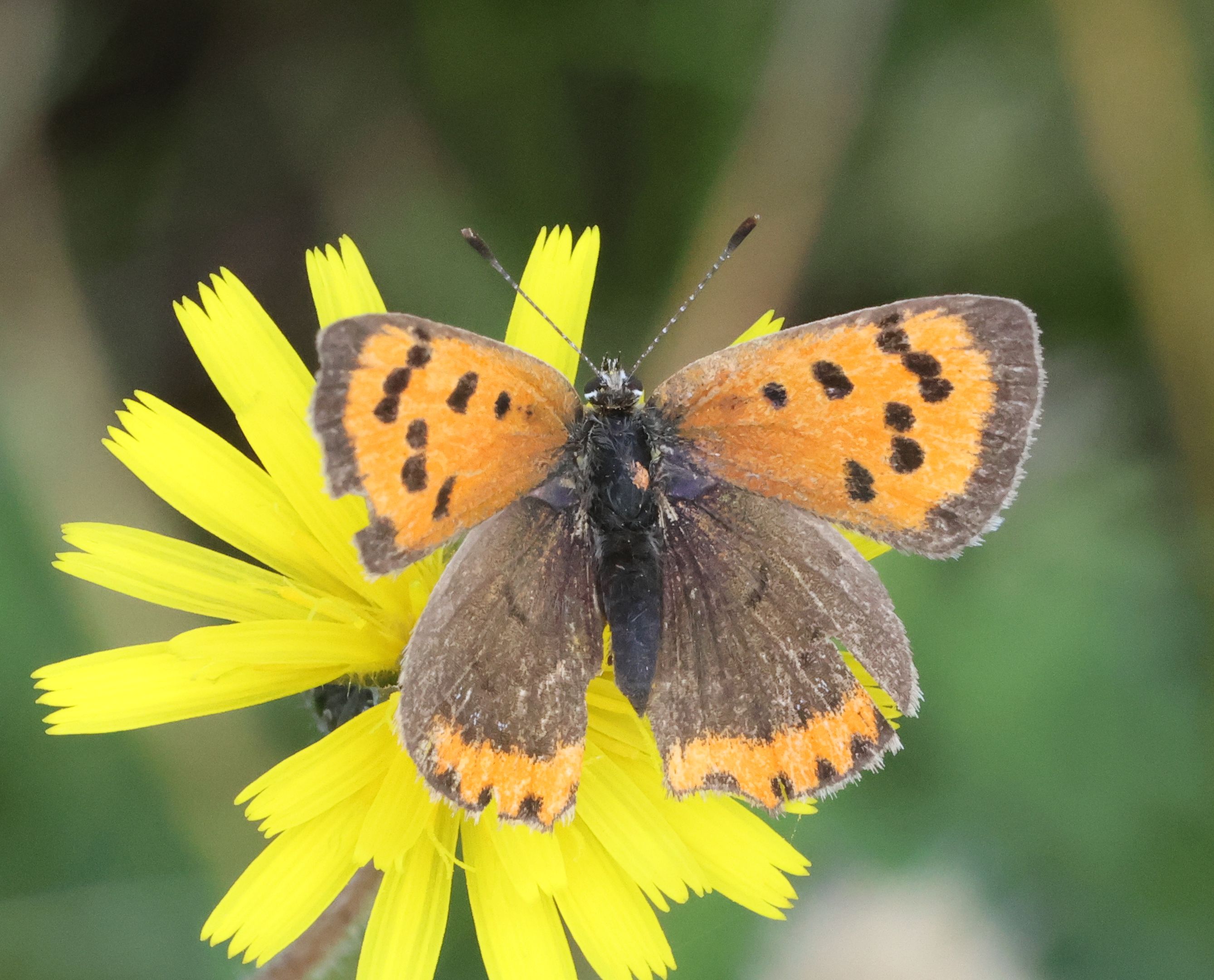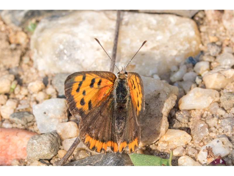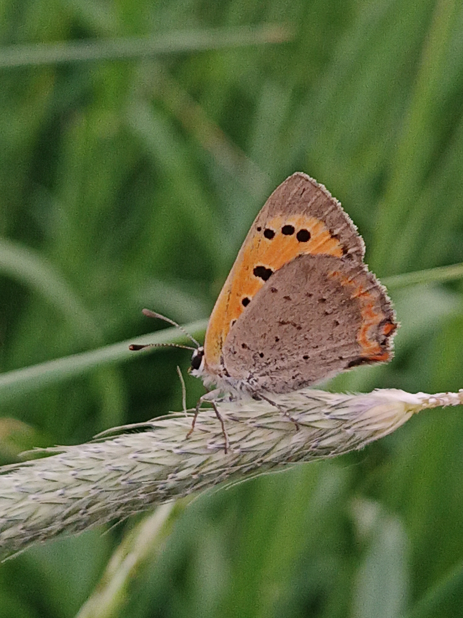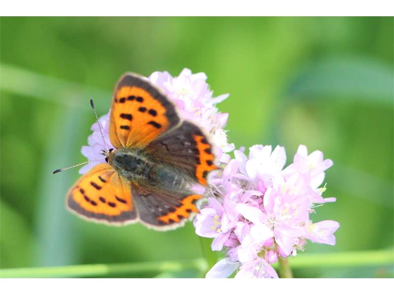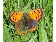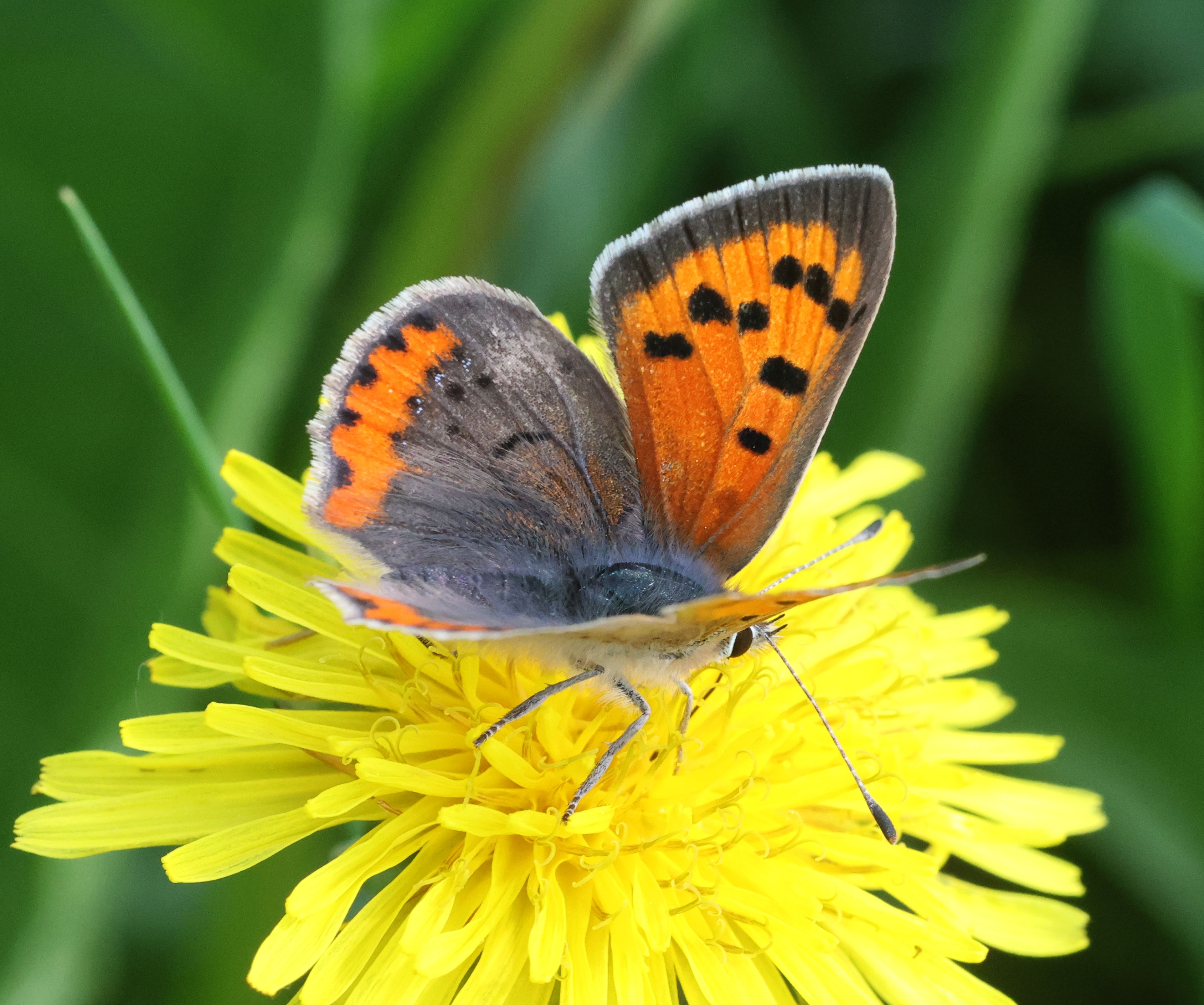 Kleiner Feuerfalter (Lycaena phlaeas (Linnaeus, 1761)), Laue, Rekultivierungsbereich der Tagebaulandschaft Goitzsche östlich vom Seelhausener See, nahe Leipzig, 16. Juni 2019