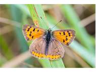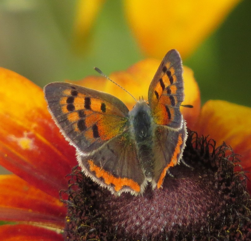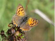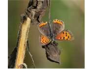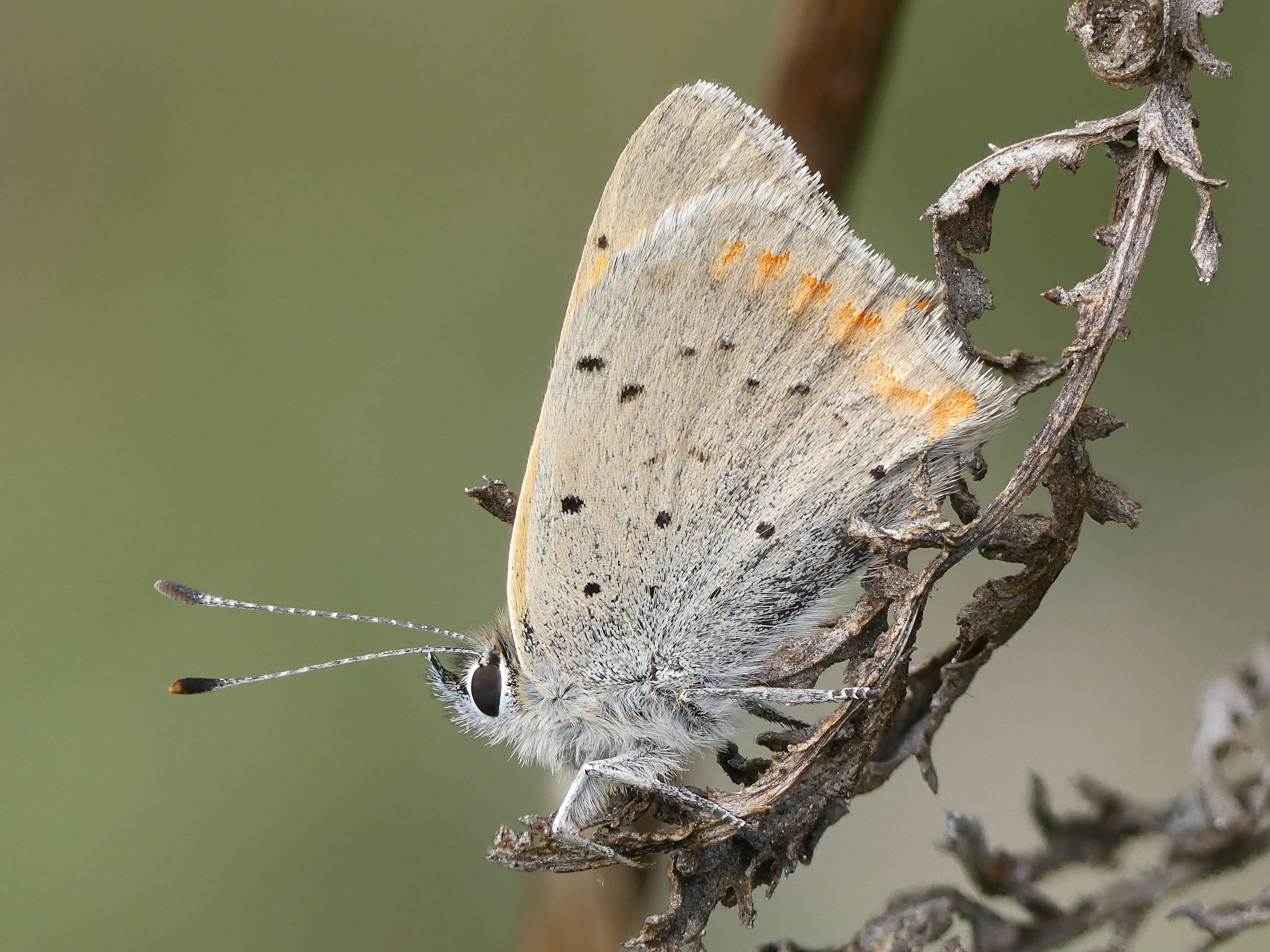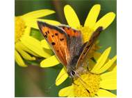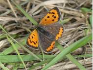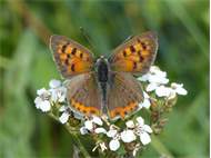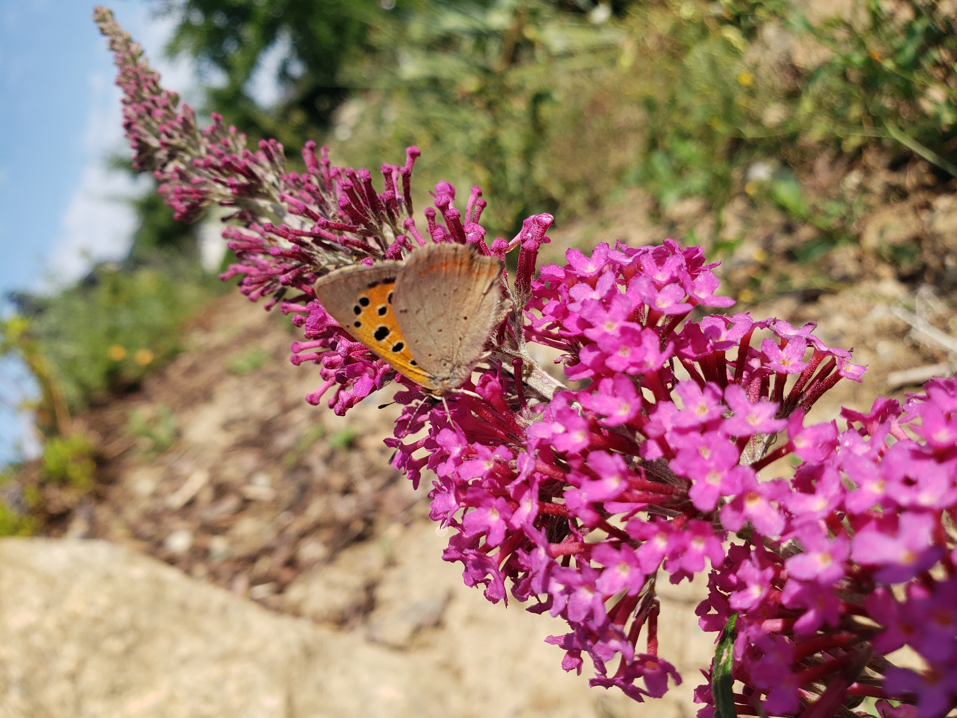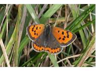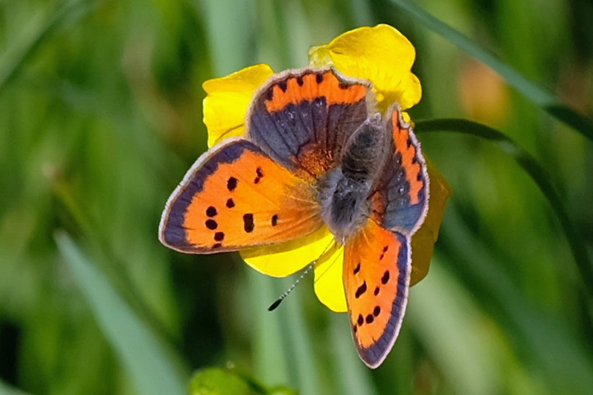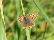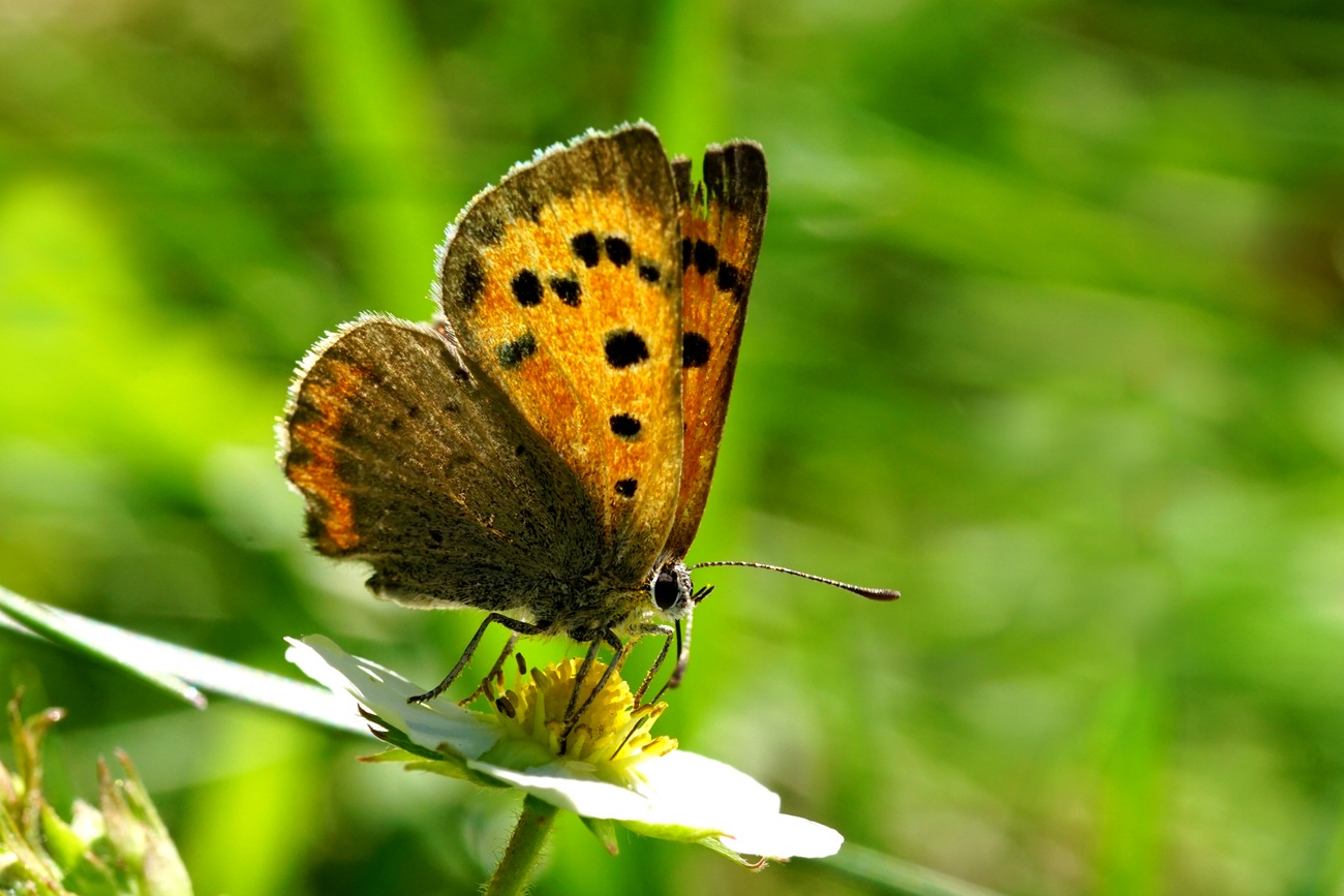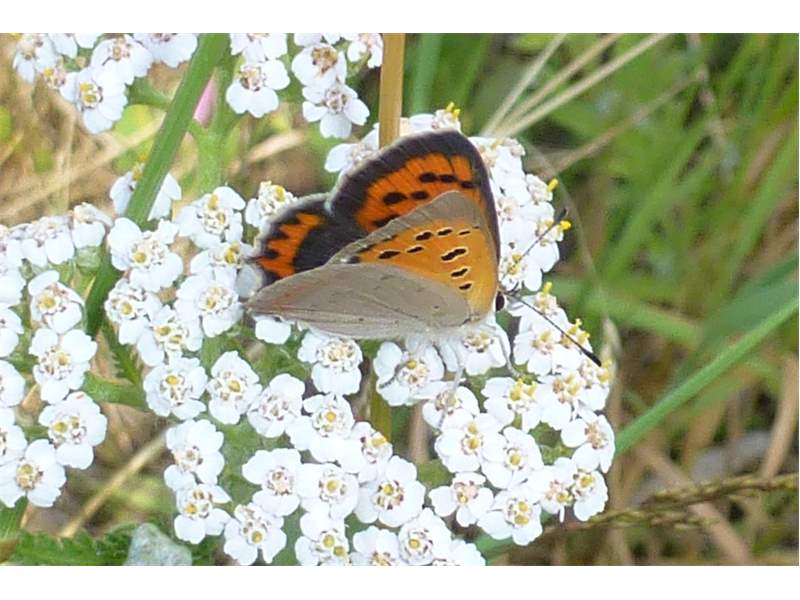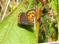Kleiner Feuerfalter (Lycaena phlaeas (Linnaeus, 1761)), Laue, Rekultivierungsbereich der Tagebaulandschaft Goitzsche östlich vom Seelhausener See, nahe Leipzig, 16. Juni 2019