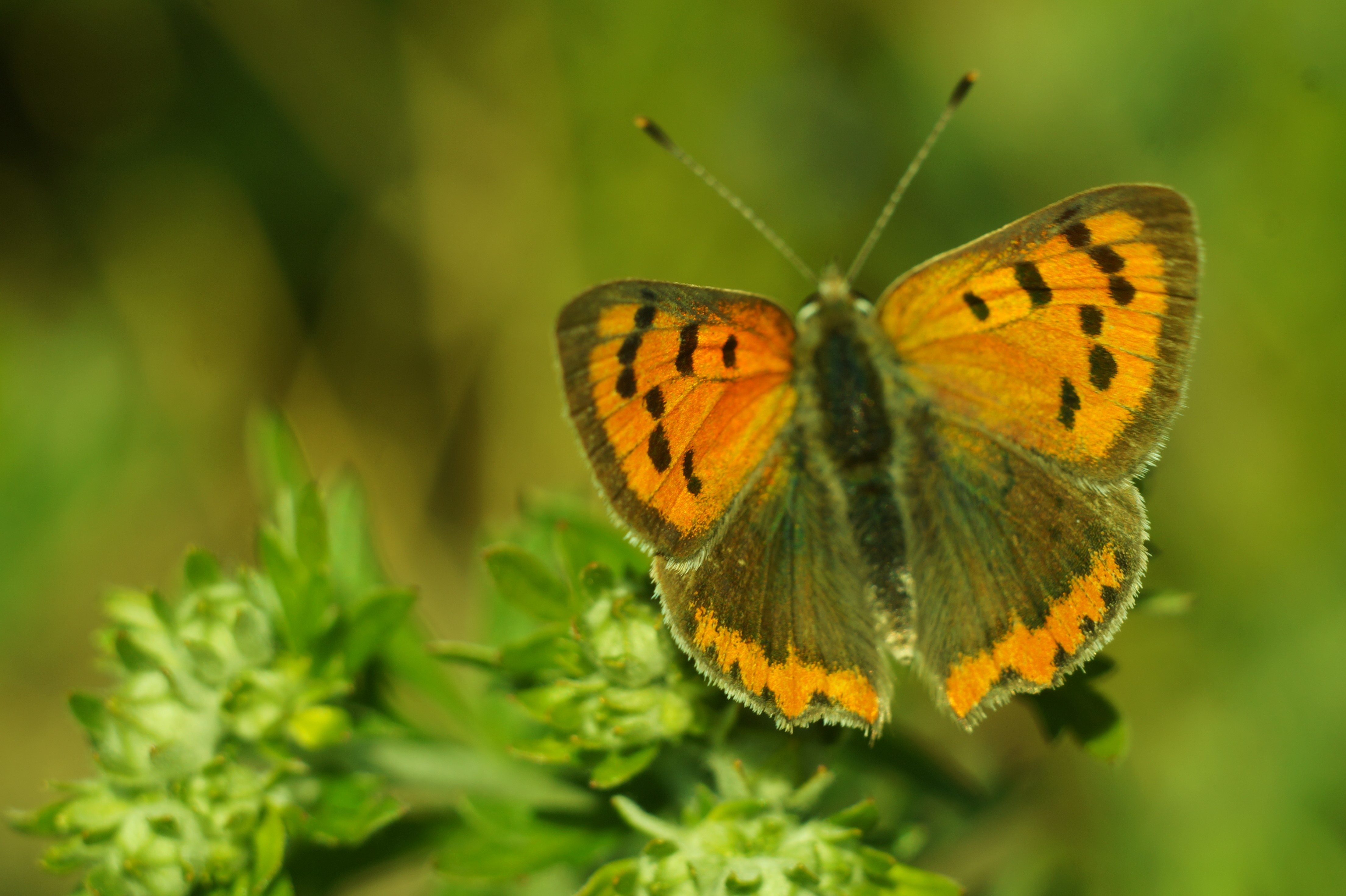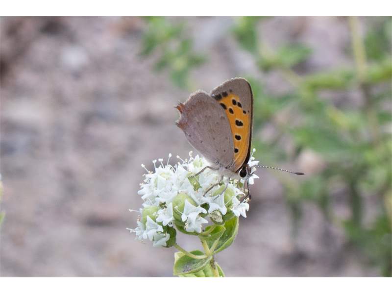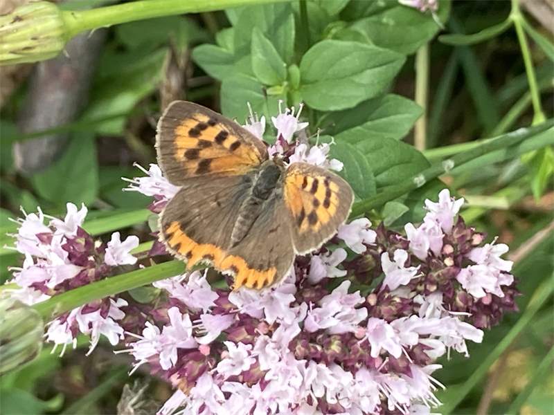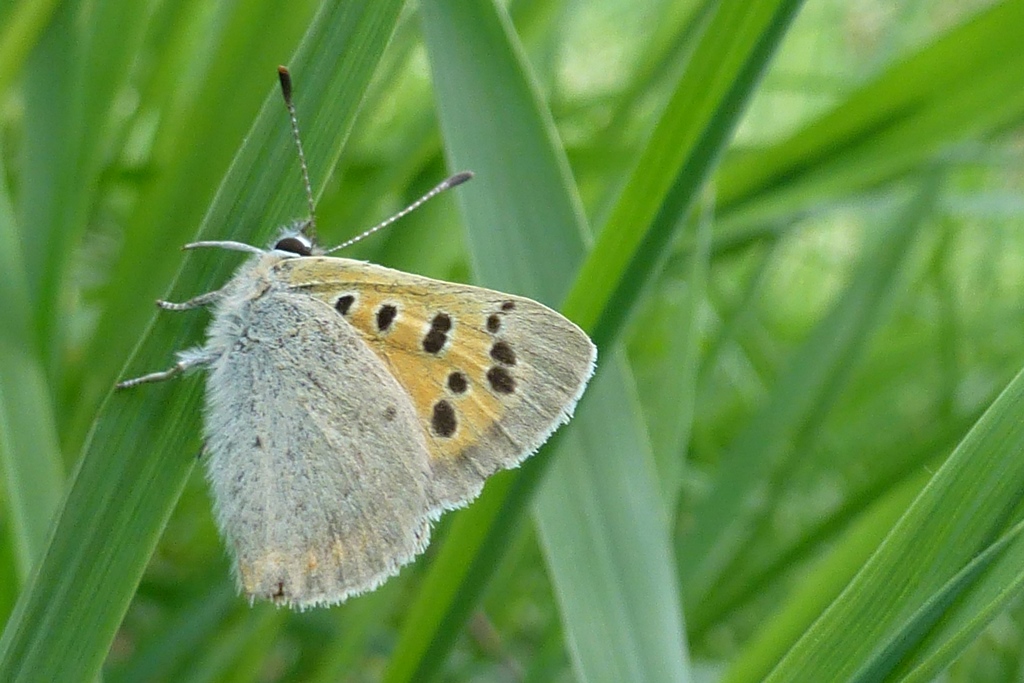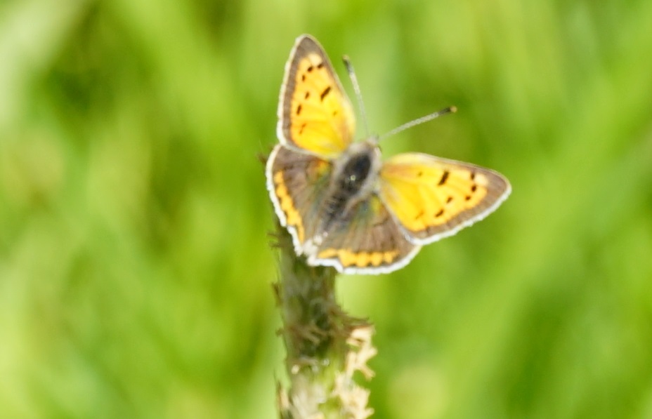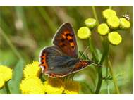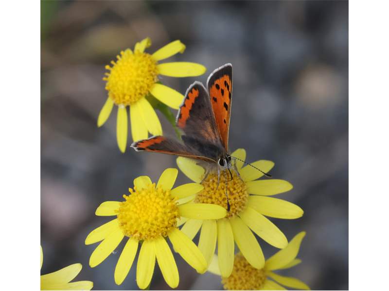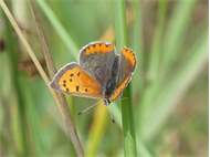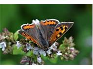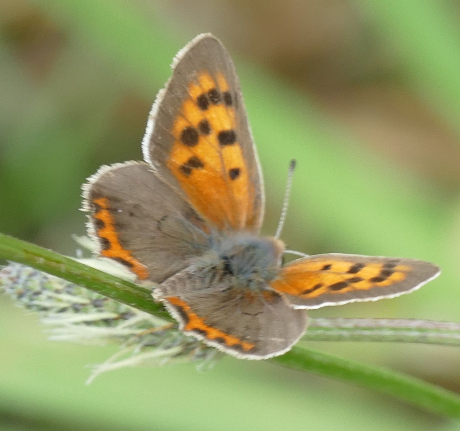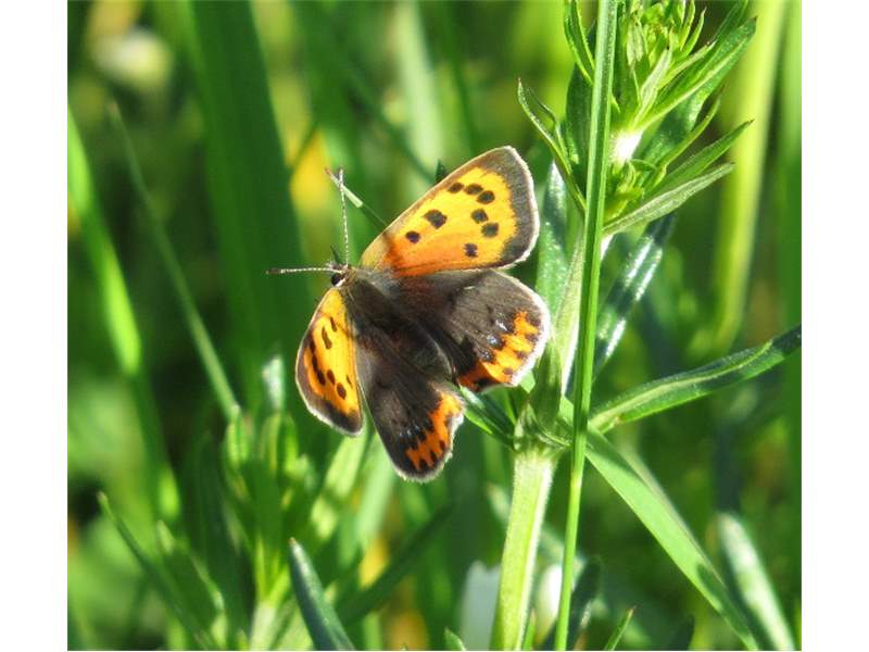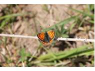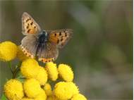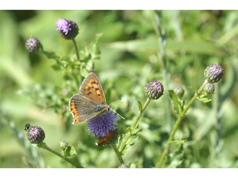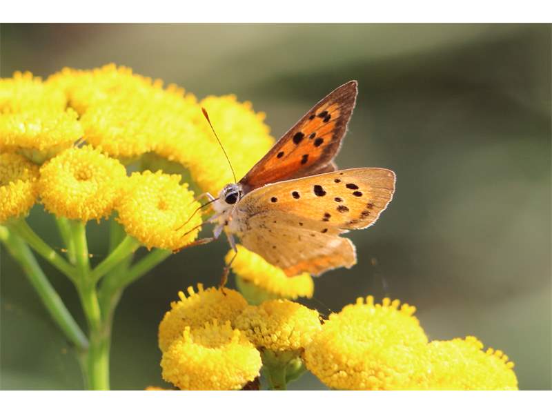 Kleiner Feuerfalter (Lycaena phlaeas (Linnaeus, 1761)), Laue, Rekultivierungsbereich der Tagebaulandschaft Goitzsche östlich vom Seelhausener See, nahe Leipzig, 16. Juni 2019