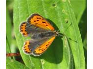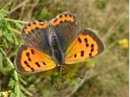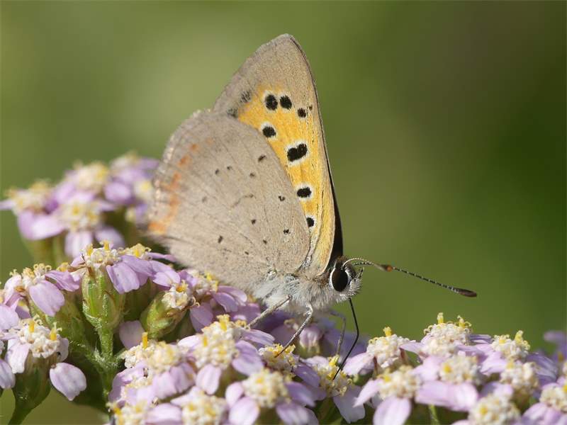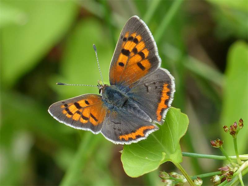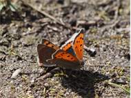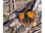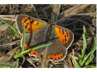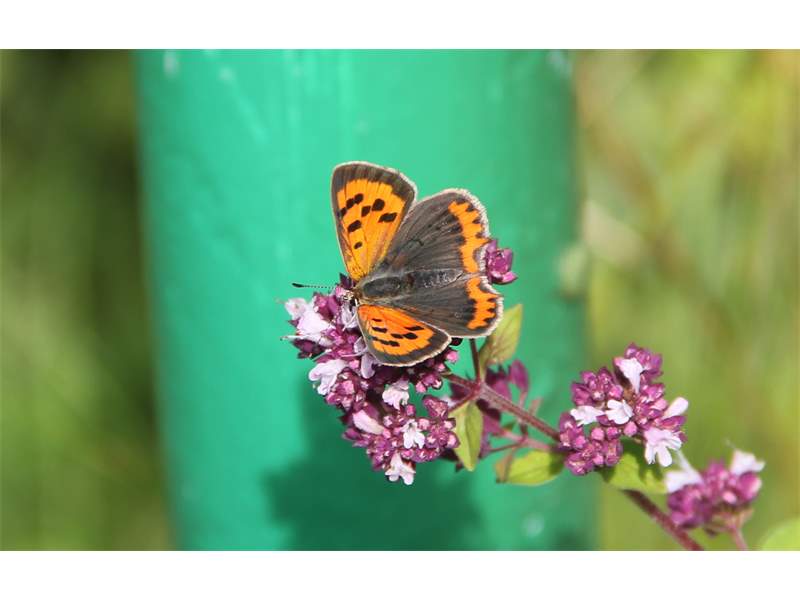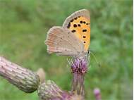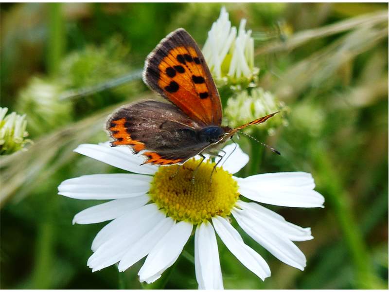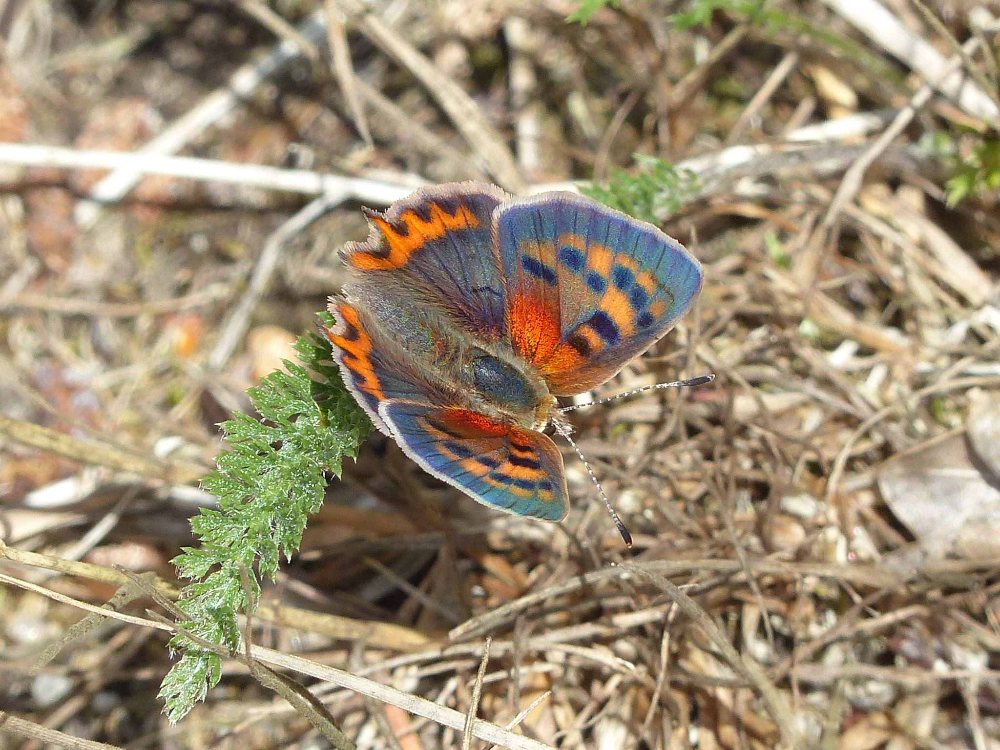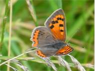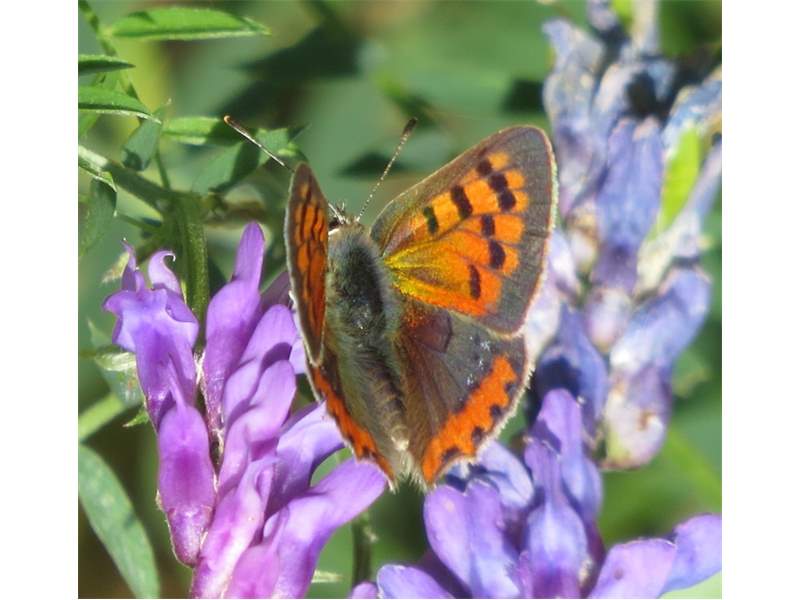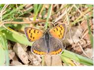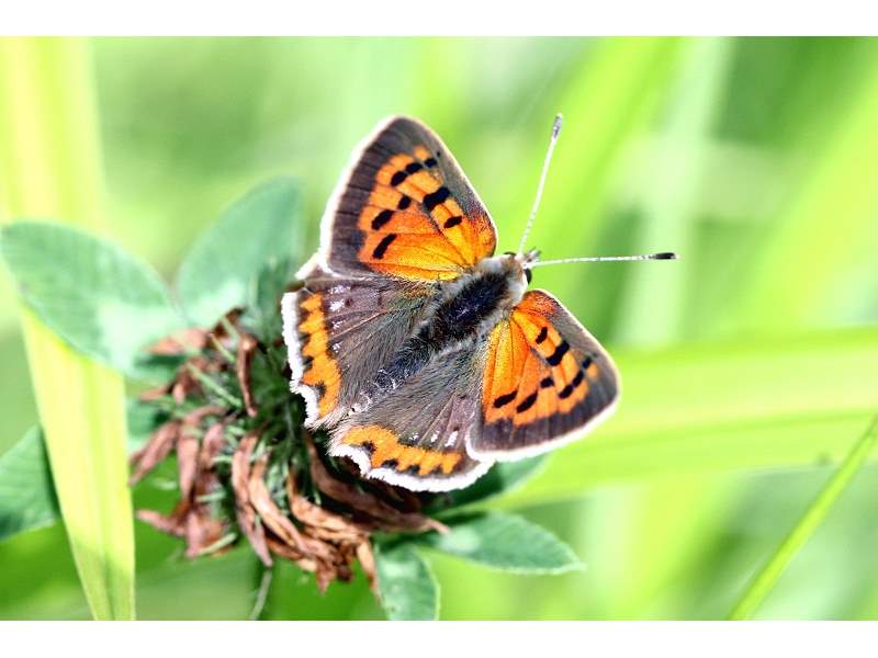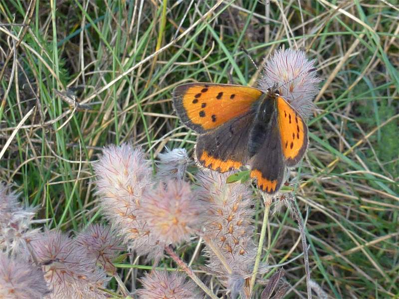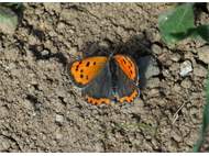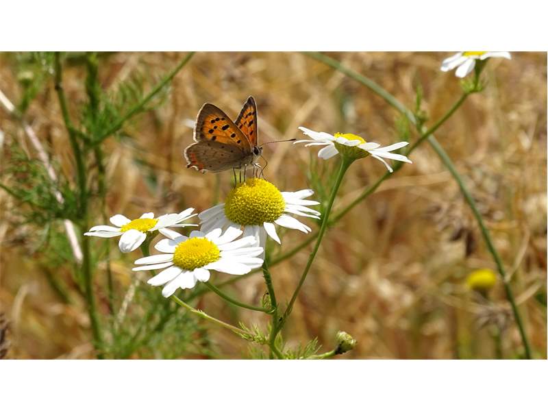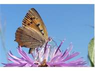 Kleiner Feuerfalter (Lycaena phlaeas (Linnaeus, 1761)), Laue, Rekultivierungsbereich der Tagebaulandschaft Goitzsche östlich vom Seelhausener See, nahe Leipzig, 16. Juni 2019