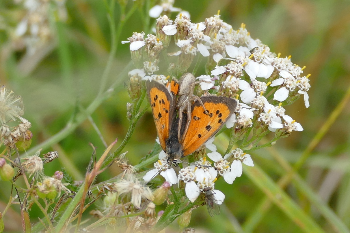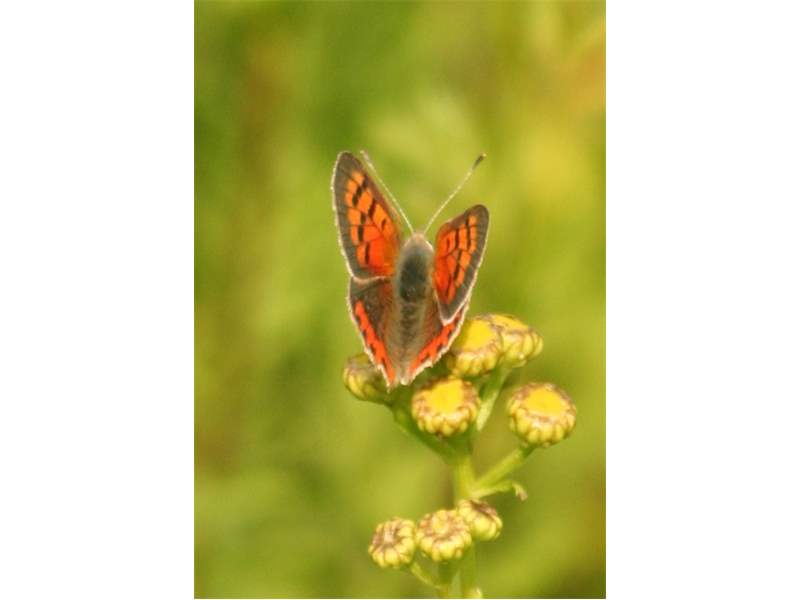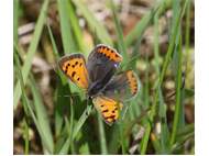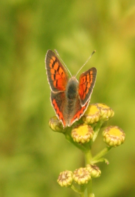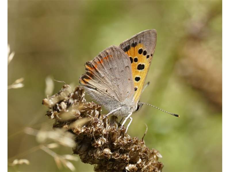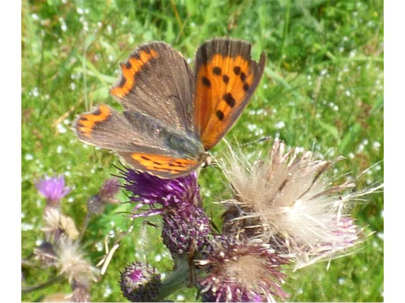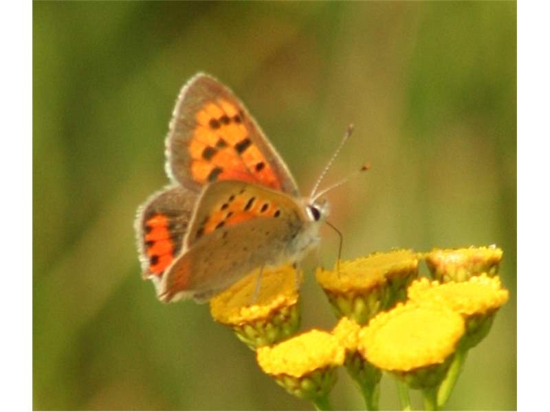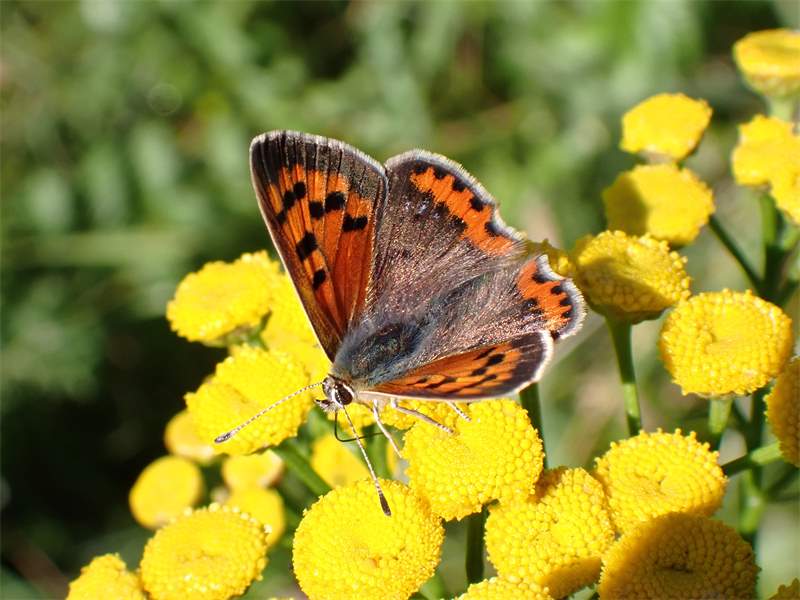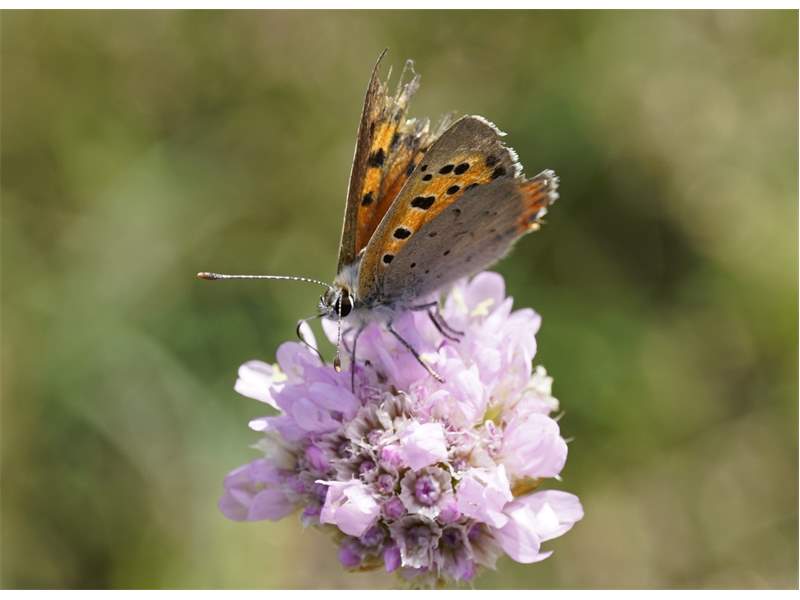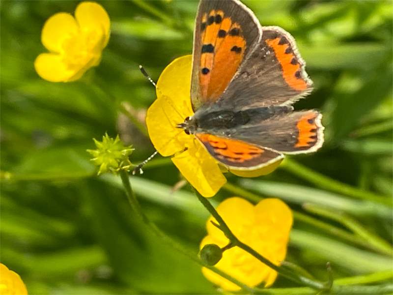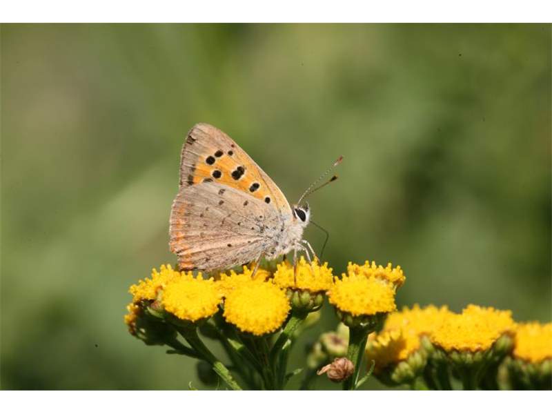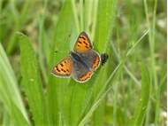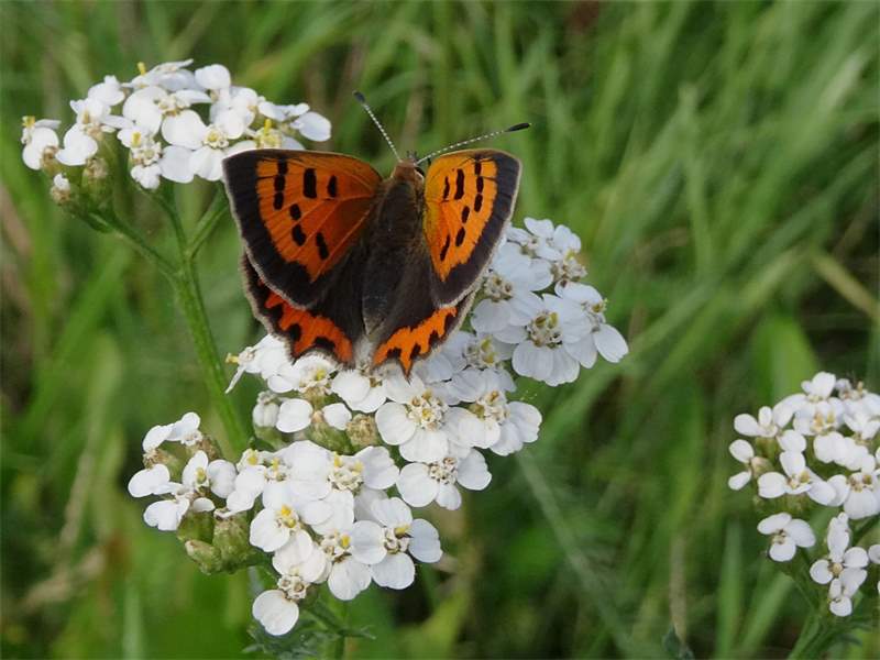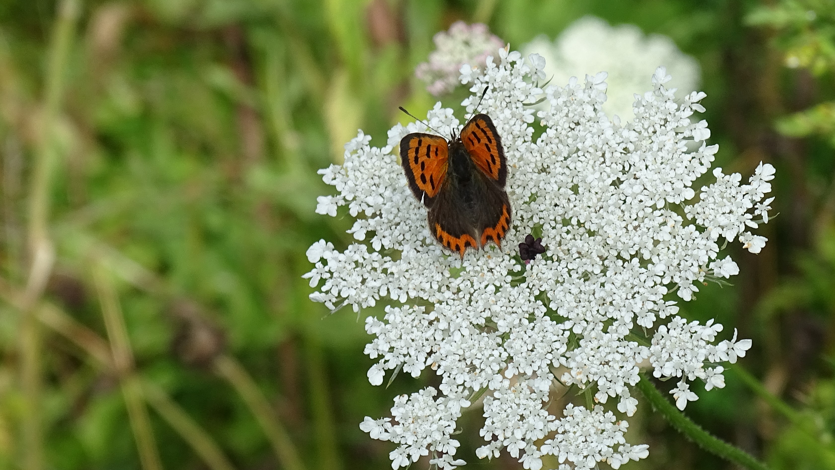 Kleiner Feuerfalter (Lycaena phlaeas (Linnaeus, 1761)), Laue, Rekultivierungsbereich der Tagebaulandschaft Goitzsche östlich vom Seelhausener See, nahe Leipzig, 16. Juni 2019