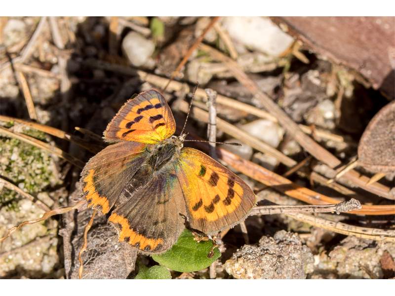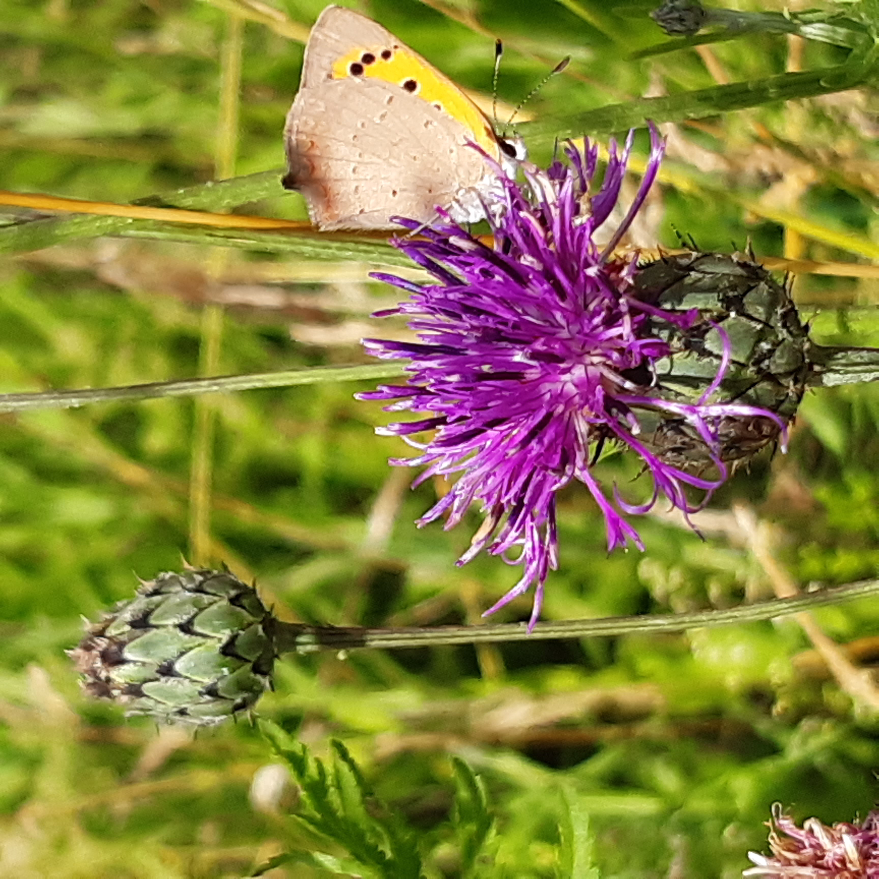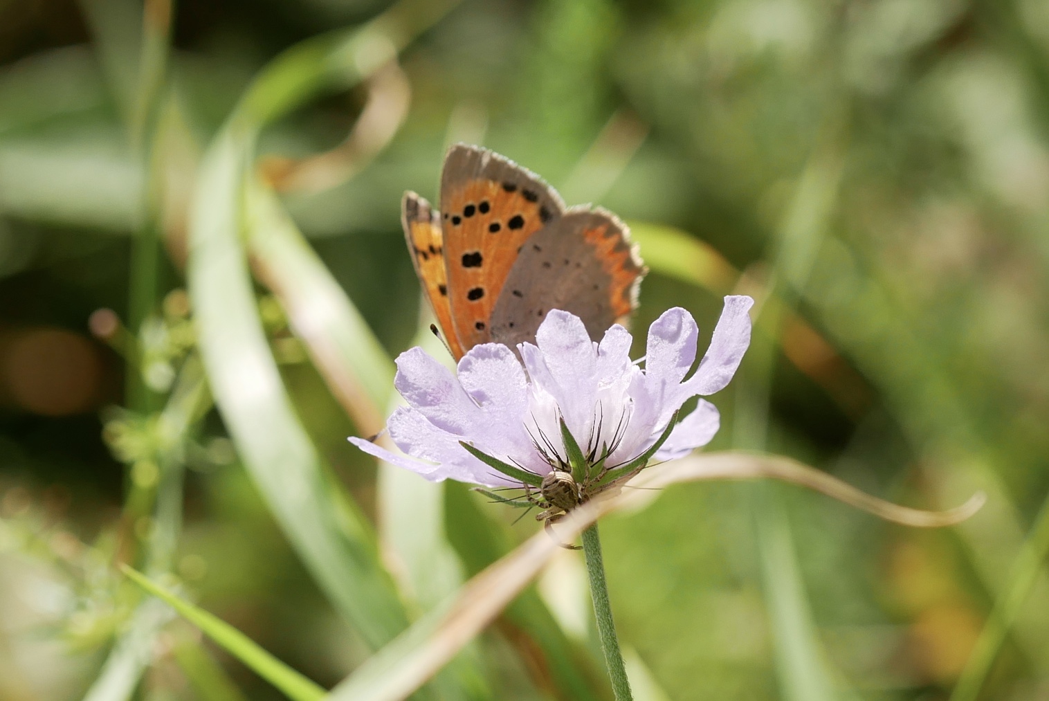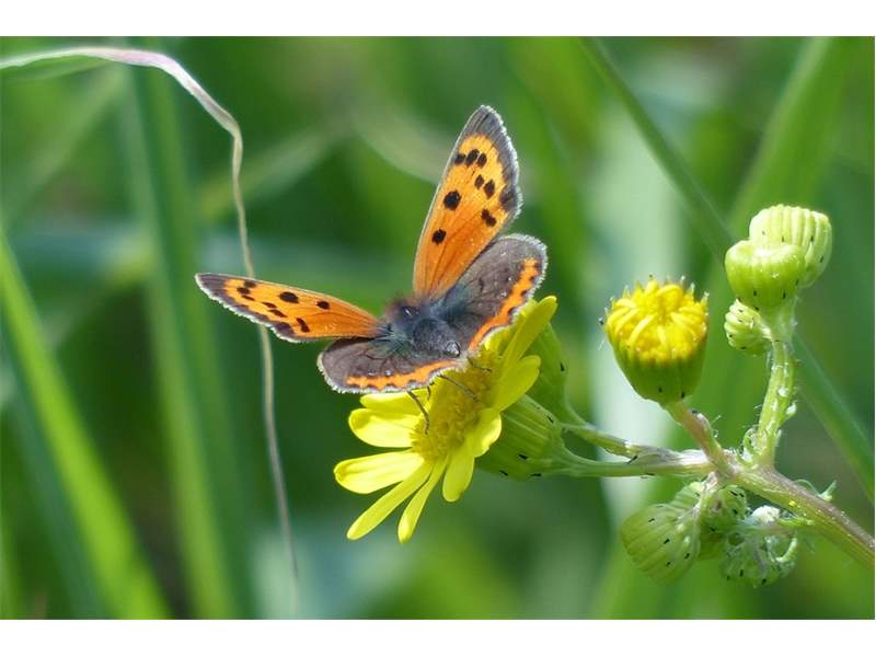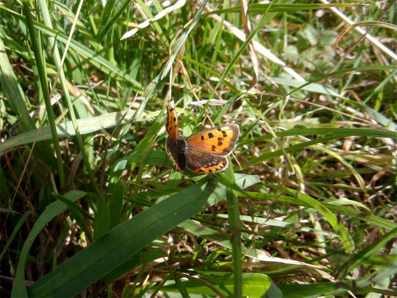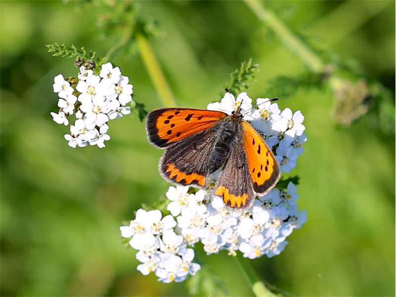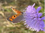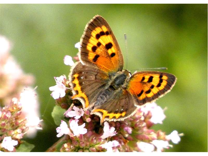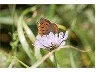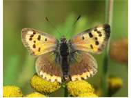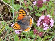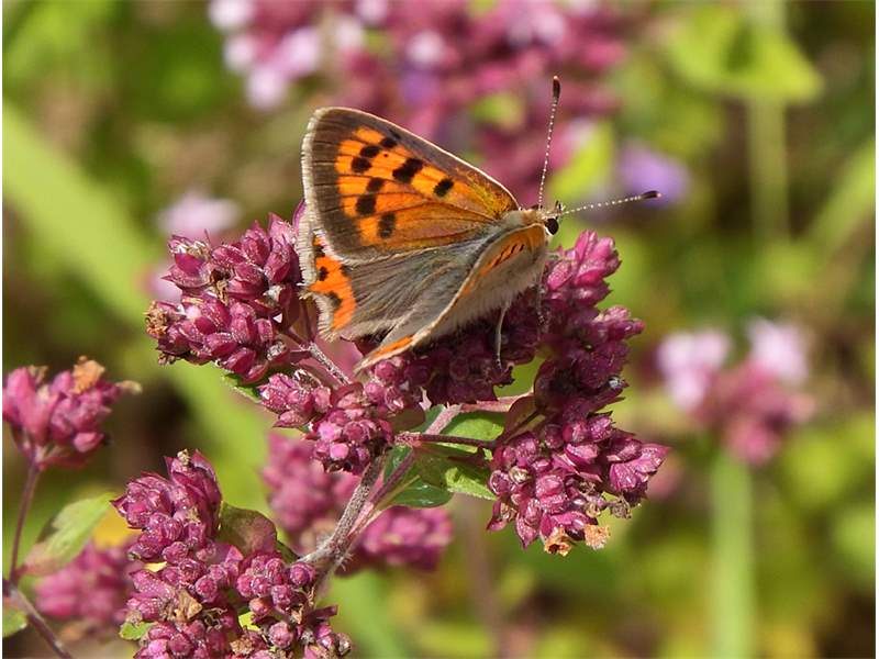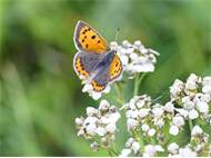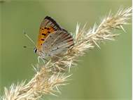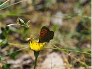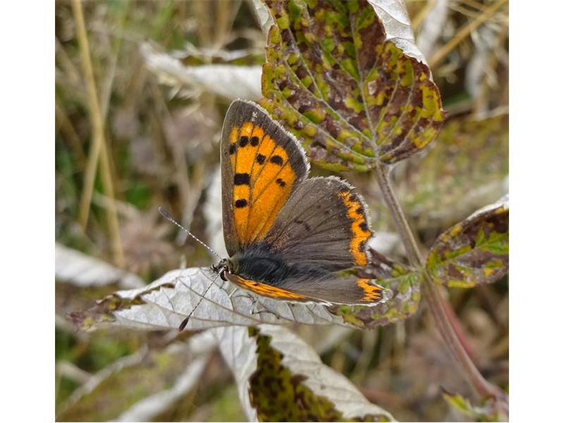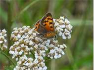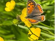 Kleiner Feuerfalter (Lycaena phlaeas (Linnaeus, 1761)), Laue, Rekultivierungsbereich der Tagebaulandschaft Goitzsche östlich vom Seelhausener See, nahe Leipzig, 16. Juni 2019