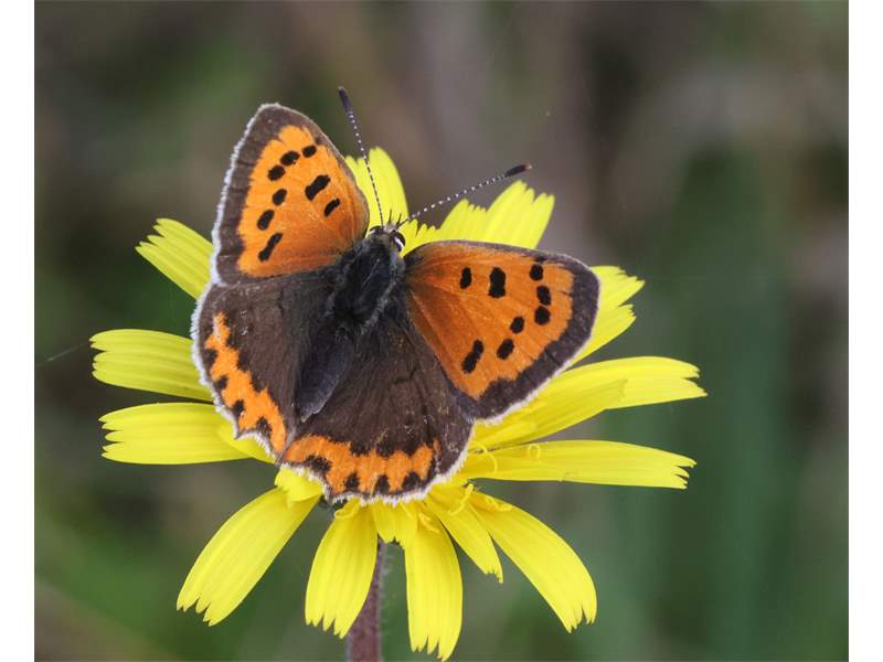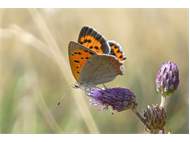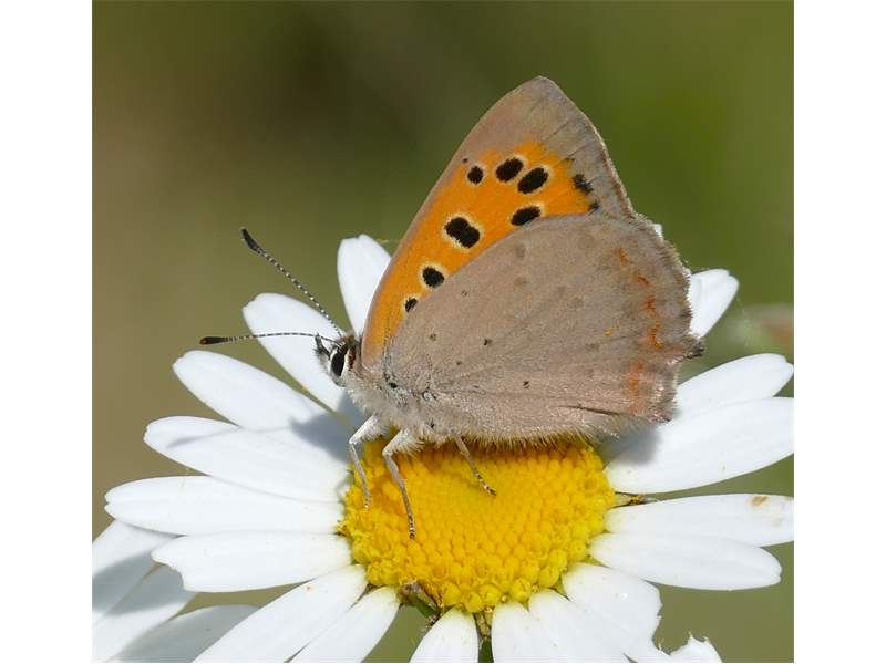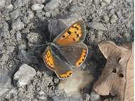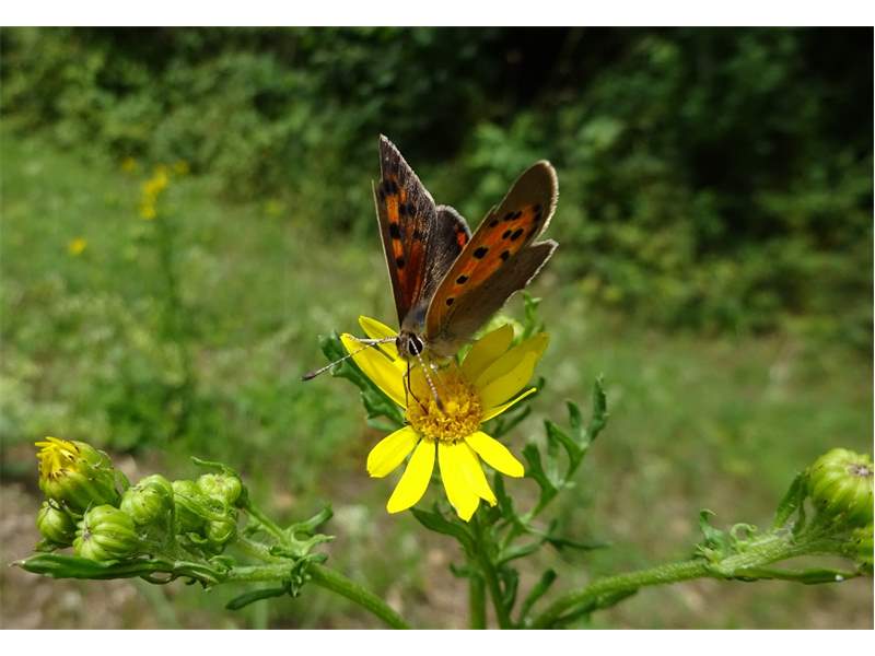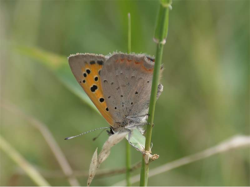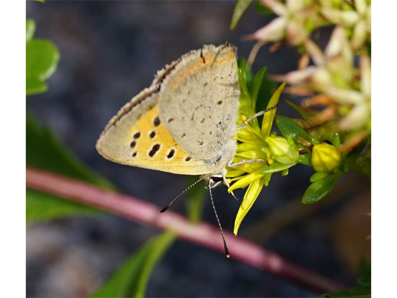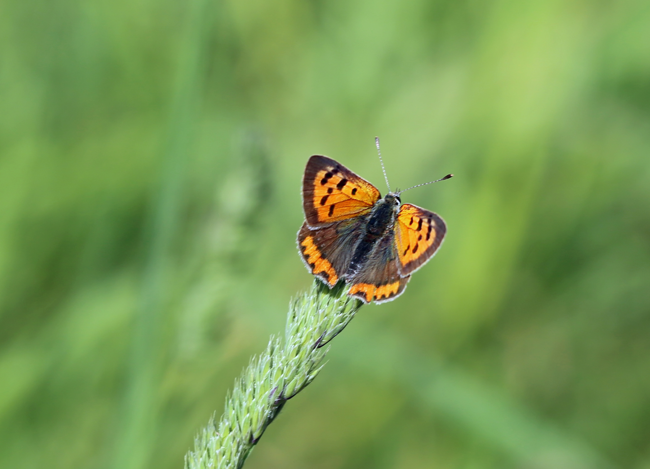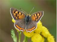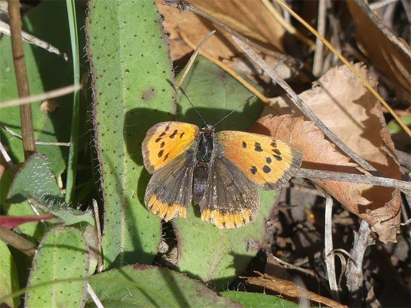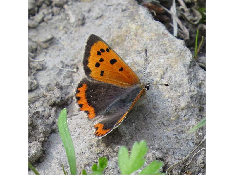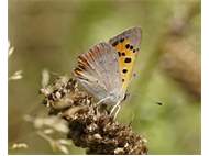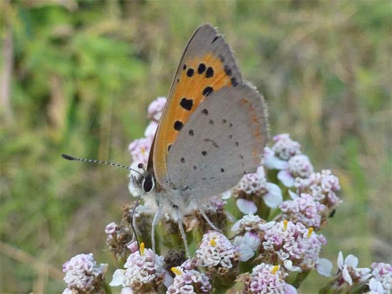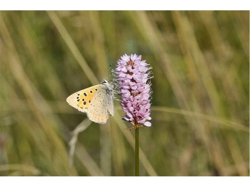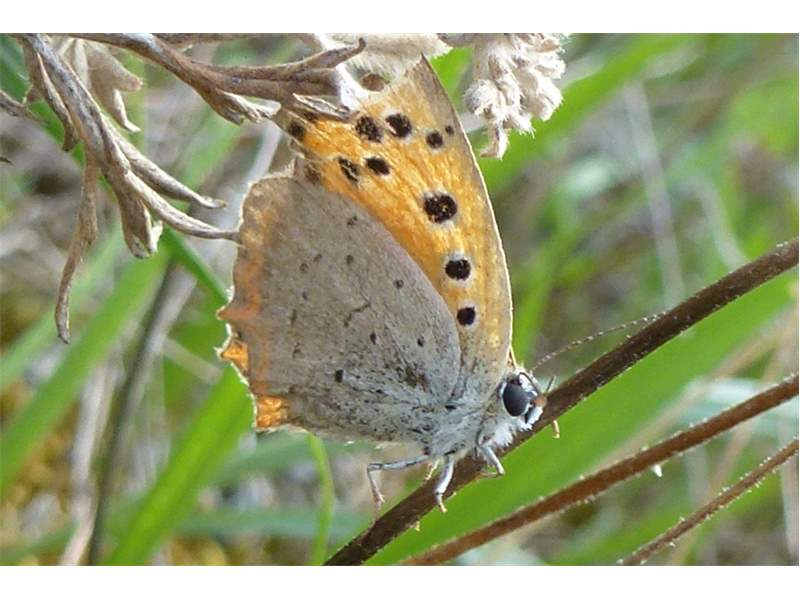 Kleiner Feuerfalter (Lycaena phlaeas (Linnaeus, 1761)), Laue, Rekultivierungsbereich der Tagebaulandschaft Goitzsche östlich vom Seelhausener See, nahe Leipzig, 16. Juni 2019