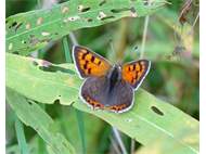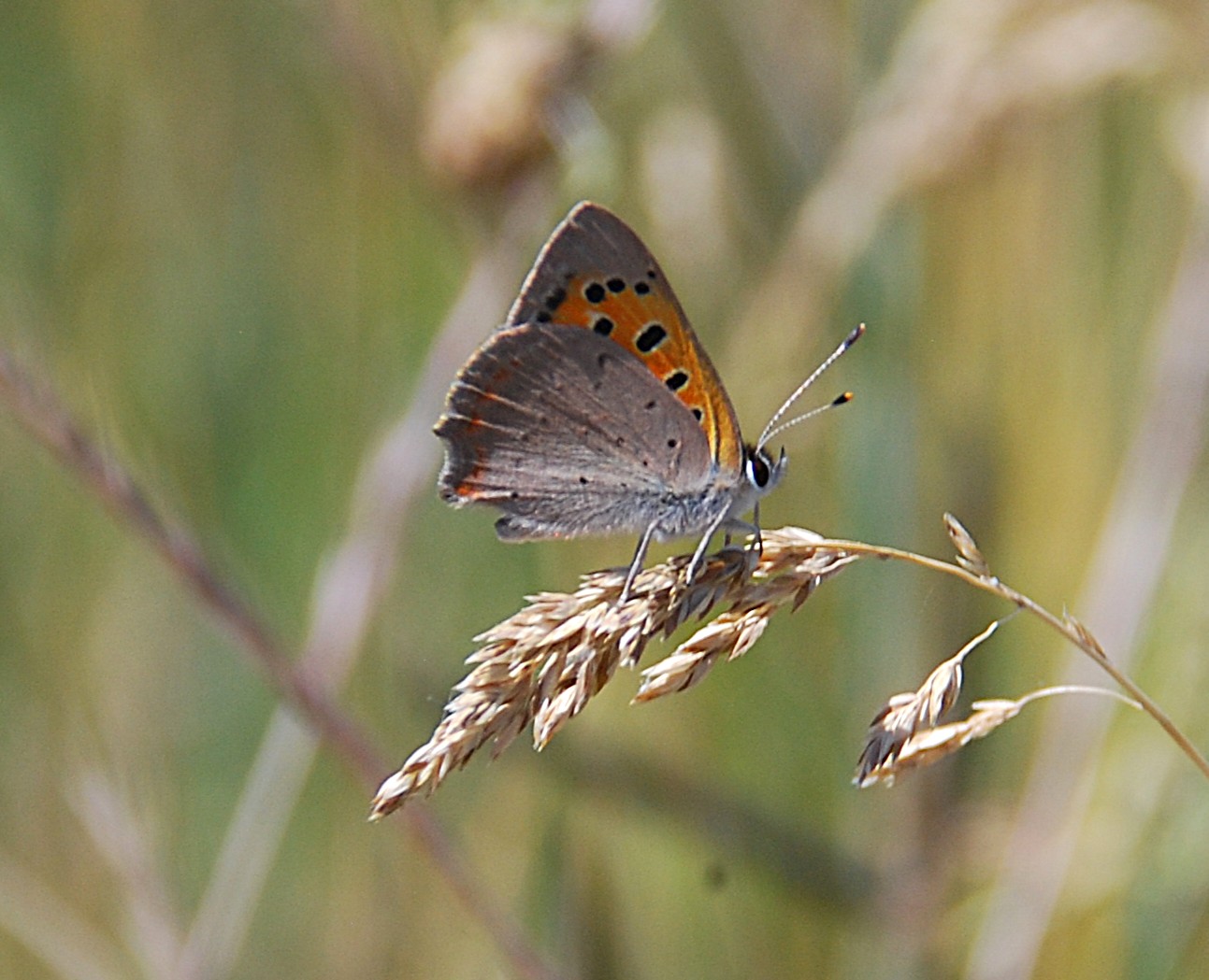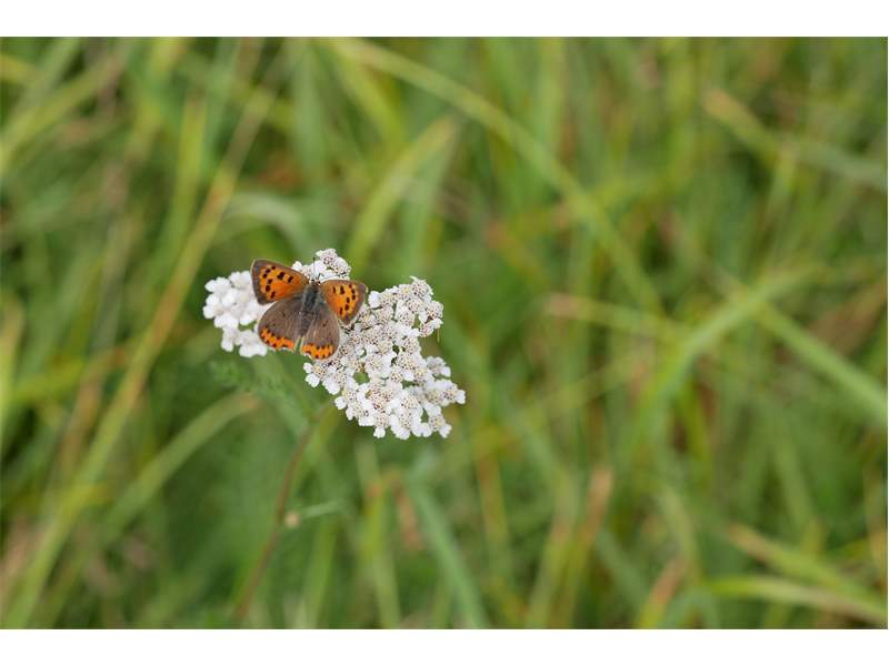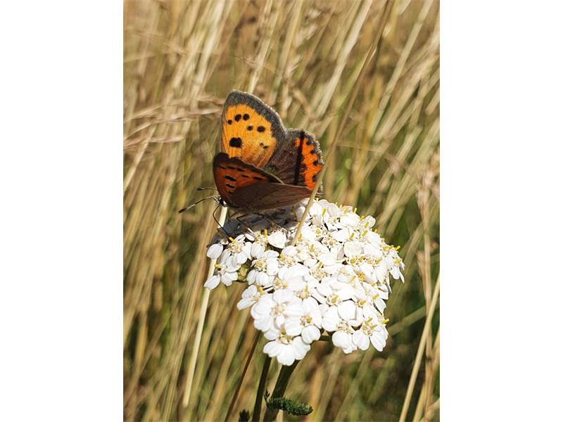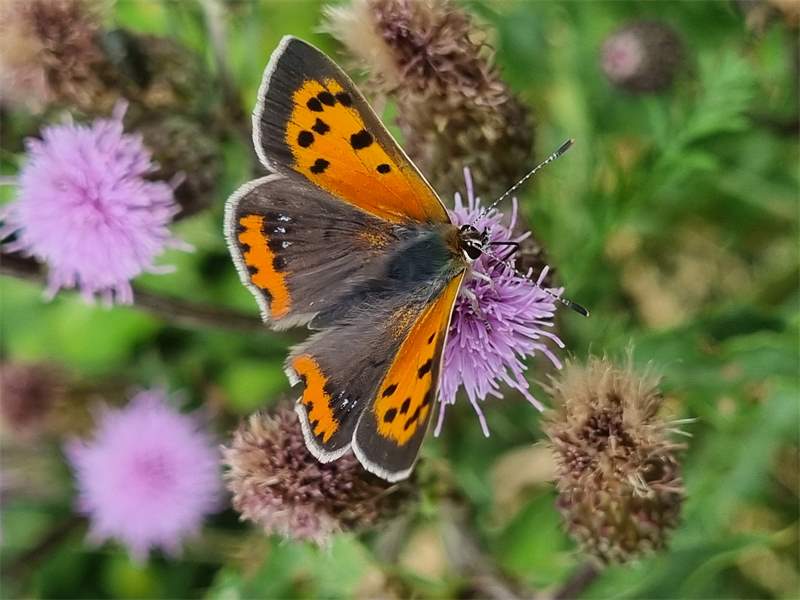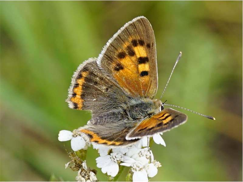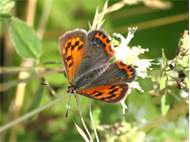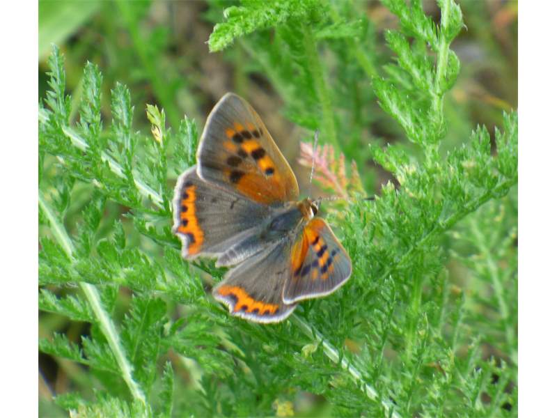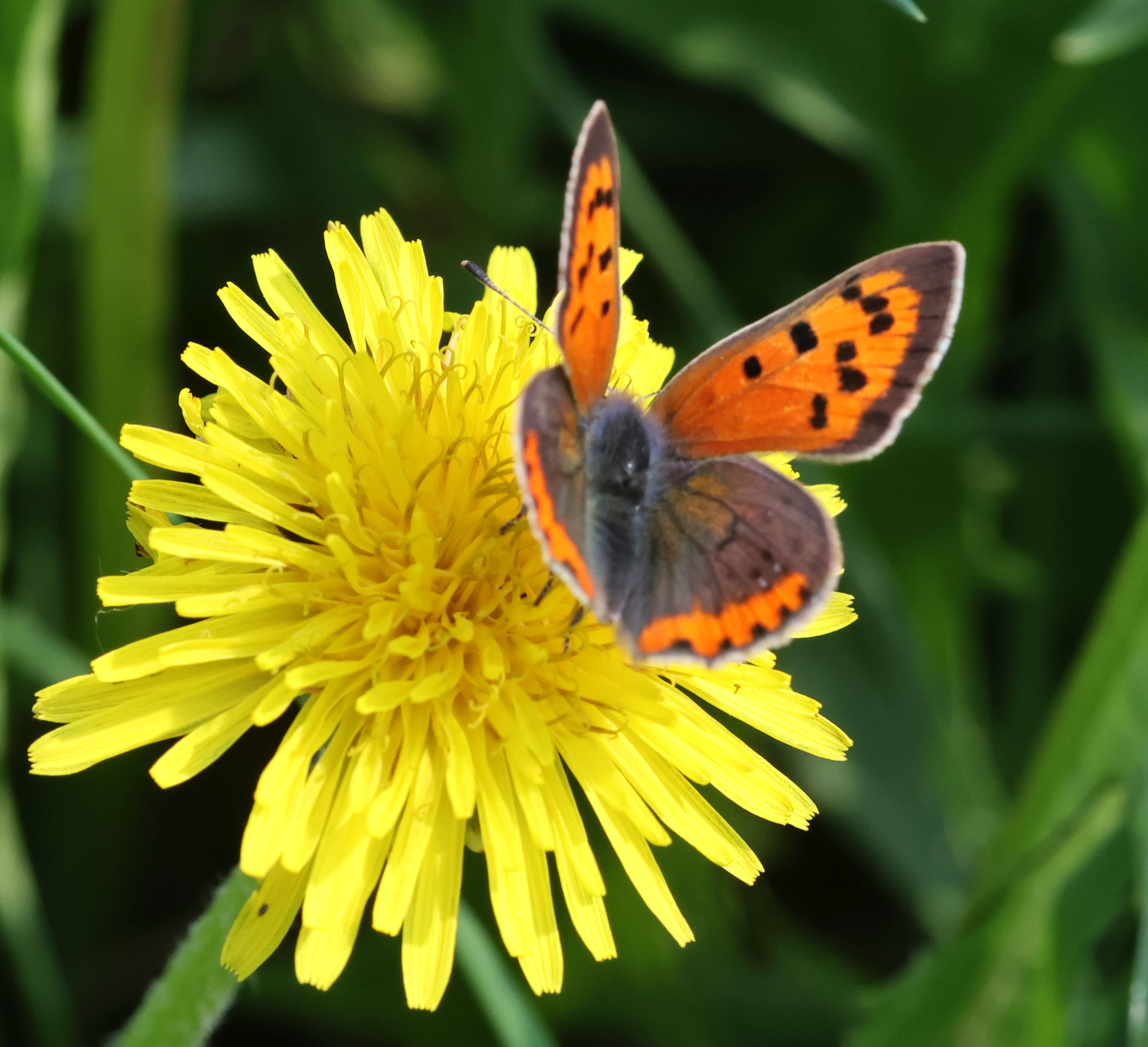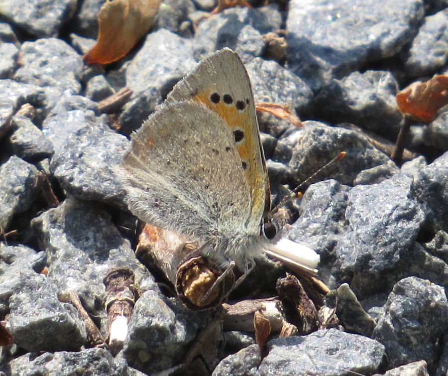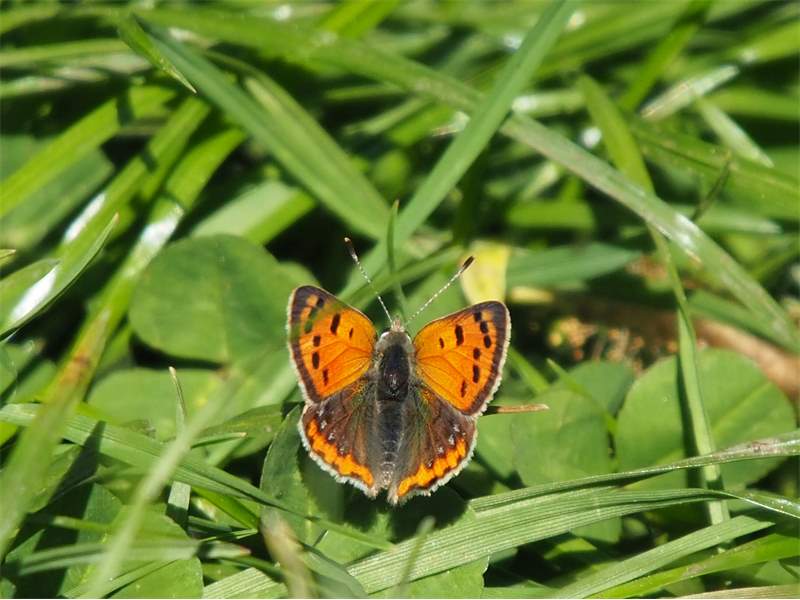 Kleiner Feuerfalter (Lycaena phlaeas (Linnaeus, 1761)), Laue, Rekultivierungsbereich der Tagebaulandschaft Goitzsche östlich vom Seelhausener See, nahe Leipzig, 16. Juni 2019