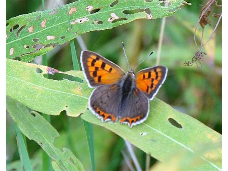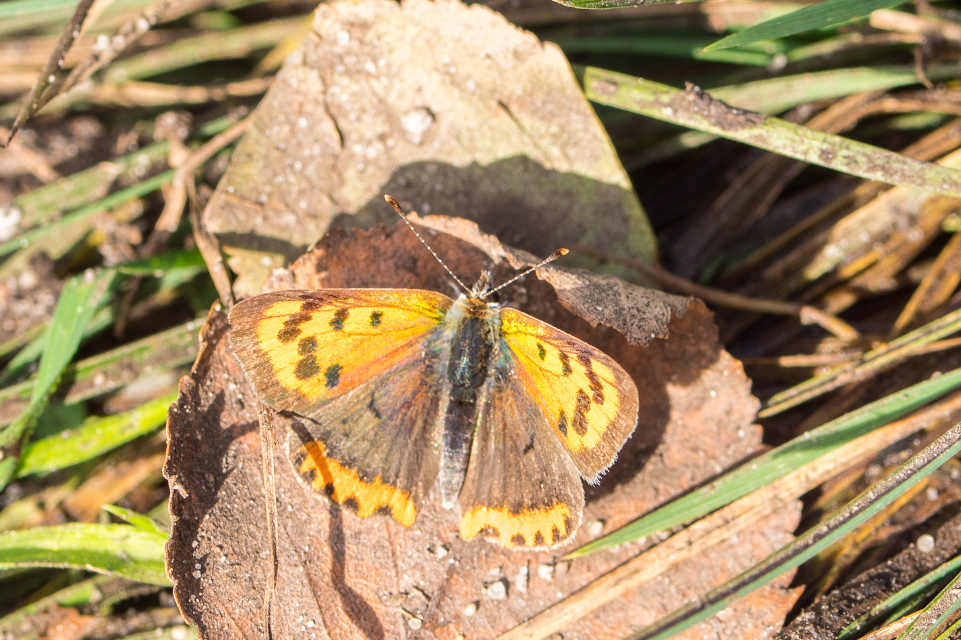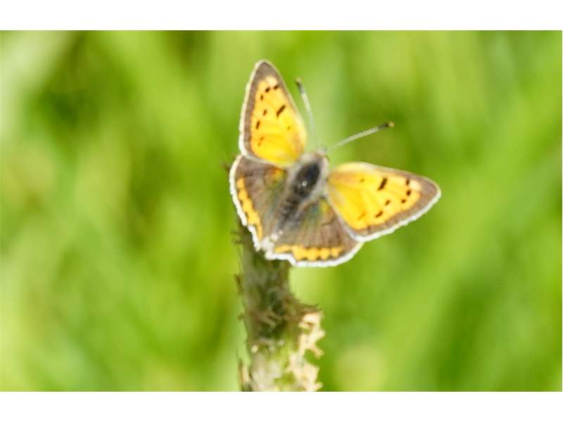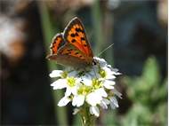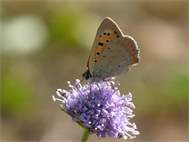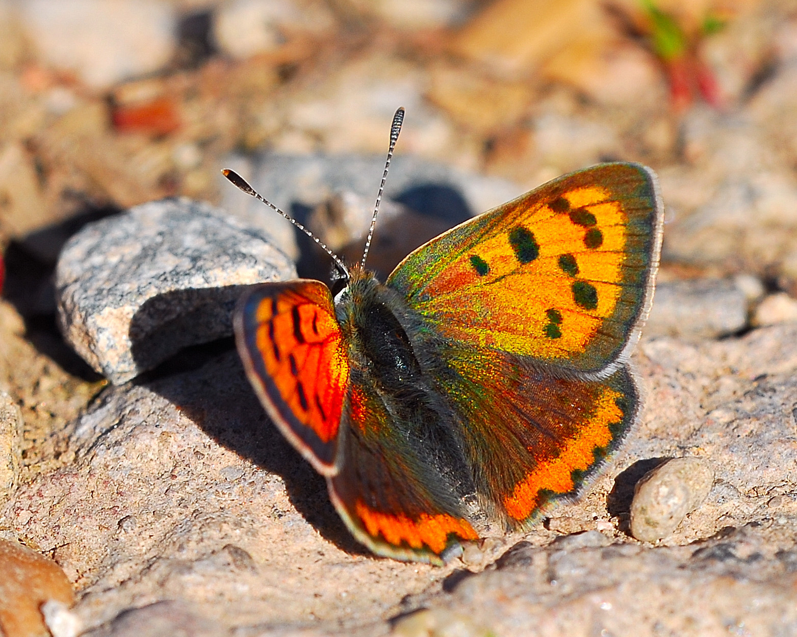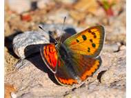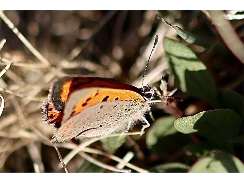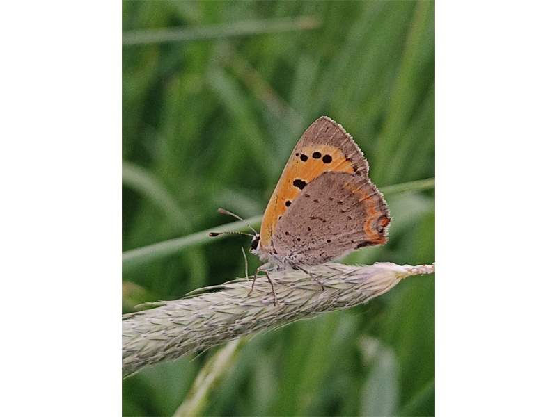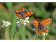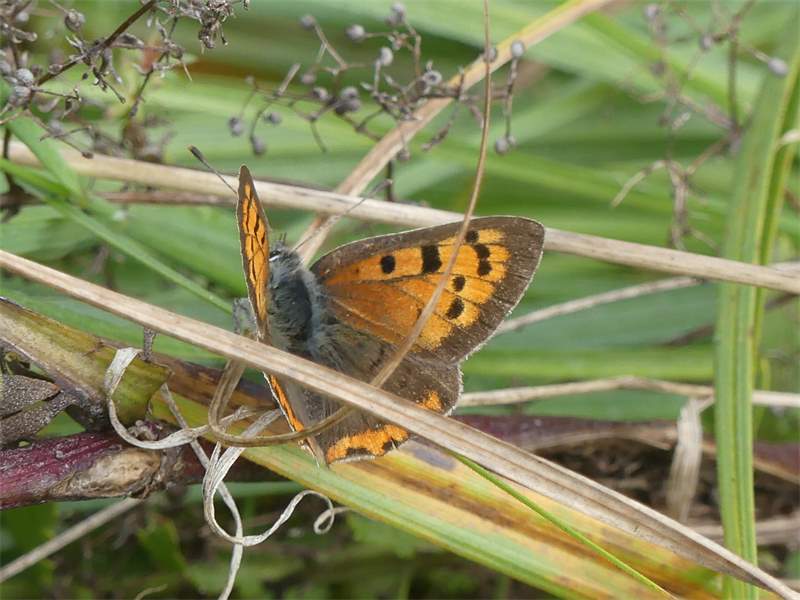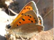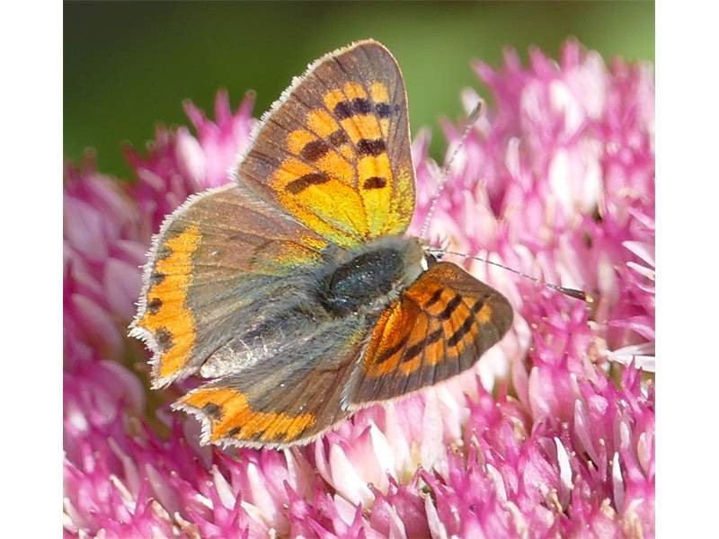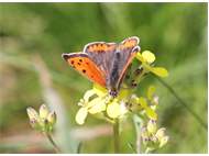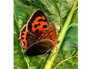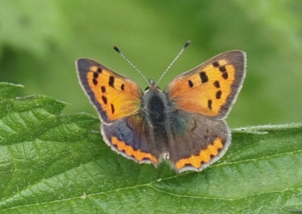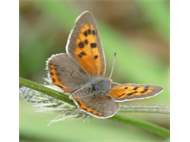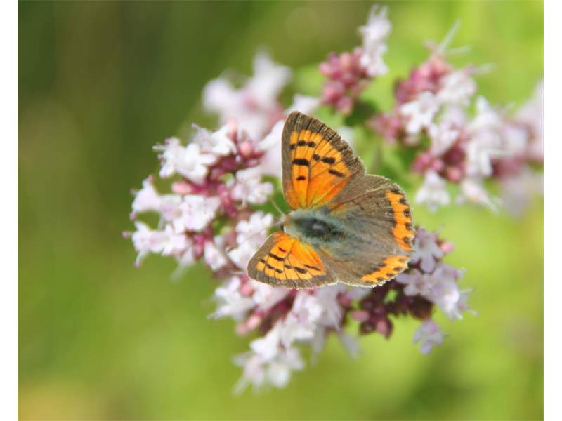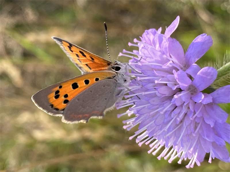 Kleiner Feuerfalter (Lycaena phlaeas (Linnaeus, 1761)), Laue, Rekultivierungsbereich der Tagebaulandschaft Goitzsche östlich vom Seelhausener See, nahe Leipzig, 16. Juni 2019