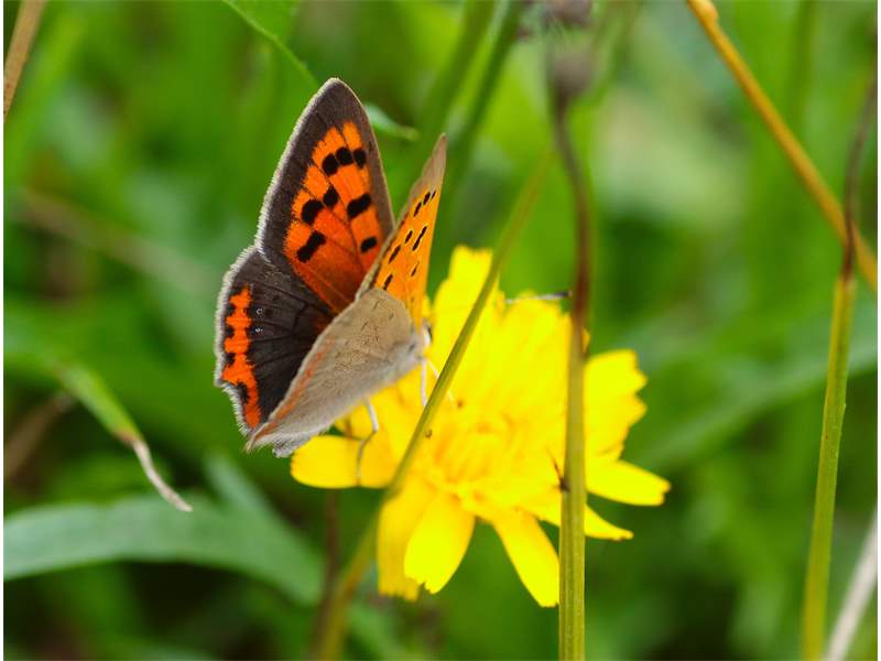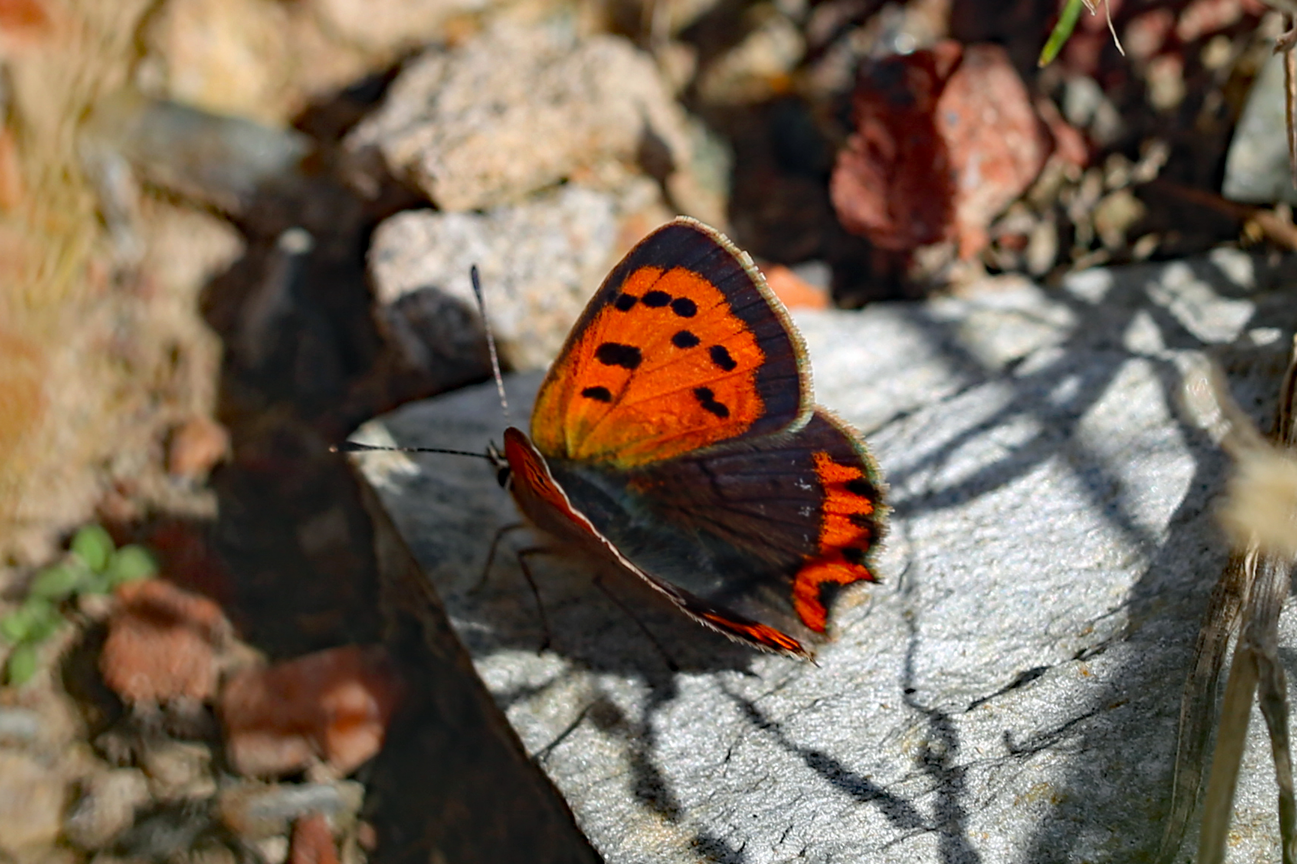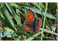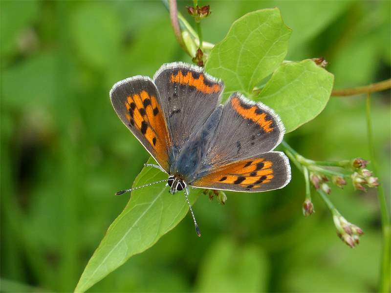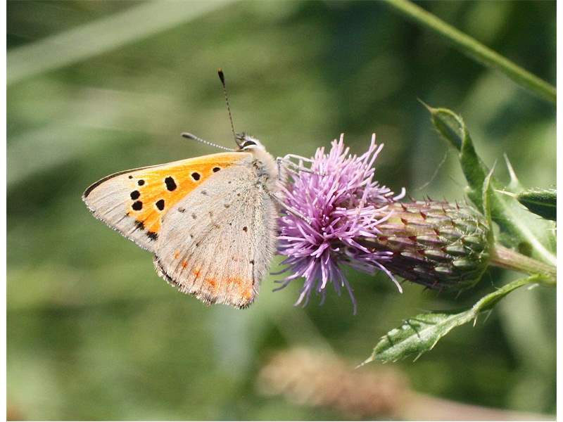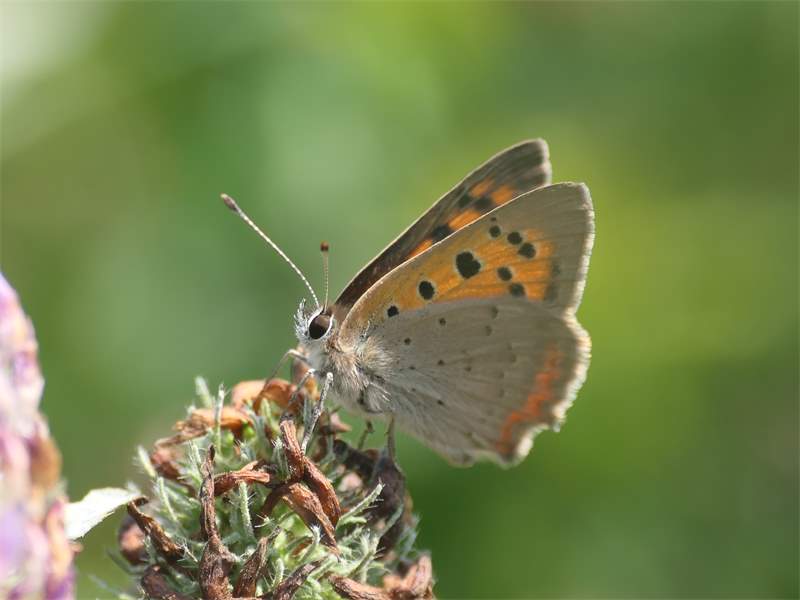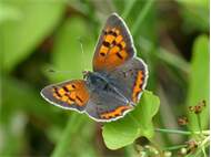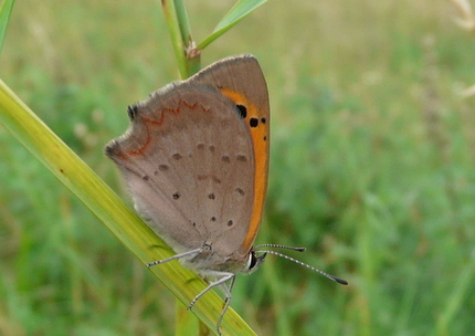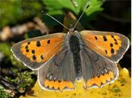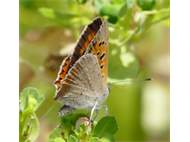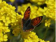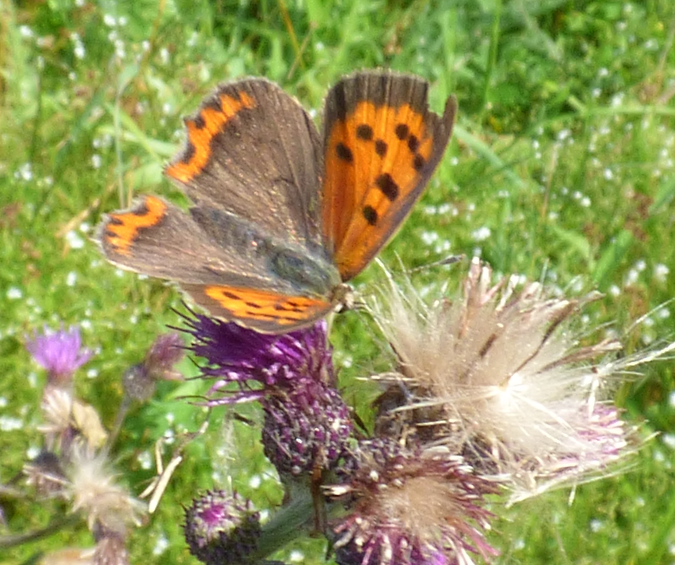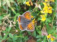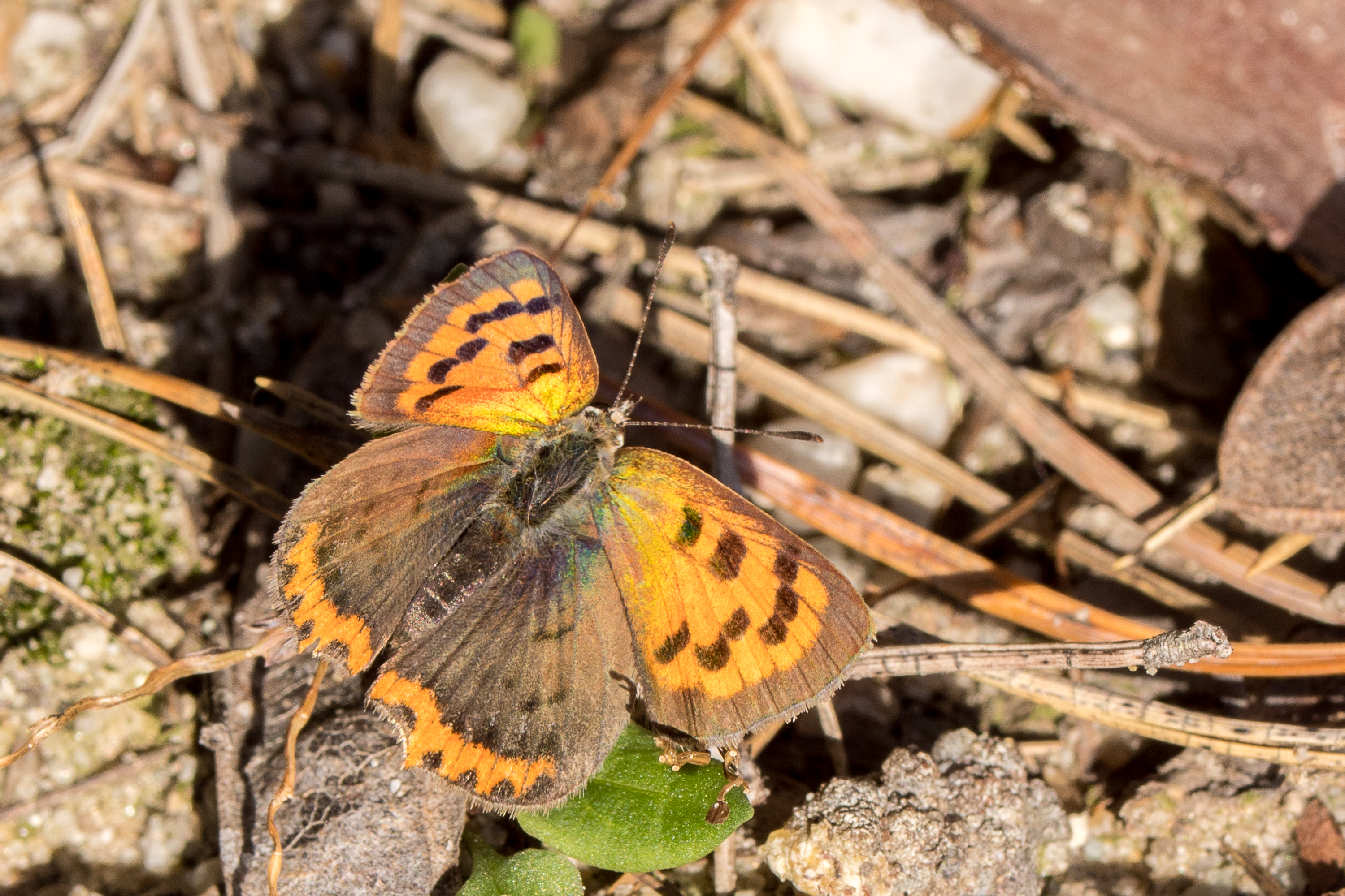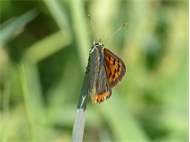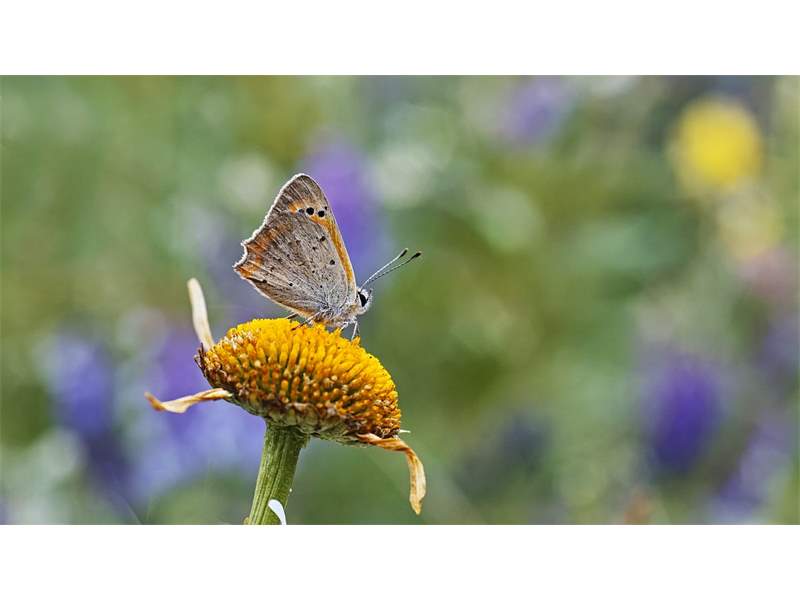 Kleiner Feuerfalter (Lycaena phlaeas (Linnaeus, 1761)), Laue, Rekultivierungsbereich der Tagebaulandschaft Goitzsche östlich vom Seelhausener See, nahe Leipzig, 16. Juni 2019